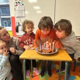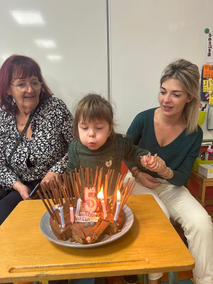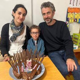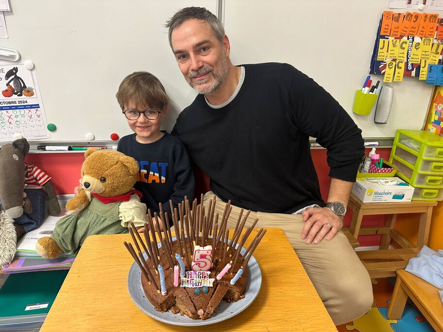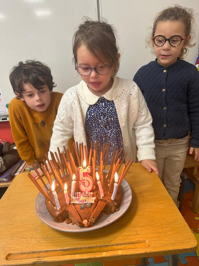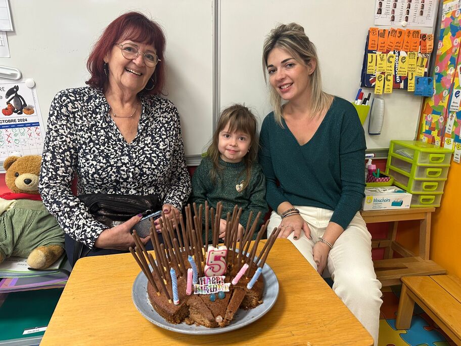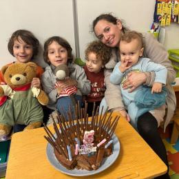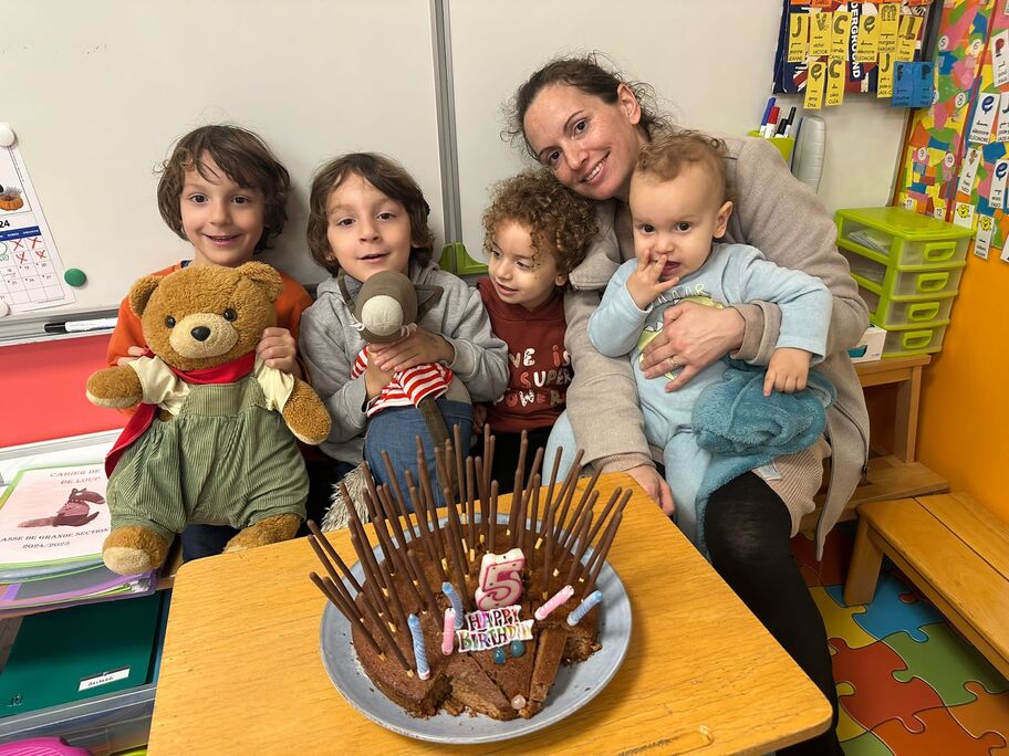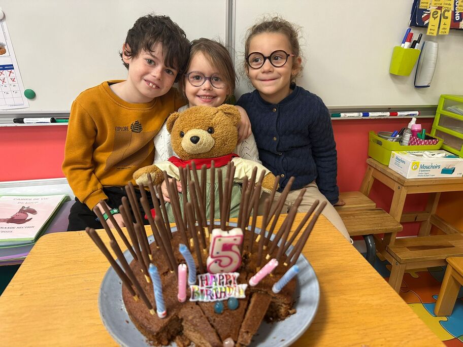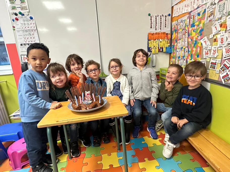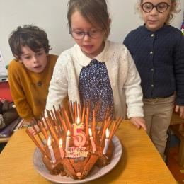 Le 18 octobre dernier, les élèves de Grande Section ont fêté les anniversaires d'août, septembre et octobre. Ils se sont tous régalés avec les bons gâteaux qu'ils avaient fait et décorés en hérisson d'automne par Anne! Ce fut l'annirsaire d'Andy et Darell, Faustine, Margaux, Paul, Camille, Maël et Léandre.