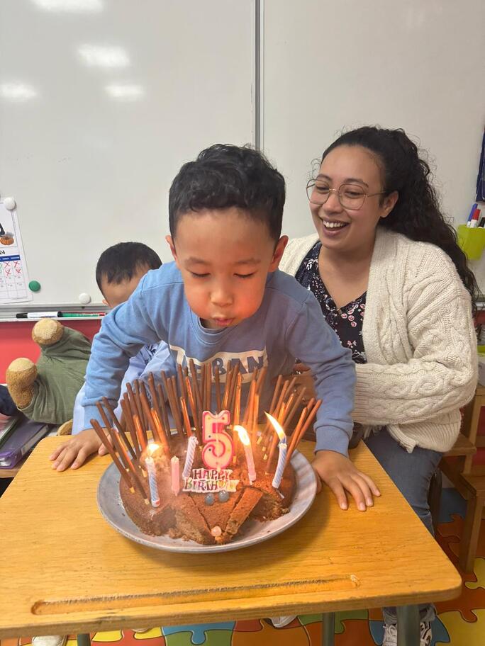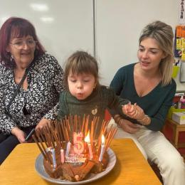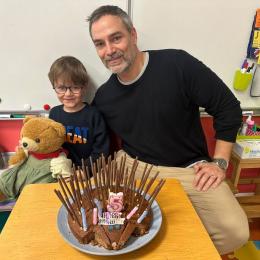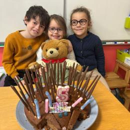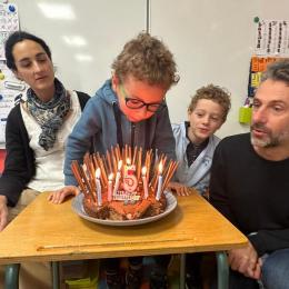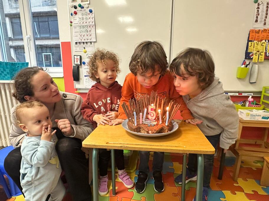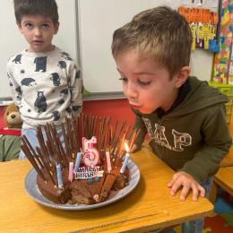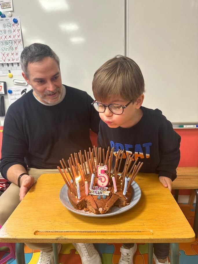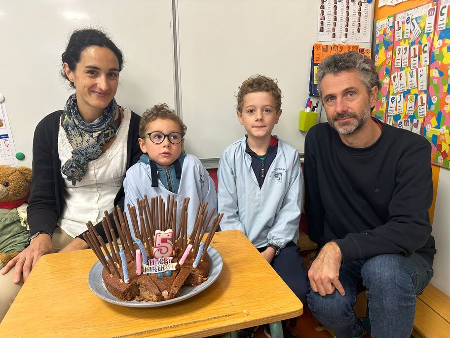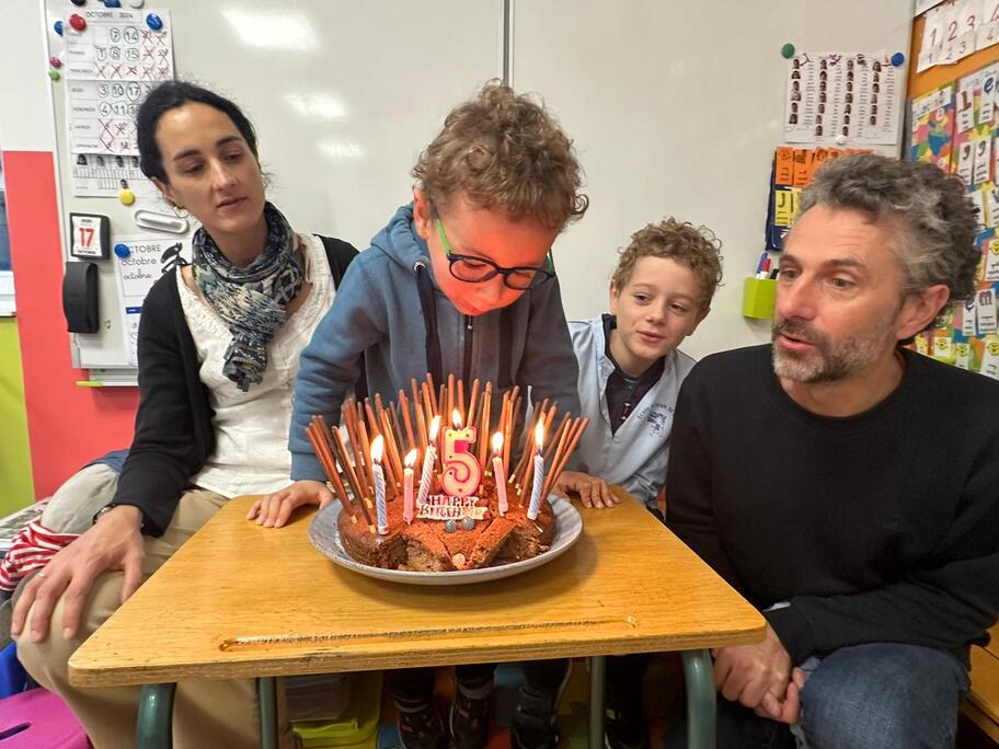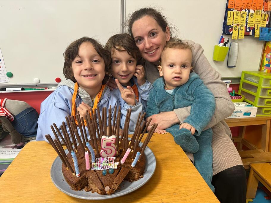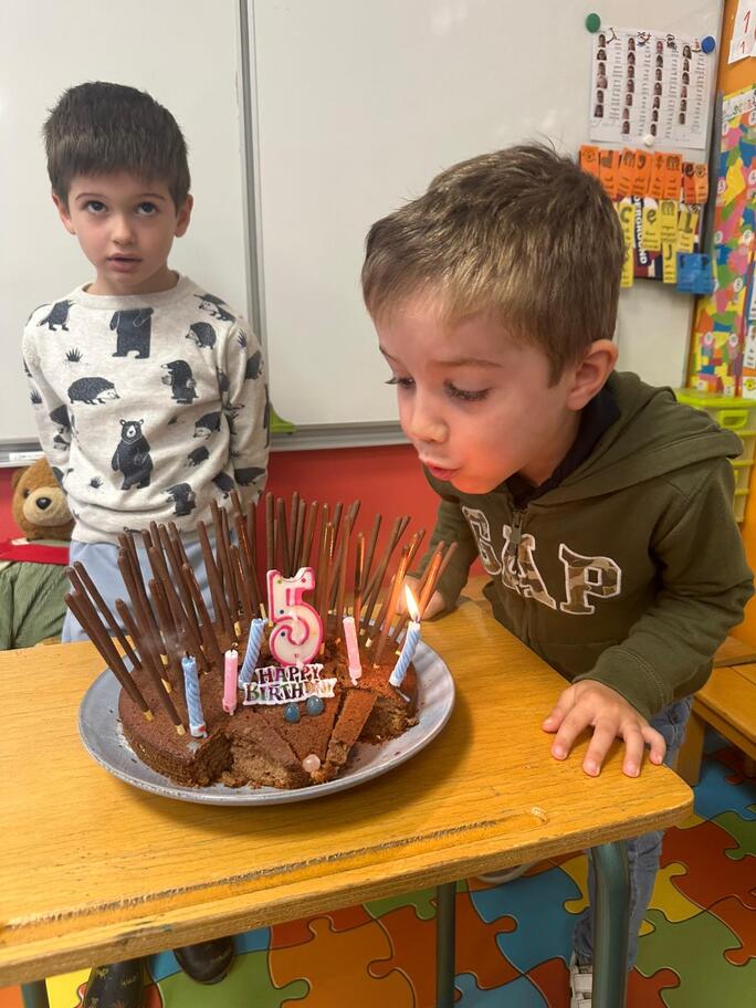 Le 18 octobre dernier, les élèves de Grande Section ont fêté les anniversaires d'août, septembre et octobre. Ils se sont tous régalés avec les bons gâteaux qu'ils avaient fait et décorés en hérisson d'automne par Anne! Ce fut l'annirsaire d'Andy et Darell, Faustine, Margaux, Paul, Camille, Maël et Léandre.