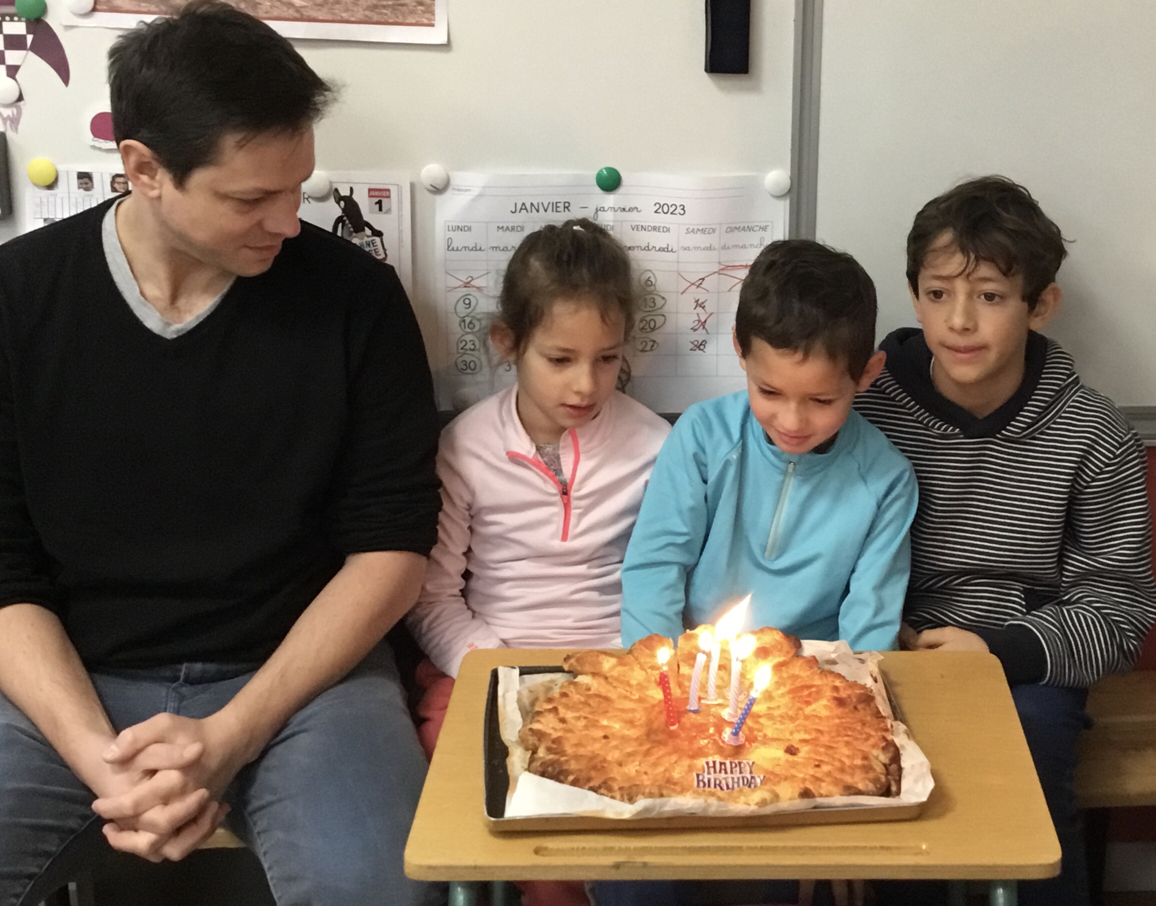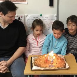 Ce mardi 31 janvier, nous avons fêté les anniversaires de Lucie, de Paul et d’Alban, nous avons dégusté de délicieuses galettes, préparées avec Anne, la veille.