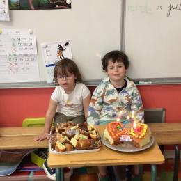 Grande section 13/06/2023 Ce mardi 13 juin, nous avons fêté les anniversaires de Jean, Gautier, Flavio, Anna et Claire. Ils garderont de beaux souvenirs partagés en famille et avec les copains. Les anniversaires de Flavio, Anna, Jean, Gautier et Claire.