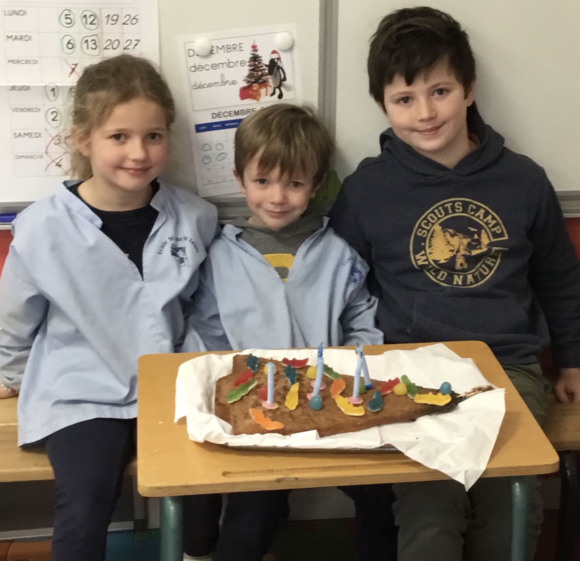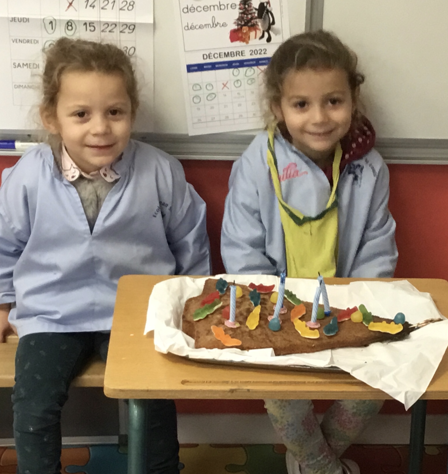 Ce Mardi 13 Décembre, nous avons fêté les anniversaires de Céléna, Victor, Julia et Rose. Les délicieux gâteaux avaient été préparés la veille avec Anne; un délice au chocolat et un quatre-quart en forme de sapin, un régal pour les yeux et pour les papilles. Les enfants ont pu partager de beaux moments en classe avec leur frère et/ou sœur mais aussi leurs parents, et tous les copains.