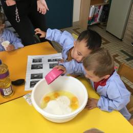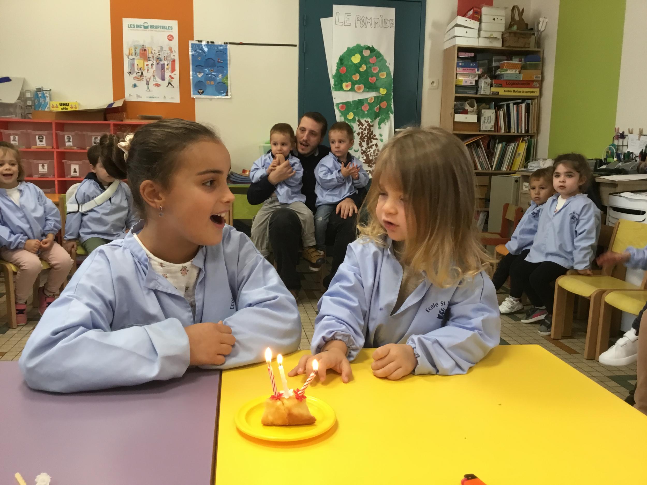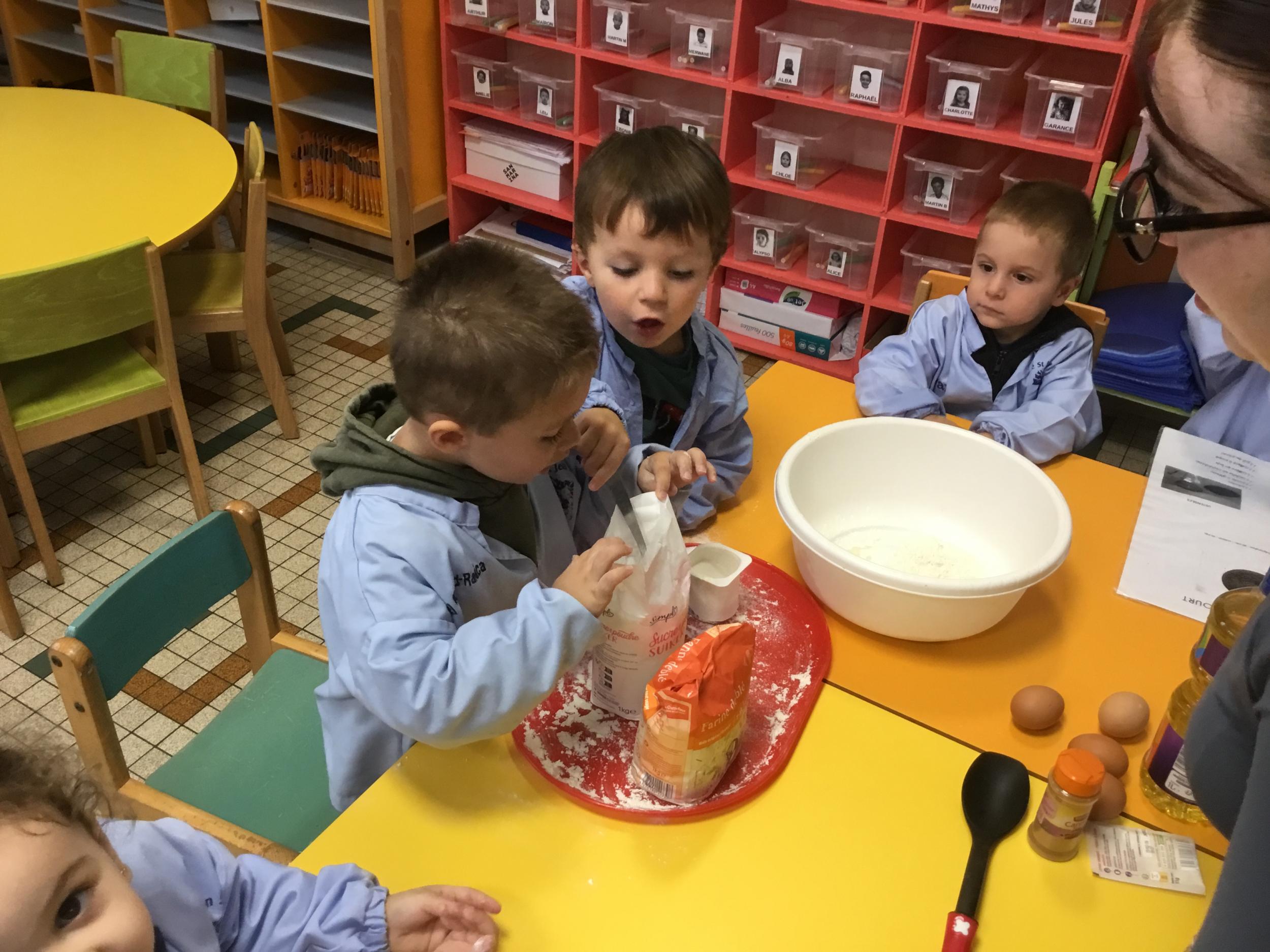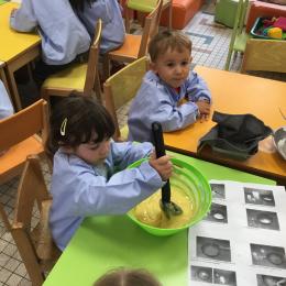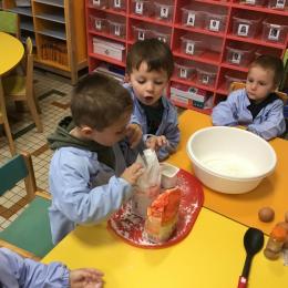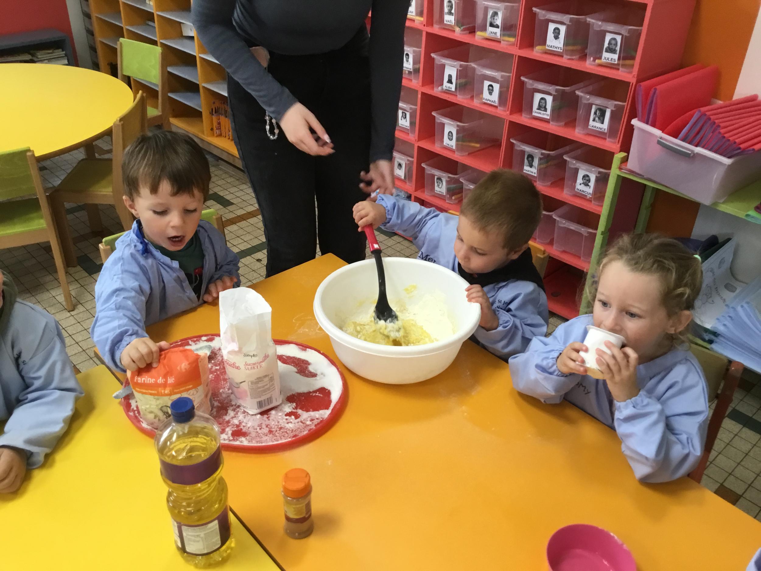 Petite et moyenne section 29/09/2024 Cette semaine nous avons préparé des gâteaux et fêté les anniversaires d’Alba, Amélie, Jane, Martin B, Martin M, Merwane et Adam. L’atelier pâtisserie Jour de fête Le bonhomme du mois de septembre