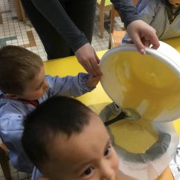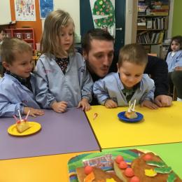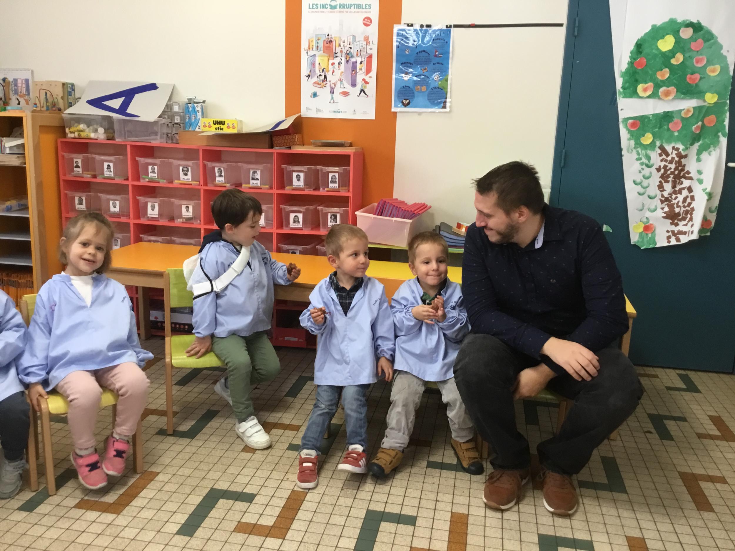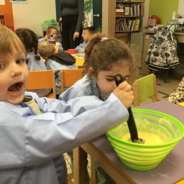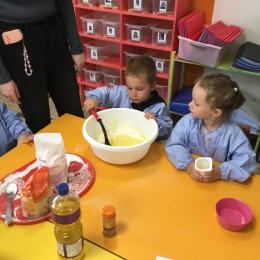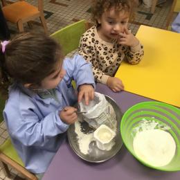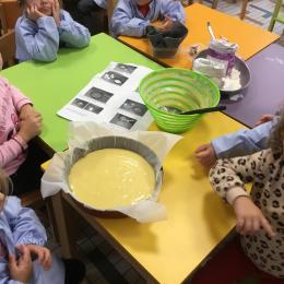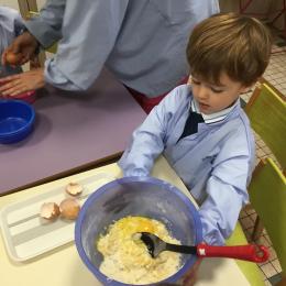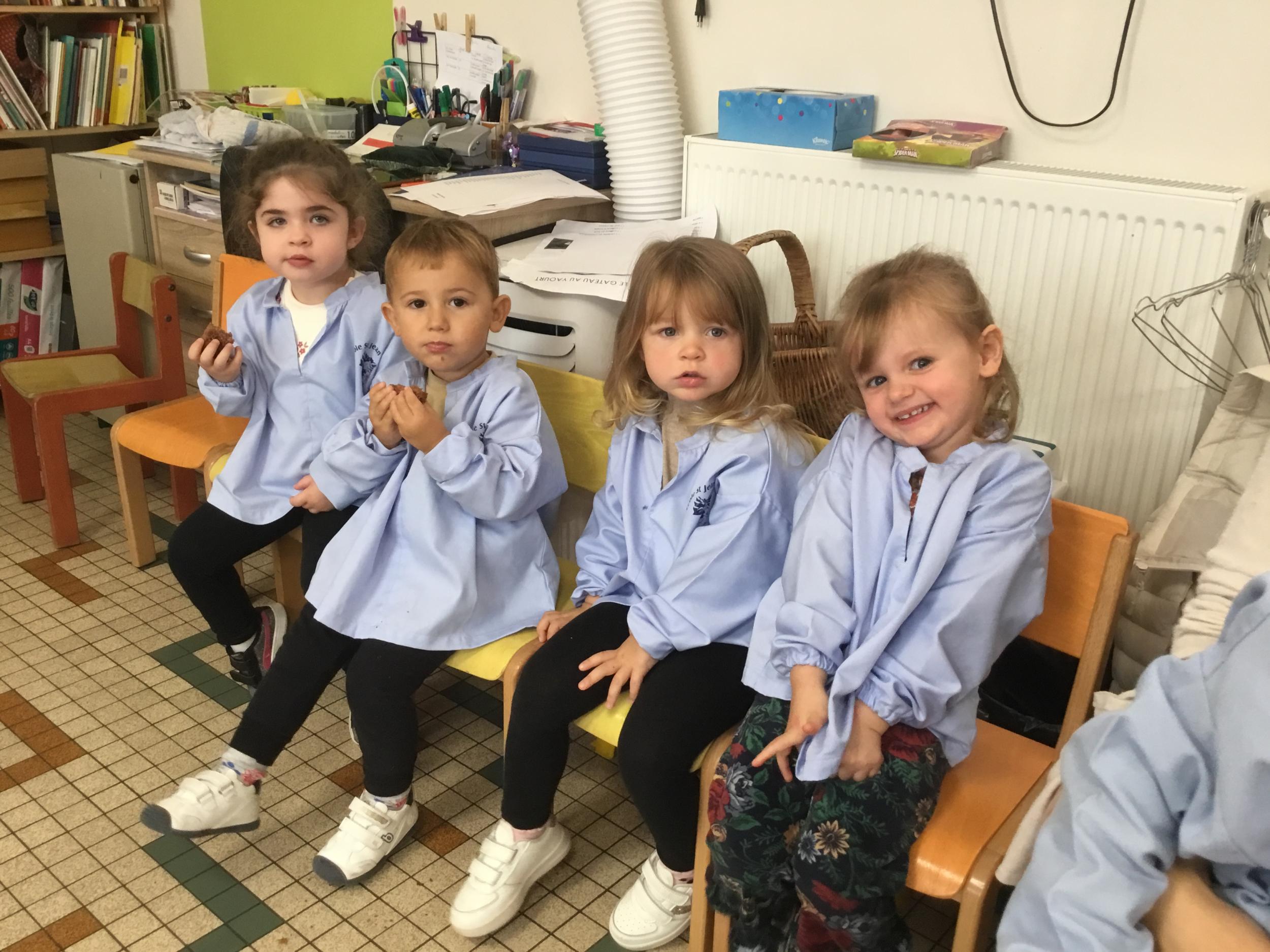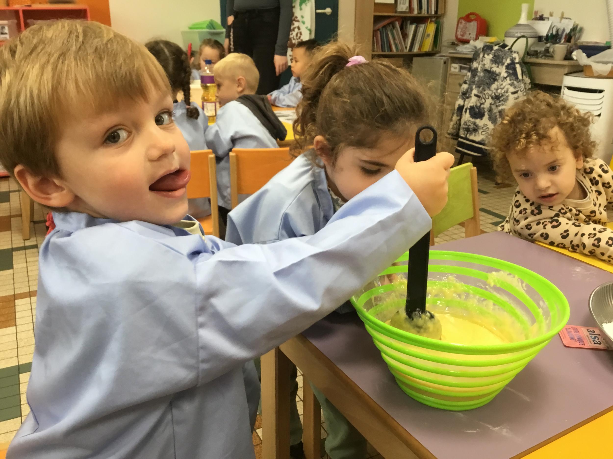 Petite et moyenne section 29/09/2024 Cette semaine nous avons préparé des gâteaux et fêté les anniversaires d’Alba, Amélie, Jane, Martin B, Martin M, Merwane et Adam. L’atelier pâtisserie Jour de fête Le bonhomme du mois de septembre