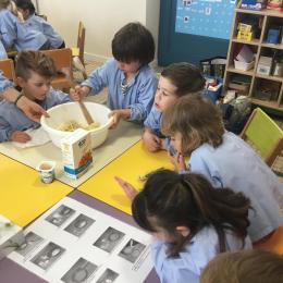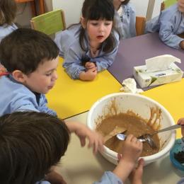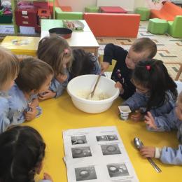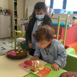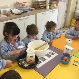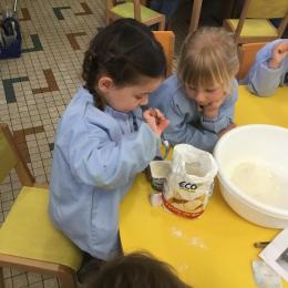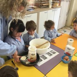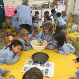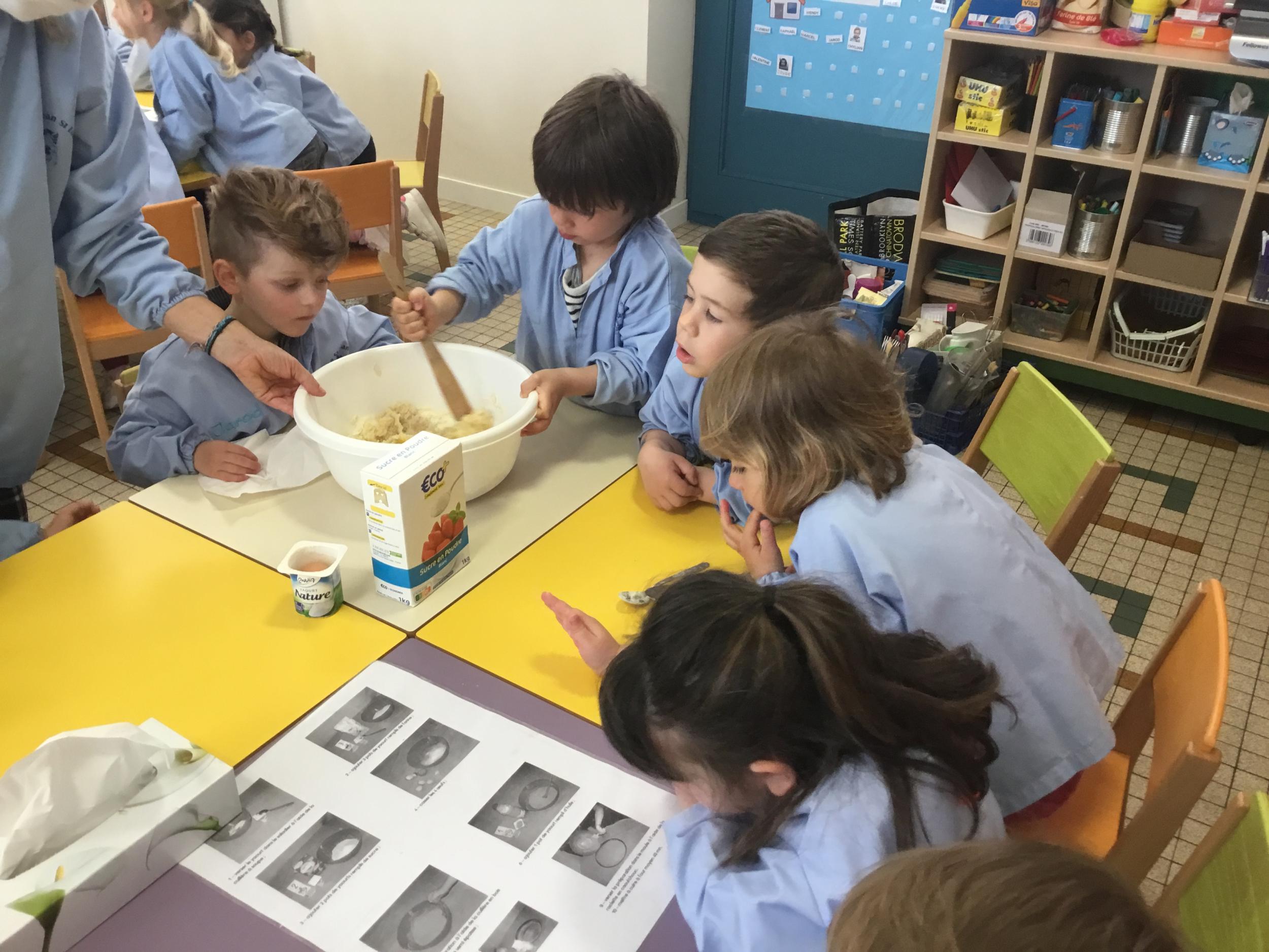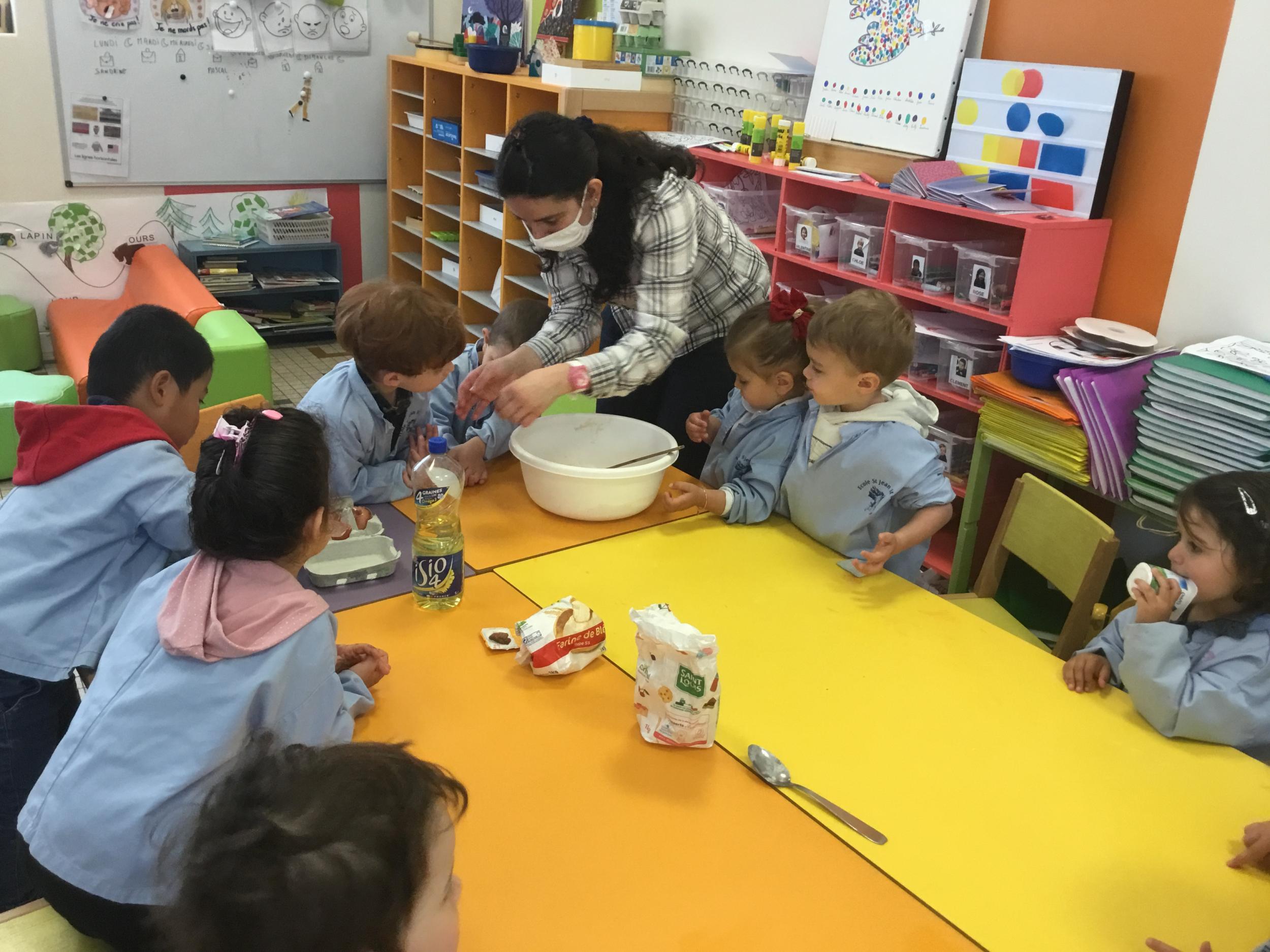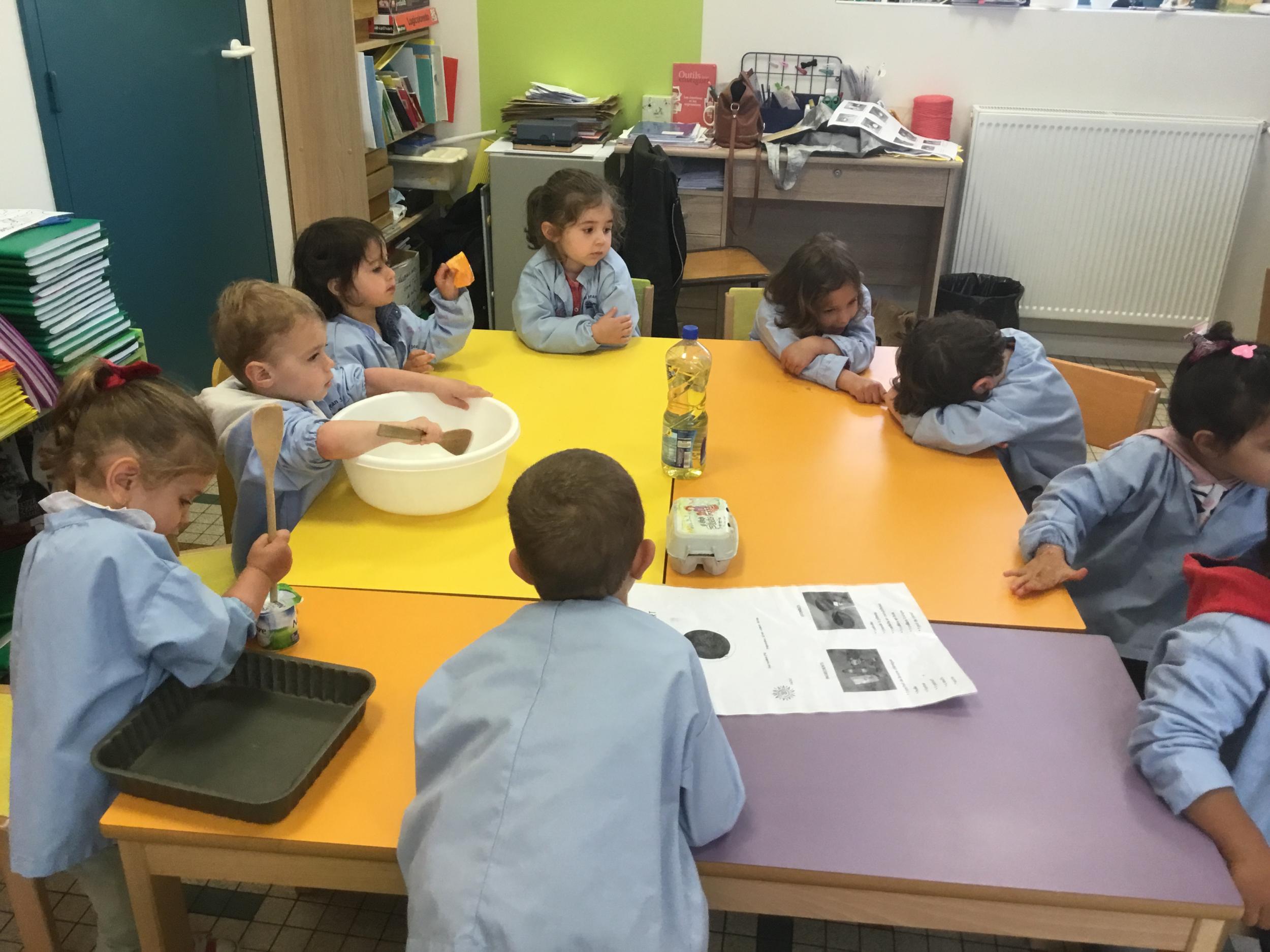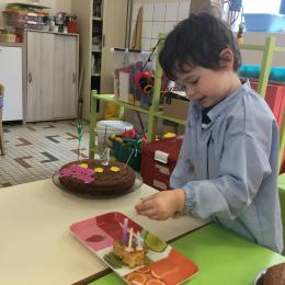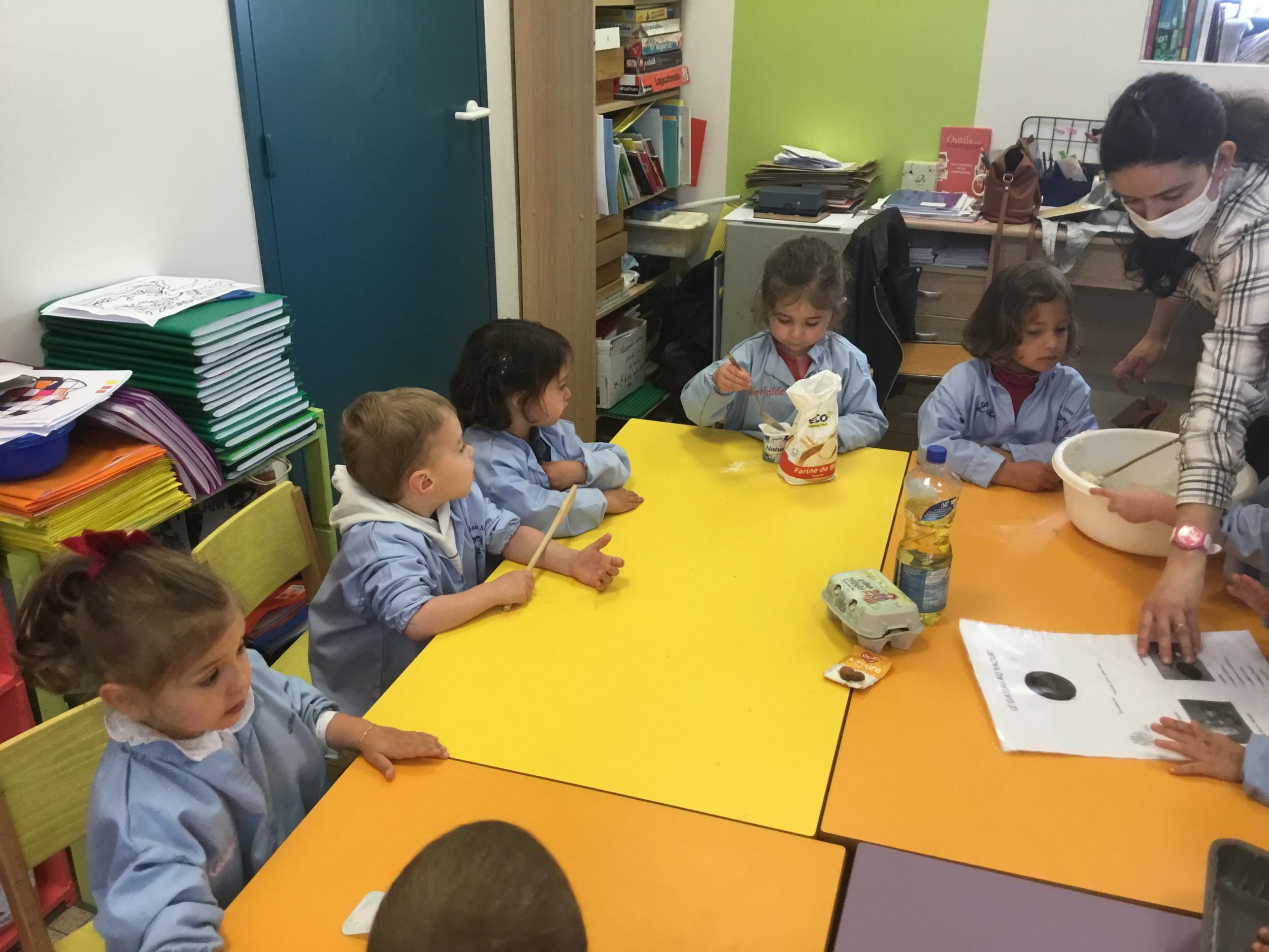 Petite et moyenne section 23/05/2021 Ce lundi, atelier pâtisserie pour fêter les anniversaires d’Olivia qui a fêté ses 3 ans et Claire, Jean, Flavio et Gauthier qui ont eu 4 ans.