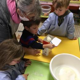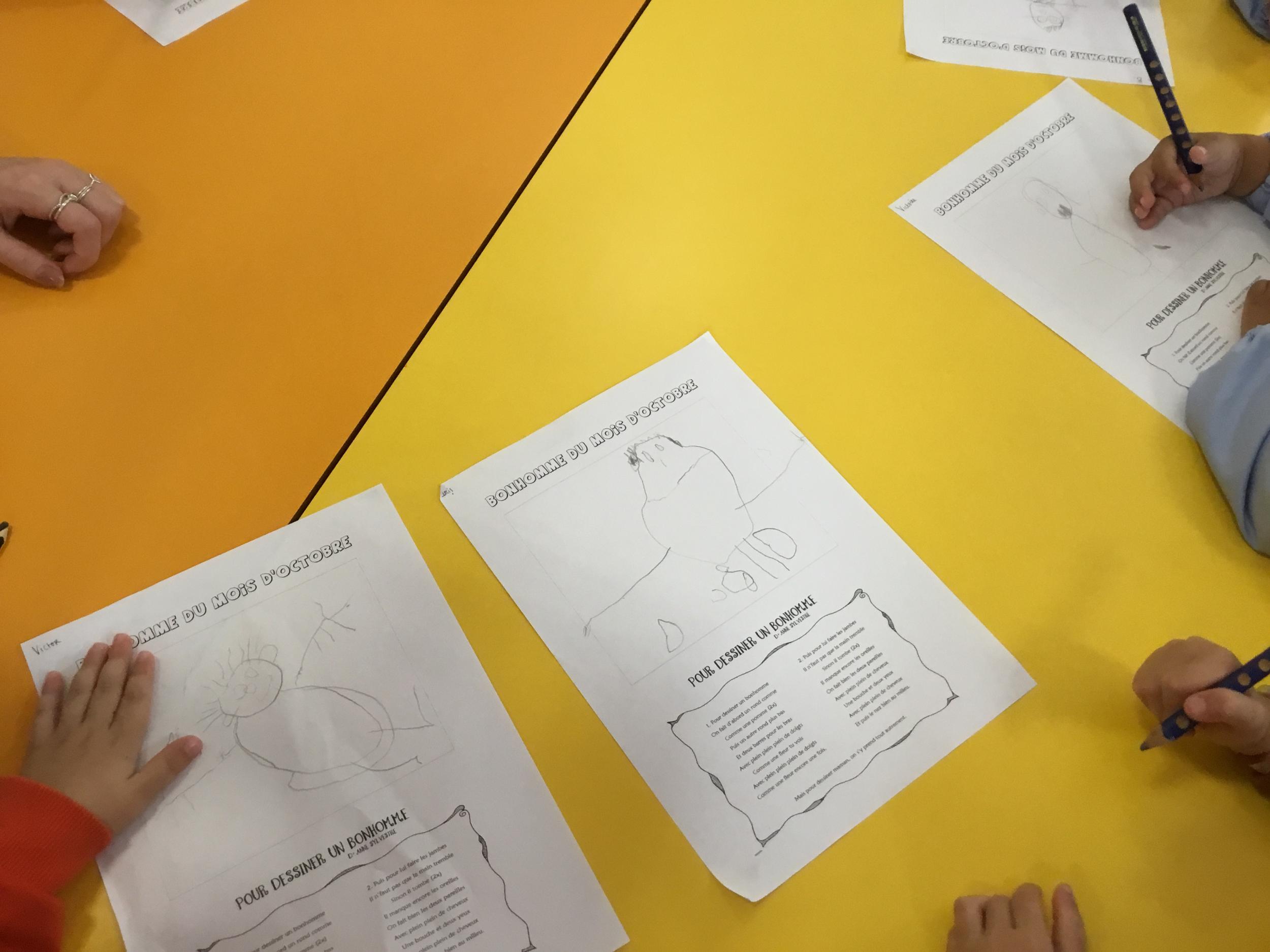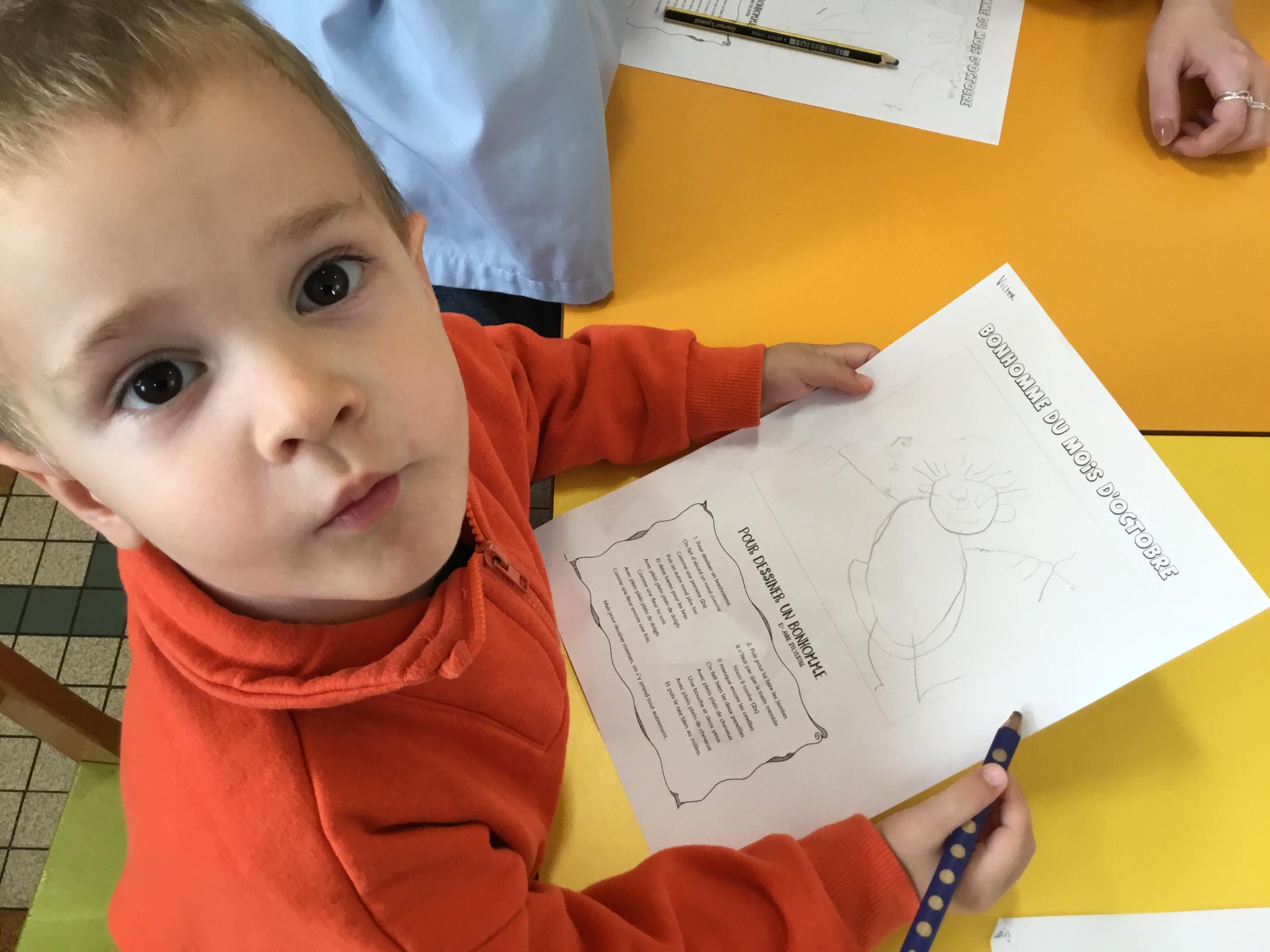 Petite et moyenne section 05/11/2023 Nous avons fêté ce mois d’octobre l’anniversaire d’Ilona et Tomi. L’atelier patisserie Jour de fête Le bonhomme du mois avec la chanson d’Anne Sylvestre « Pour dessiner un bonhomme »