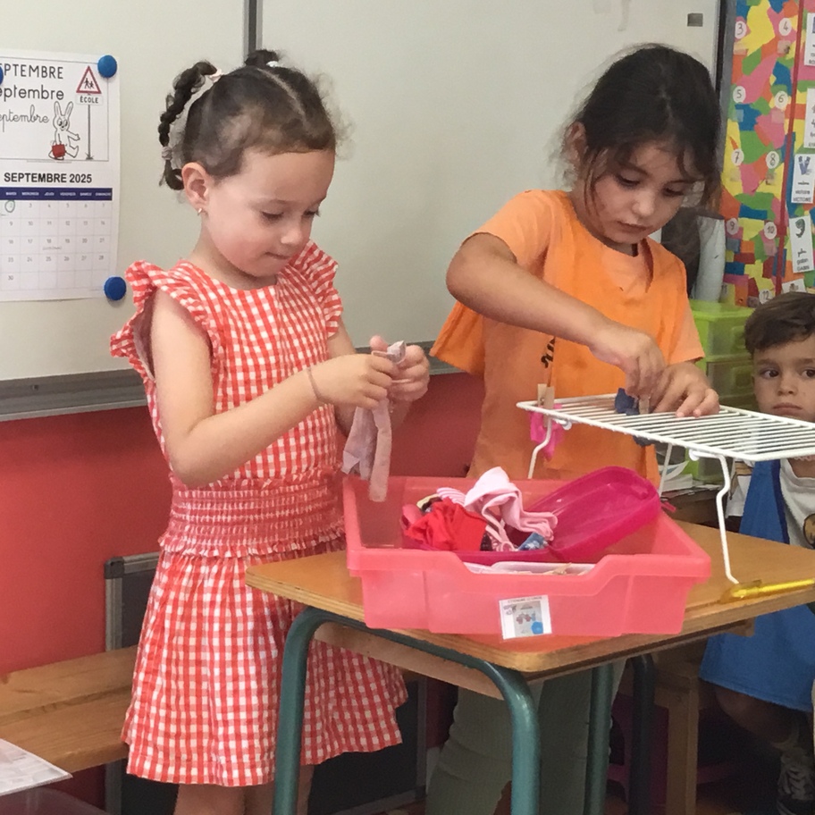 Les Moyennes sections disposent de leur propre plan de travail. En effet, un espace est réservé aux jeux qui leurs sont proposés. En ce début d'année, ils pourront aussi utiliser quelques jeux de manipulation des Grandes Sections, car ce sont des jeux avec des pinces pour muscler les doigts et apprendre à mieux tenir son crayon pour écrire, dessiner...