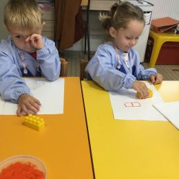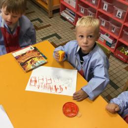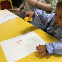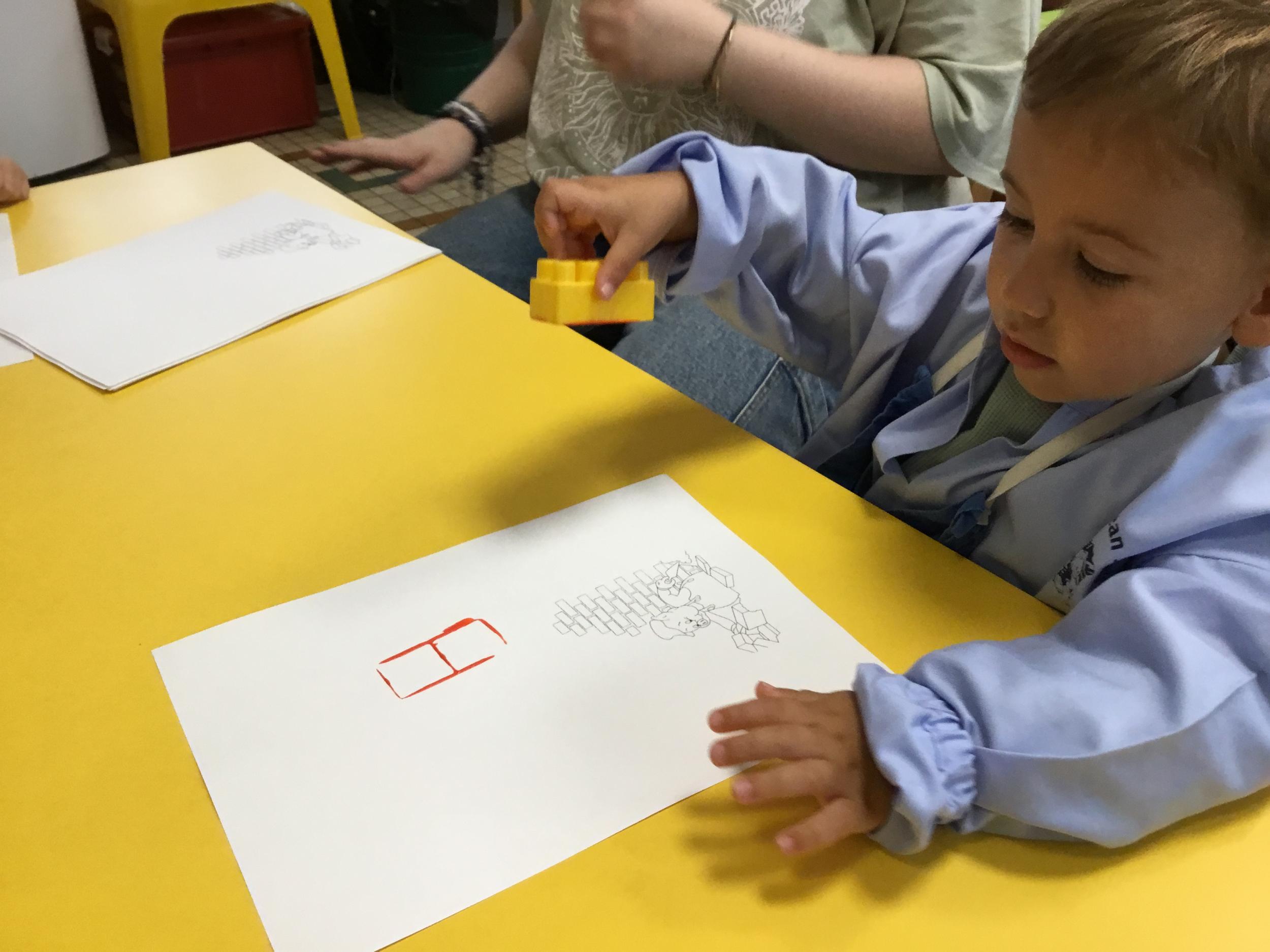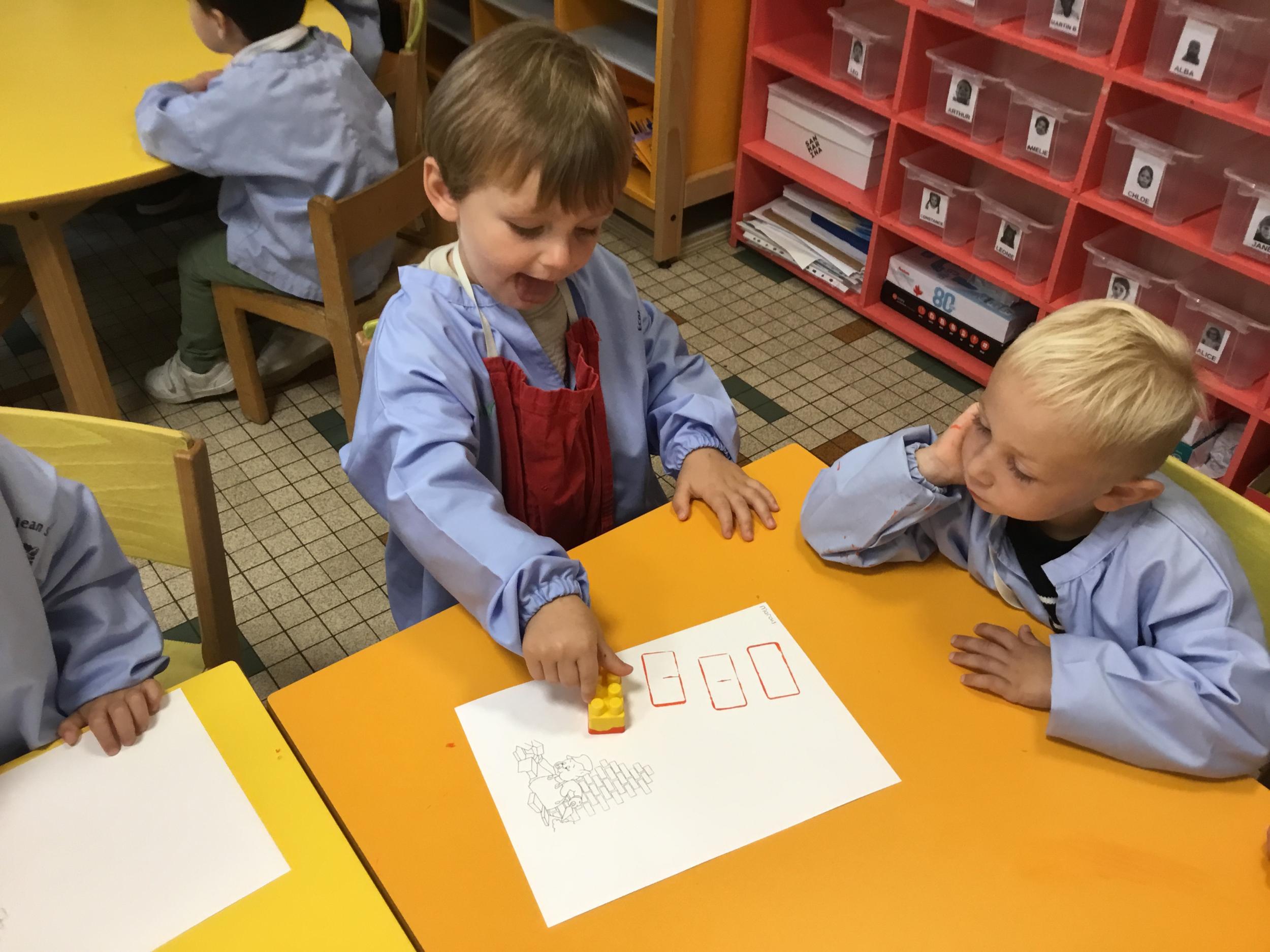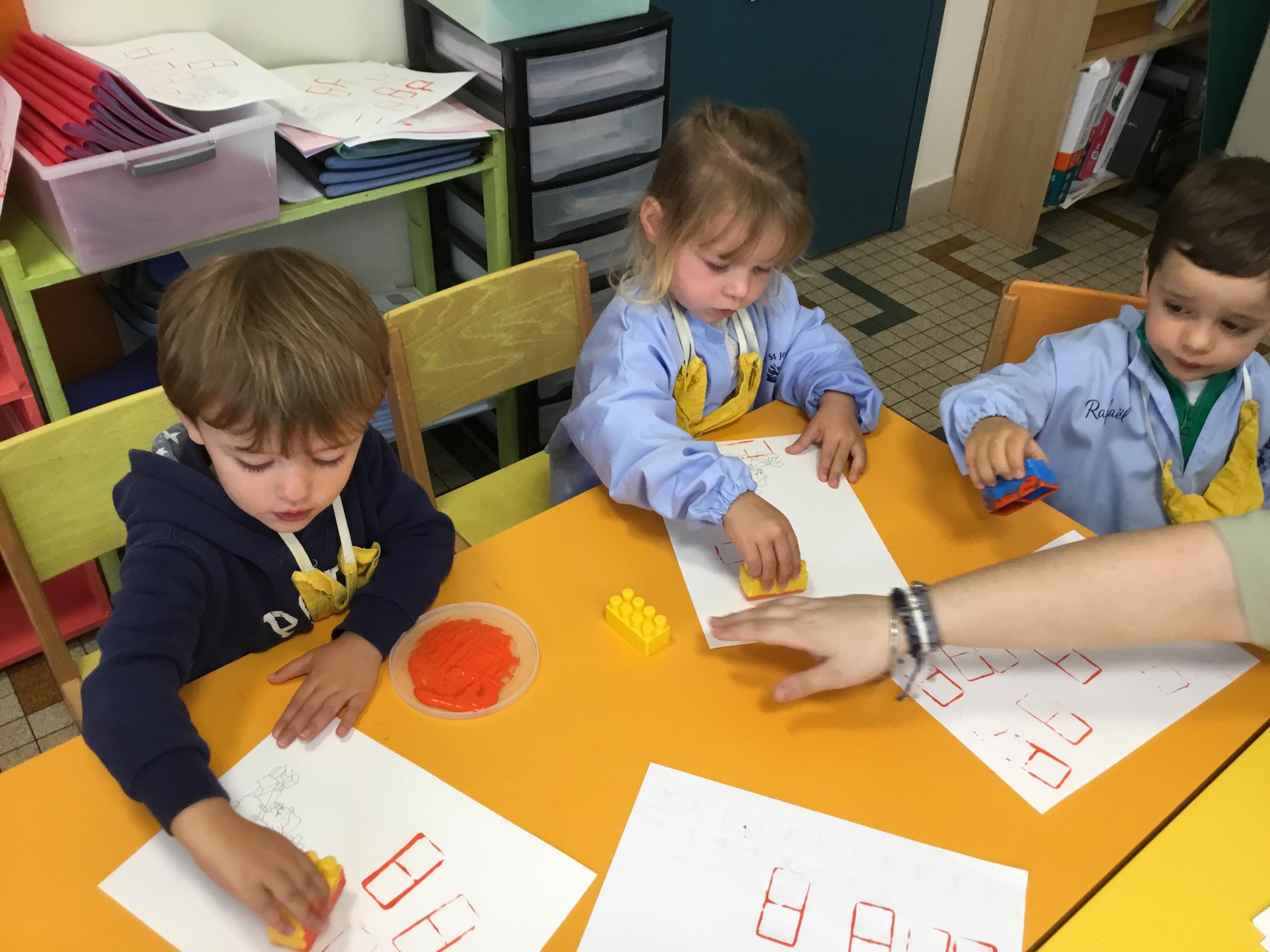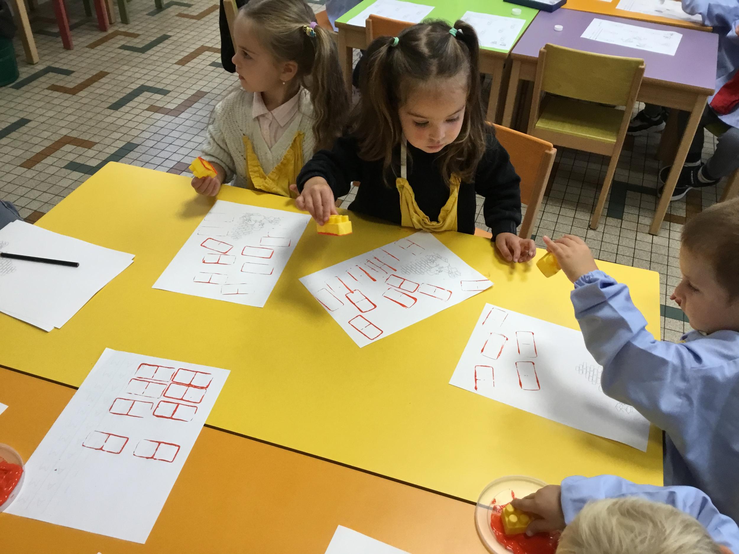 Les élèves ont travaillé autour de l’album lu en classe « je ne veux pas aller à l’école » et, en arts, ils ont commencé un travail sur les traces laissées avec différents outils. La première trace est réalisée à partir d’un légo.