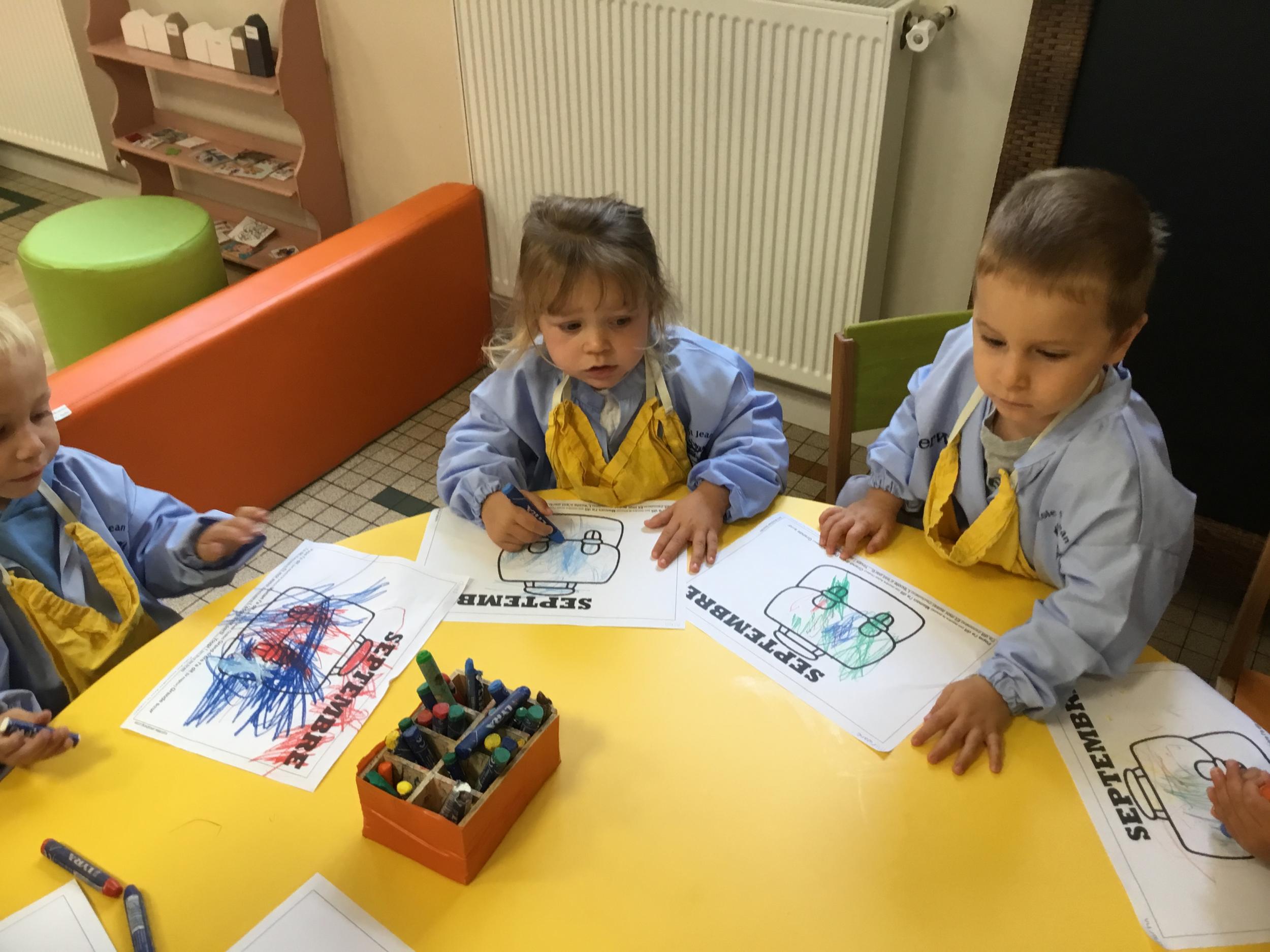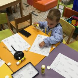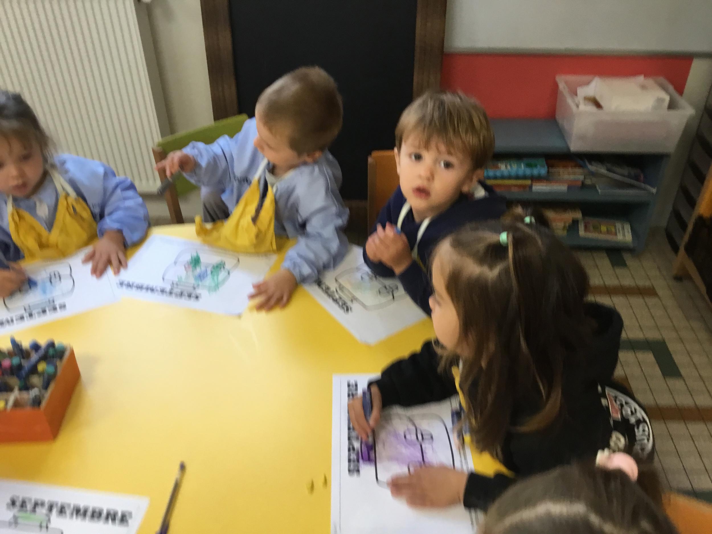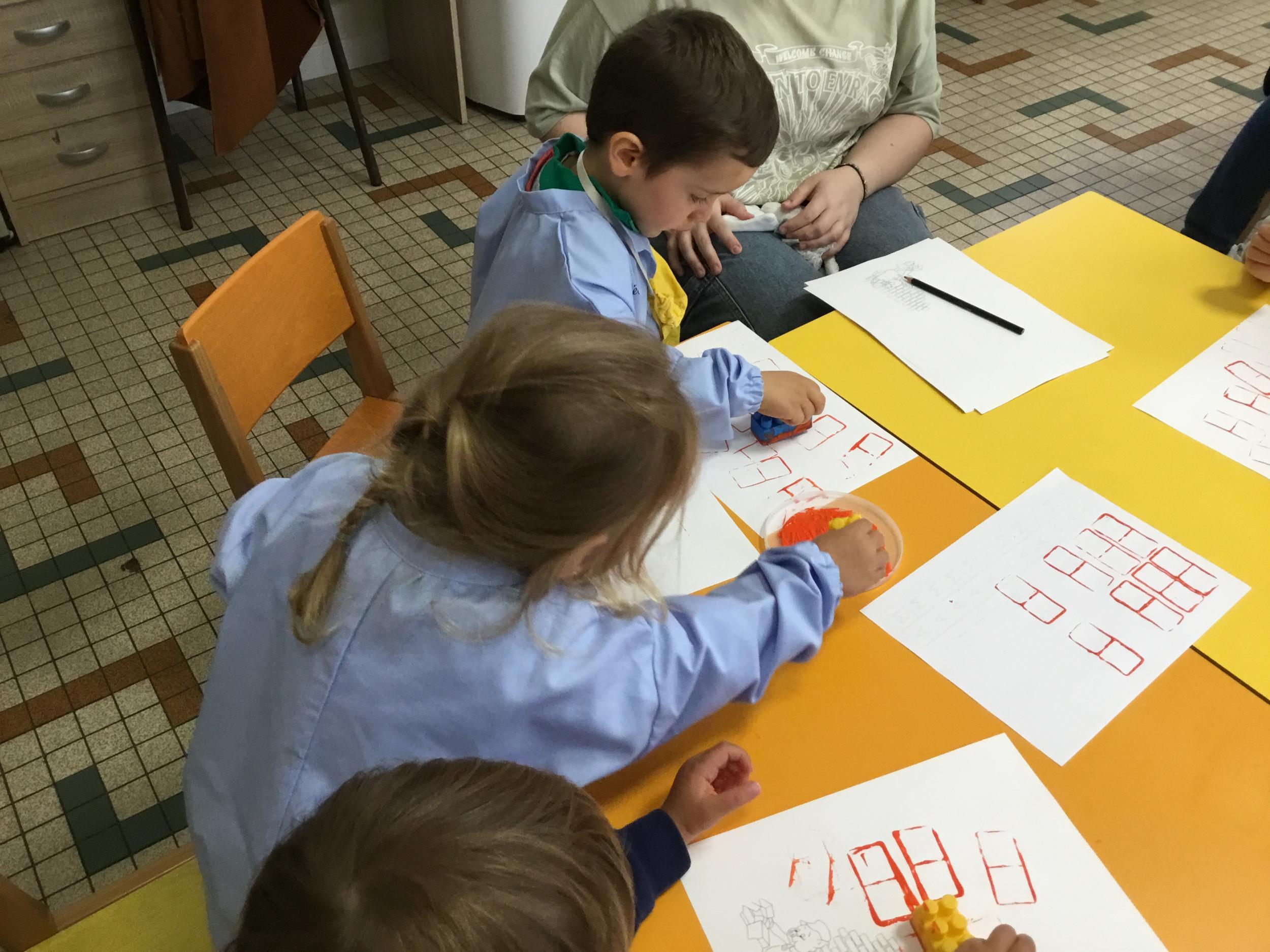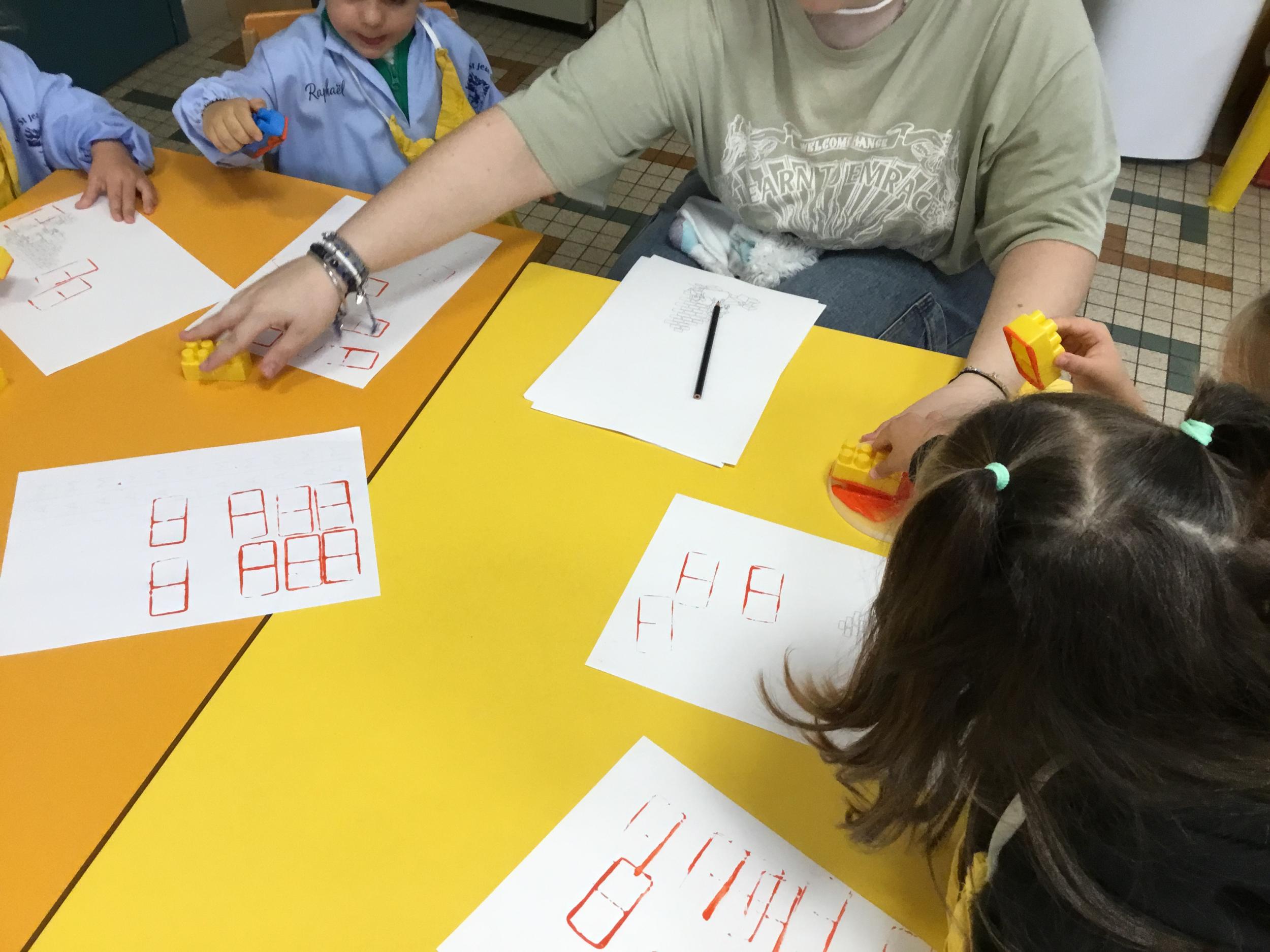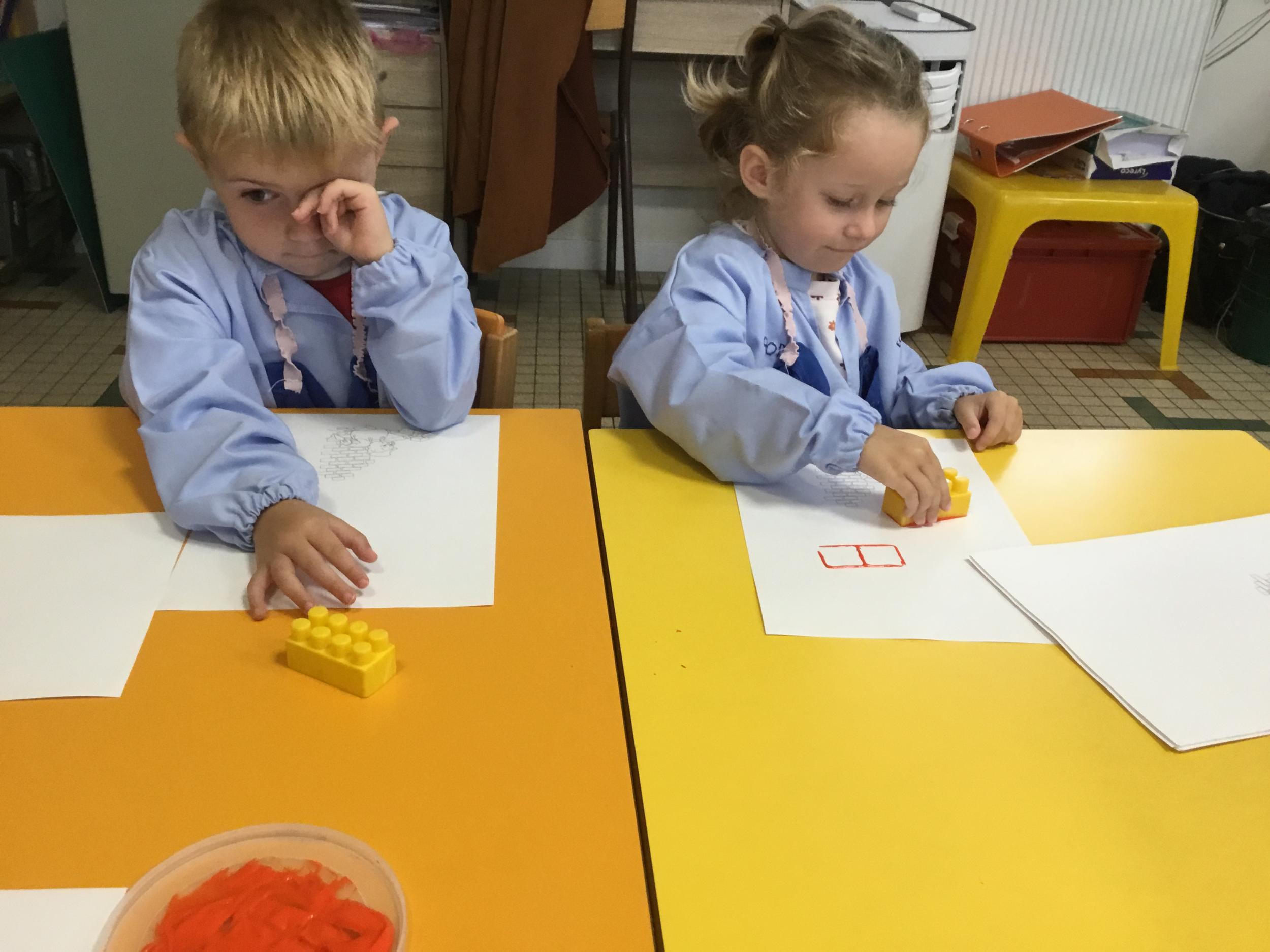 Les élèves ont travaillé autour de l’album lu en classe « je ne veux pas aller à l’école » et, en arts, ils ont commencé un travail sur les traces laissées avec différents outils. La première trace est réalisée à partir d’un légo.
