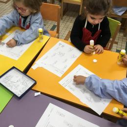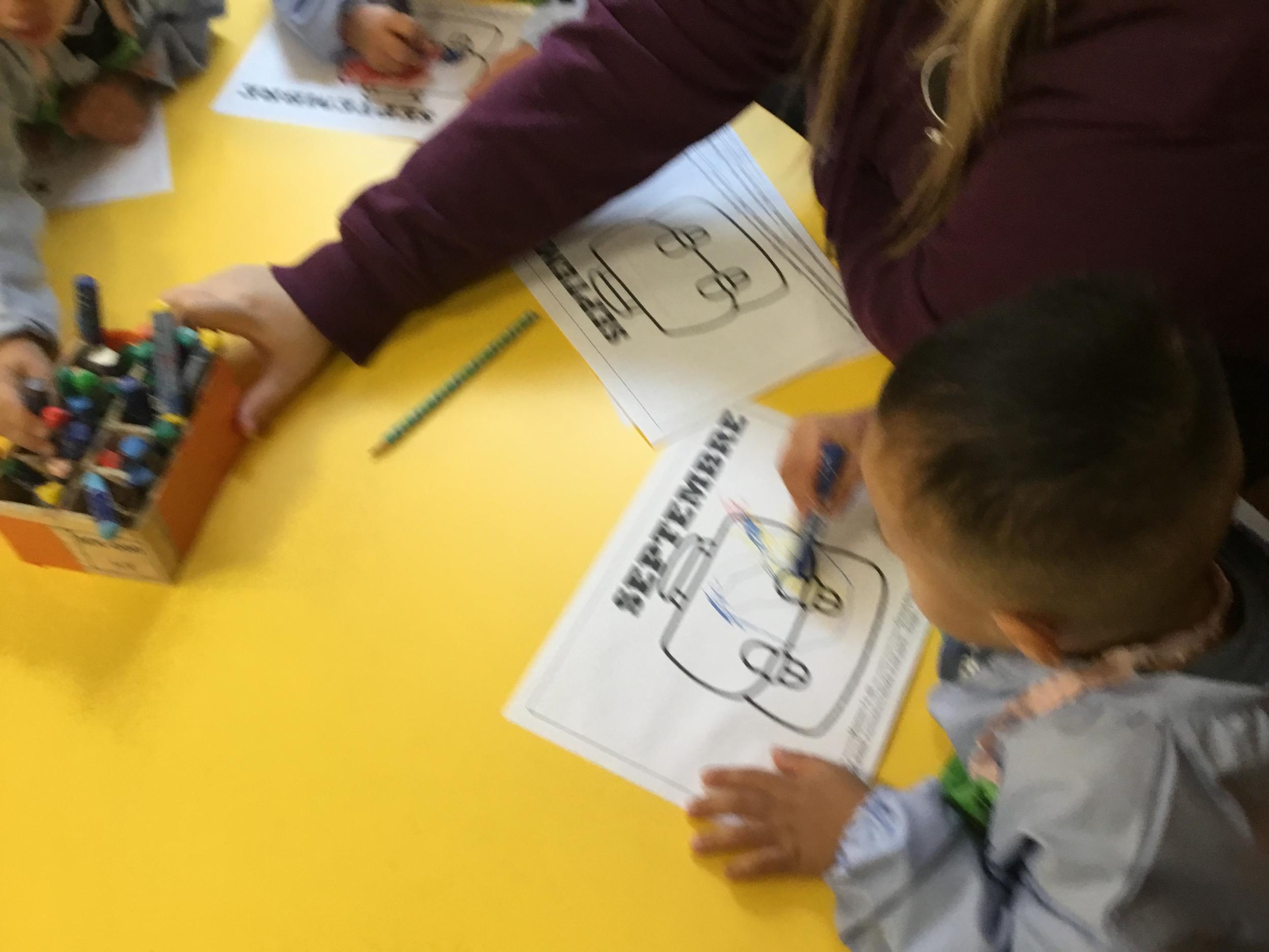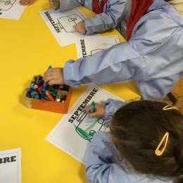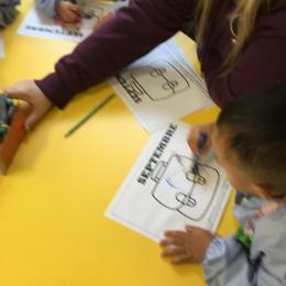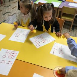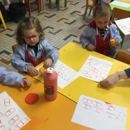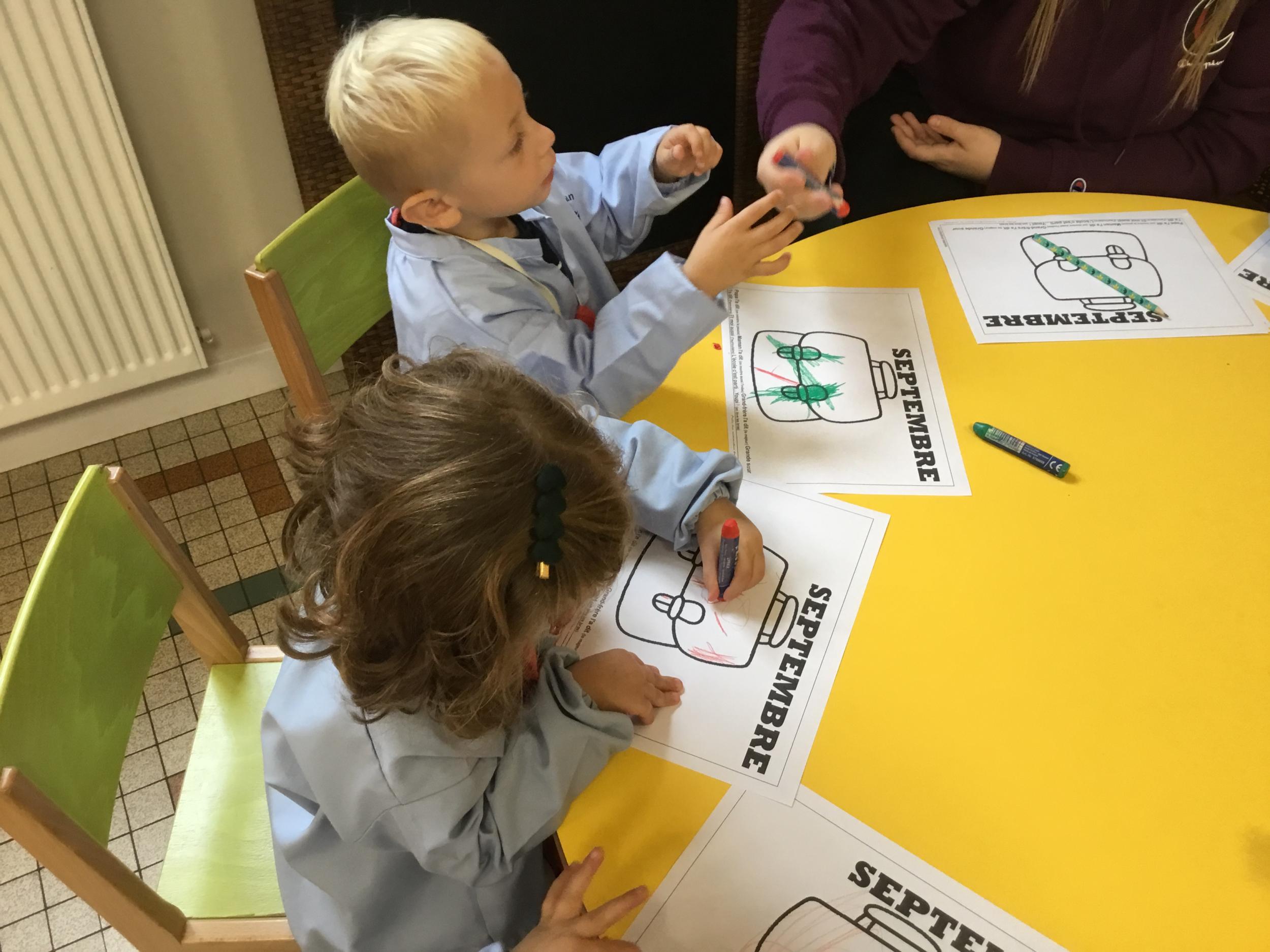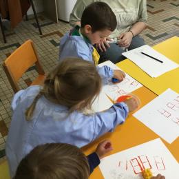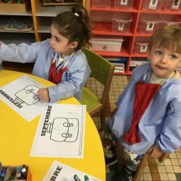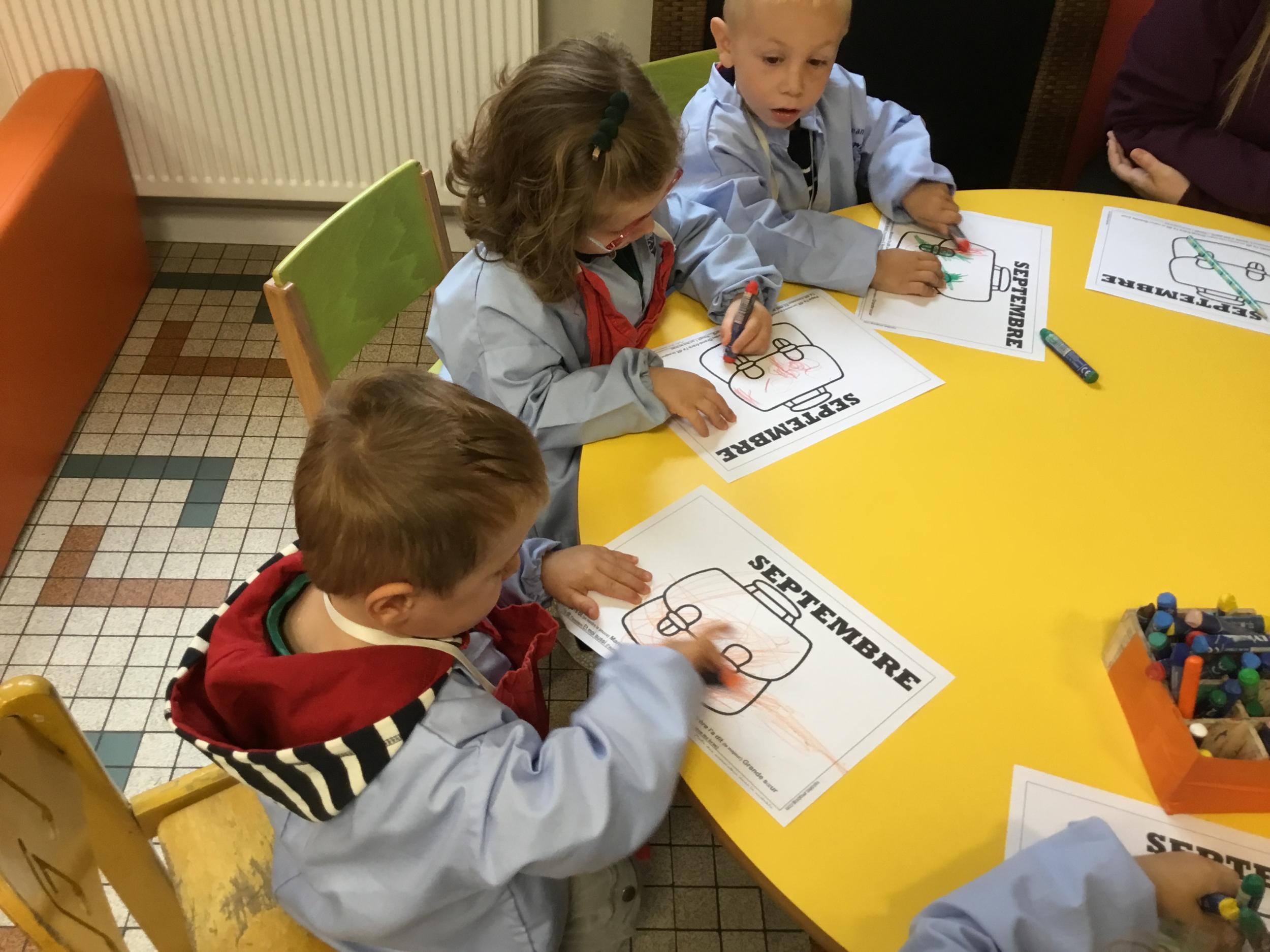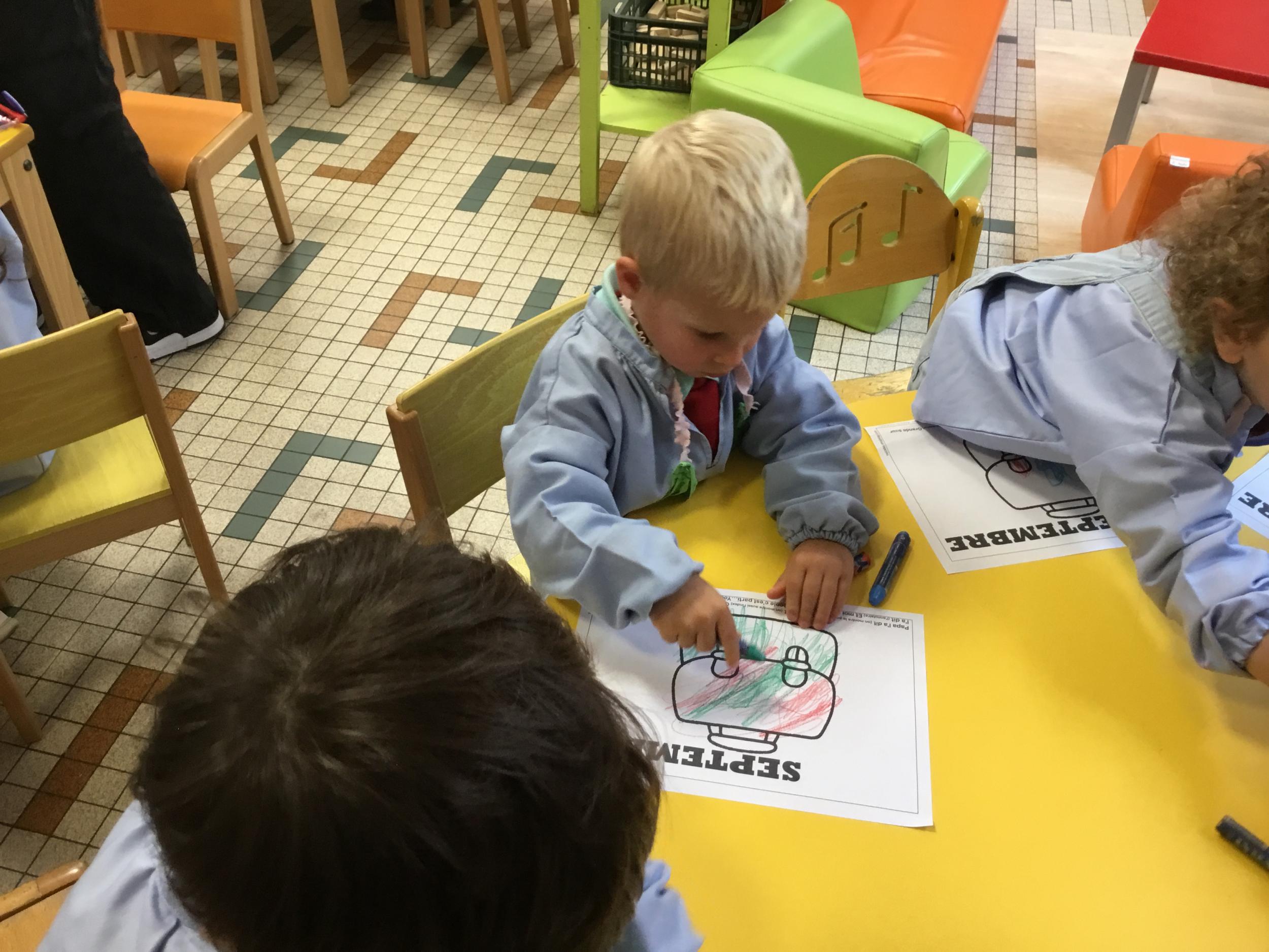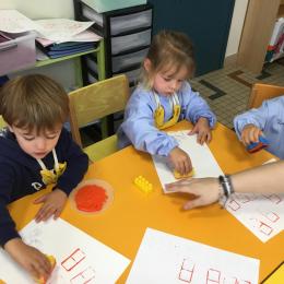 Les élèves ont travaillé autour de l’album lu en classe « je ne veux pas aller à l’école » et, en arts, ils ont commencé un travail sur les traces laissées avec différents outils. La première trace est réalisée à partir d’un légo.