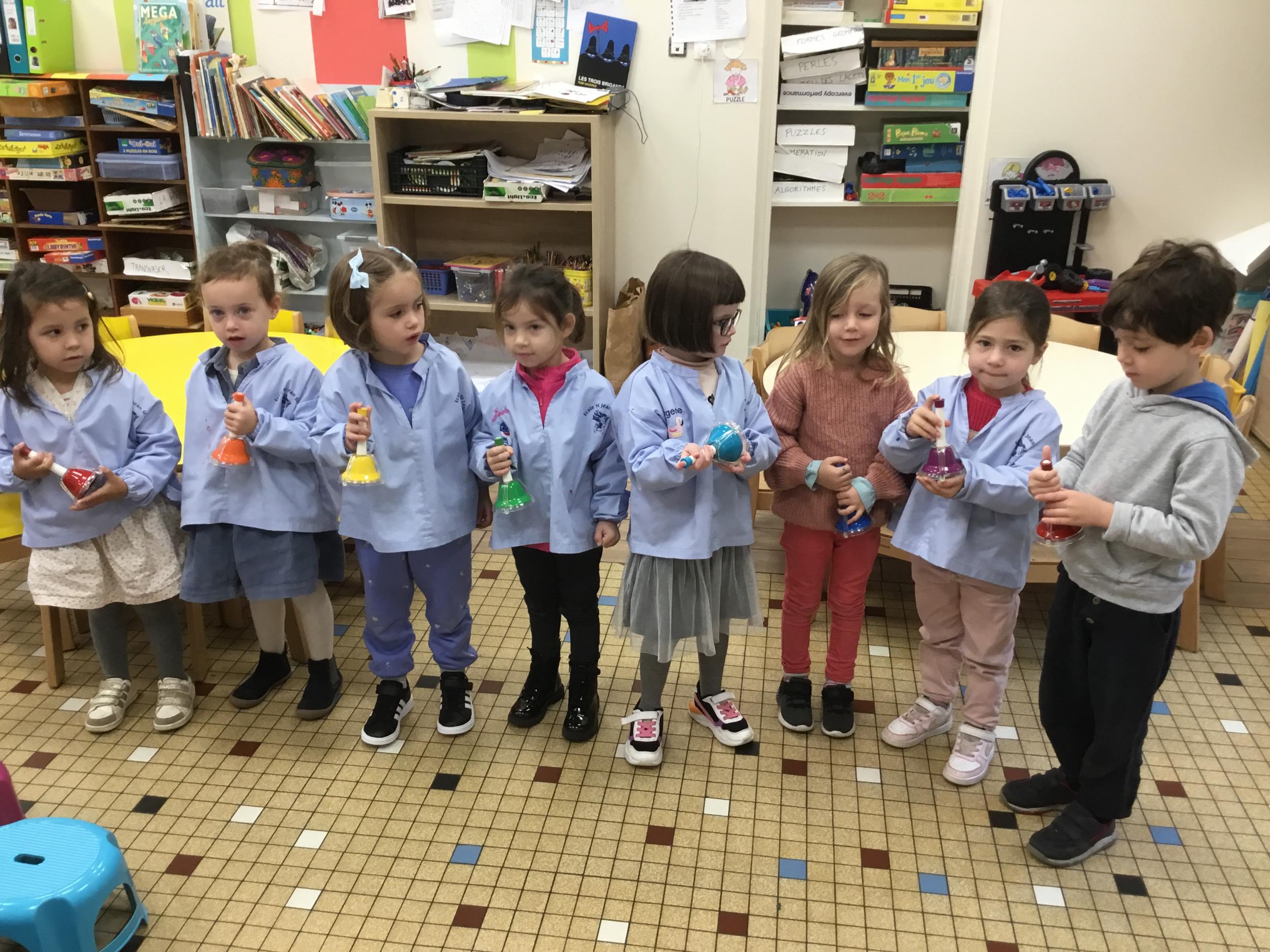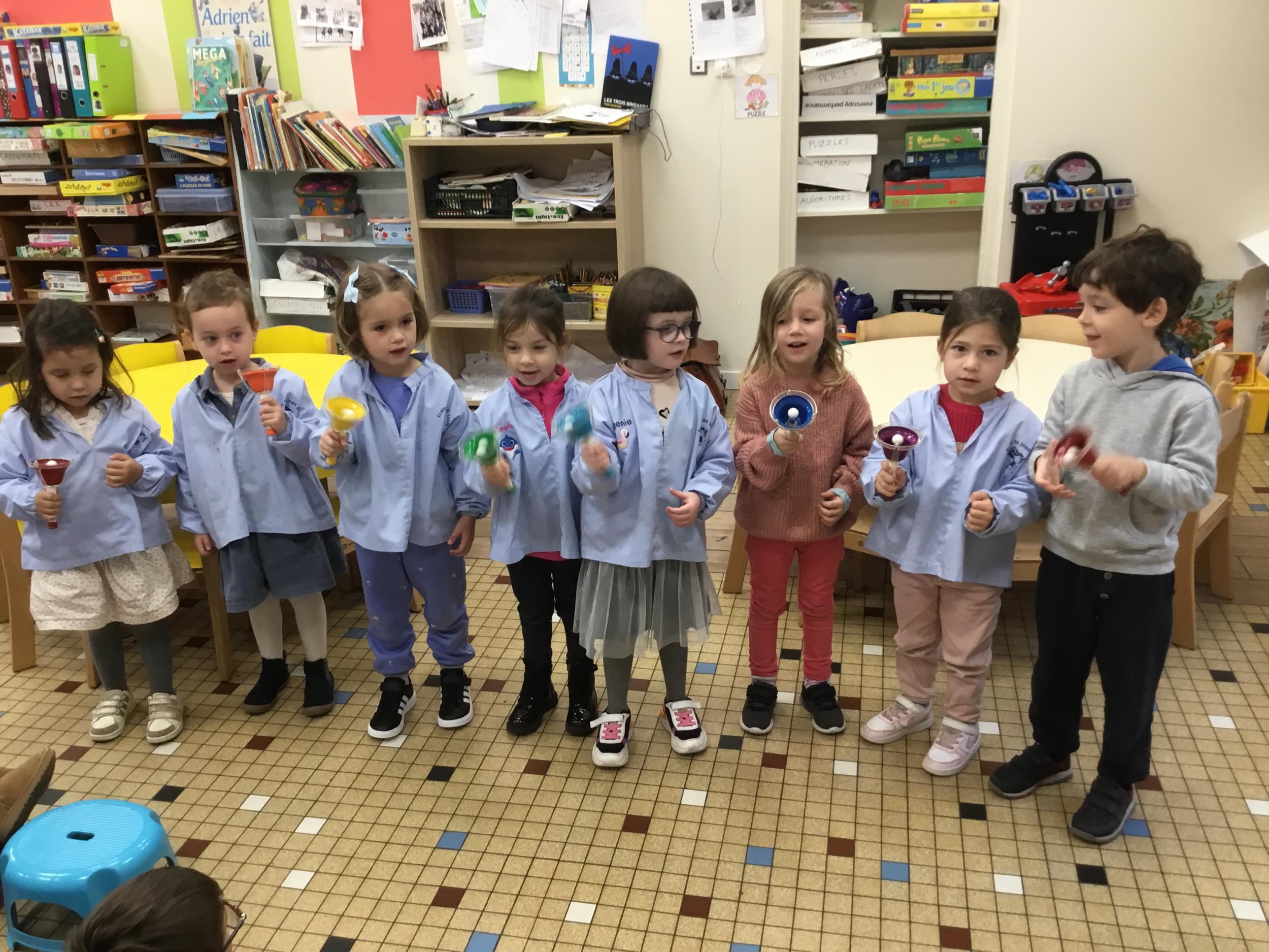 Nous avons utilisé les clochettes Montessori pour apprendre la chanson de « farandole de Noël ».