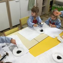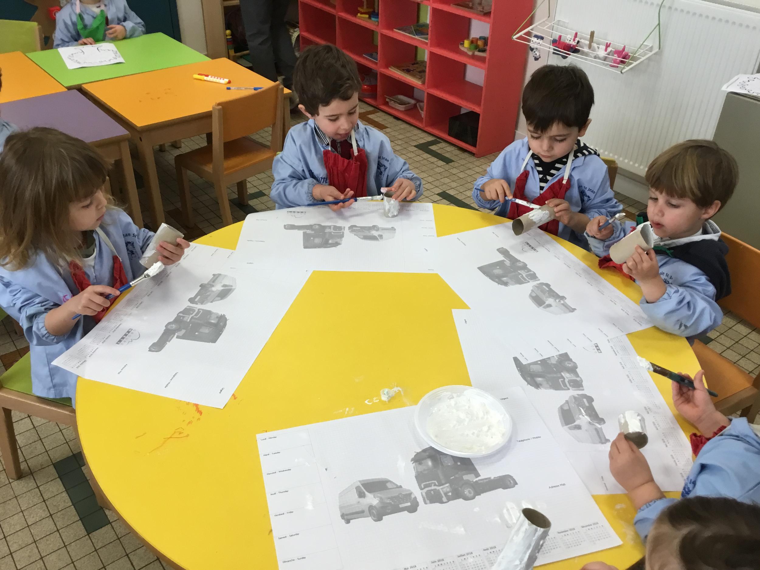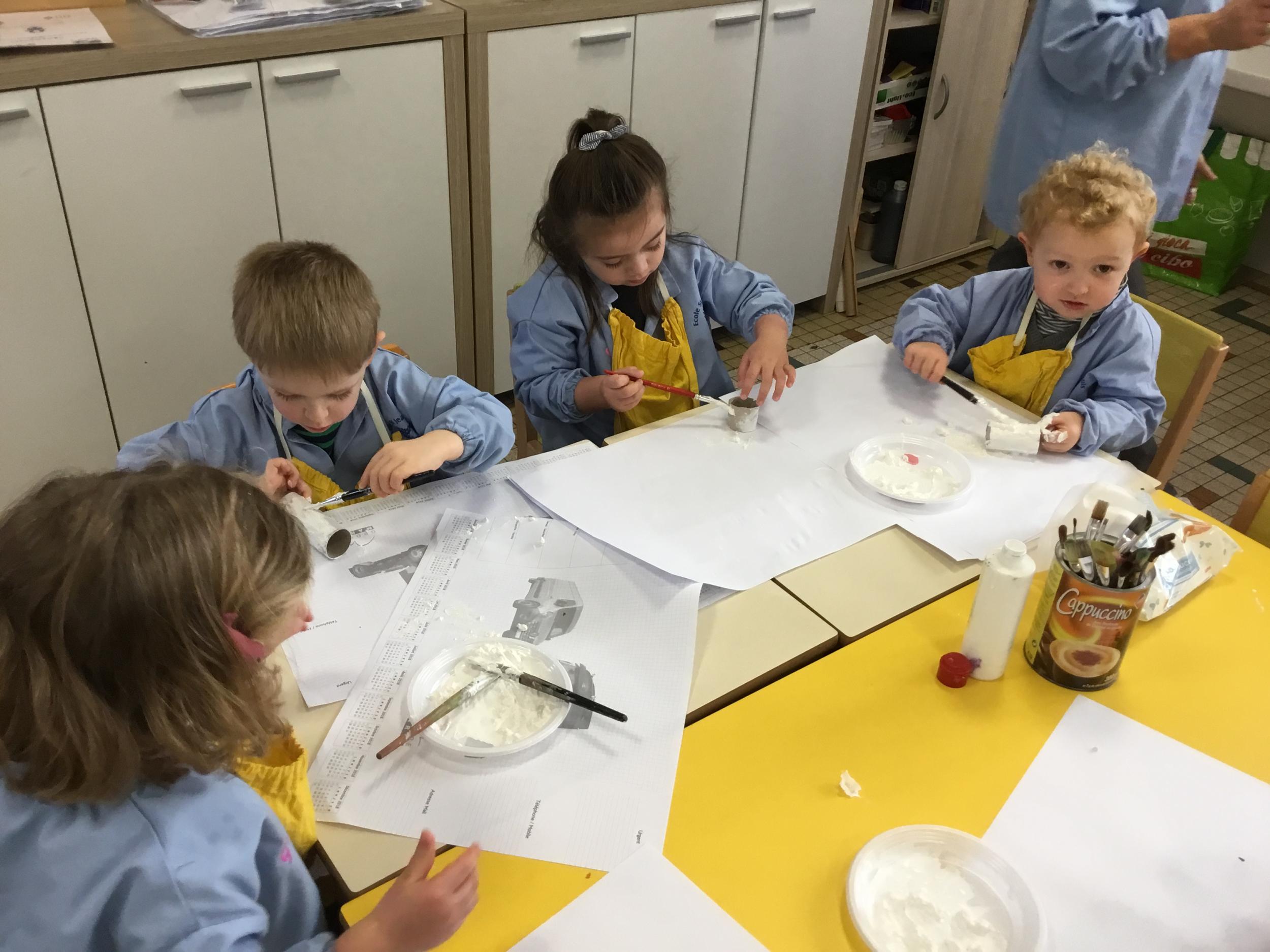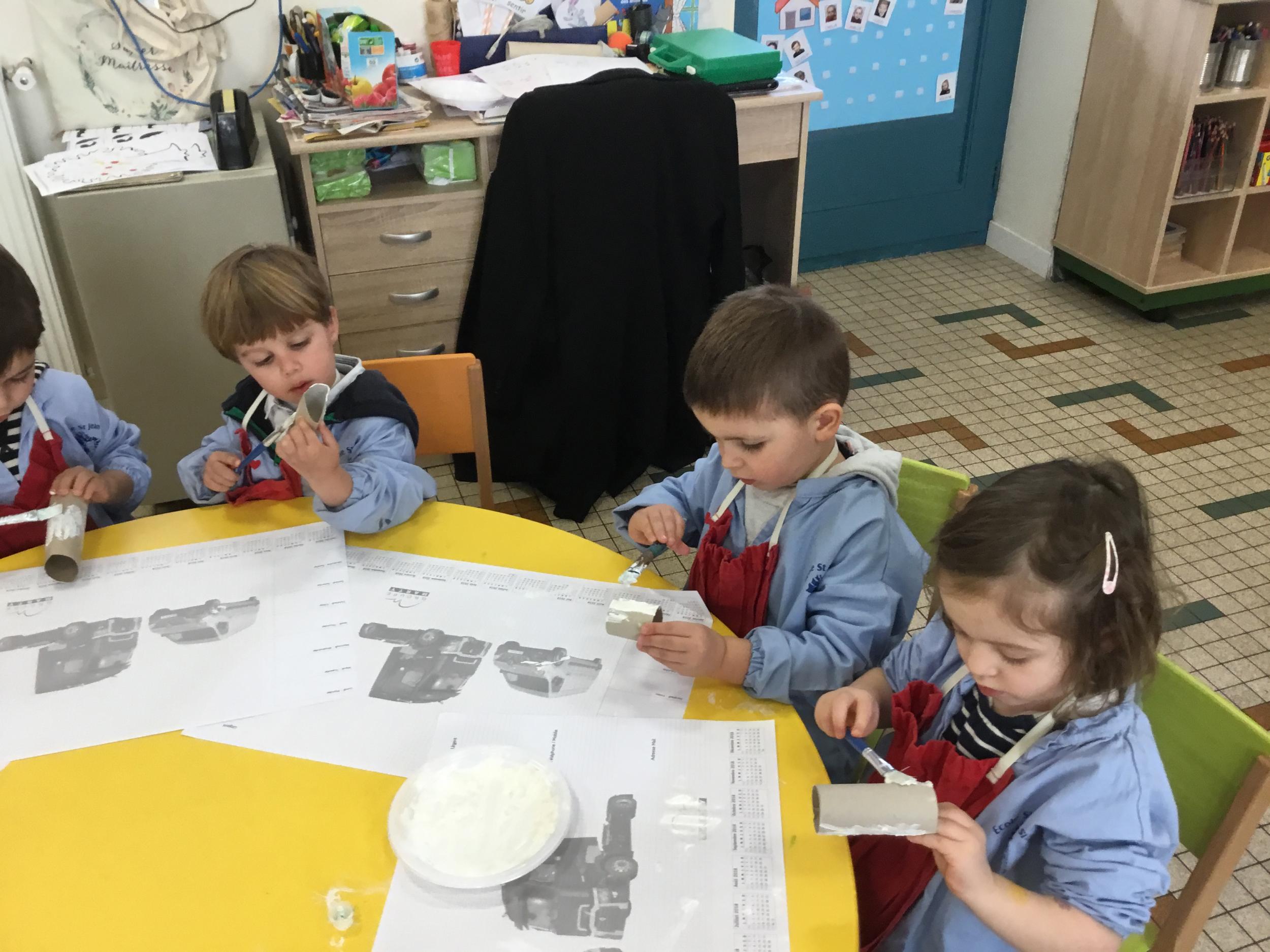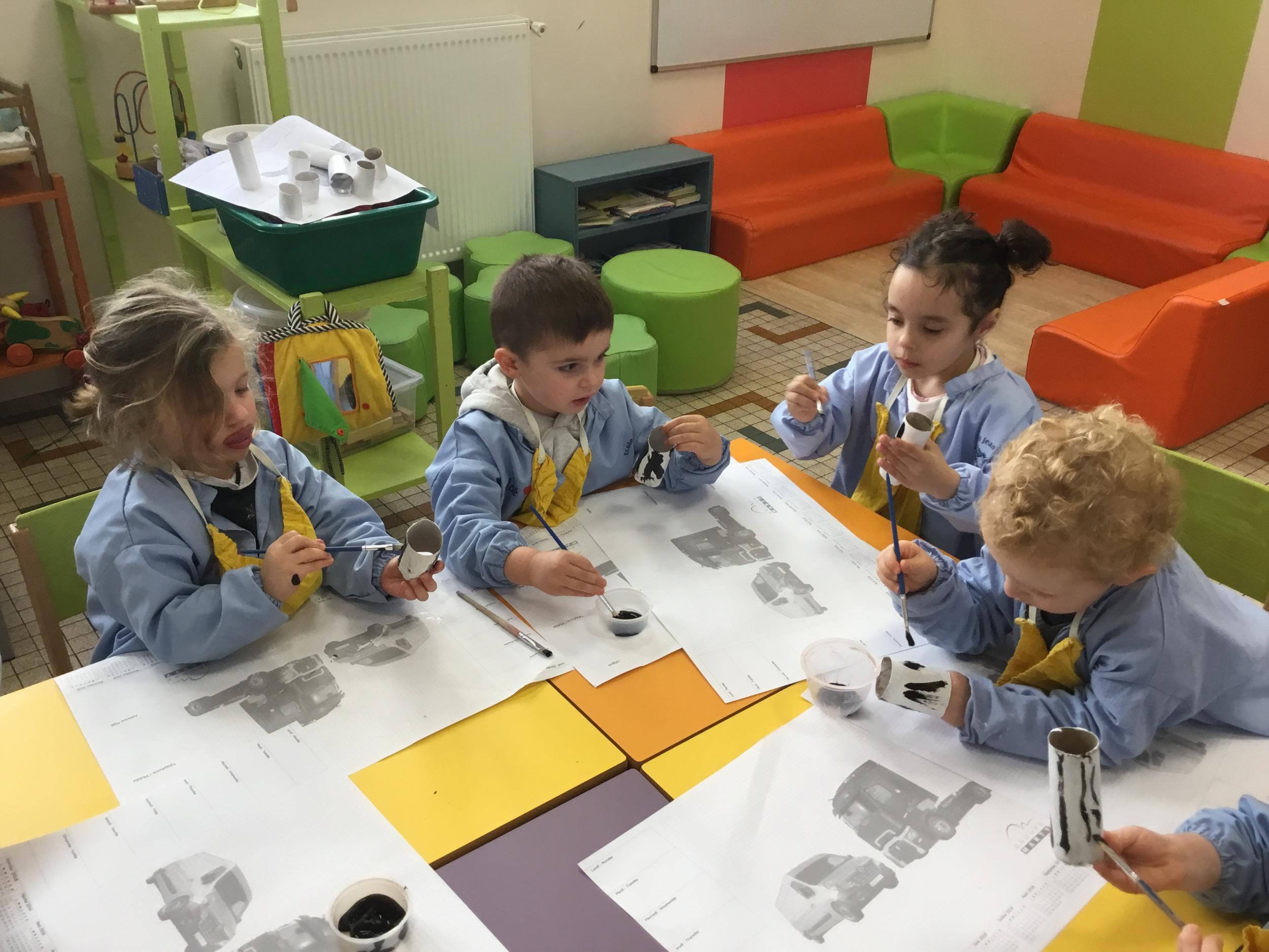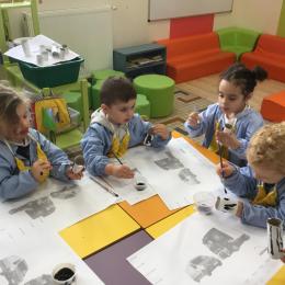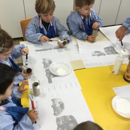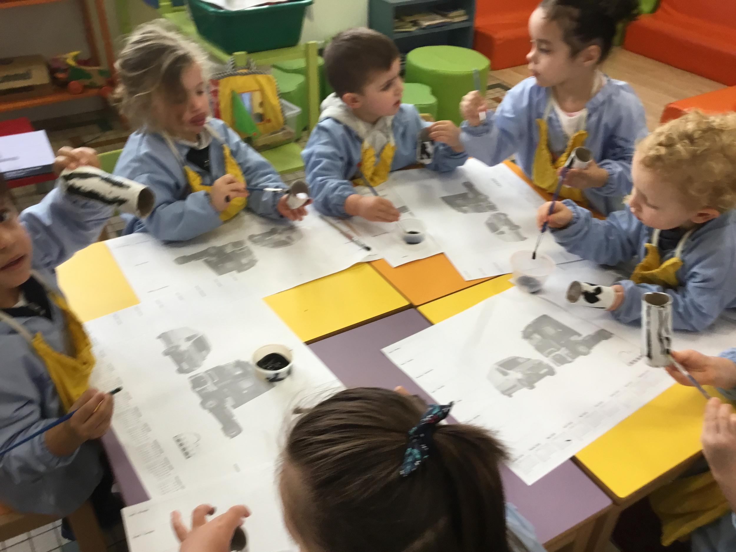 01/03/2020 Pour clôturer le travail sur le trait vertical les élèves ont travaillé à partir des colonnes de Buren. Ils ont peint en blanc des rouleaux de carton puis à l’aide d’un pinceau, ils ont tracé des lignes verticales noires.