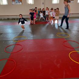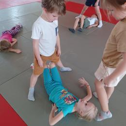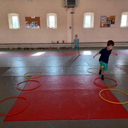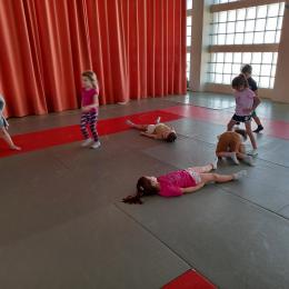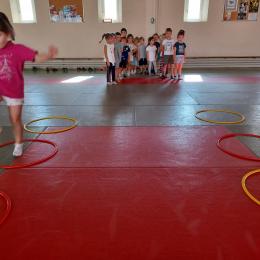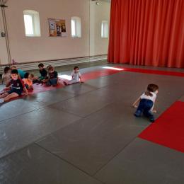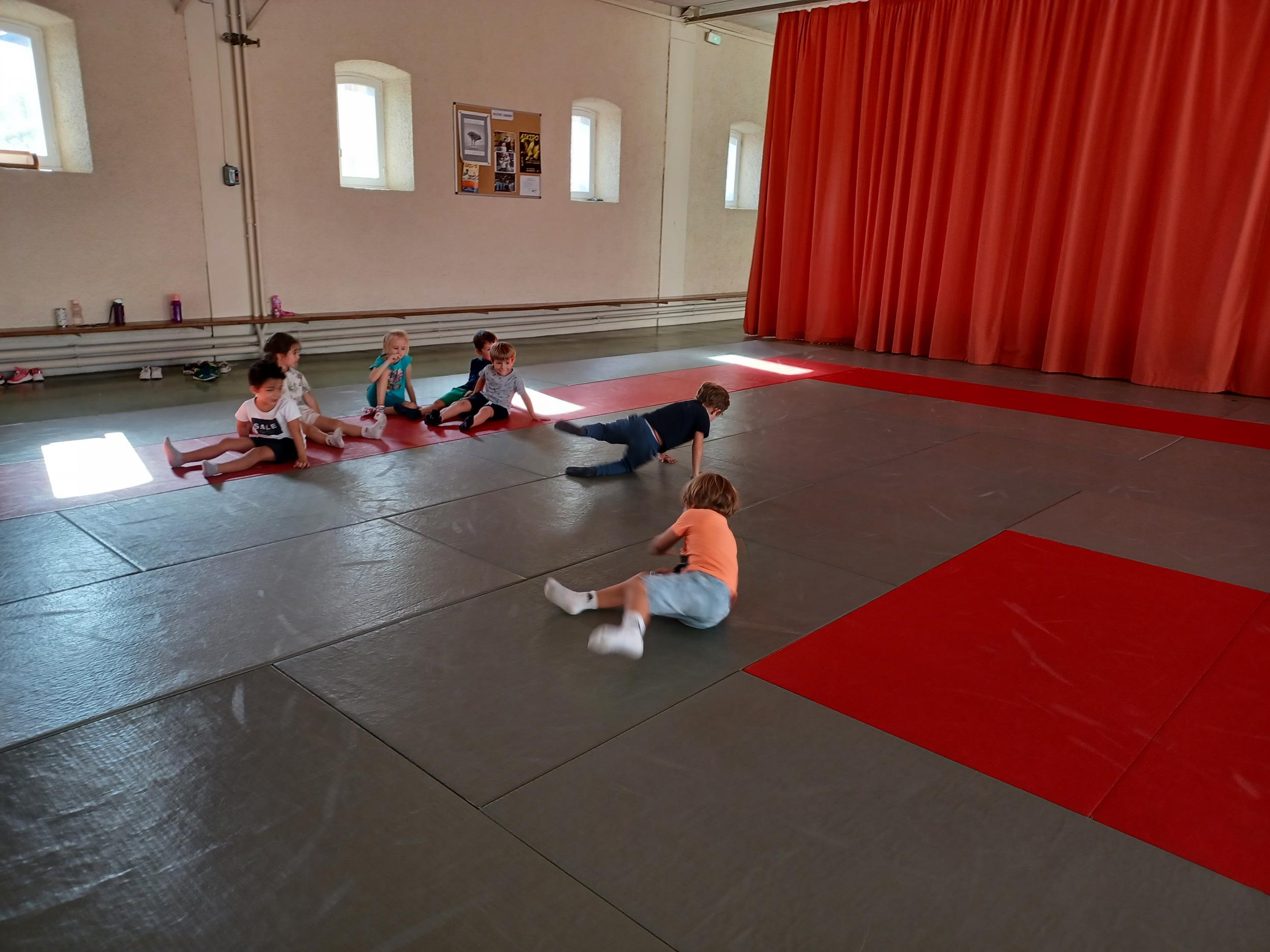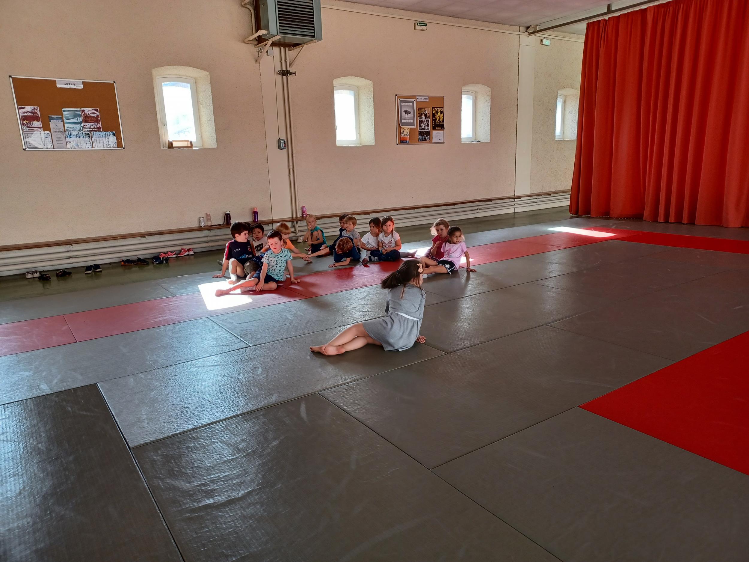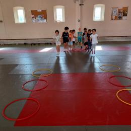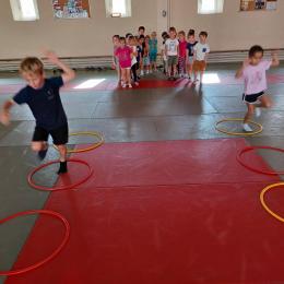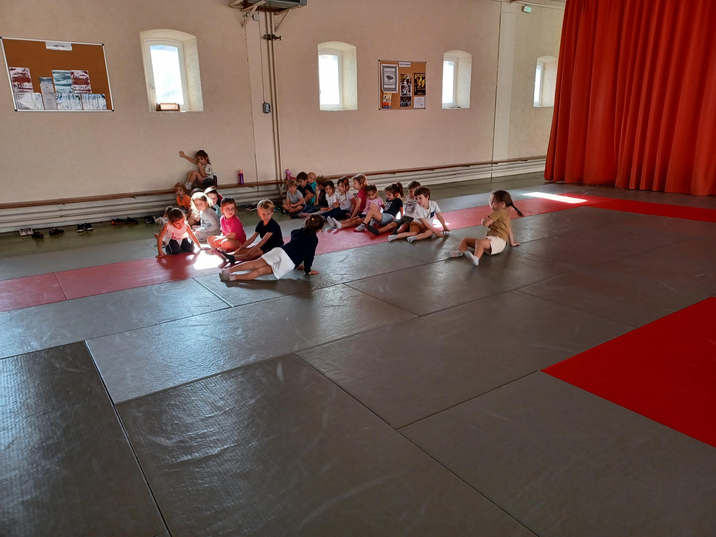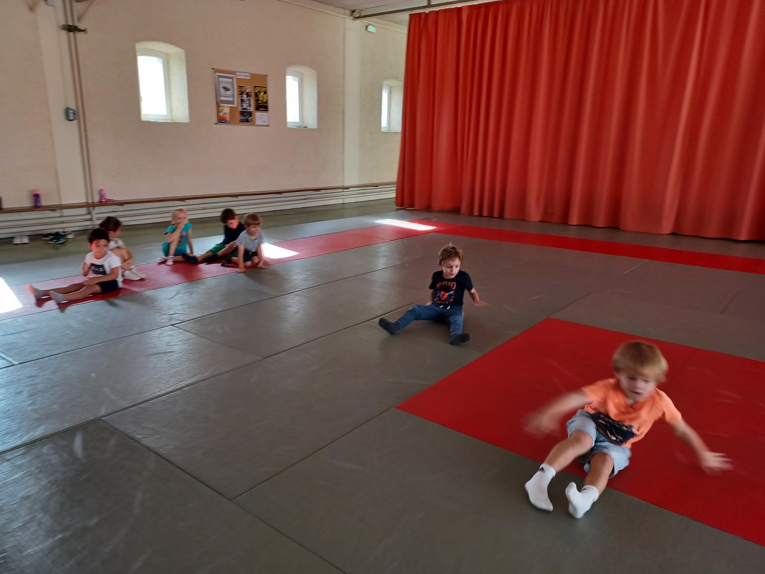 Tous les mardis après-midi, les grandes sections partent à la salle de sport. Nous avons travaillé, lors de ces premiers mois ,différentes façons de se déplacer, sur 3 niveaux : allongé, assis , et debout.