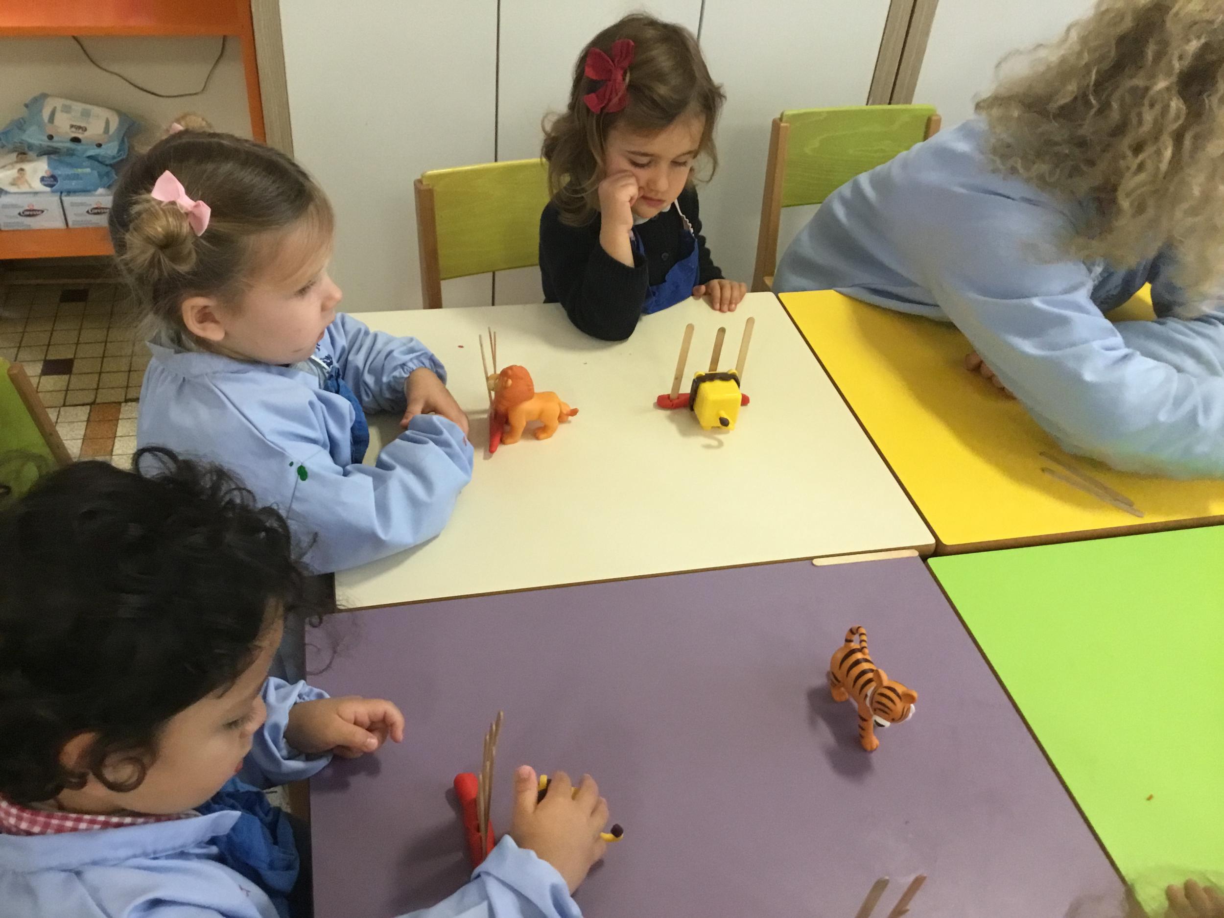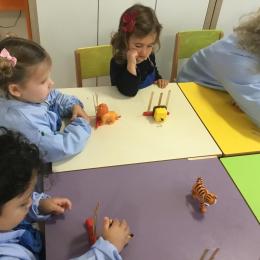 Cette histoire permet une découverte progressive du nouvel animal. Les élèves ont découvert au fil de l’histoire chaque partie de son corps et ont imaginé quel animal il pouvait être : des oreilles pointus... un renard, une chauve-souris ou un renard, des dents mordantes... un loup, une souris ou un tigre, des gros yeux... un hibou, des pattes griffus... un koala ou un lion.
