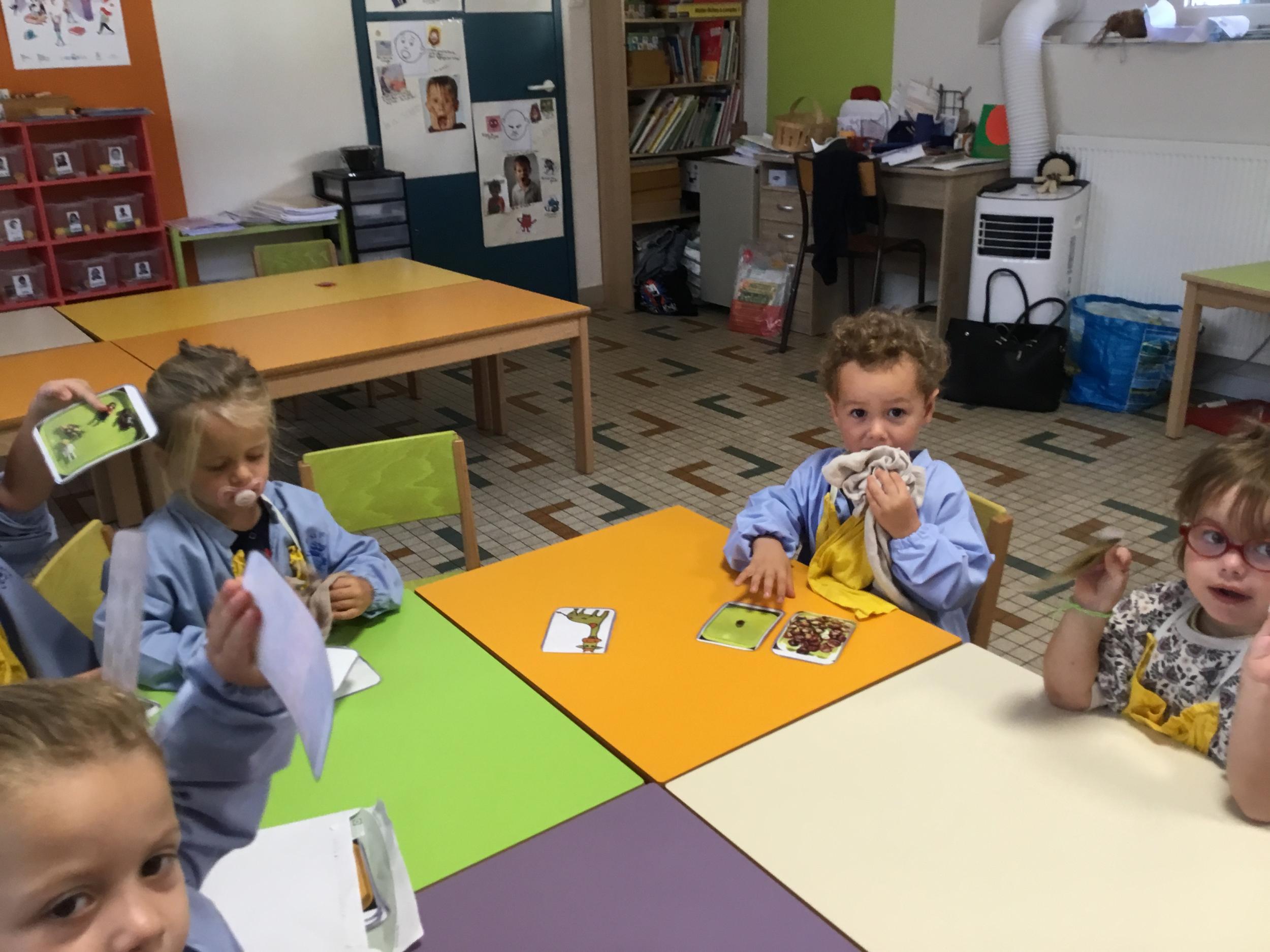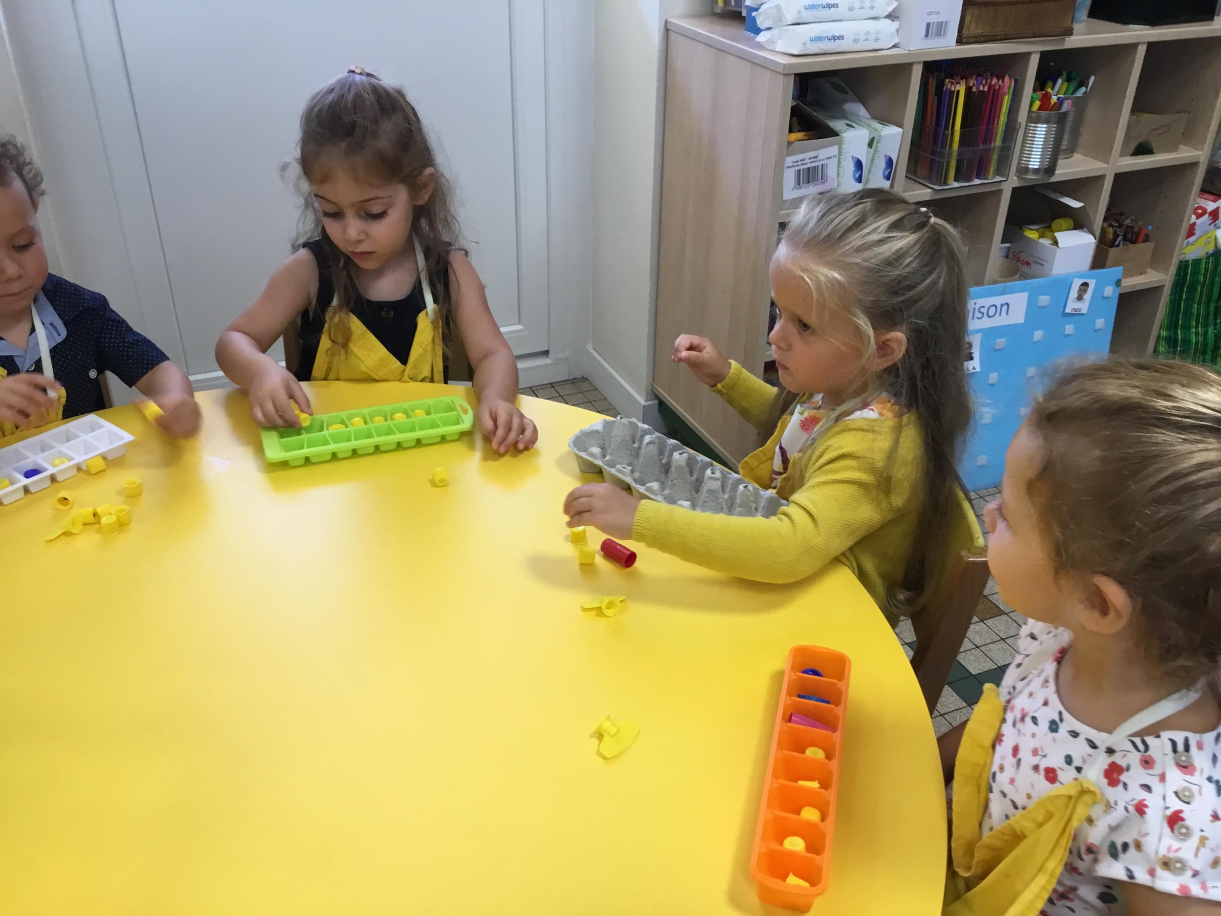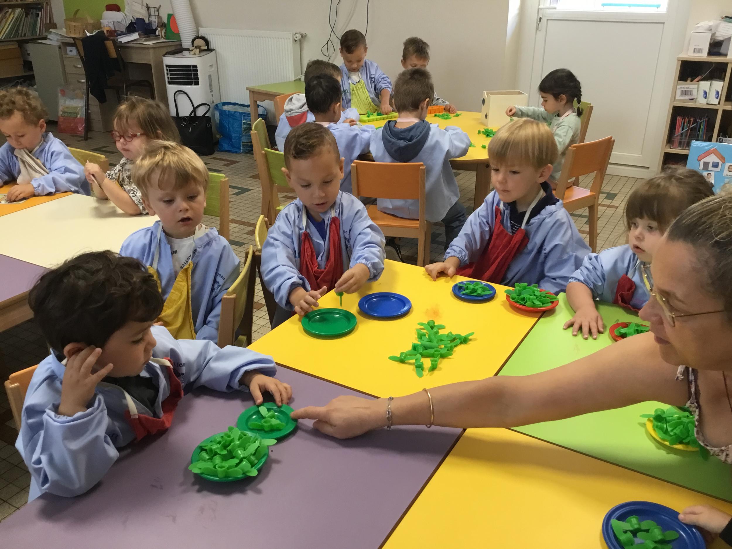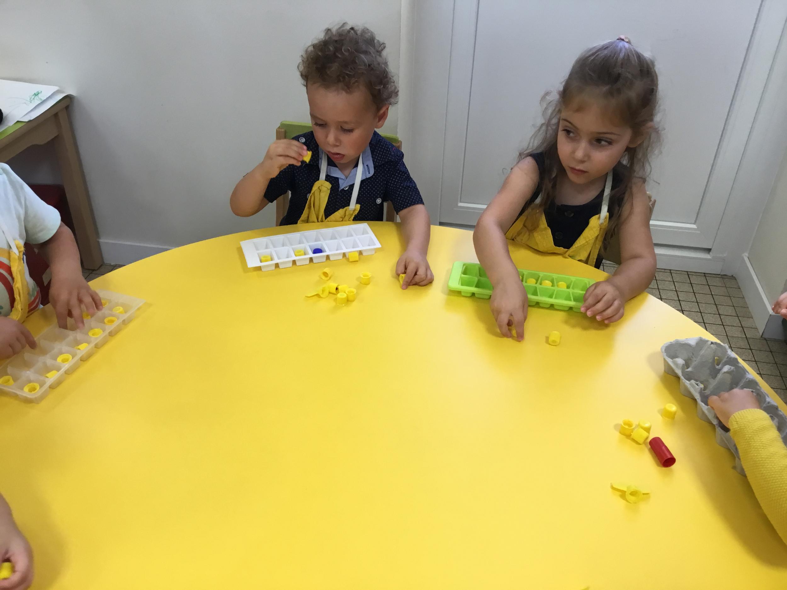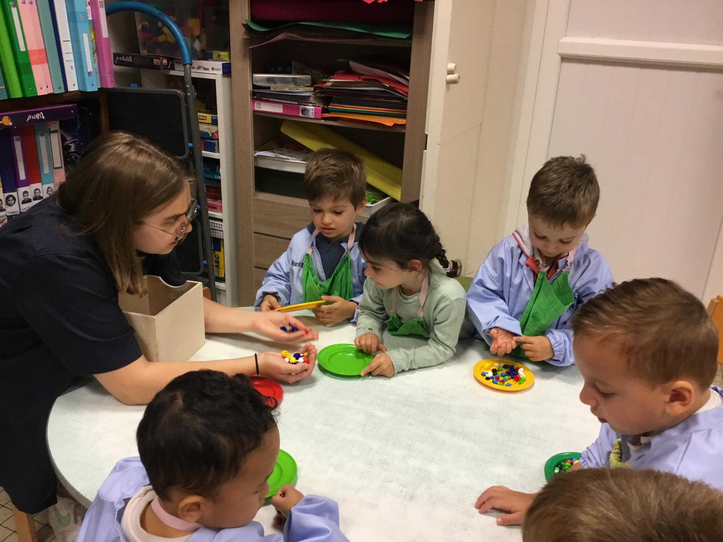 Avant d’aborder les nombres , il est important de bien comprendre certaines notions. Nous avons donc abordé les notions de « peu » et « beaucoup » de différentes façons: en manipulant des bouchons, en jouant au restaurant, par comparaison de cartes ….Nous l’avons aussi travaillé en anglais ! Pour aller plus loin, nous avons travaillé les notions de « trop » et « assez » …. Encore un peu difficile pour certains.