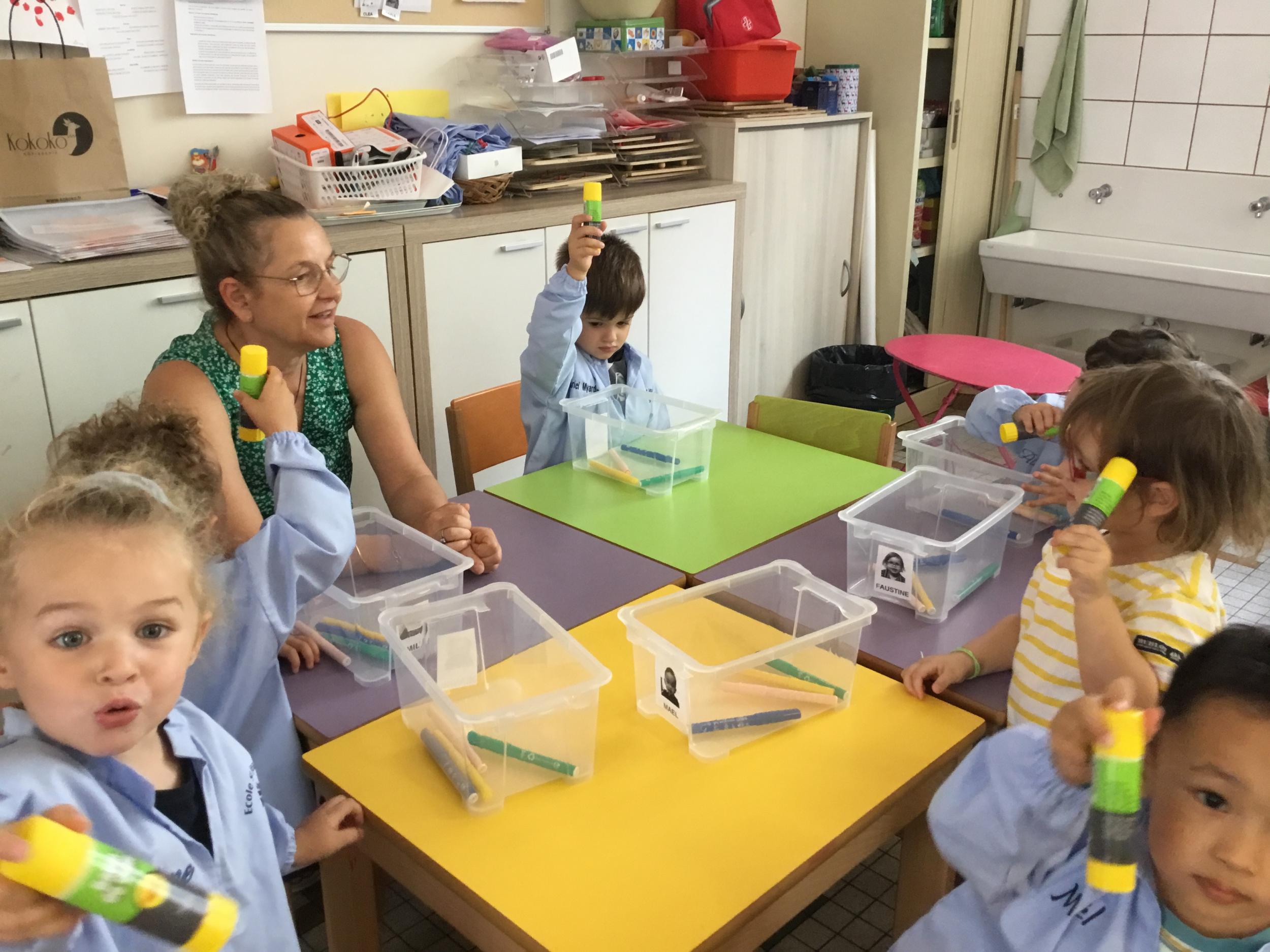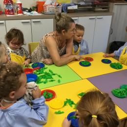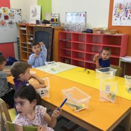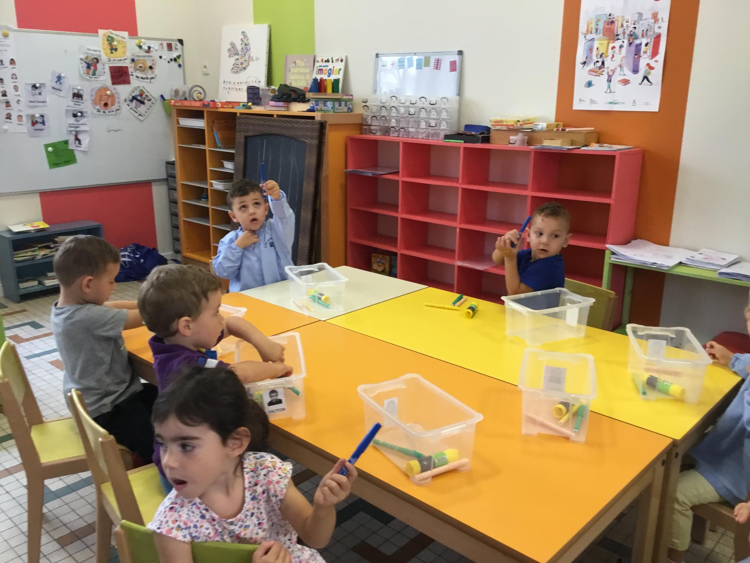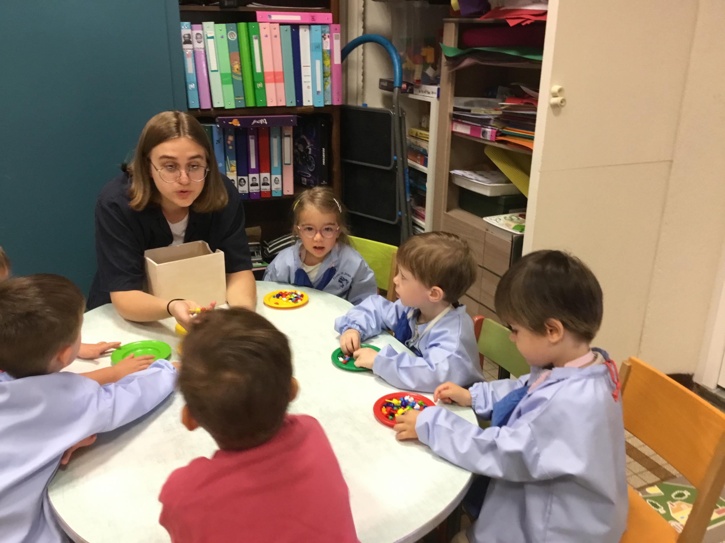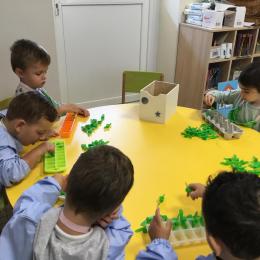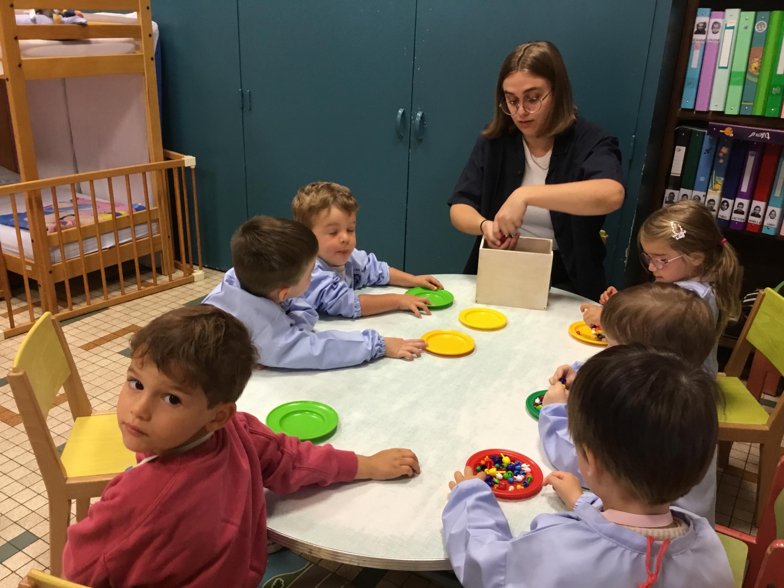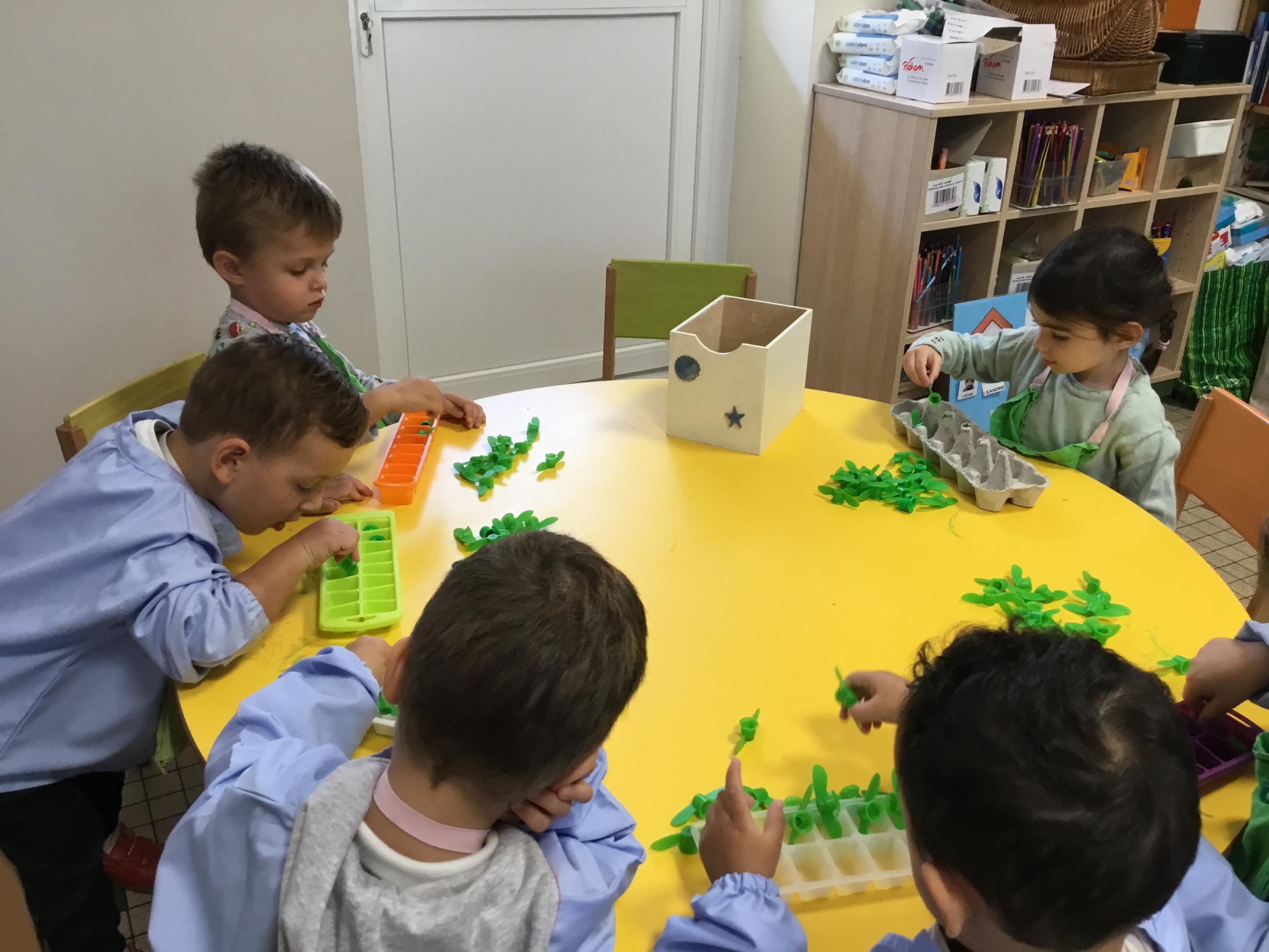 Avant d’aborder les nombres , il est important de bien comprendre certaines notions. Nous avons donc abordé les notions de « peu » et « beaucoup » de différentes façons: en manipulant des bouchons, en jouant au restaurant, par comparaison de cartes ….Nous l’avons aussi travaillé en anglais ! Pour aller plus loin, nous avons travaillé les notions de « trop » et « assez » …. Encore un peu difficile pour certains.