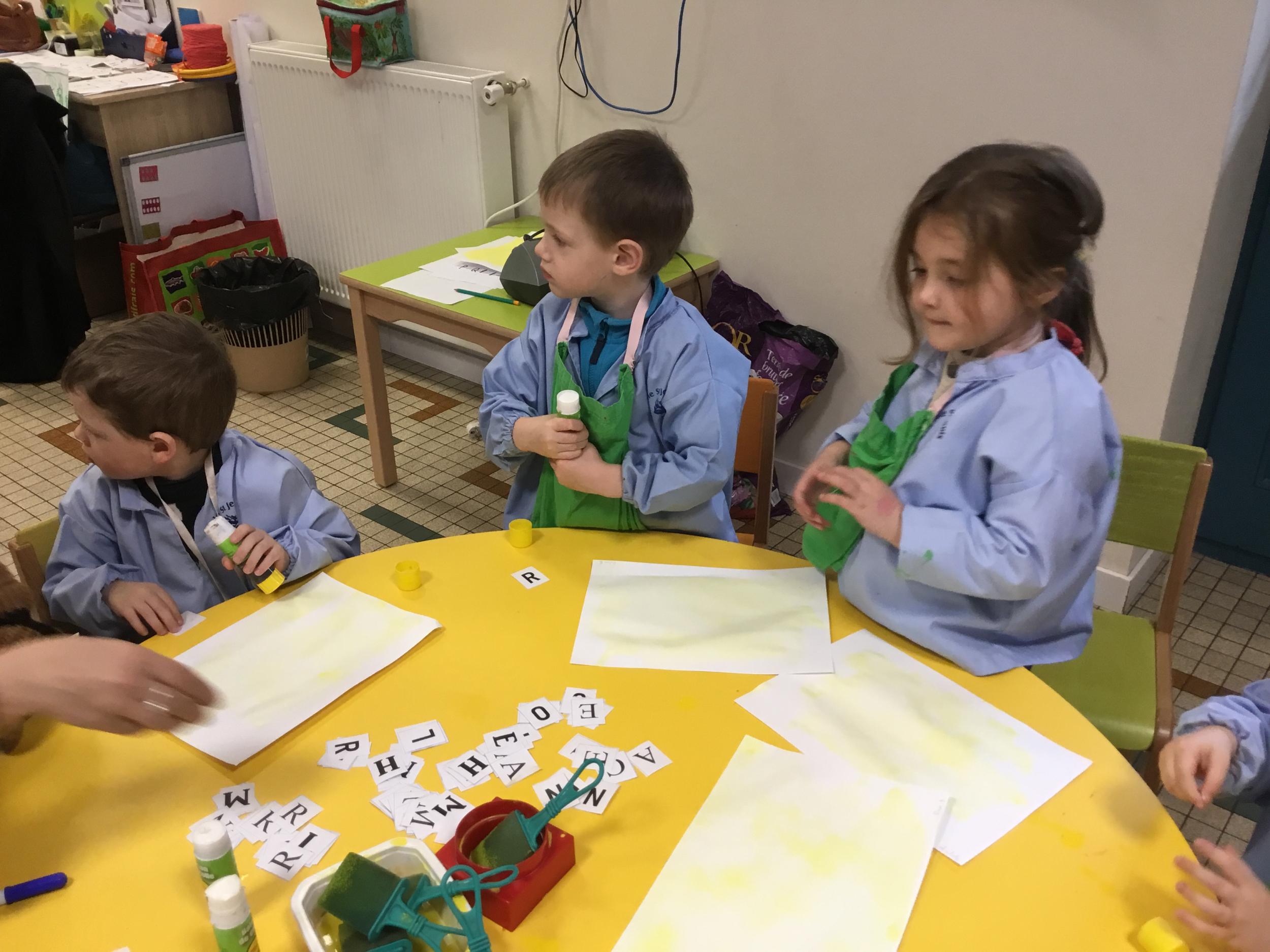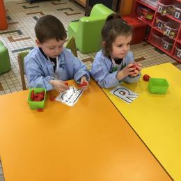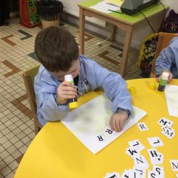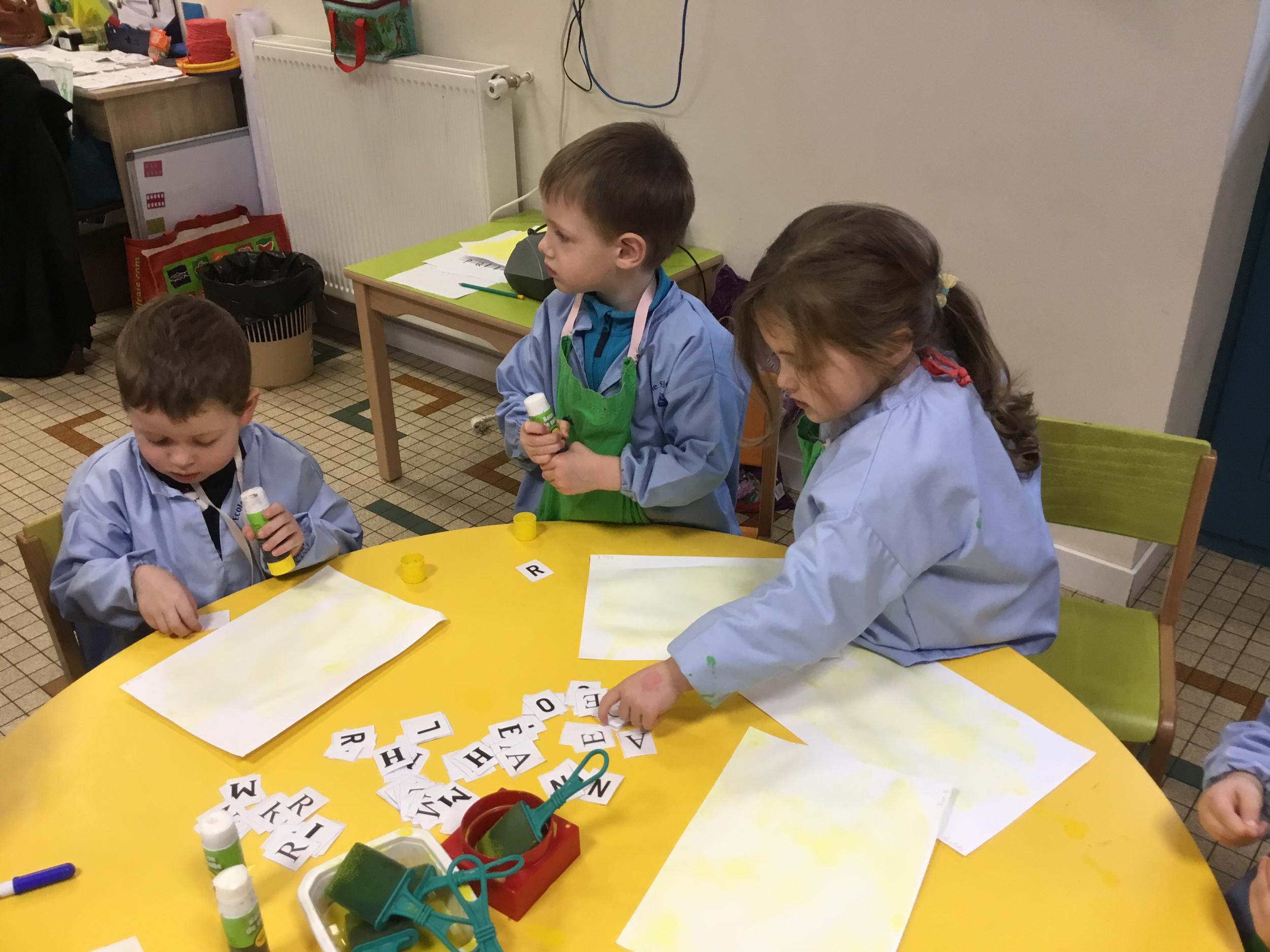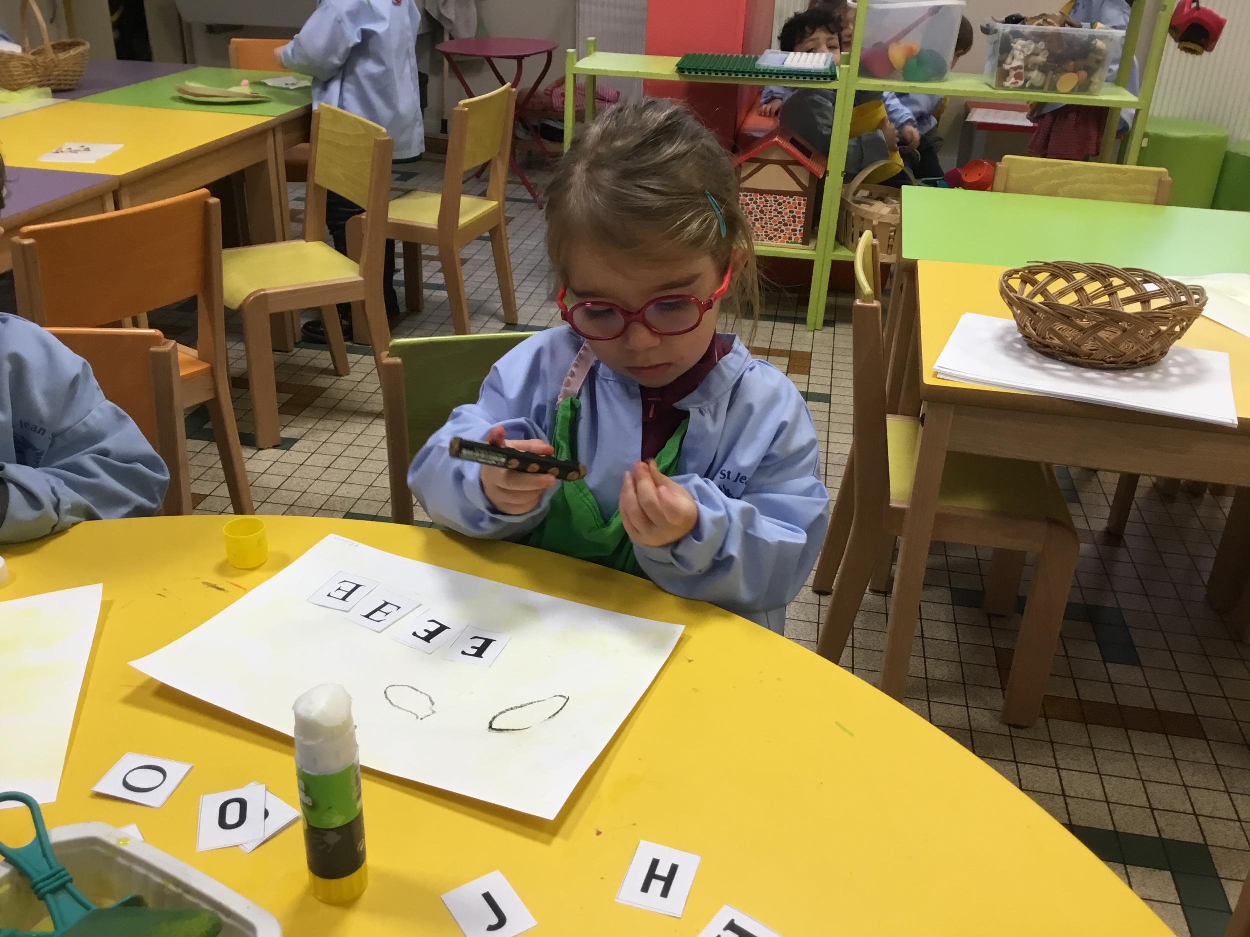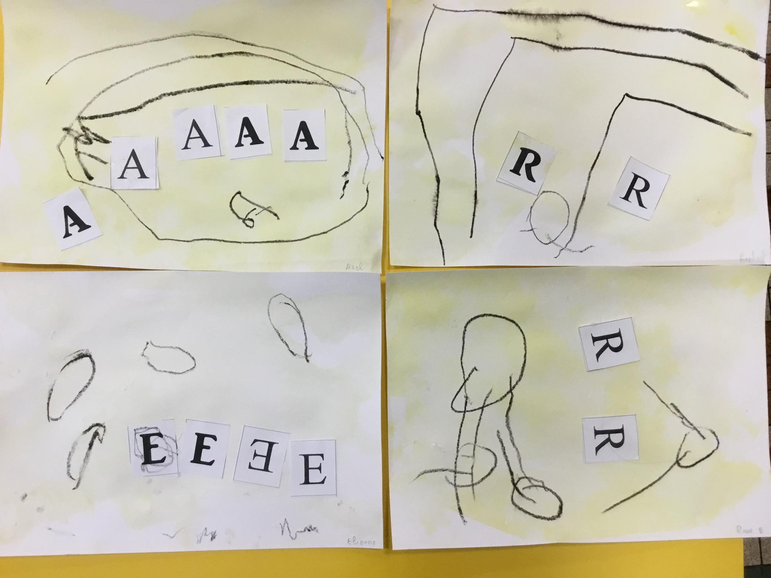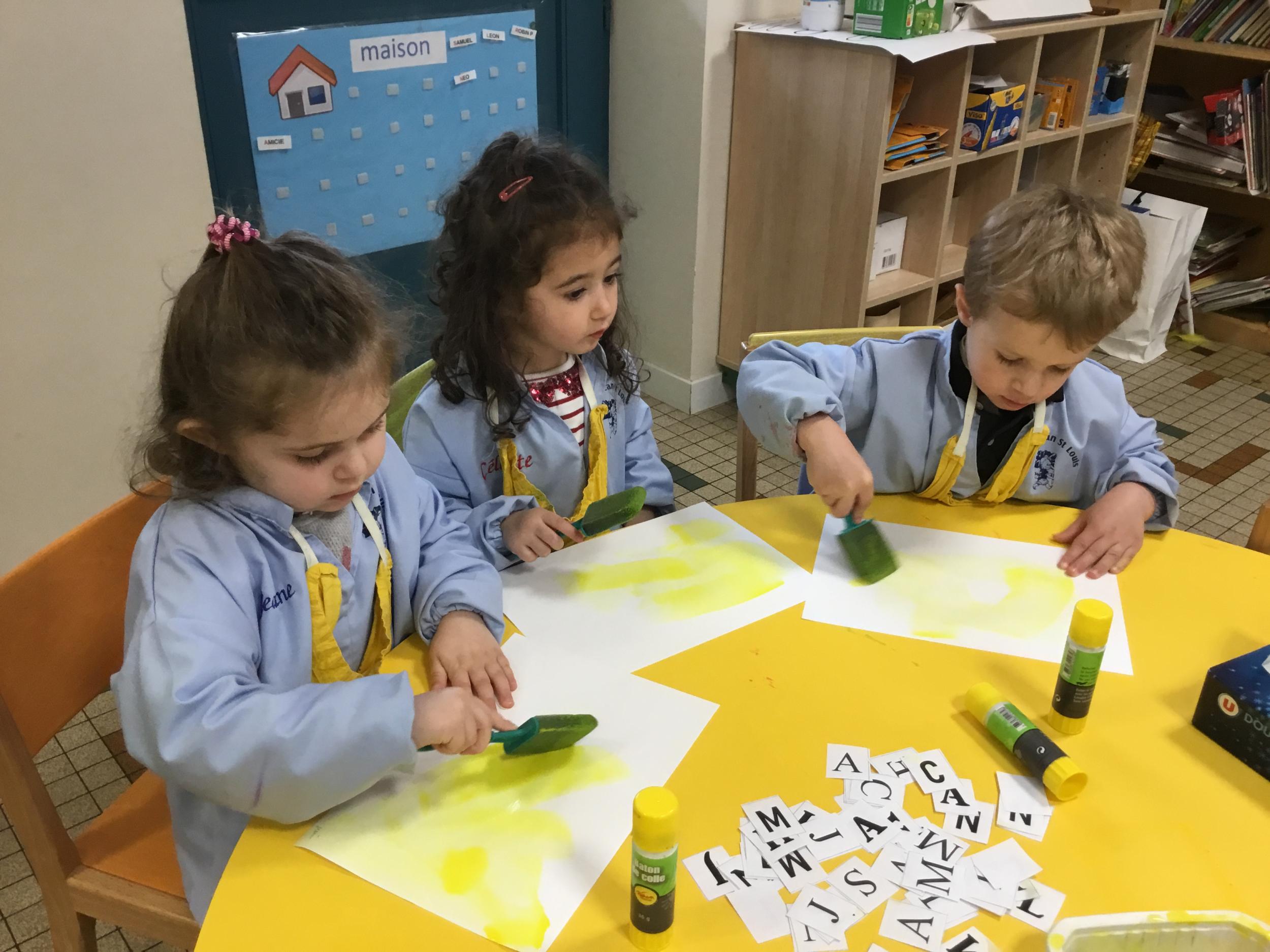 Depuis le début de la période les élèves travaillent autour de leur prénom et de leur initiale. Différents ateliers leur permettent d’appréhender l’écrit de leur initiale.