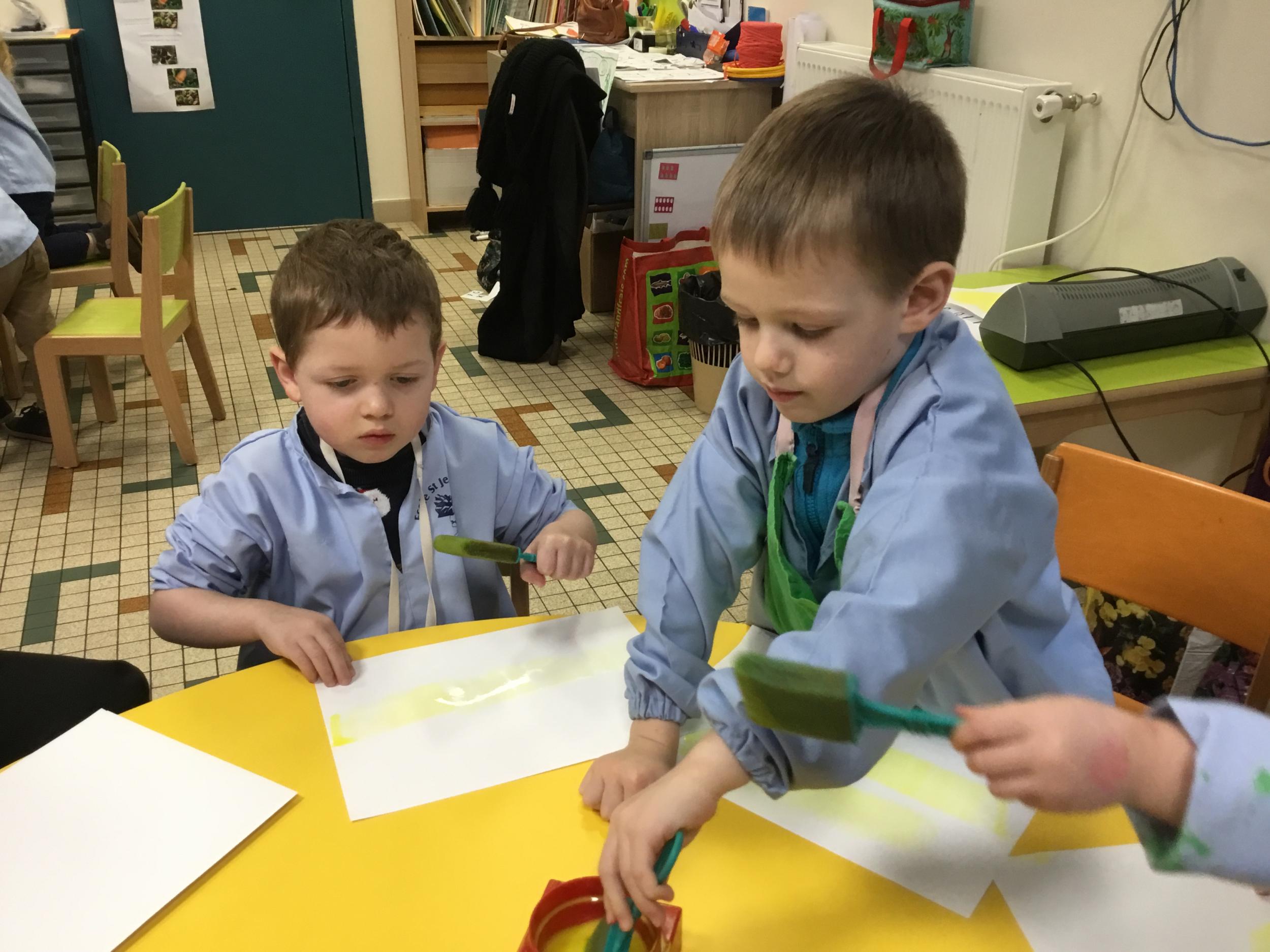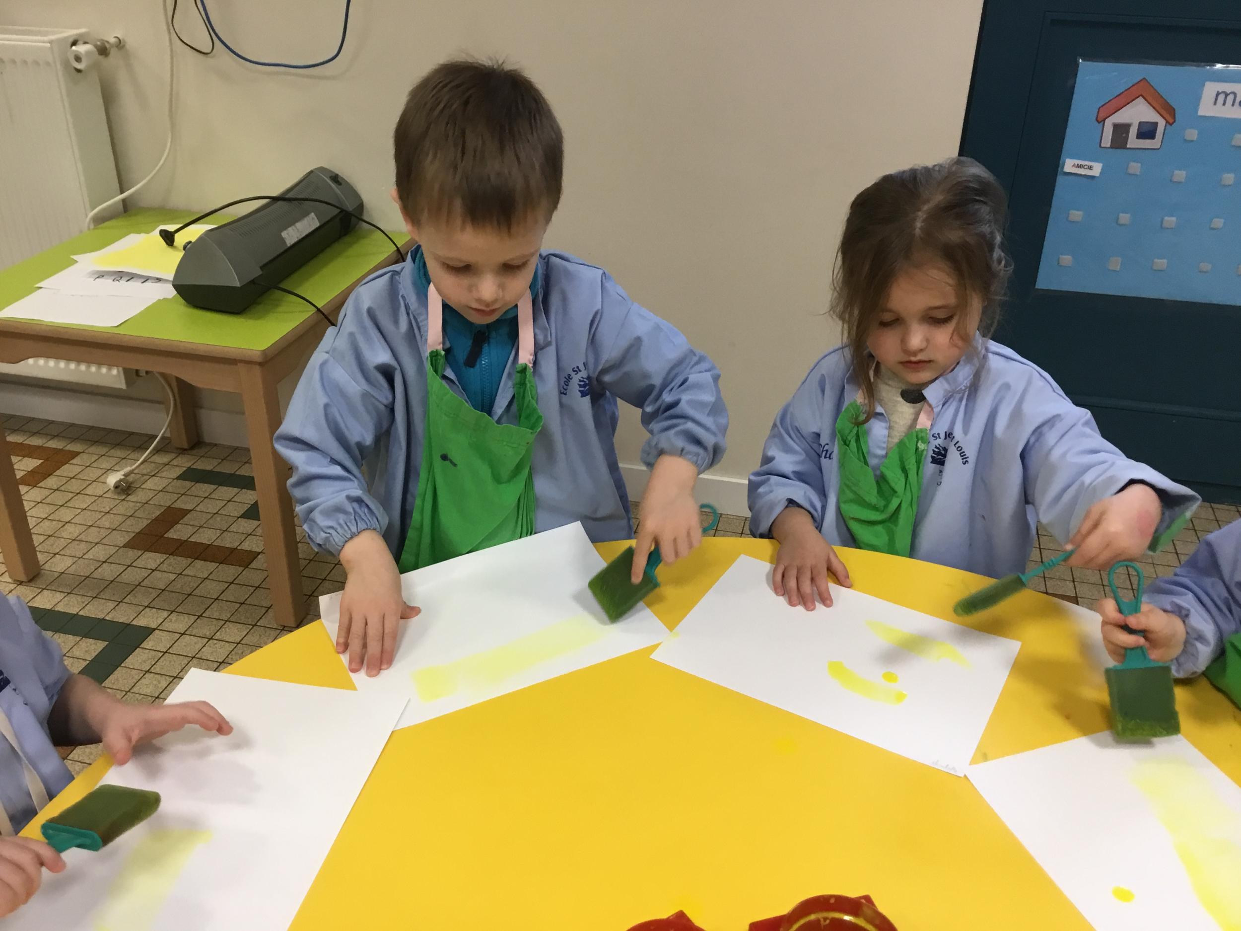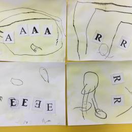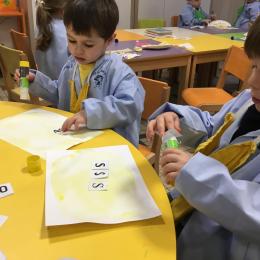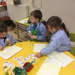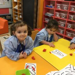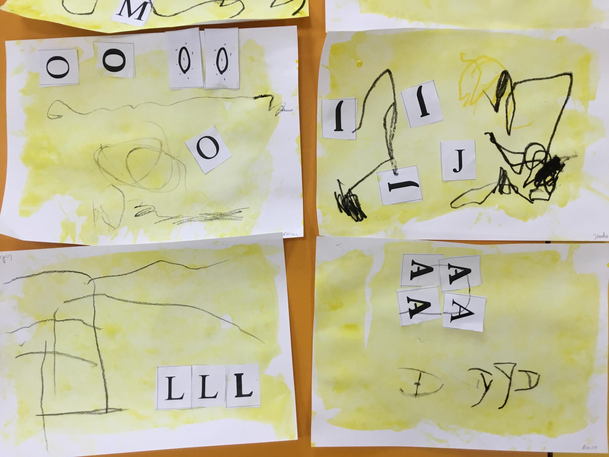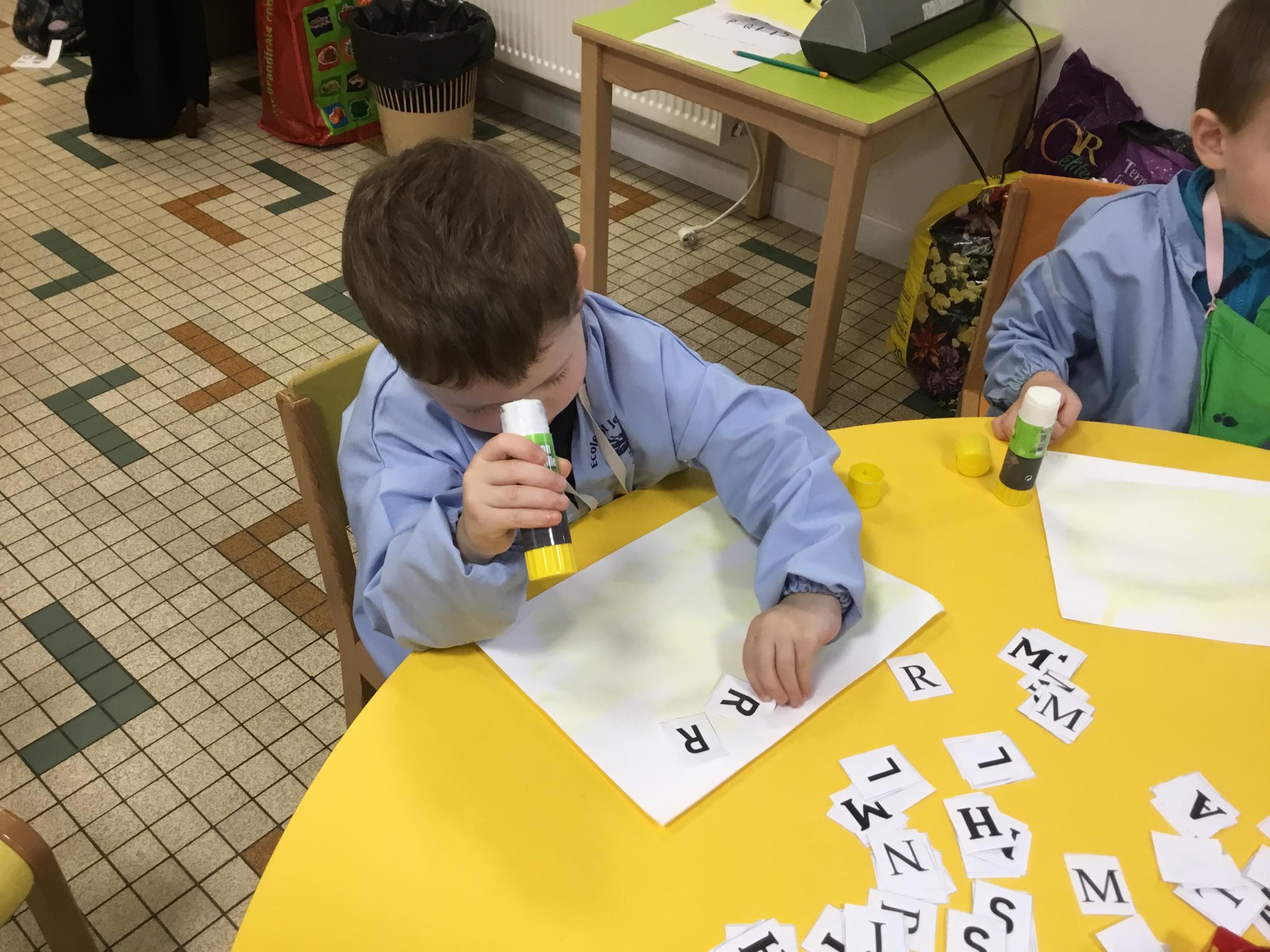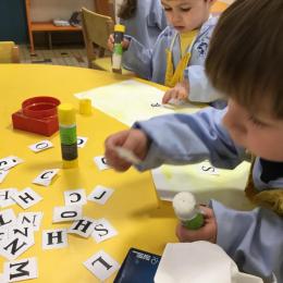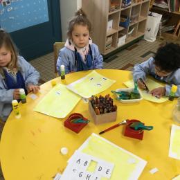 Depuis le début de la période les élèves travaillent autour de leur prénom et de leur initiale. Différents ateliers leur permettent d’appréhender l’écrit de leur initiale.