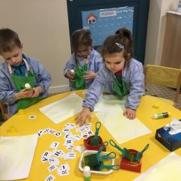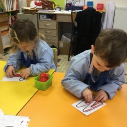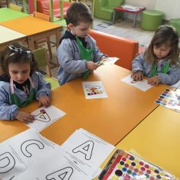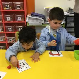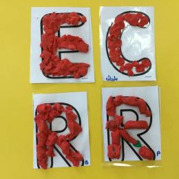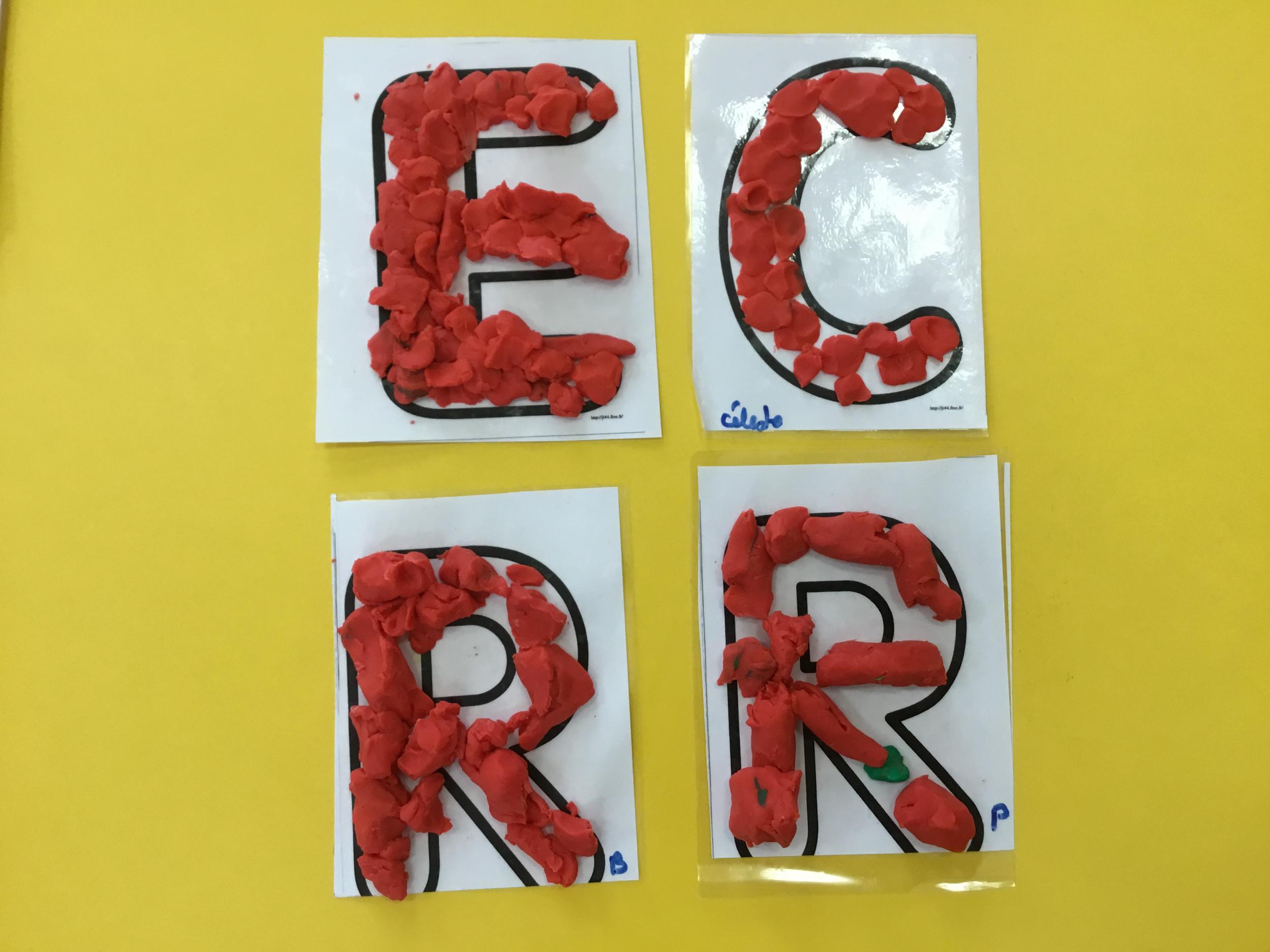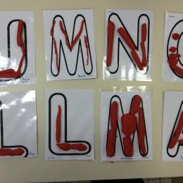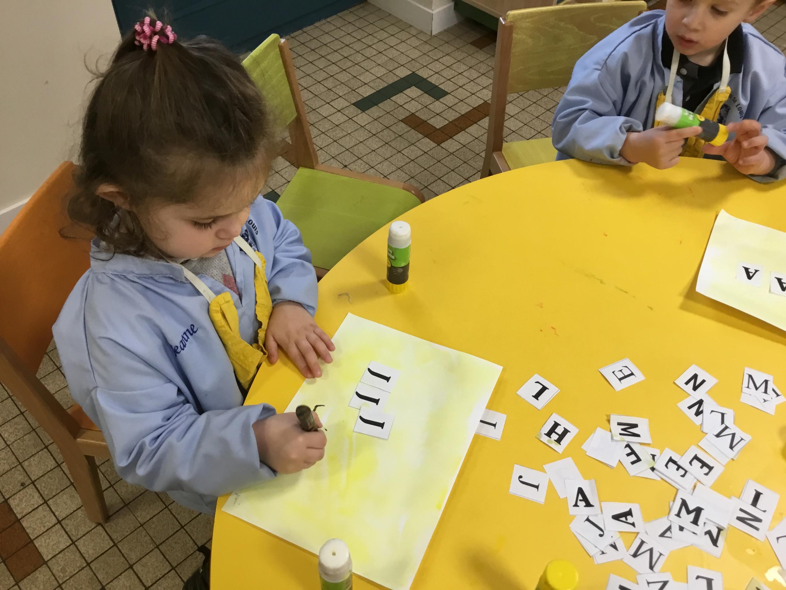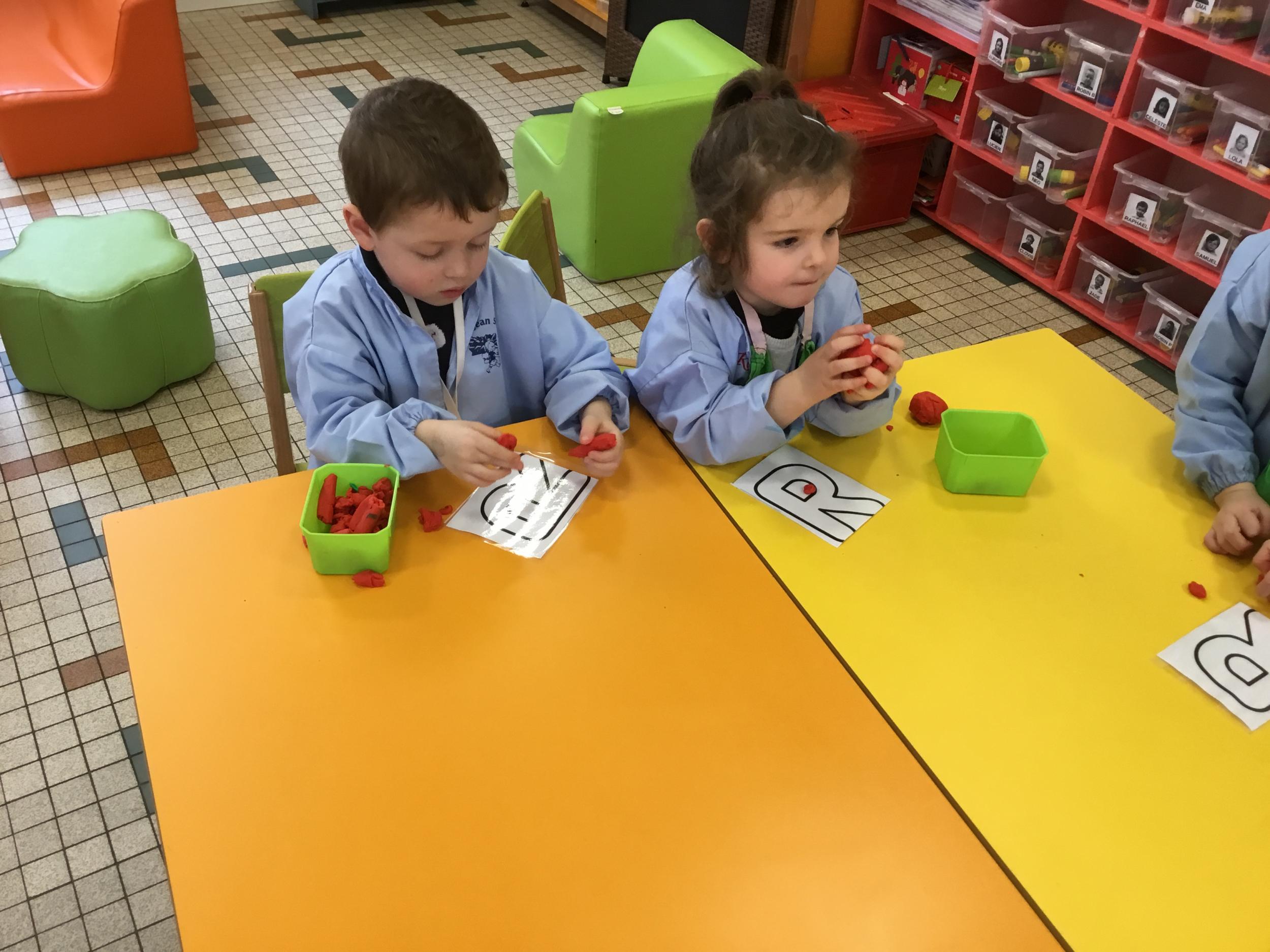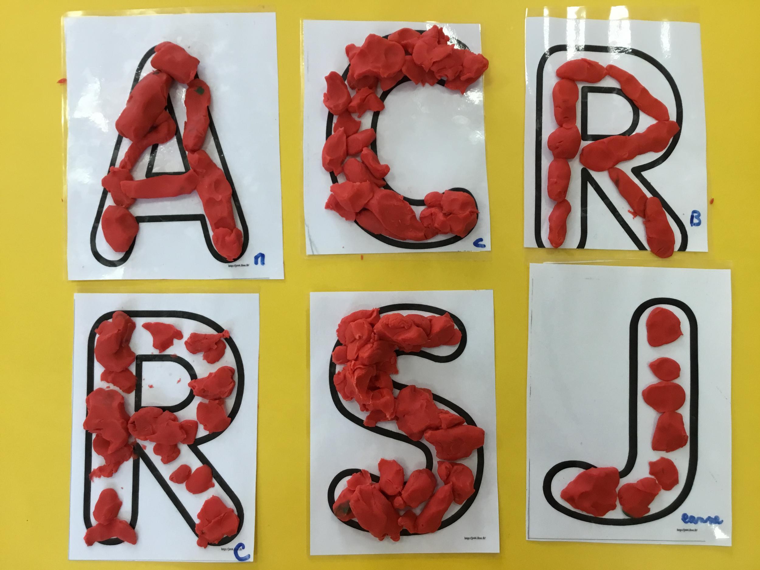 Remplir son initiale avec de la pâte à modeler ou avec des gommettes.