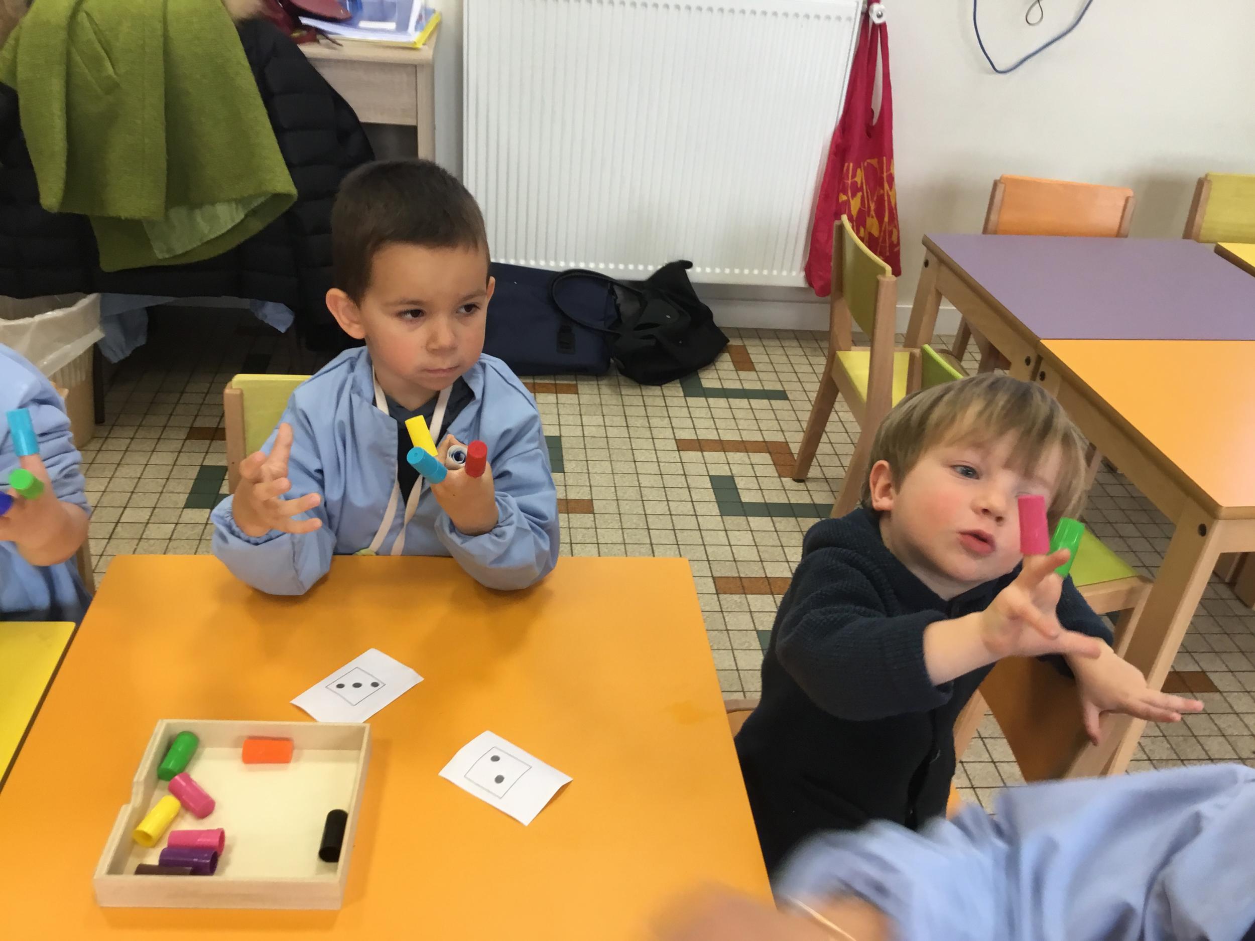 27/11/2020 Nous avons travaillé à reconnaître et nommer des petites quantités représentées par des points sur un dé où les doigts de la main. Nous en avons profité pour réviser les couleurs Nous avons également travaillé les algorithmes et avec Lightbot les élèves en ont profité pour réviser les couleurs en anglais