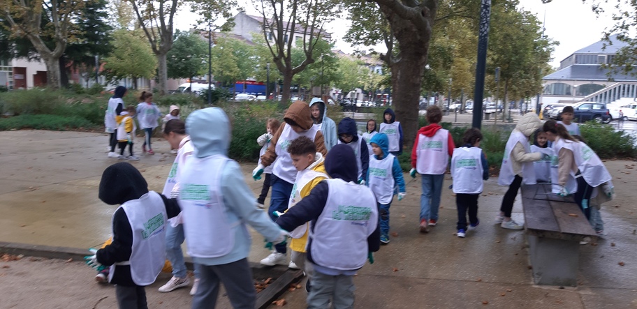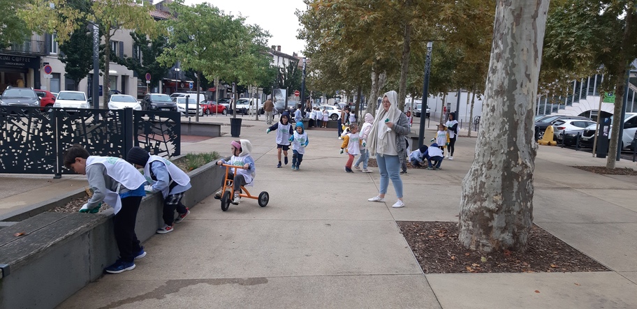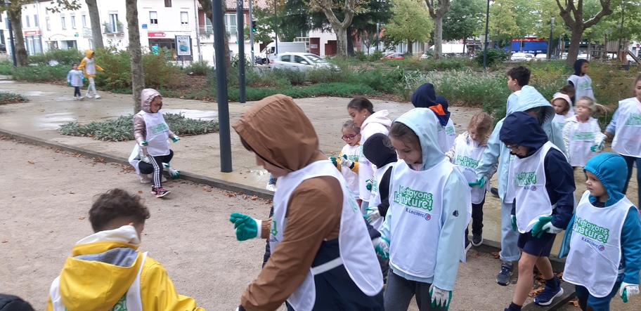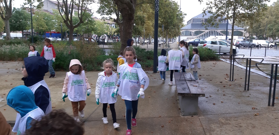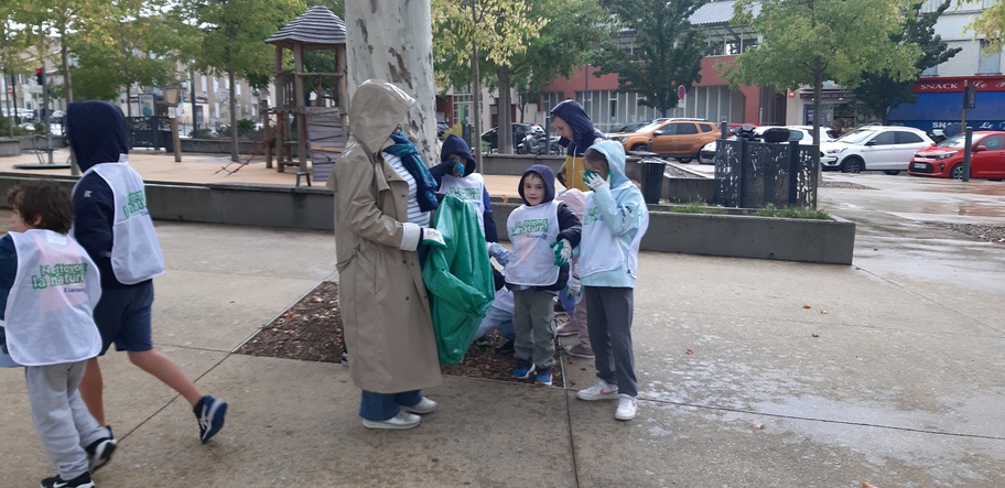 Le 27 septembre dernier, les élèves de Grande Section et les CM2 ont participé à l'action Leclerc "Nettoyons la nature". Munis des dossards, gans, sacs poubelles fournis par l'enseigne, nous sommes partis à l'assaut de la place Pierre Fabre. Nous voulions continuer à travers les rues qui sont autour de l'école, mais les mauvaises conditions climatiques nous ont obligées à rentrer plus vite à l'école. Malgré cela, les élèves étaient contents de cette expérience que nous renouvèlerons lors de jours meilleurs!