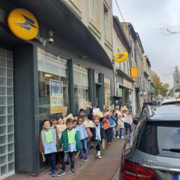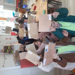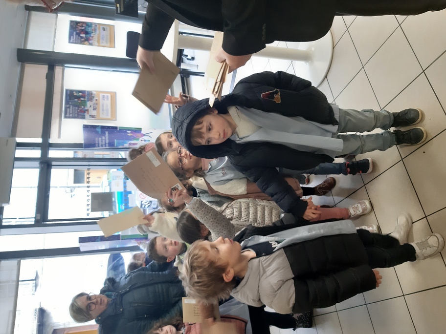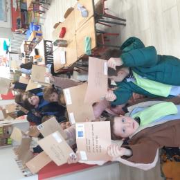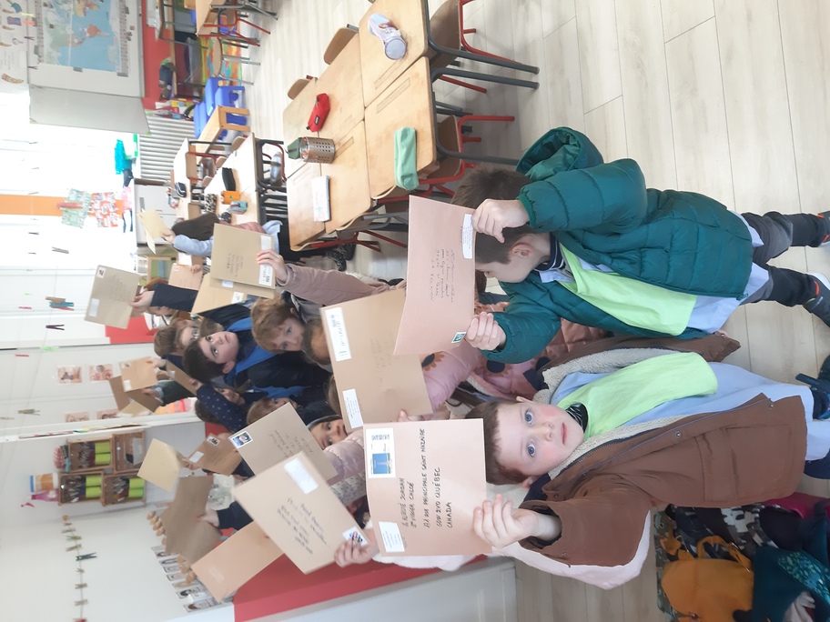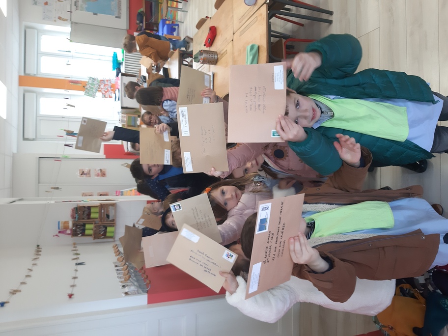 Nous avons récupéré de nombreuses adresses à travers le monde entier pour envoyer nos lettres de loup aplati et demander aux gens de le prendre en photo dans le pays où ils le reçoivent. Les élèves étaient fiers d'aller tous ensemble à la poste pour envoyer toutes ces lettres.