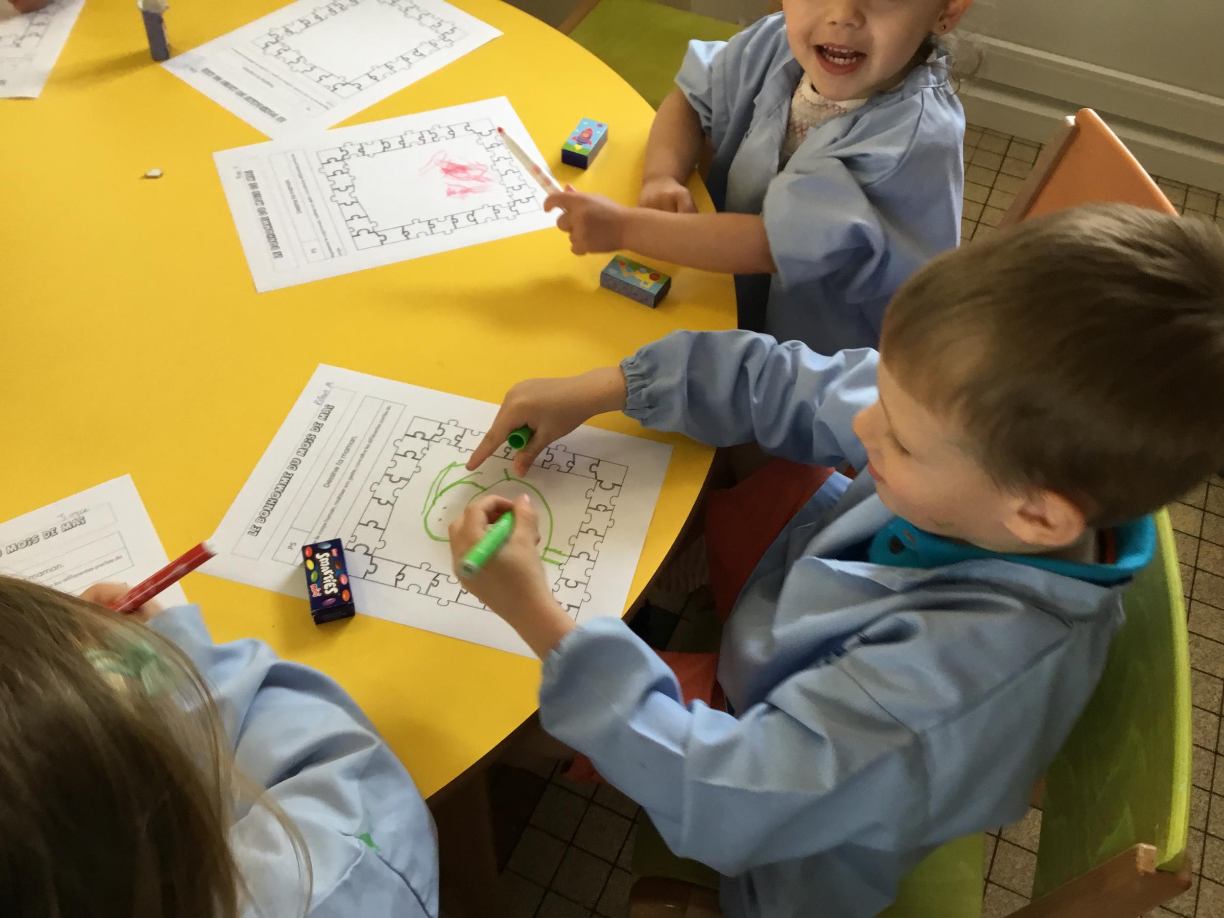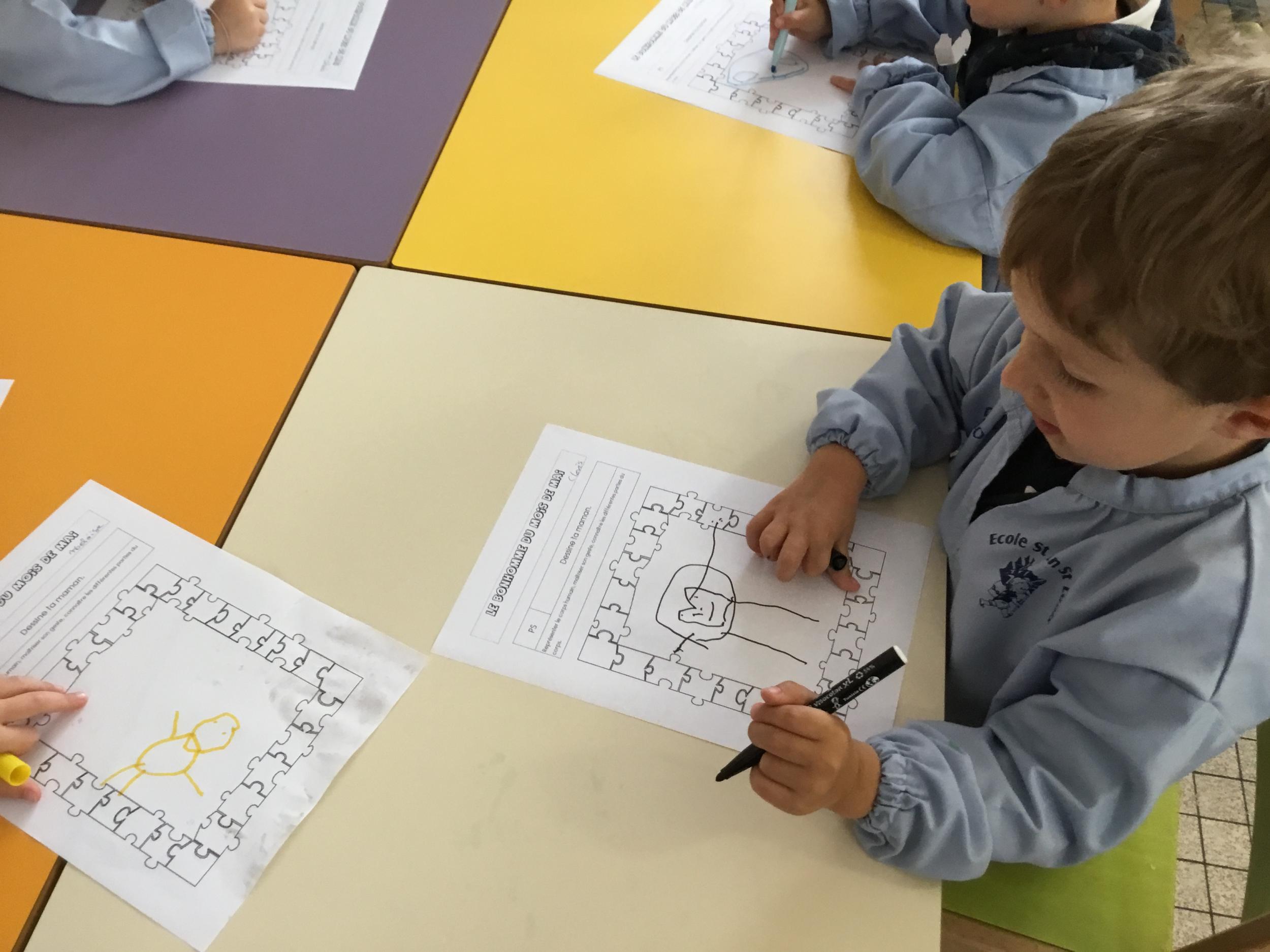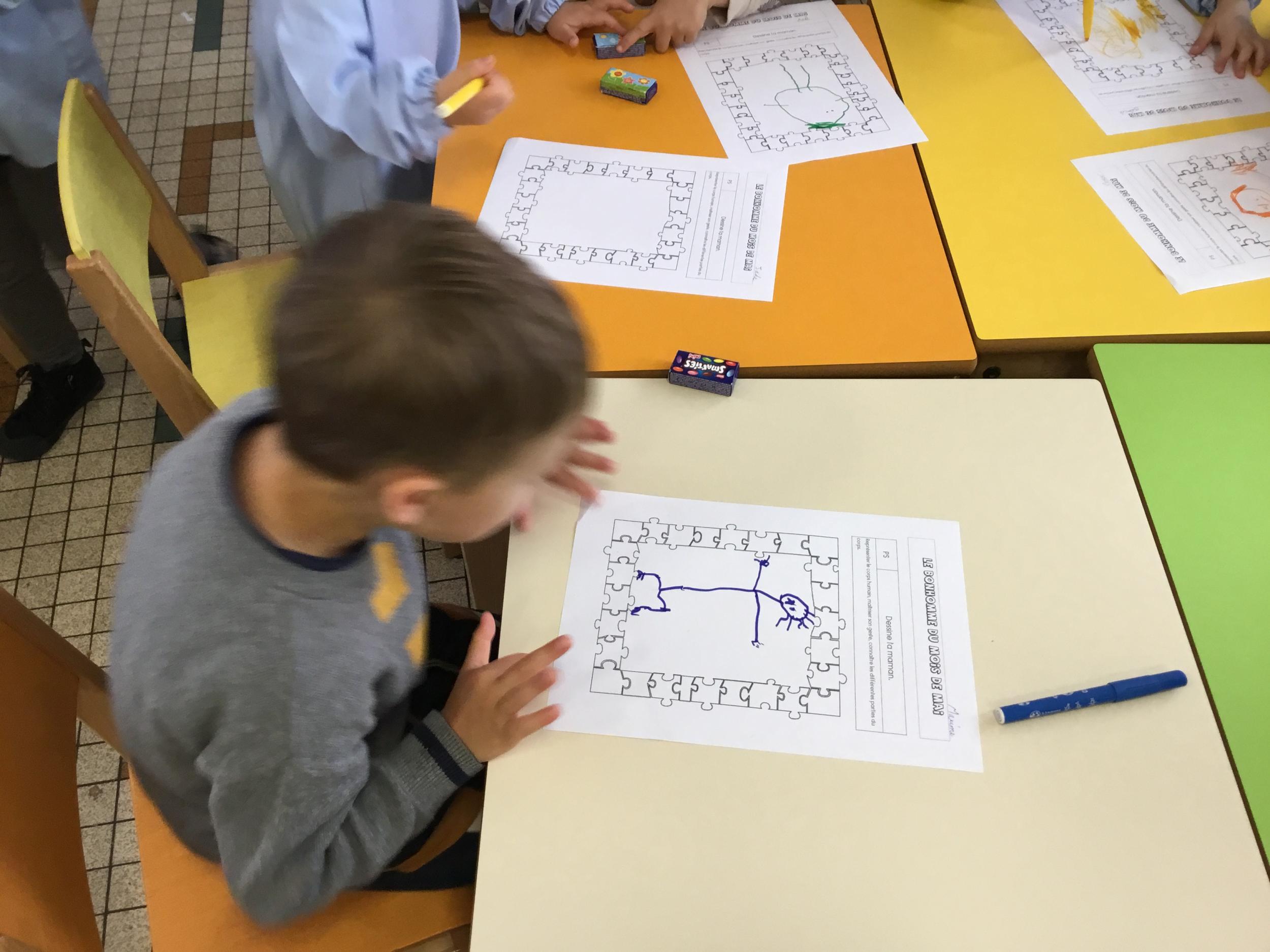 Petite et moyenne section 29/05/2022 Ce mois ci nous avons fêté l’anniversaire d’Amicie née au mois d’avril, Néo et Malo nés au mois de mai. Le bonhomme du mois de mai: dessine maman