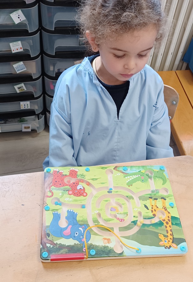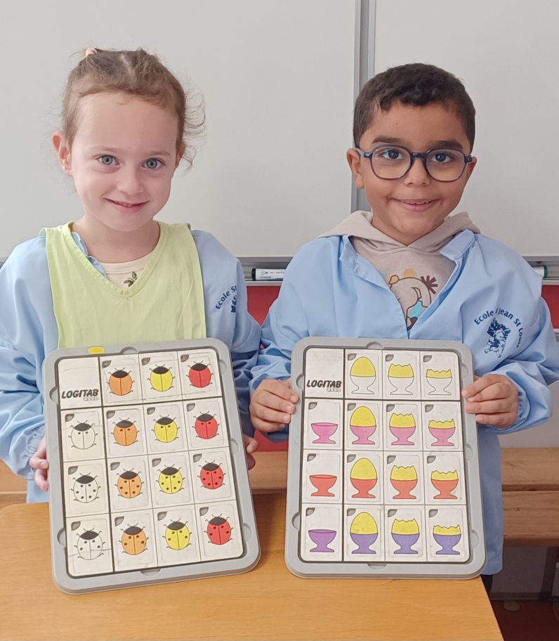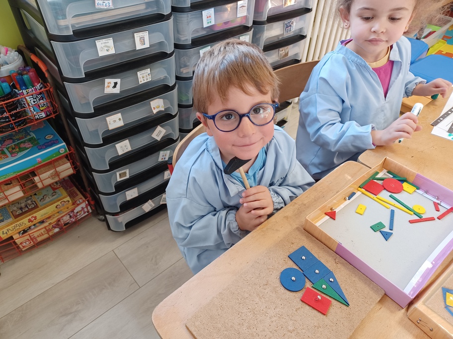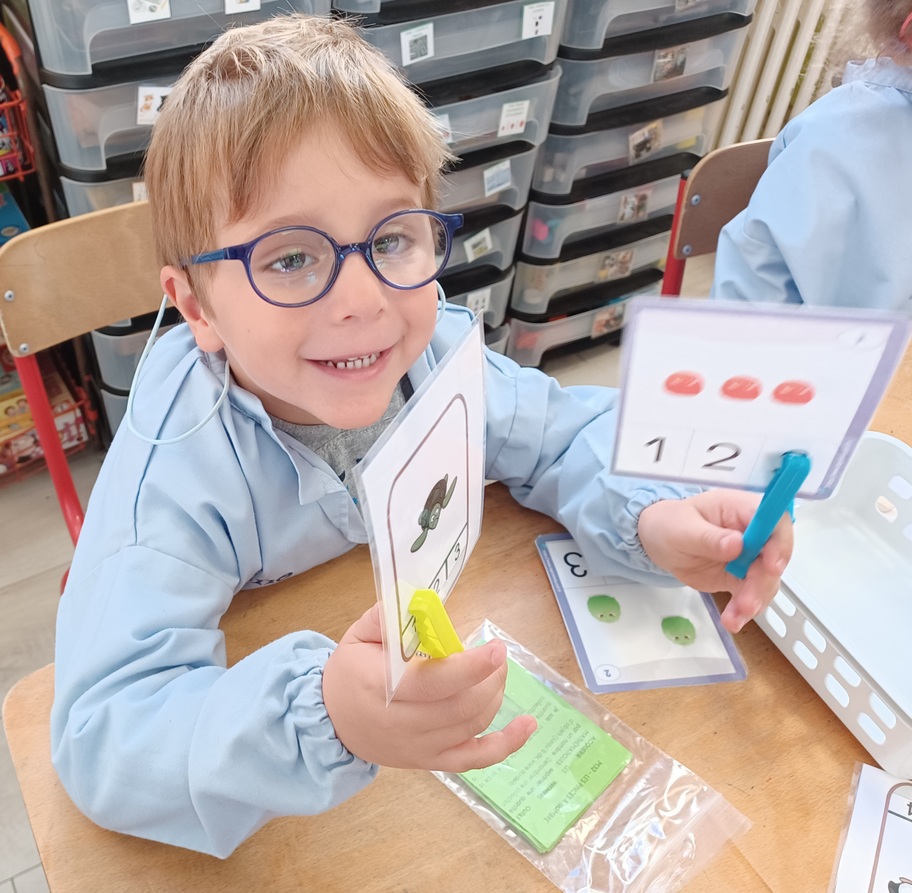 Depuis la rentrée des vacances, les élèves de Moyenne et de Grande section de la classe ont un nouveau plan de travail, donc de nouveaux ateliers! Toujours plus de manipulations pour maîtriser les nombres, les quantités, l'espace, le temps, l'alphabet, le graphisme, le monde du vivant et celui de la matière.