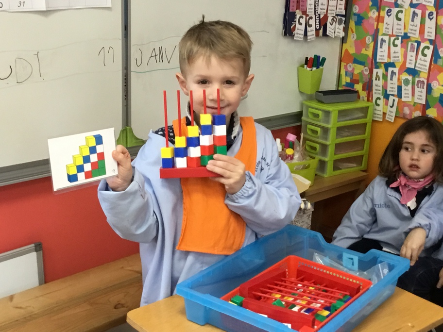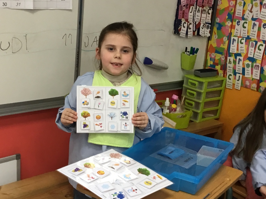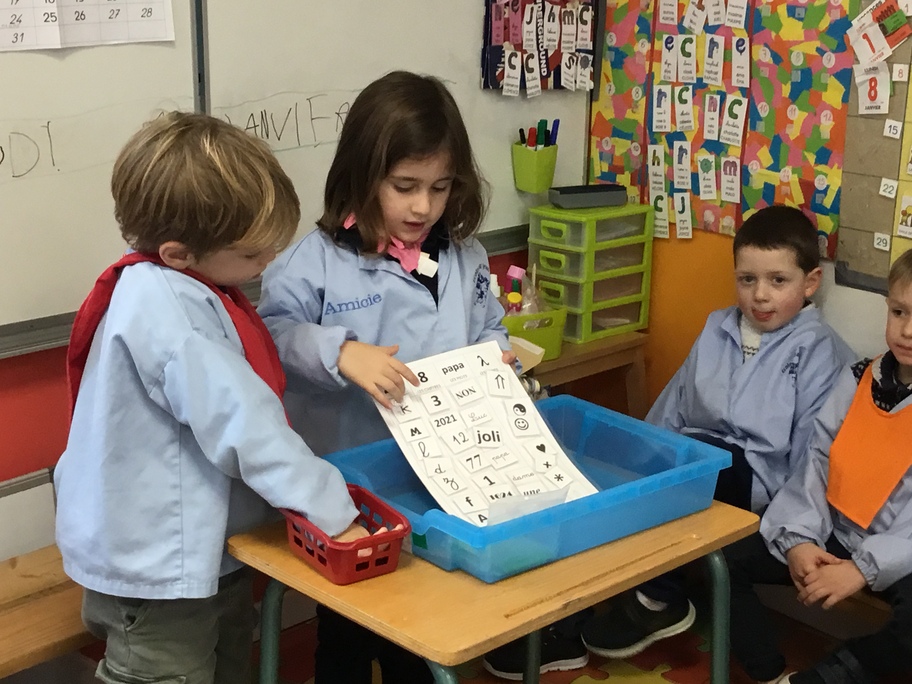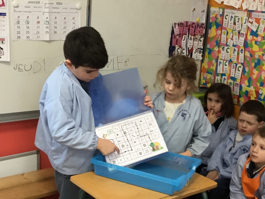 Avec ce nouveau trimestre, les ateliers barquettes de style Montessori ont aussi beaucoup changé : plus de lecture et de graphisme, un peu moins de manipulations, plus sur les animaux, les 5 sens, des défis...