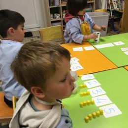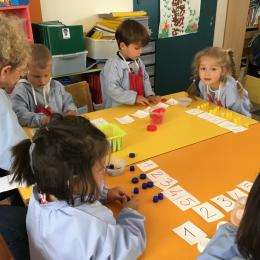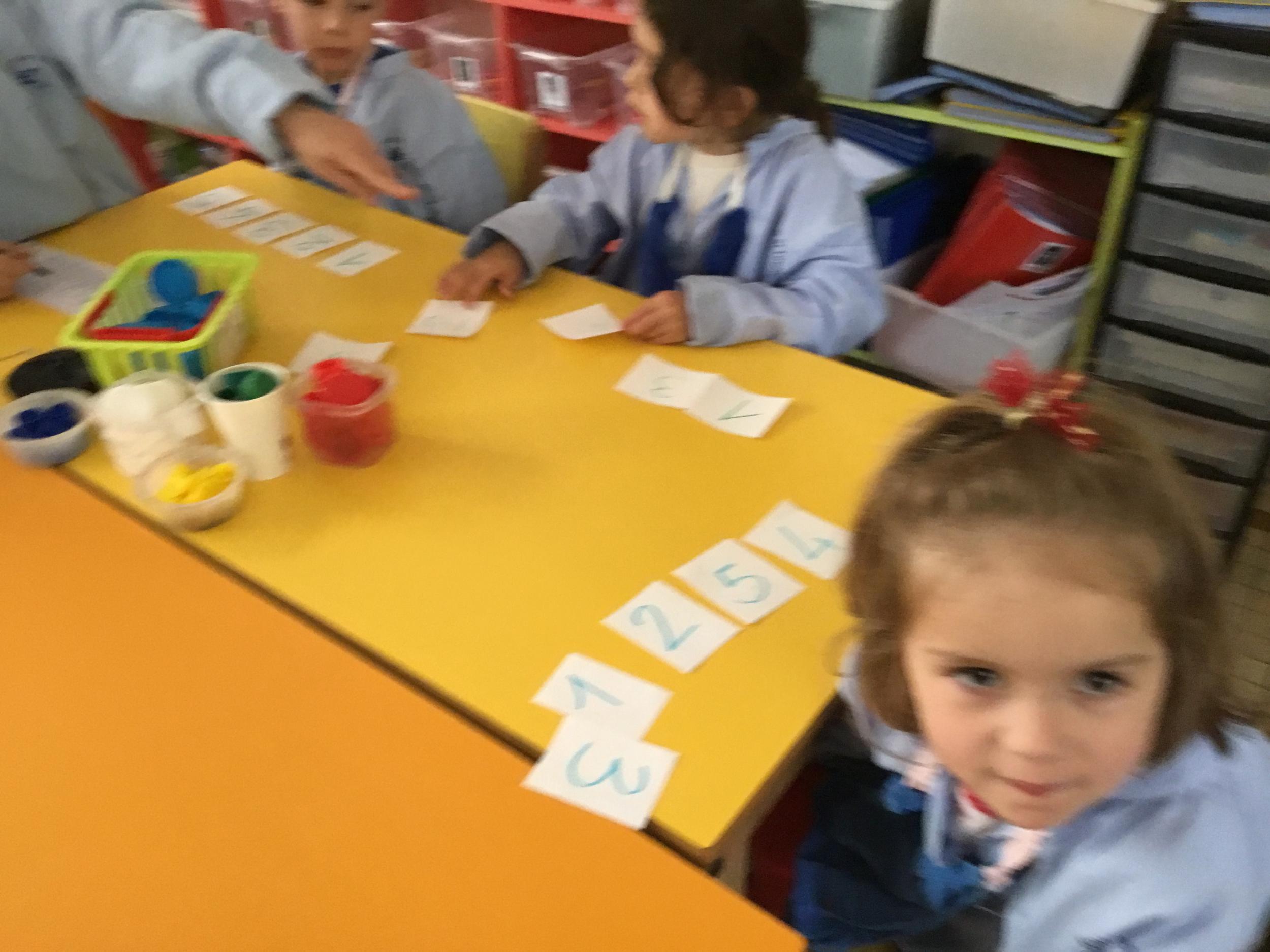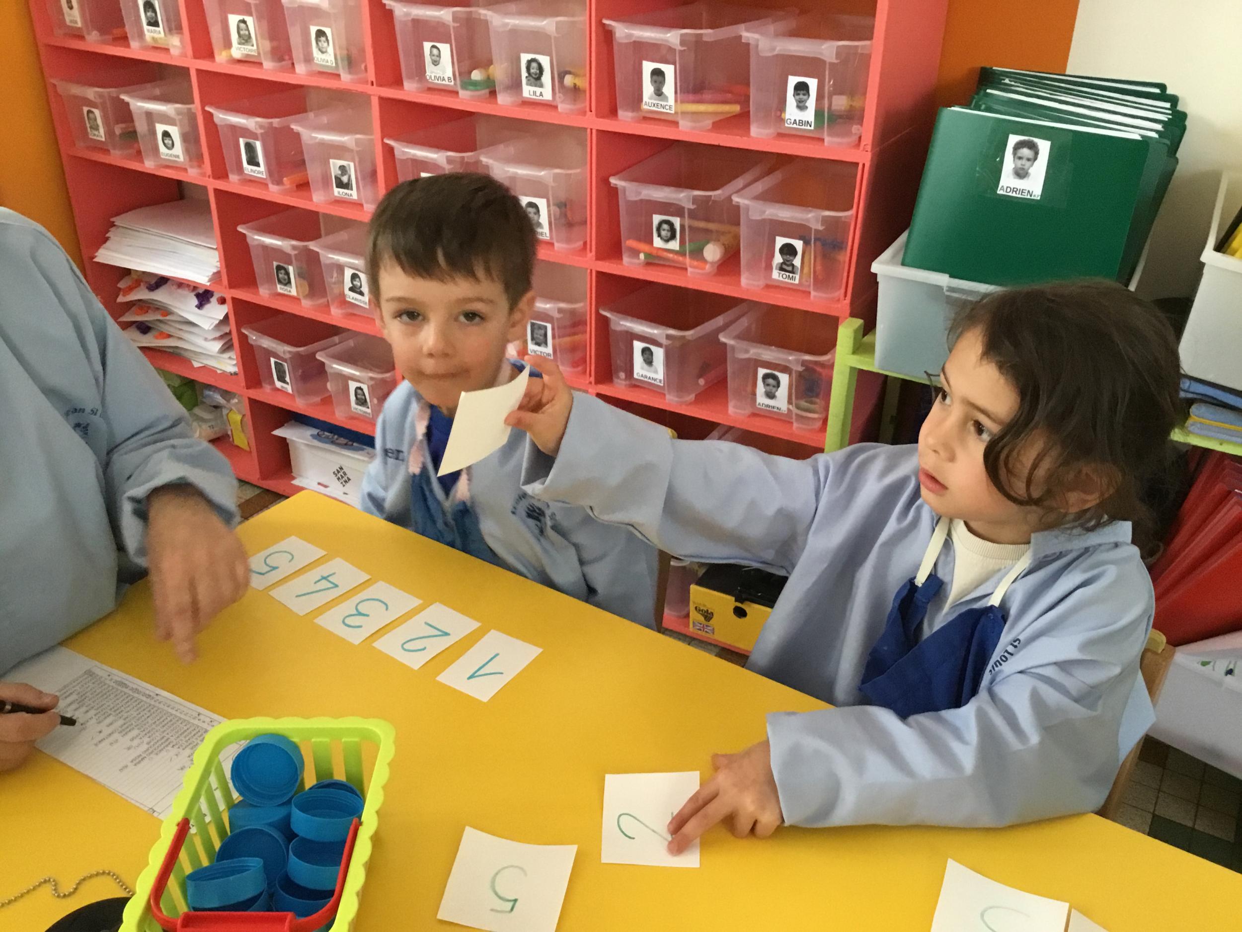 Pour construire les nombres de 1 à 5 la maîtresse a proposé dans un premier temps de ranger de 1 à 5 les chiffres distribués sur une carte . Ceci afin de vérifier si chaque enfant sait reconnaître le chiffre 1 , le 2 … et éventuellement les ranger .