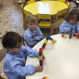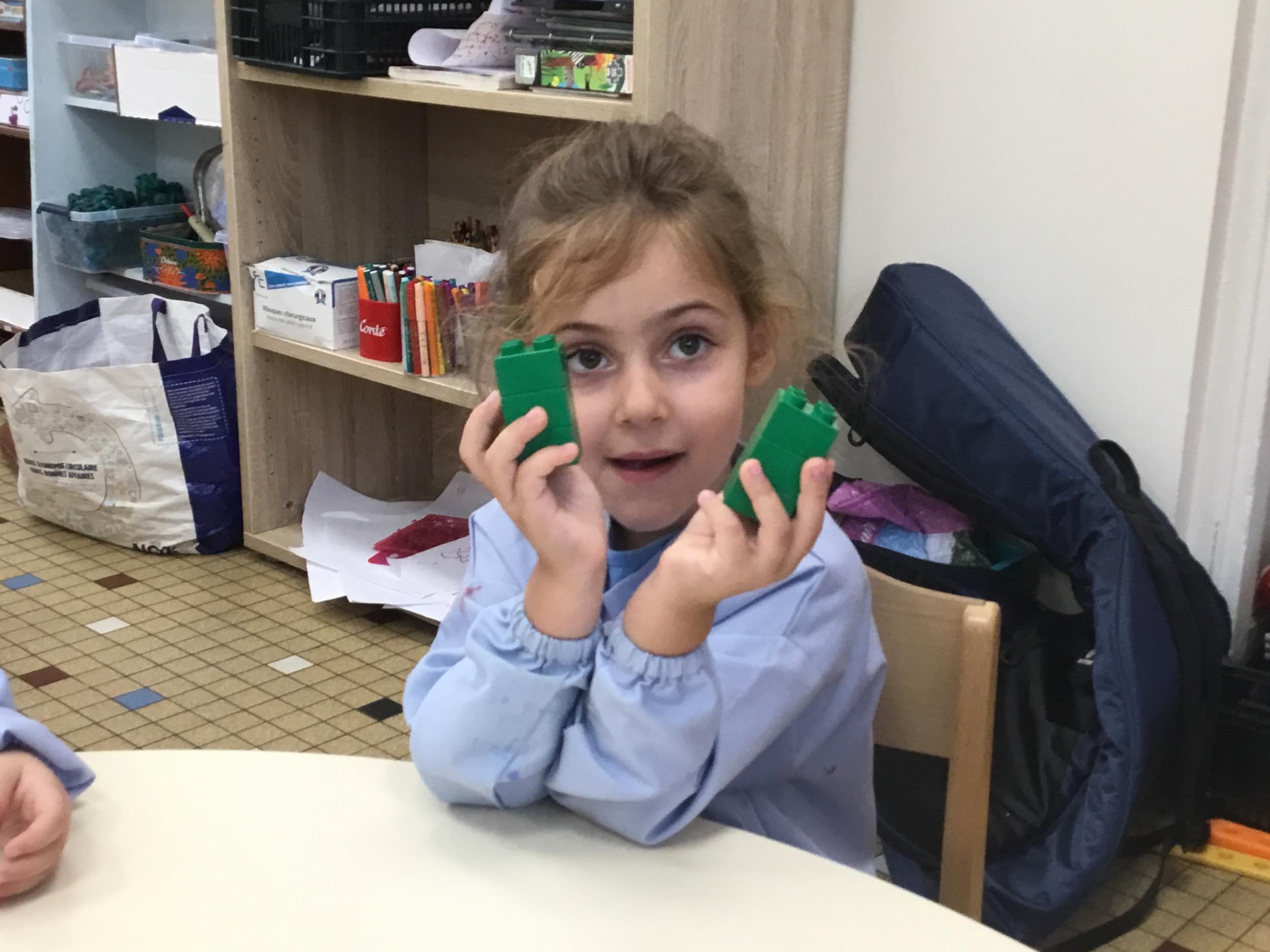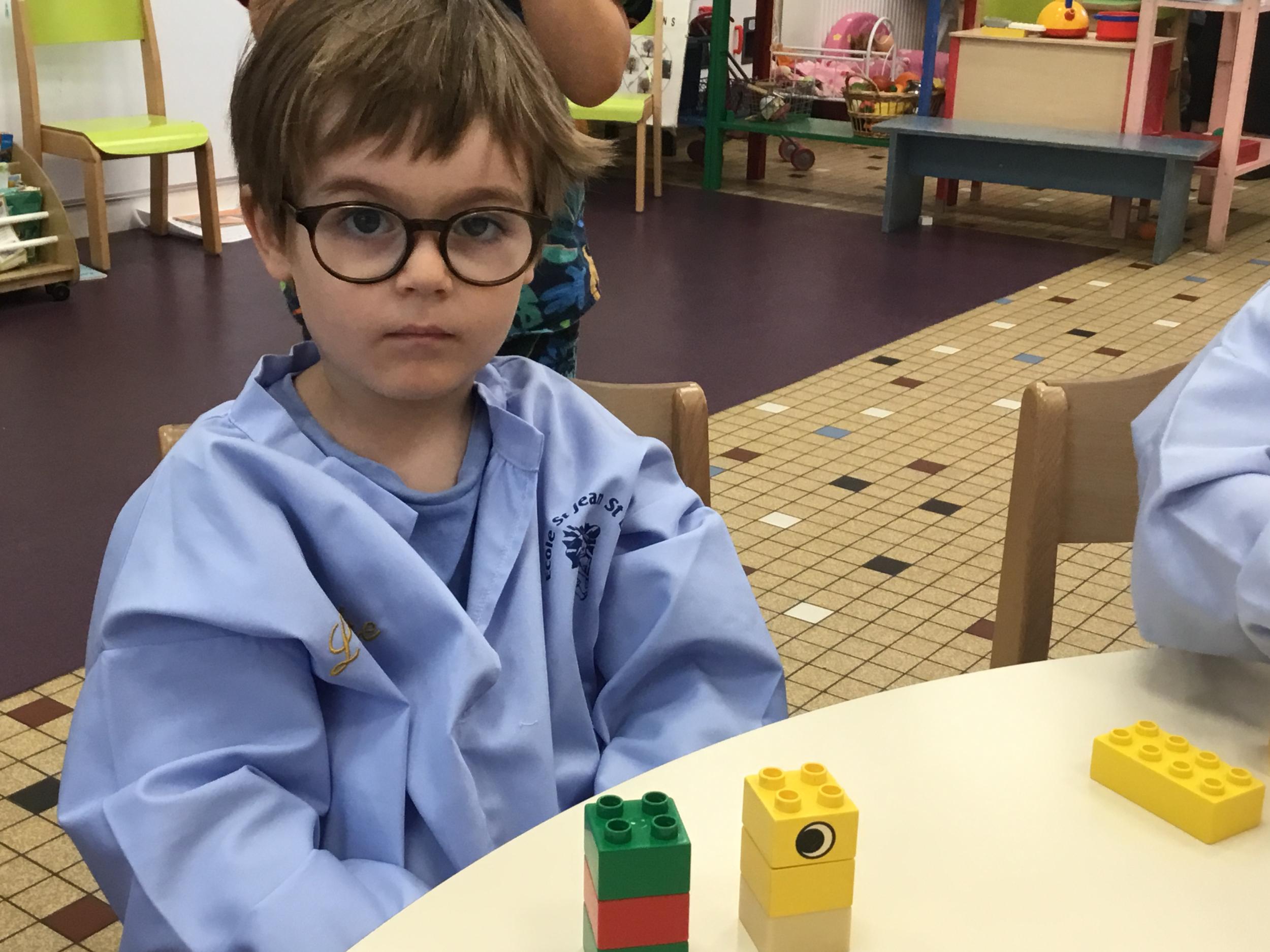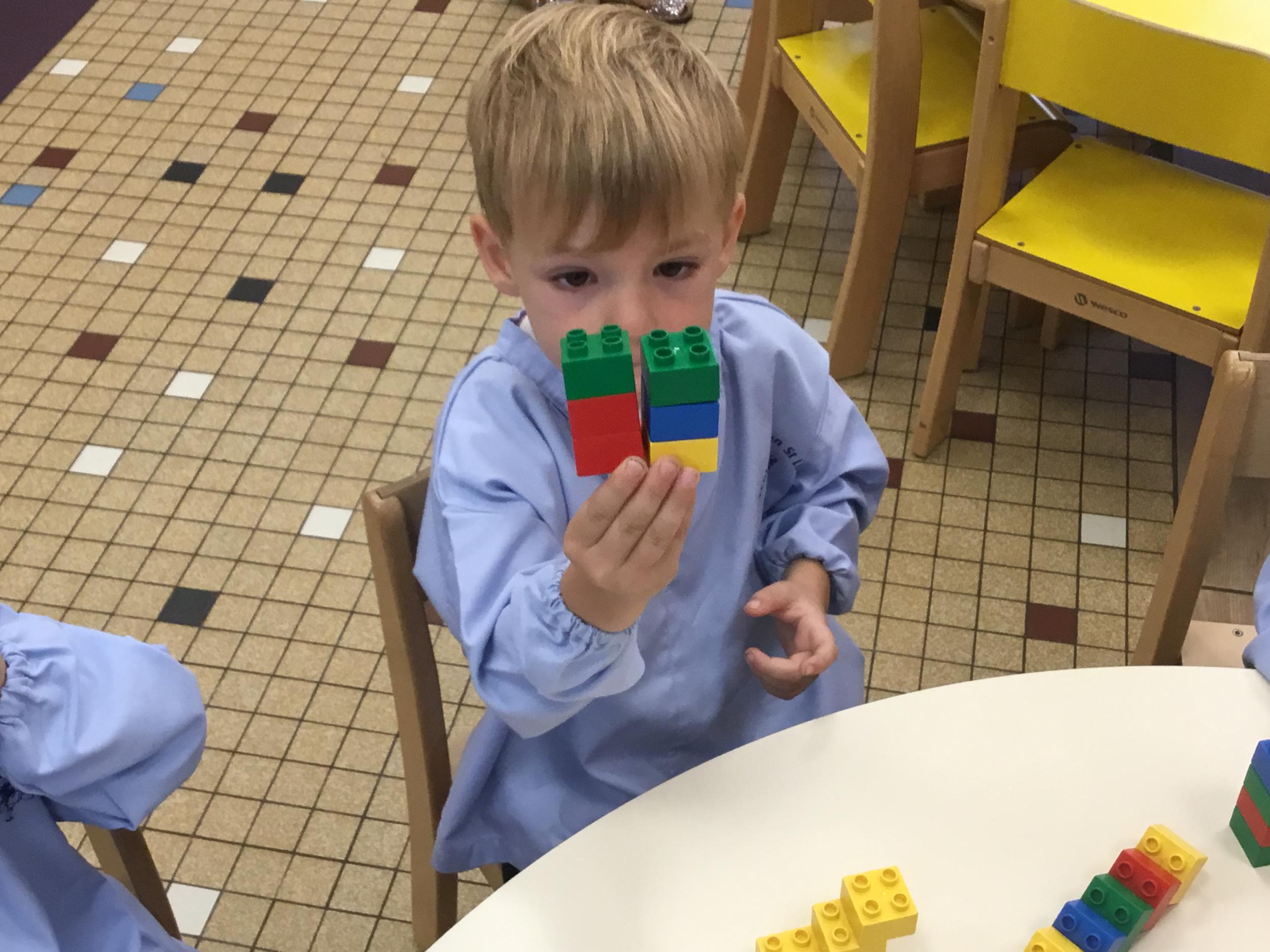 Avec les moyens, nous apprenons la numération en manipulant , en construisant des tours et des ponts avec des légos en les dénombrant et en les comparant. Ainsi, se crée la notion de « autant que , pas assez et/ou trop ».