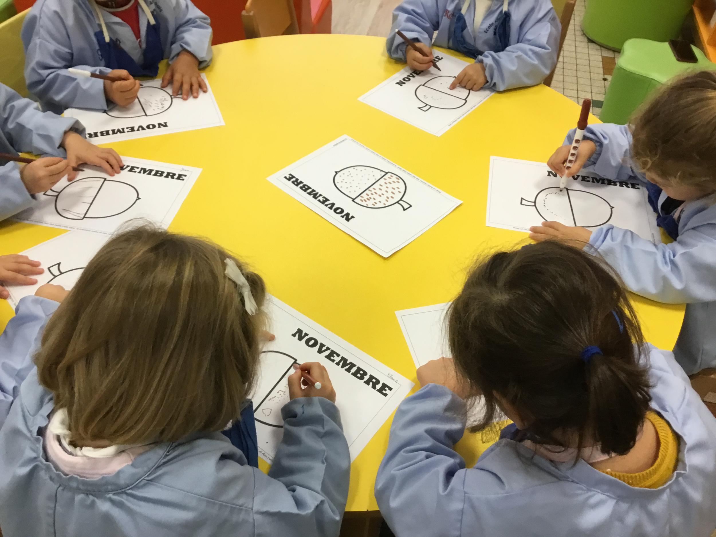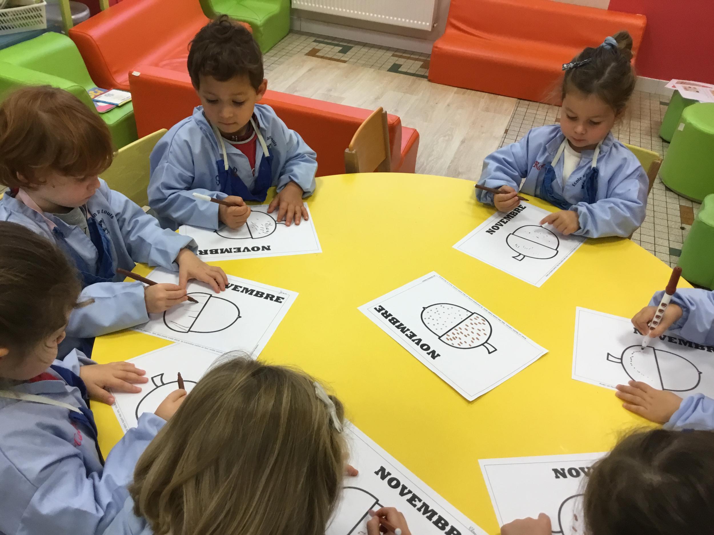 Atelier en autonomie : décorer le gland à l’aide de petits traits et de petits points