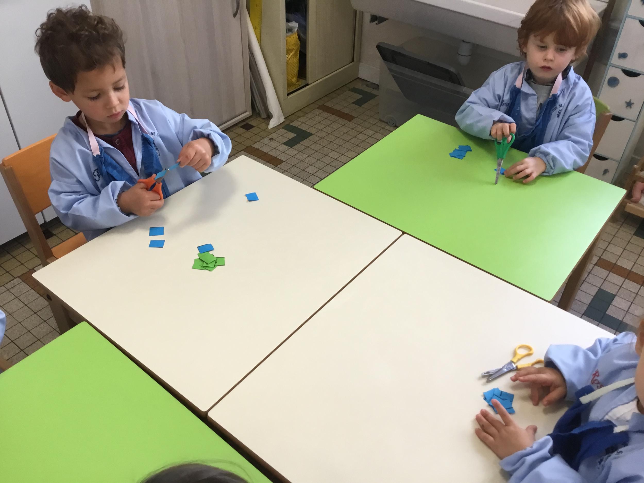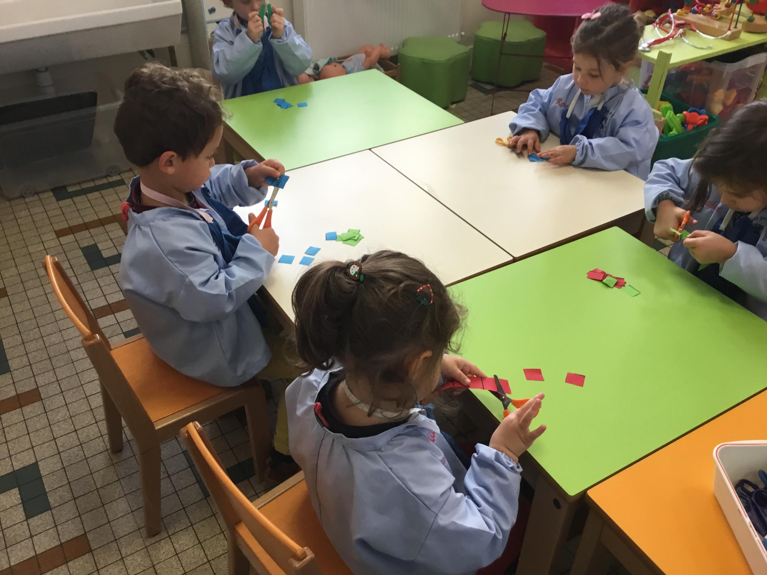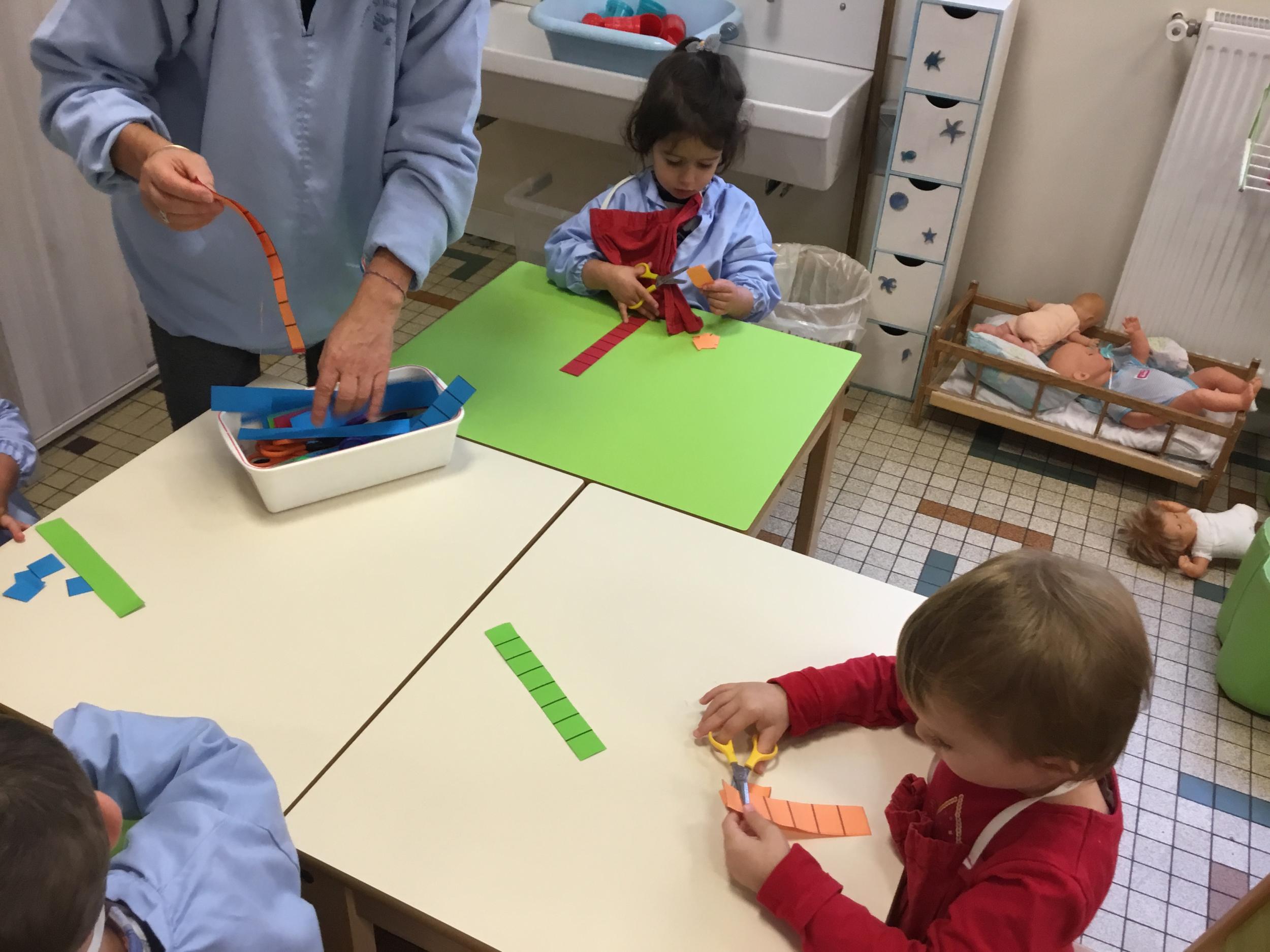 Atelier découpage: découper des bandes de papier en suivant le trait