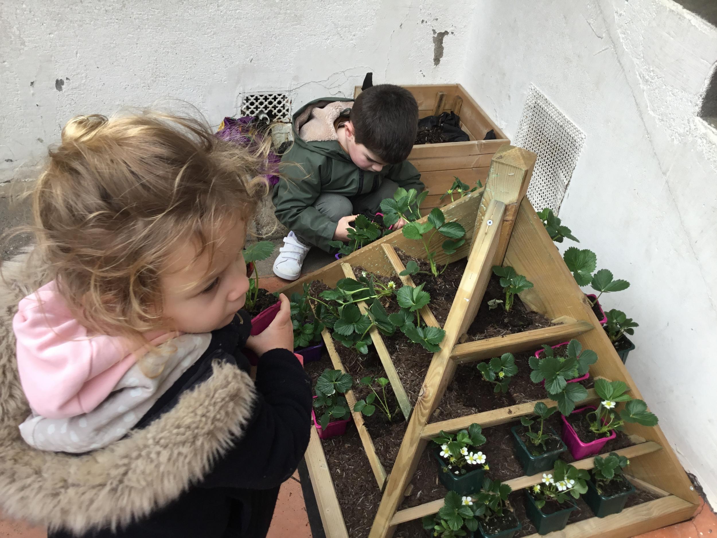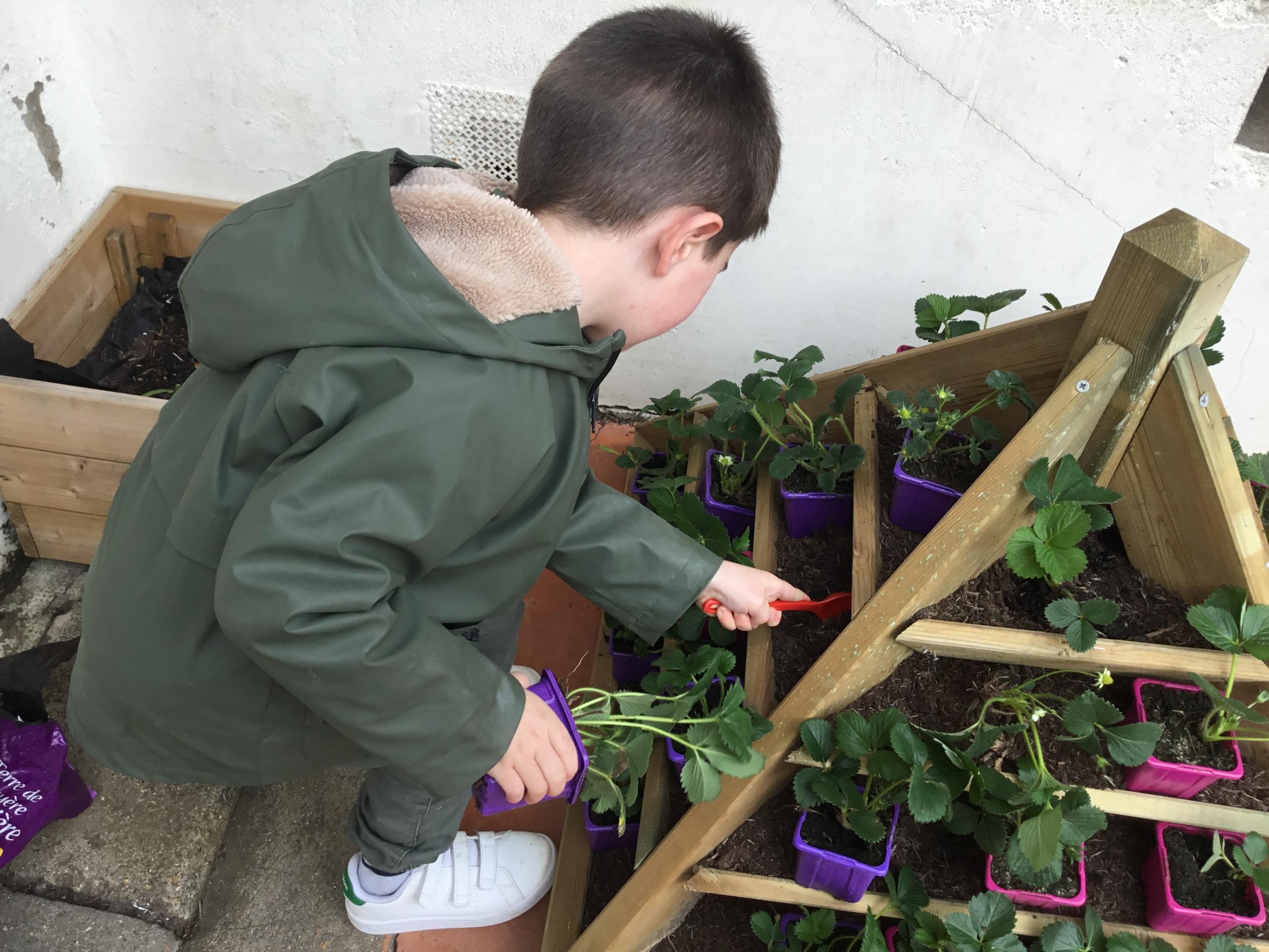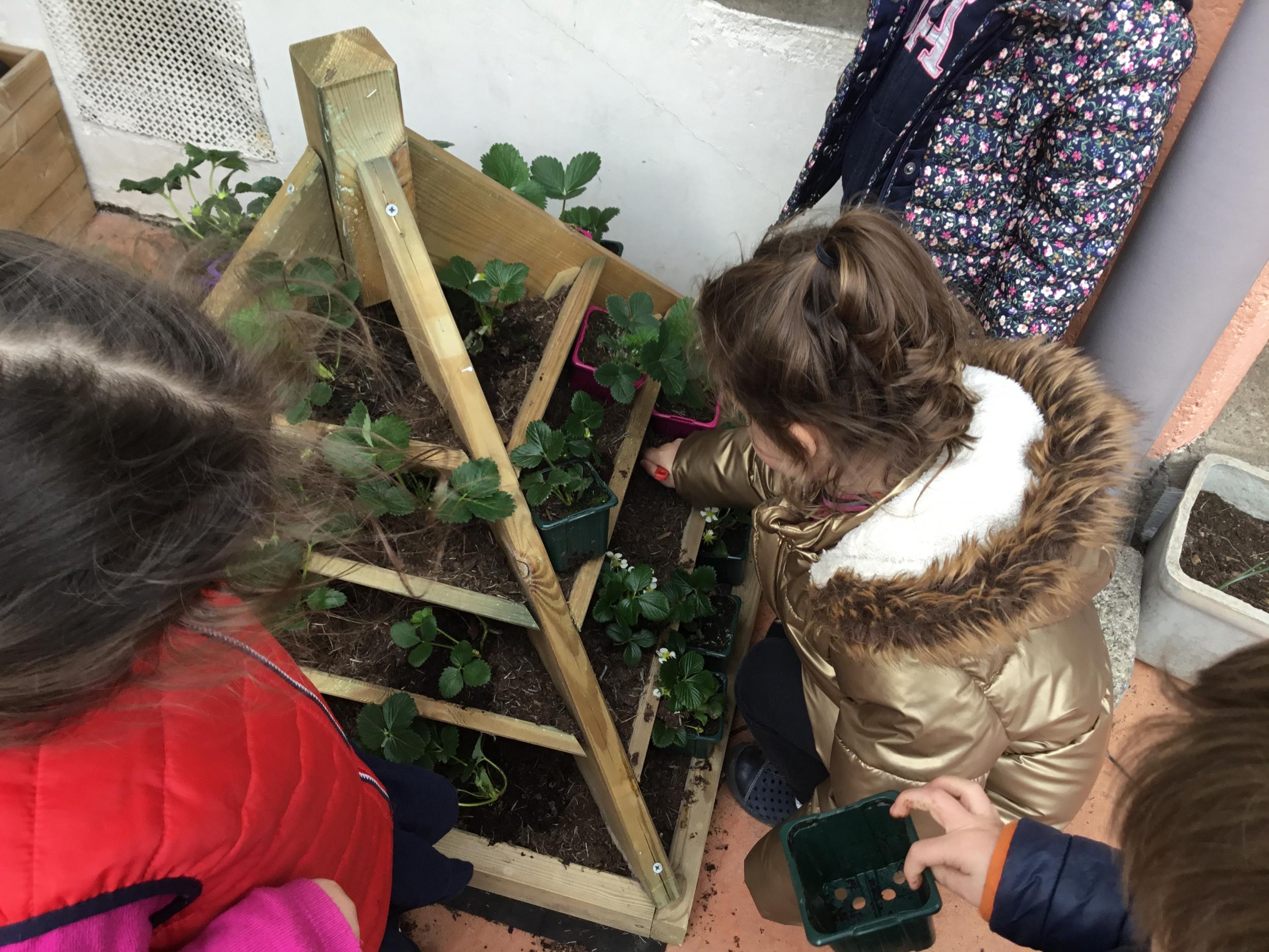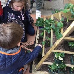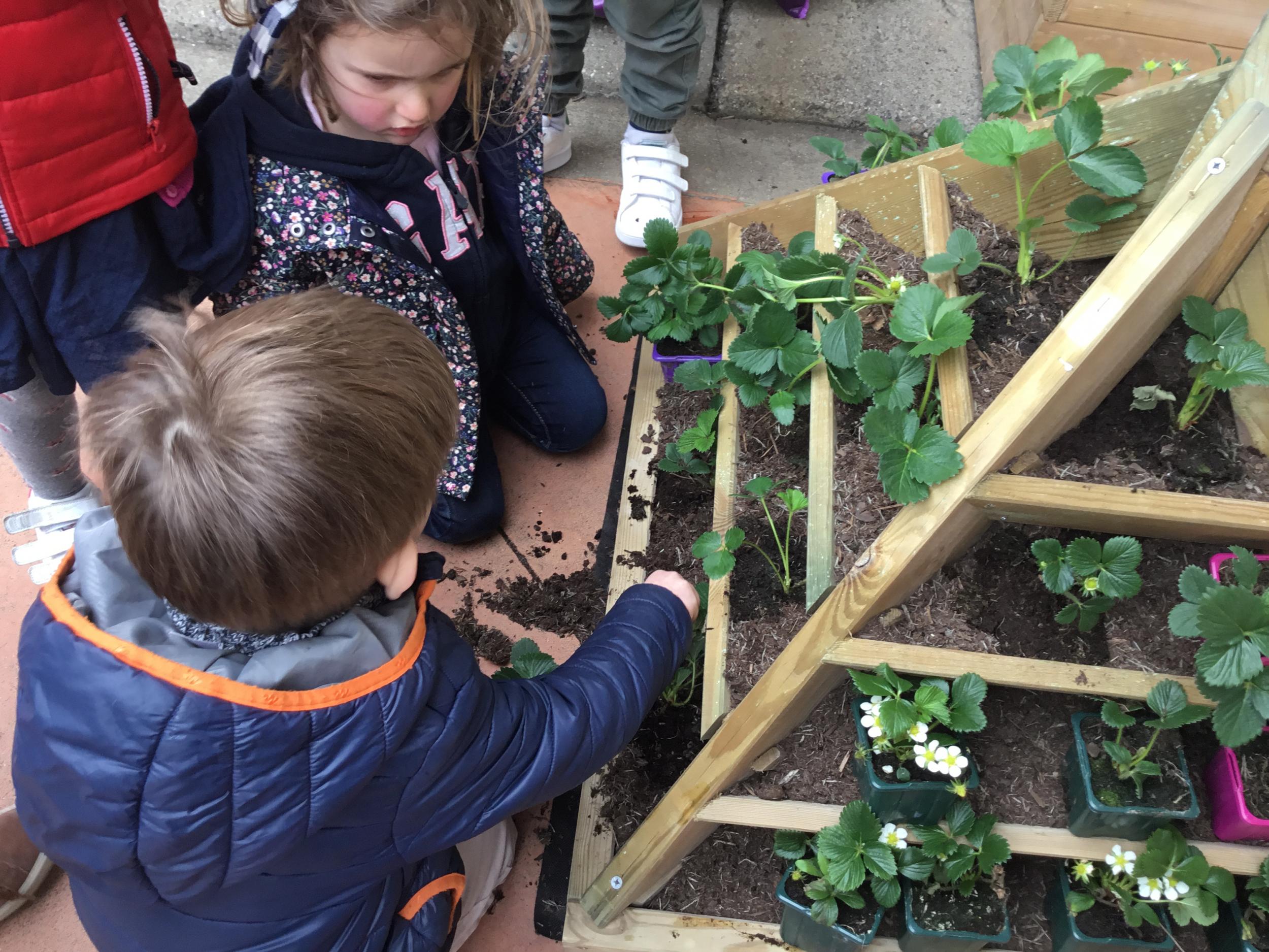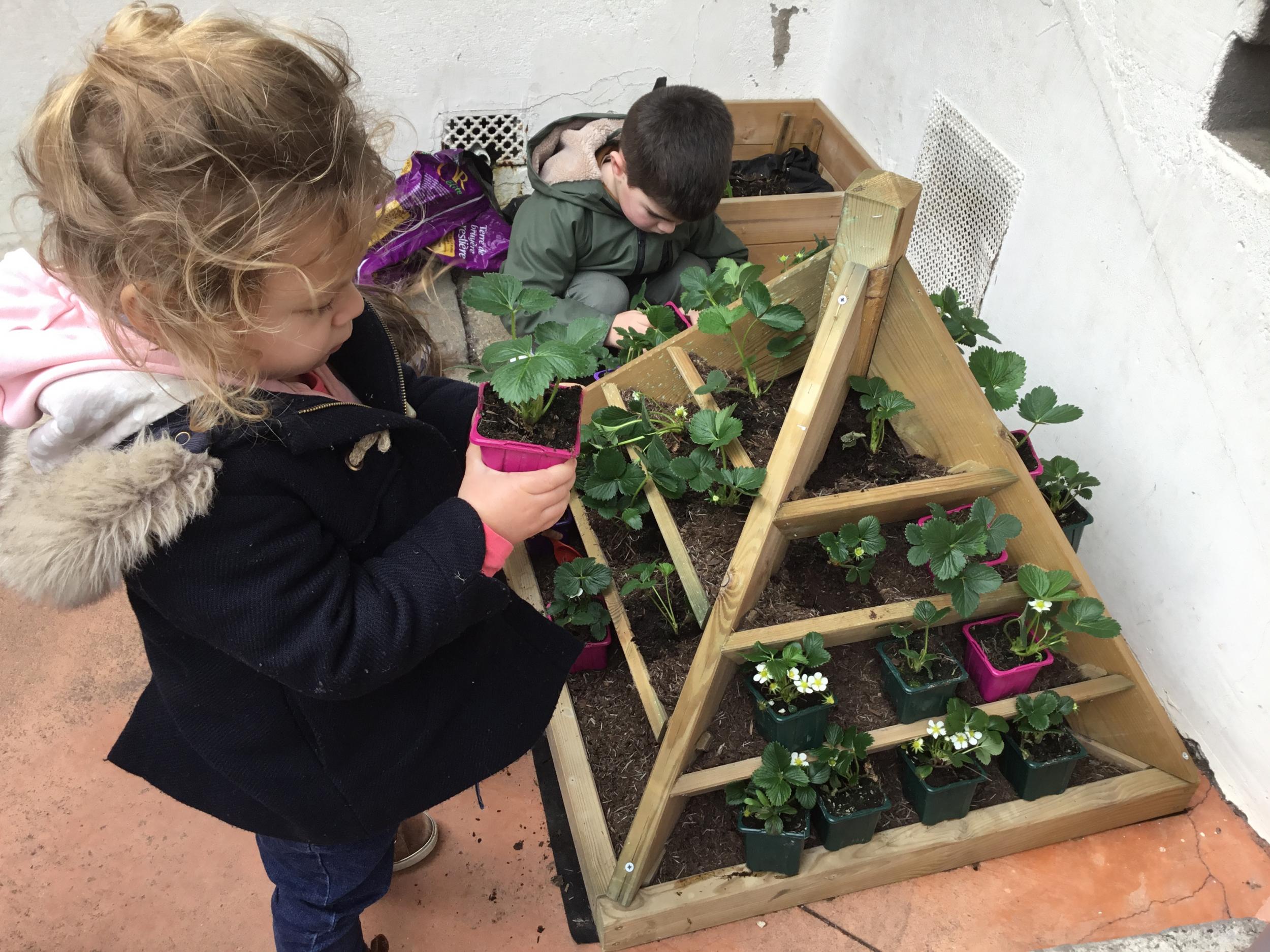 Petite et moyenne section 27/03/2022 Cette semaine, sous l’initiative de l’APEL, les élèves de petite section ont planté des fraisiers. Merci à l’entreprise RAGT.