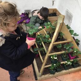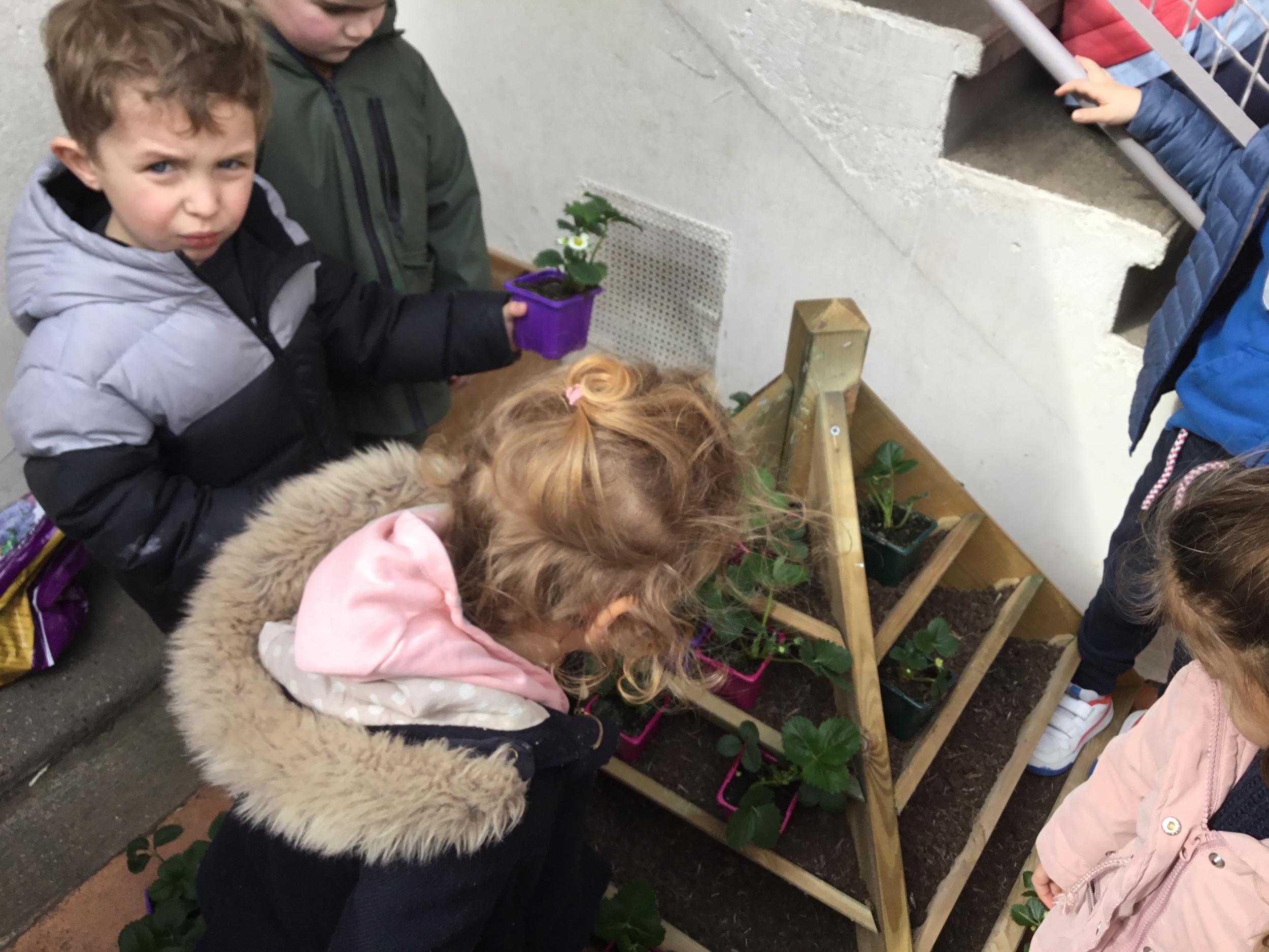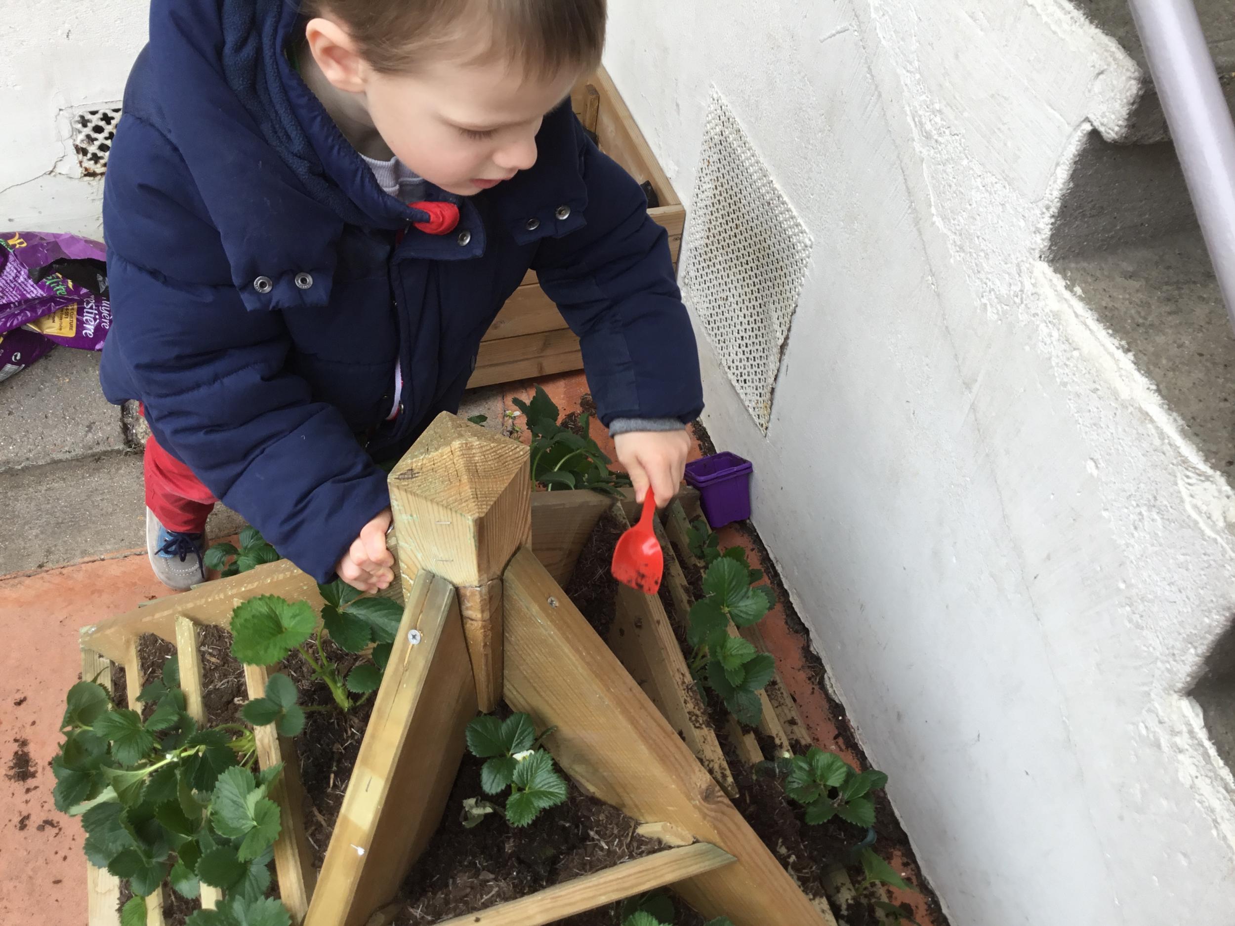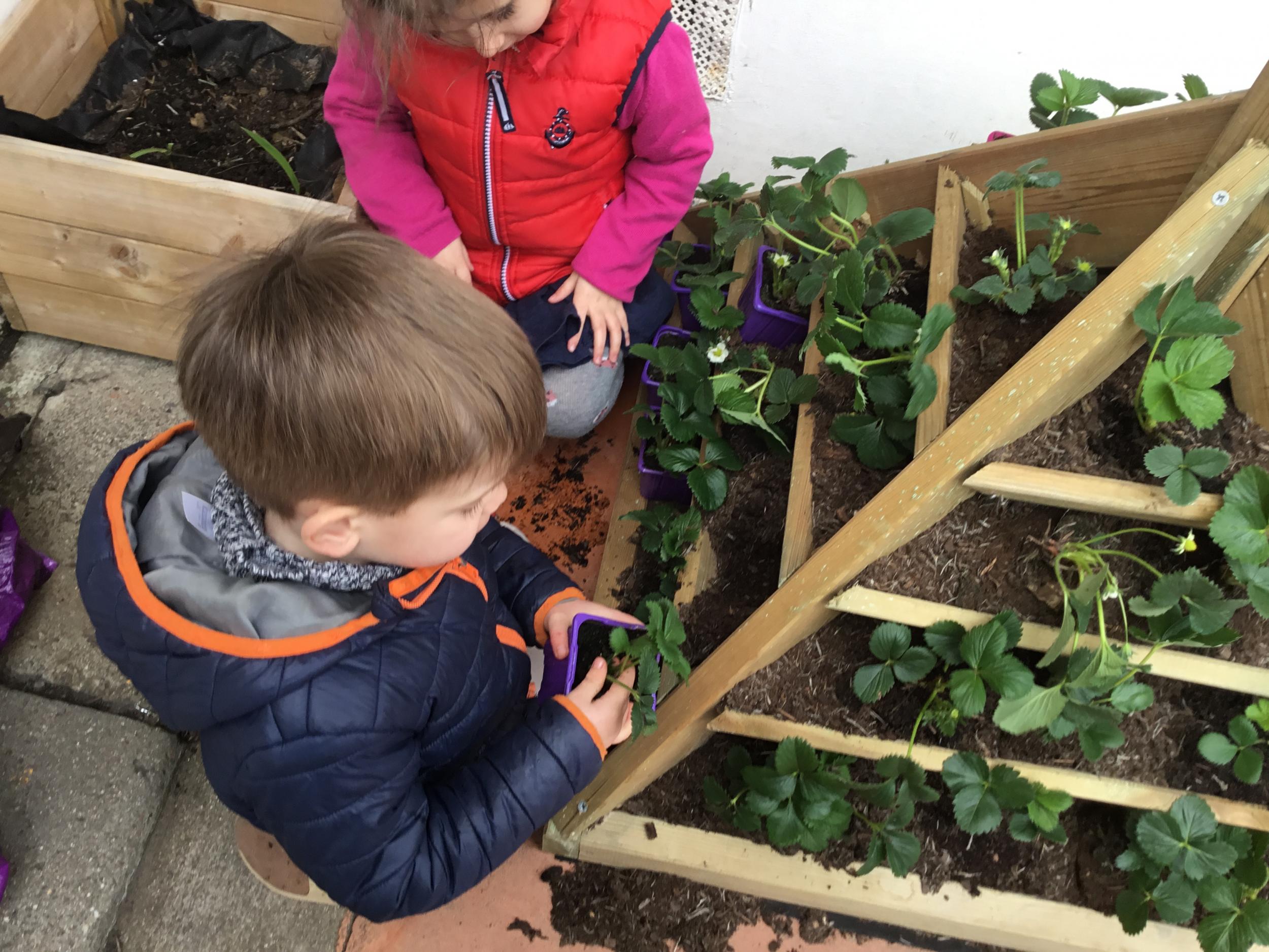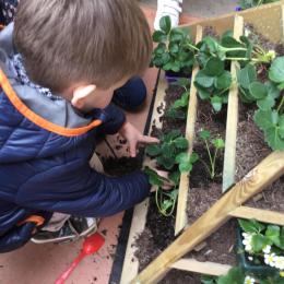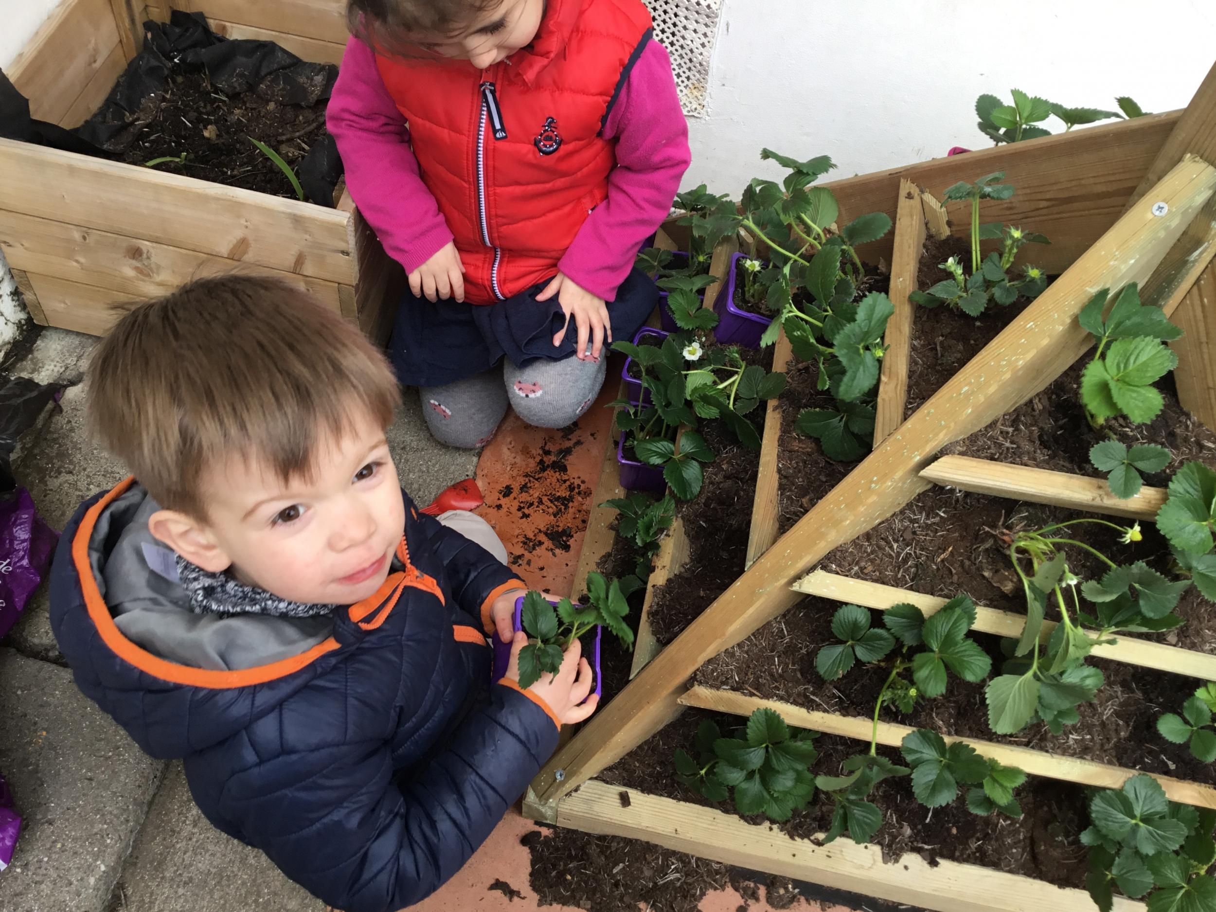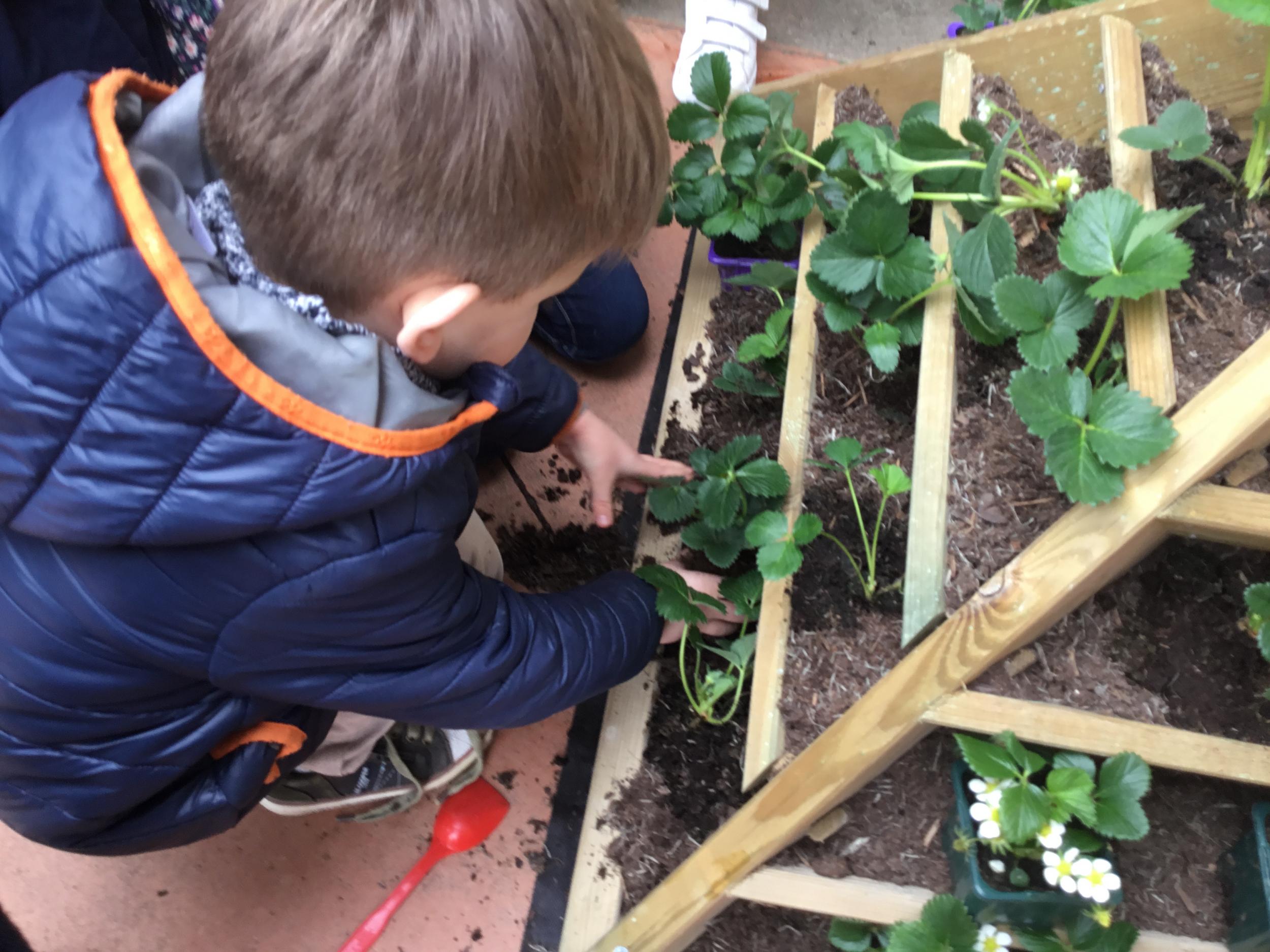 Petite et moyenne section 27/03/2022 Cette semaine, sous l’initiative de l’APEL, les élèves de petite section ont planté des fraisiers. Merci à l’entreprise RAGT.