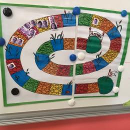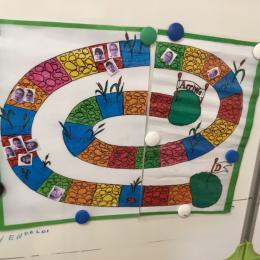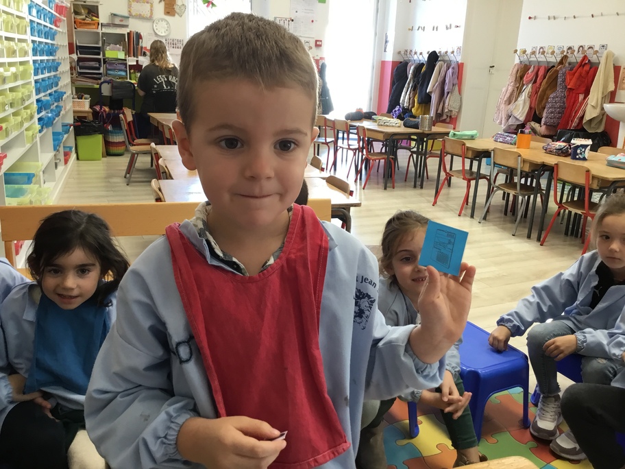 A la rentrée, nous avons abordé un nouveau thème en phonologie : les syllabes. Après avoir découvert le "langage robot" où l'on parle en détachant chaque syllabe, nous avons joué à la marelle en colimaçon. A tour de rôle, les élèves tirent une carte. Ils doivent trouver le nombre de syllabes du mot dessiné et avancer sur la marelle d'autant de cases. Mais attention aux cases de la rivière : quand on s'arrête dessus, on fait "plouf dans l'eau" et on doit reculer d'une case!