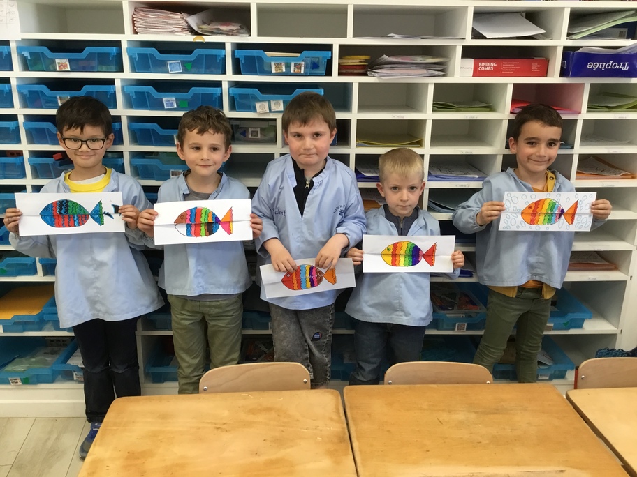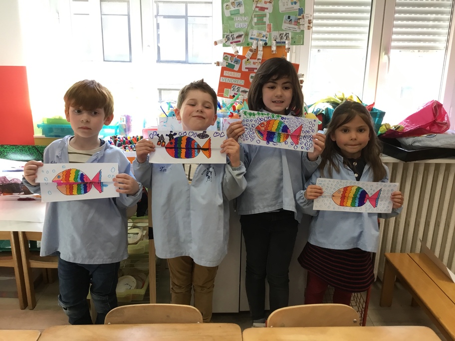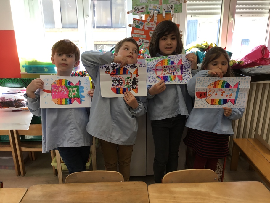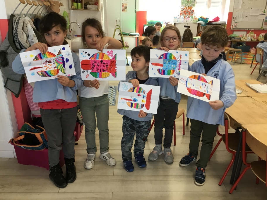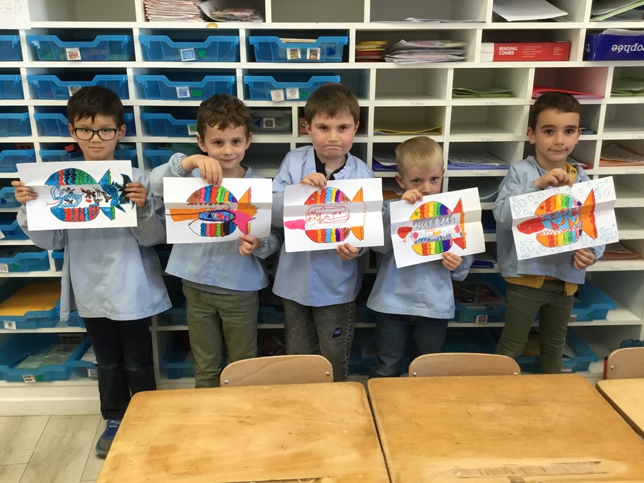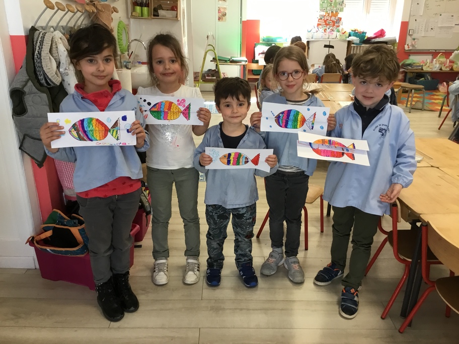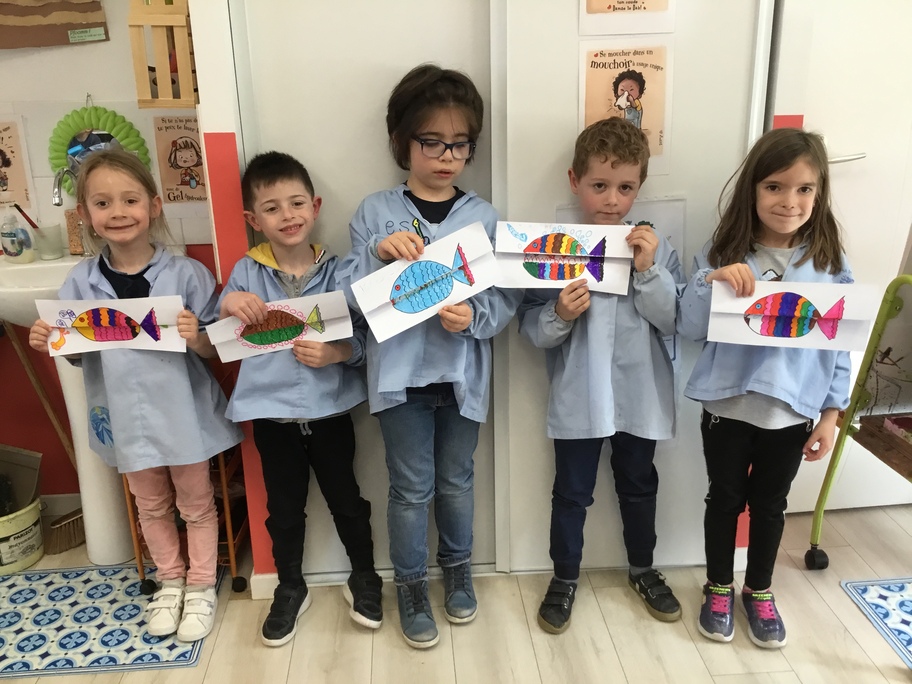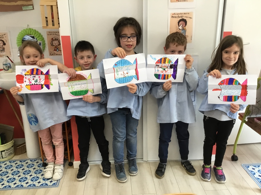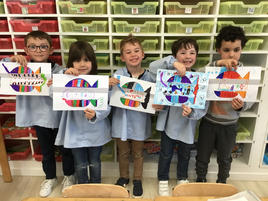 Pour favoriser leur imagination, chacun a décoré un poisson qui en se dépliant, révèle ce qu'il a englouti!