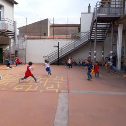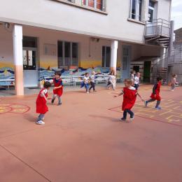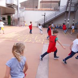 Avec enfin un peu de fraîcheur qui arrive, nous avons pu investir la cour pour des jeux sportifs (les semaines précédentes étant trop chaudes pour courir dehors!)