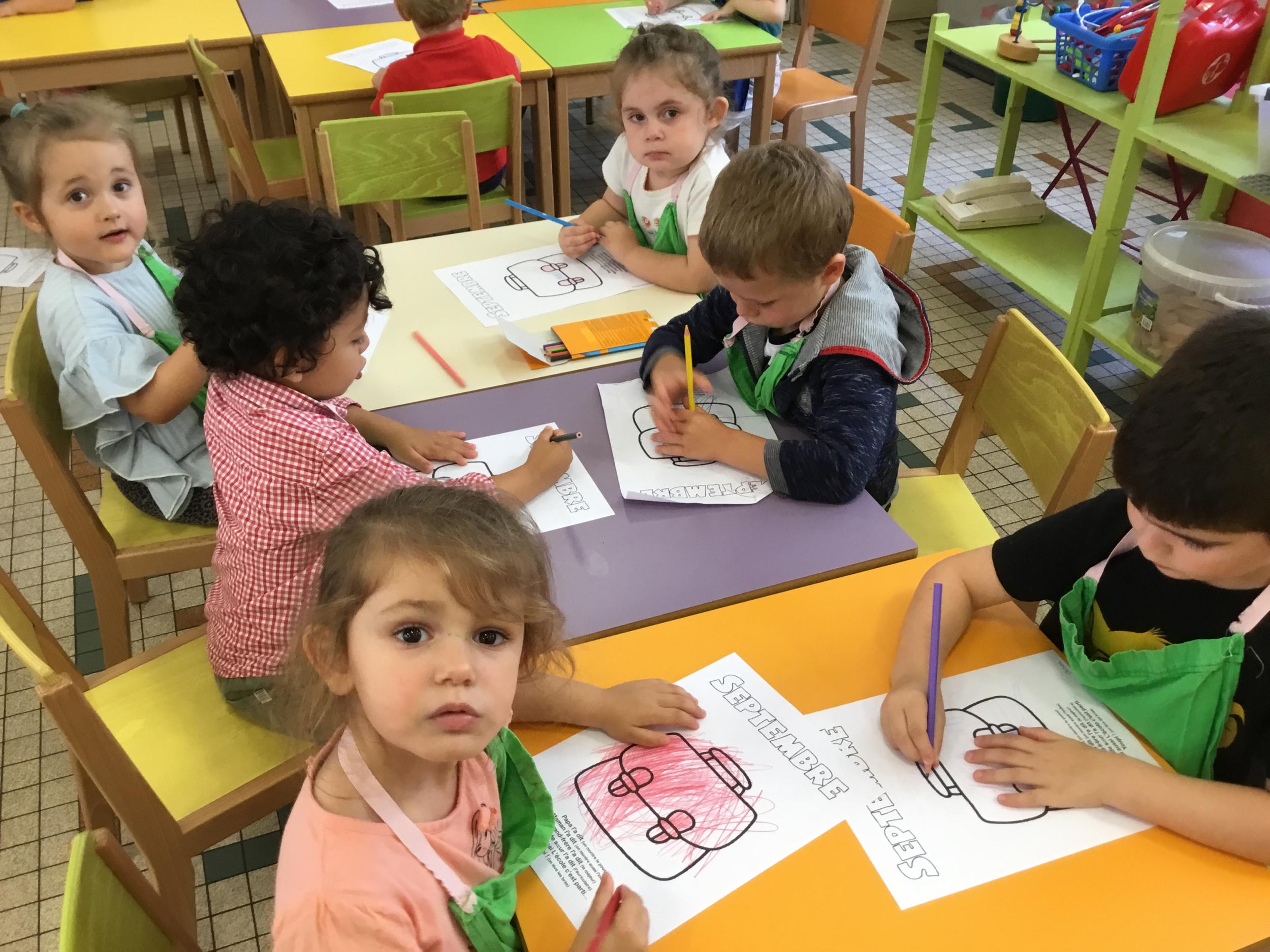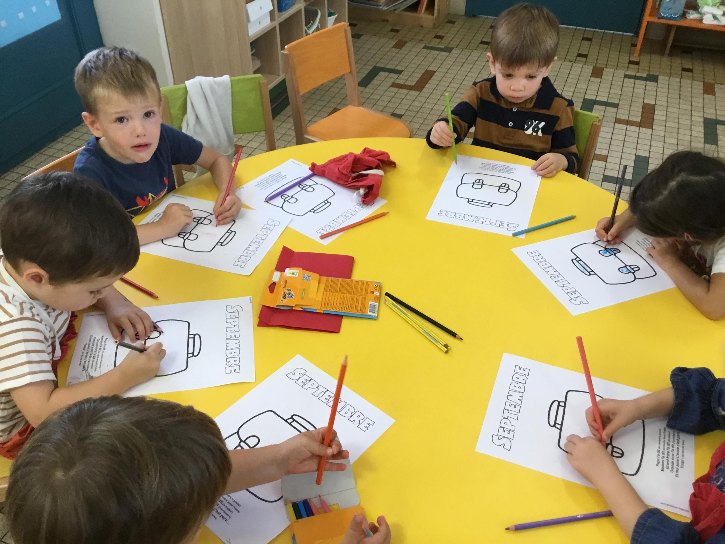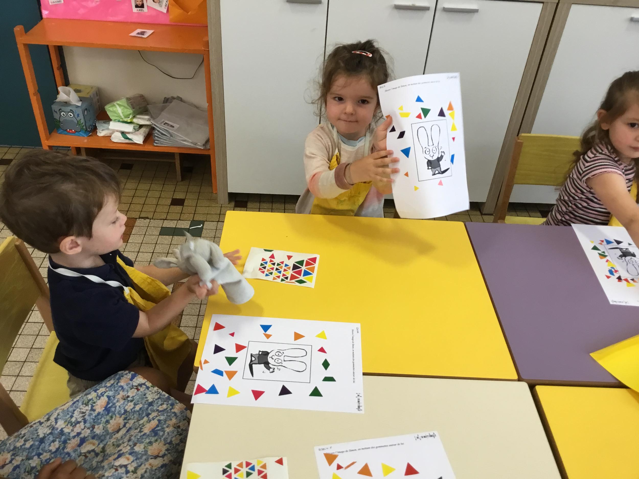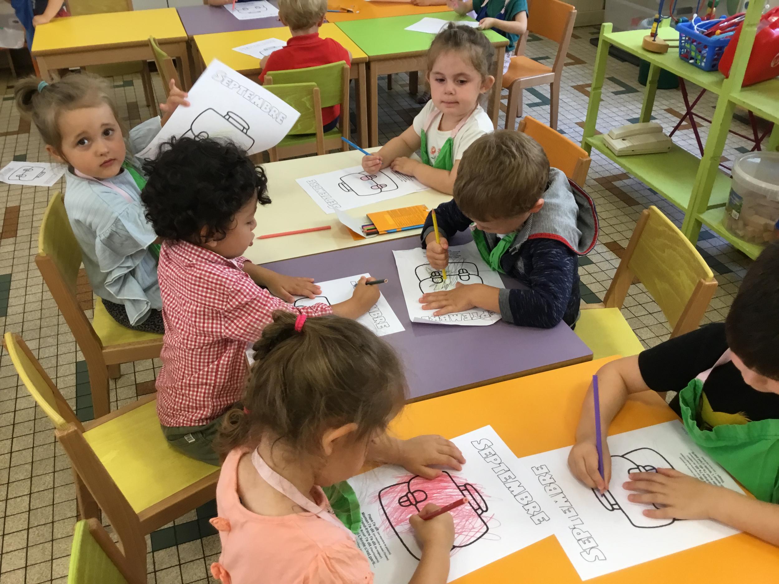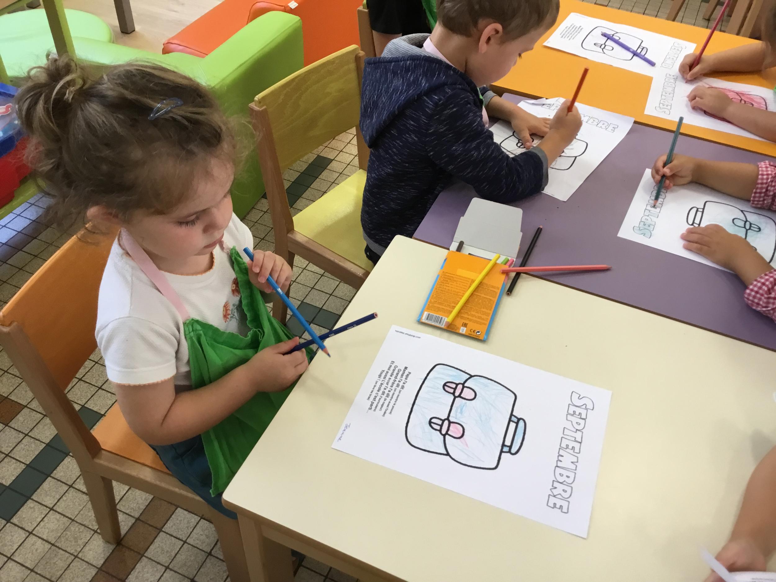 Petite et moyenne section 19/09/2021 Découverte de l’album « je ne veux pas aller à l’école » Première comptine Le petit train pour changer d’activité dans le calme Ateliers d’apprentissage : coller des gommettes AUTOUR DE Simon, coloriage et observation de la tenue du crayon