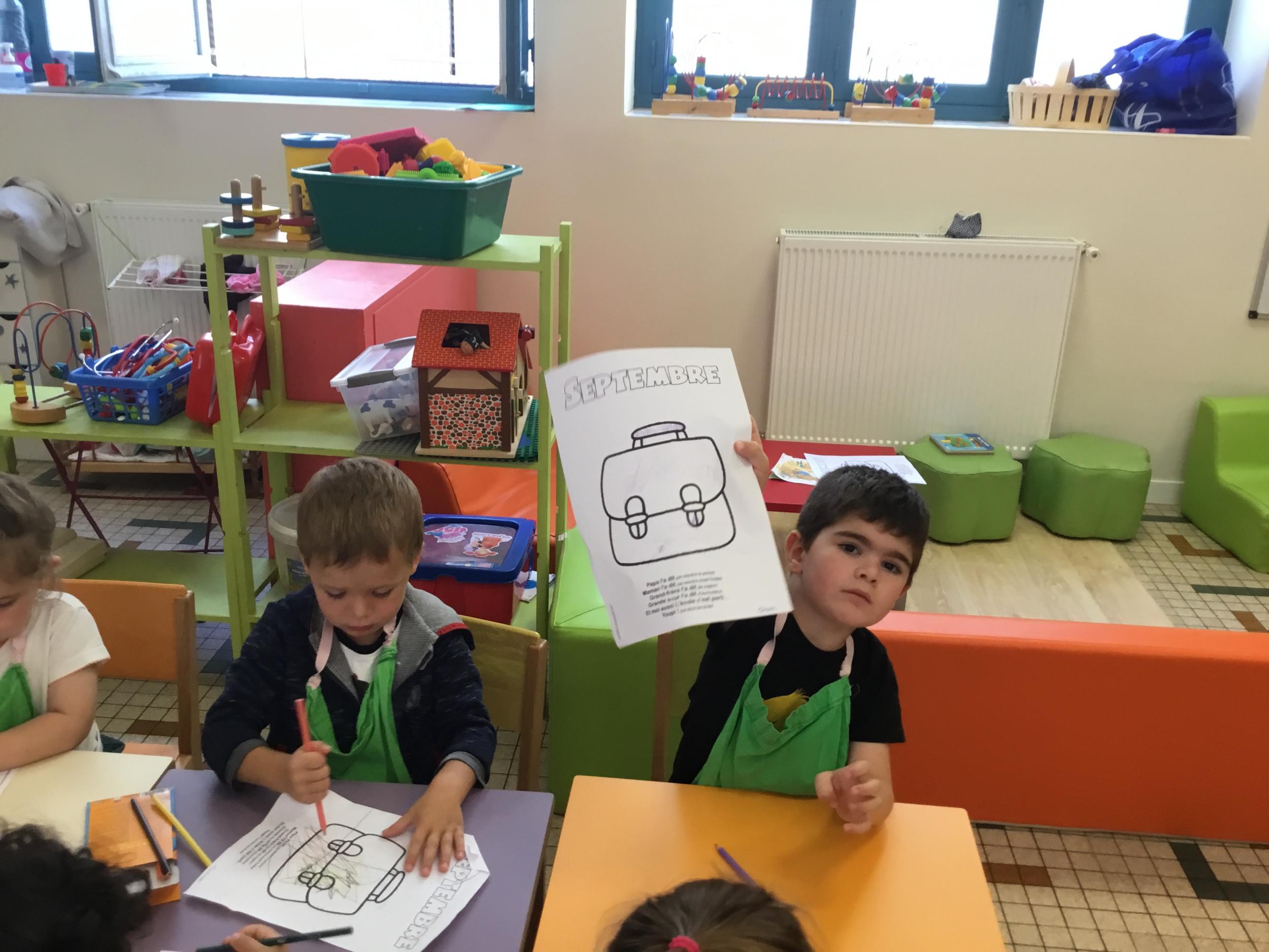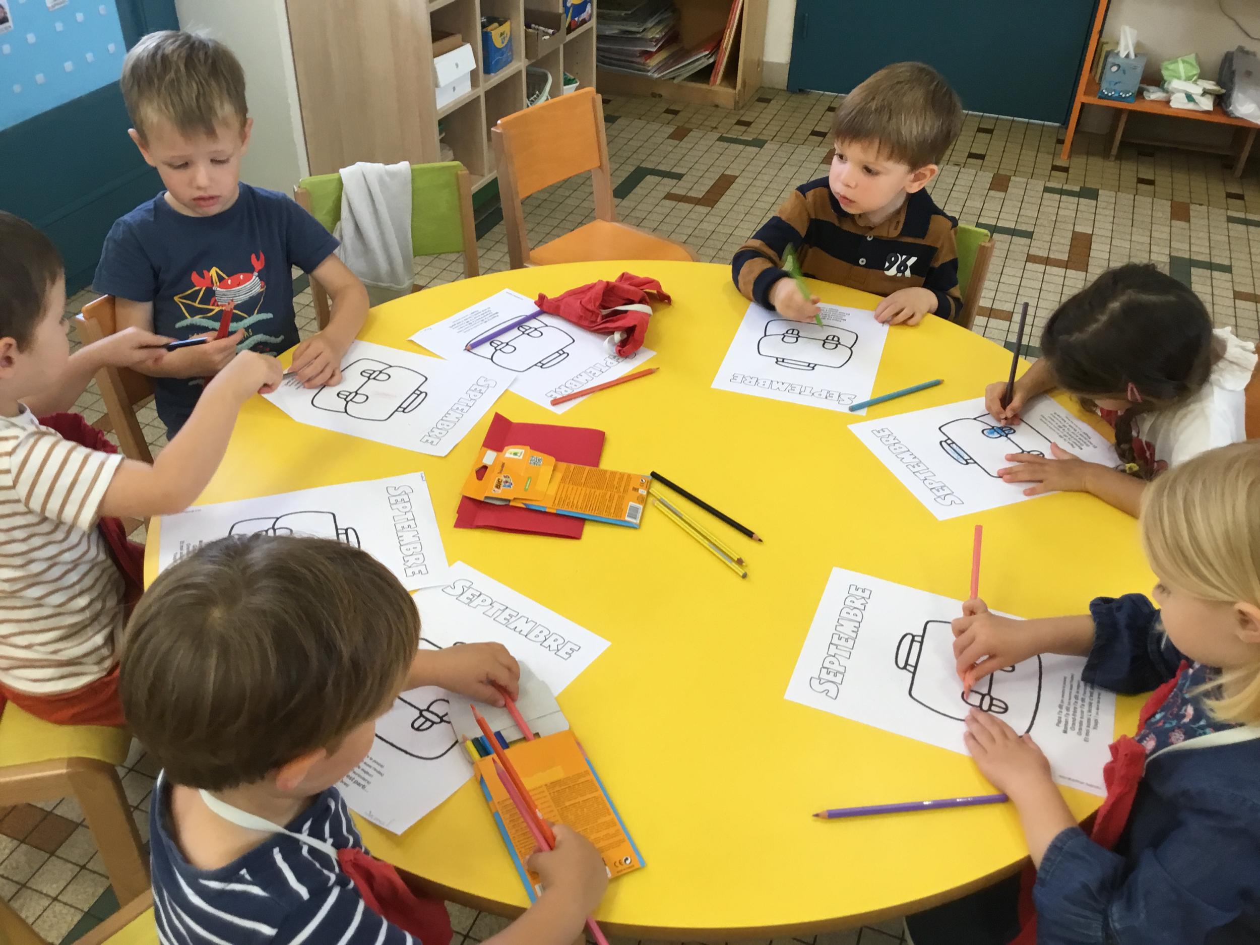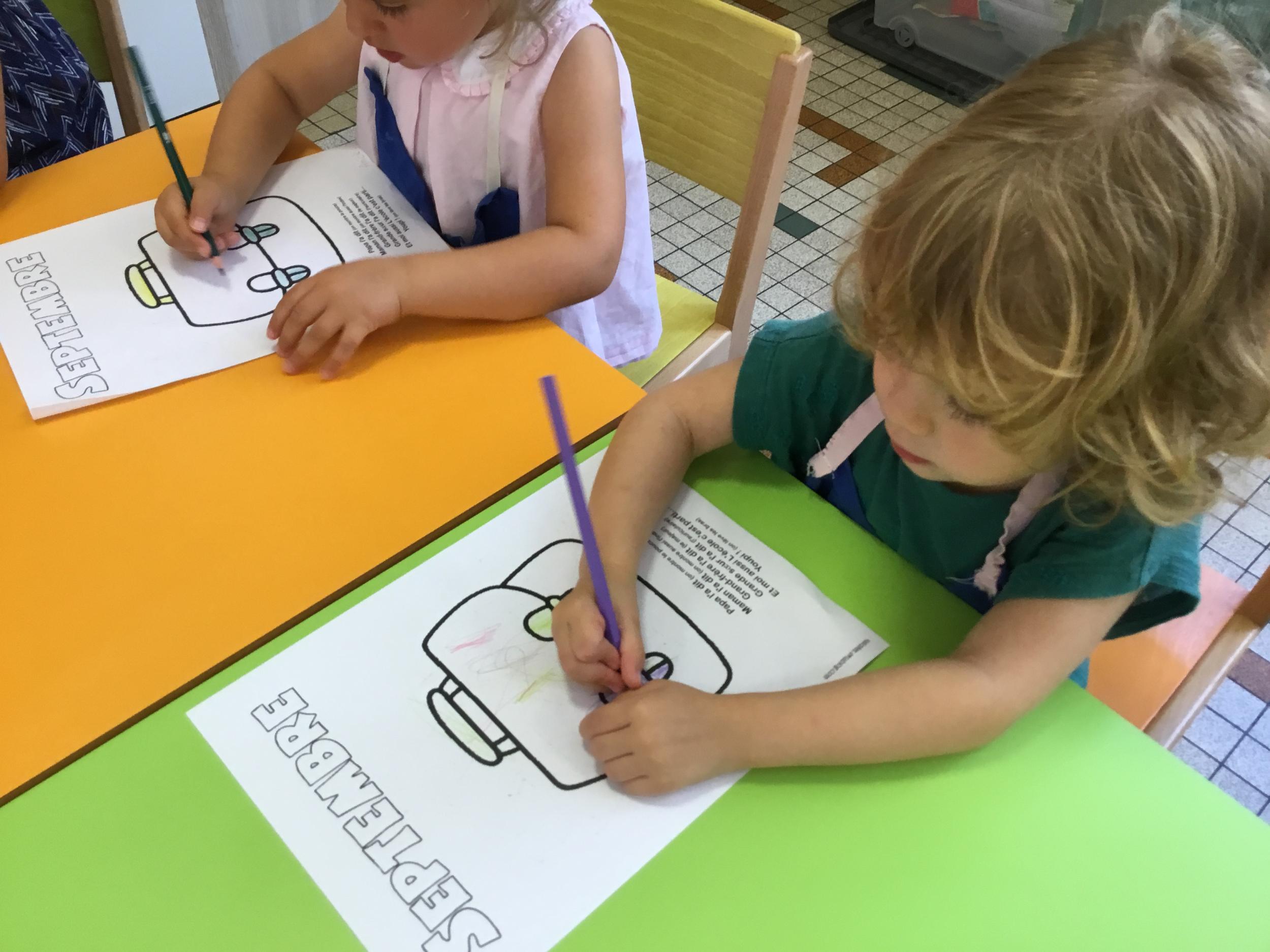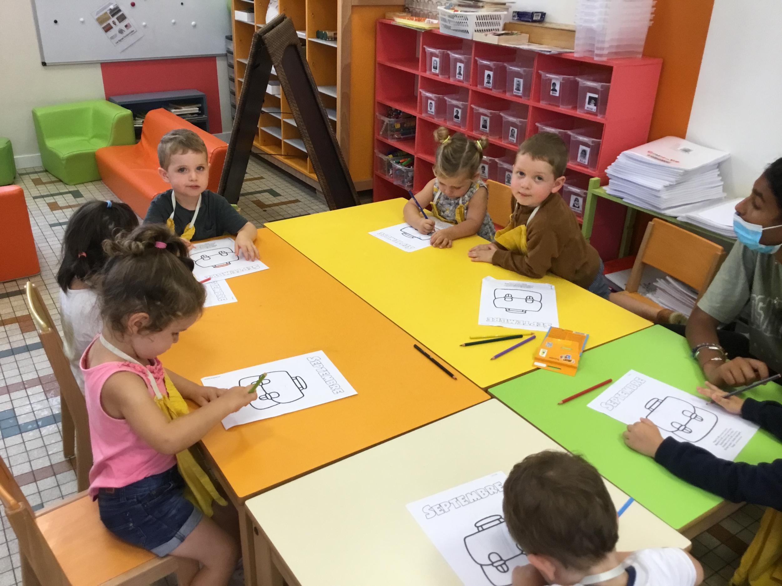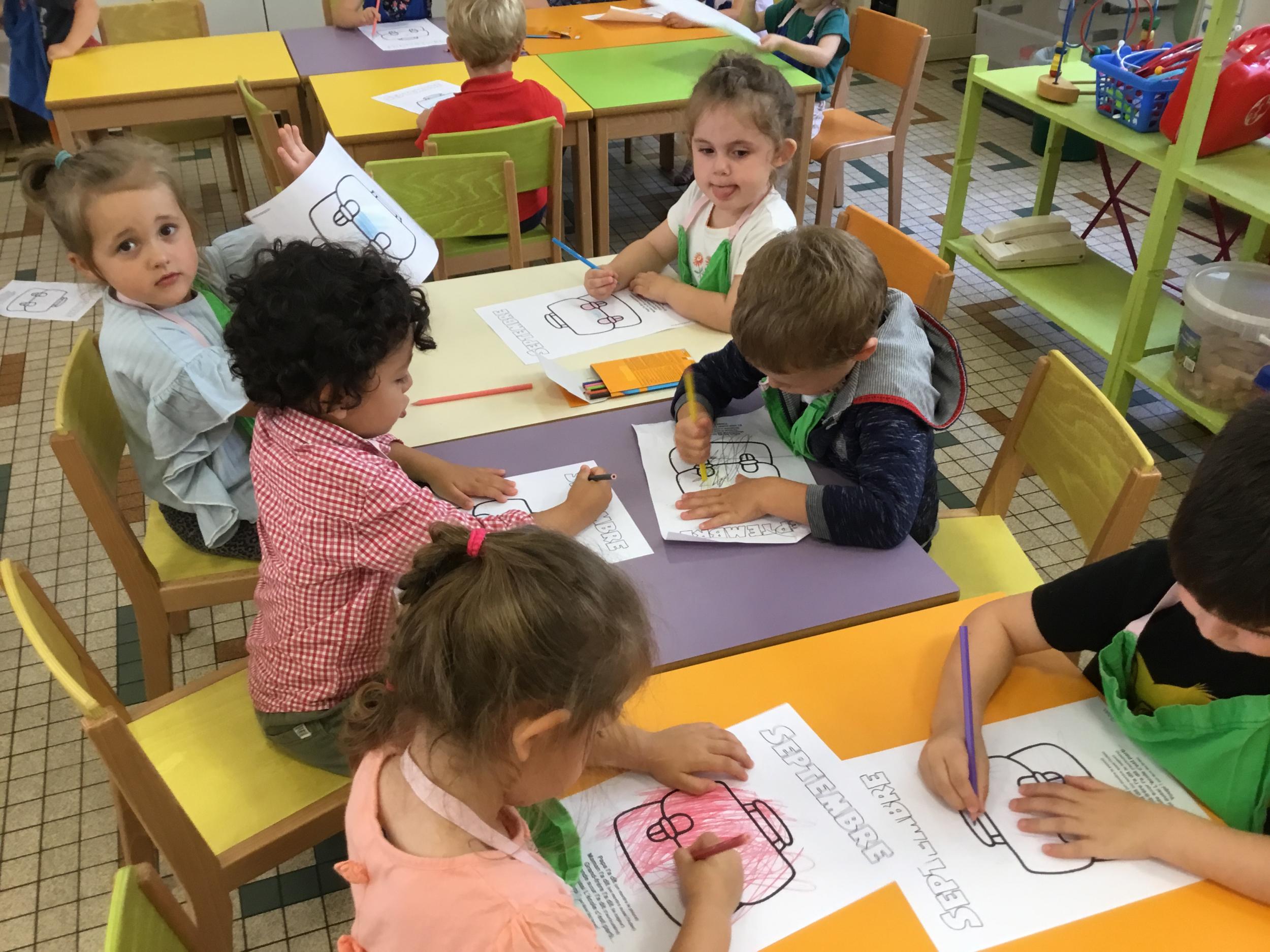 Petite et moyenne section 19/09/2021 Découverte de l’album « je ne veux pas aller à l’école » Première comptine Le petit train pour changer d’activité dans le calme Ateliers d’apprentissage : coller des gommettes AUTOUR DE Simon, coloriage et observation de la tenue du crayon