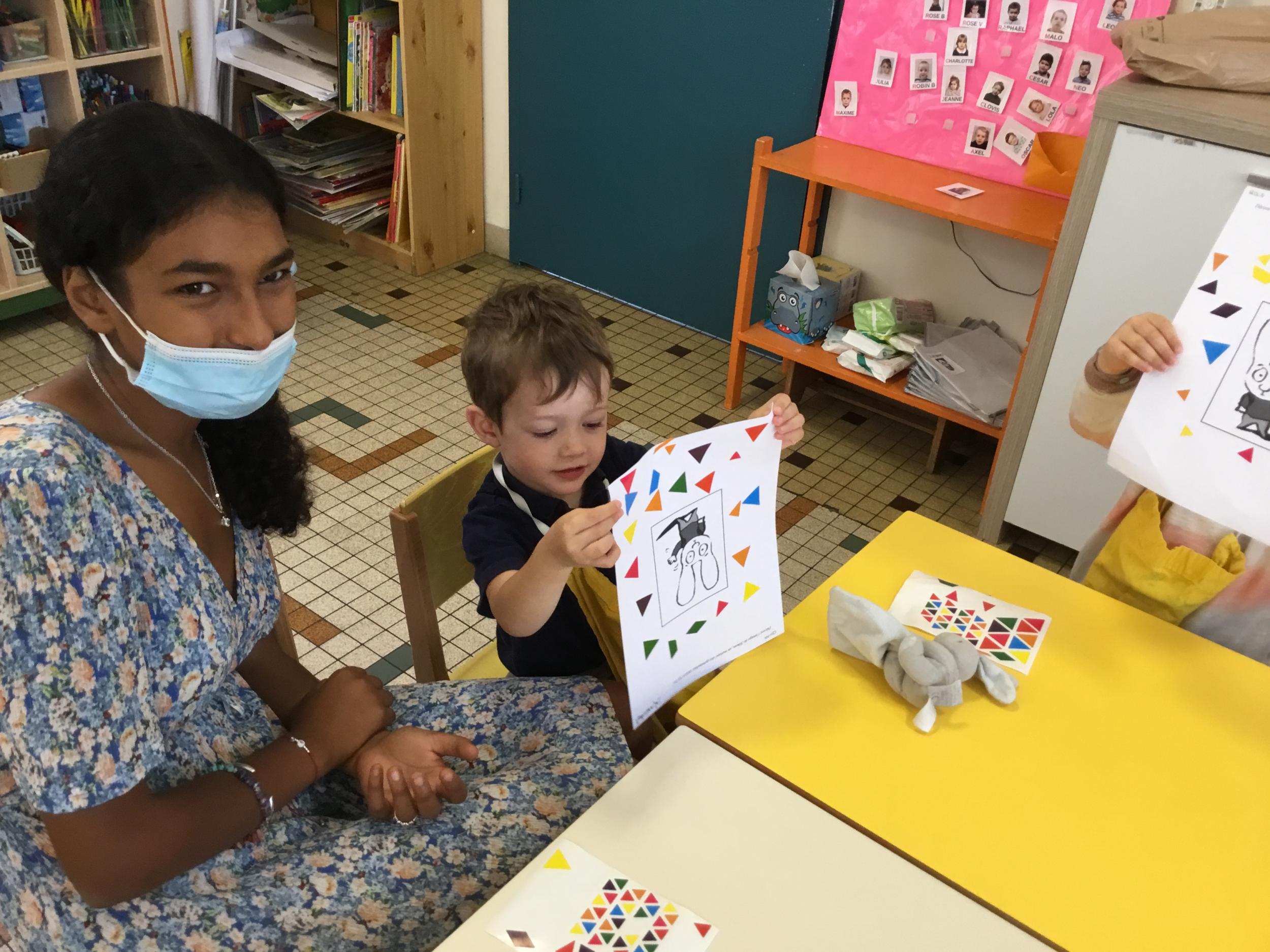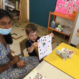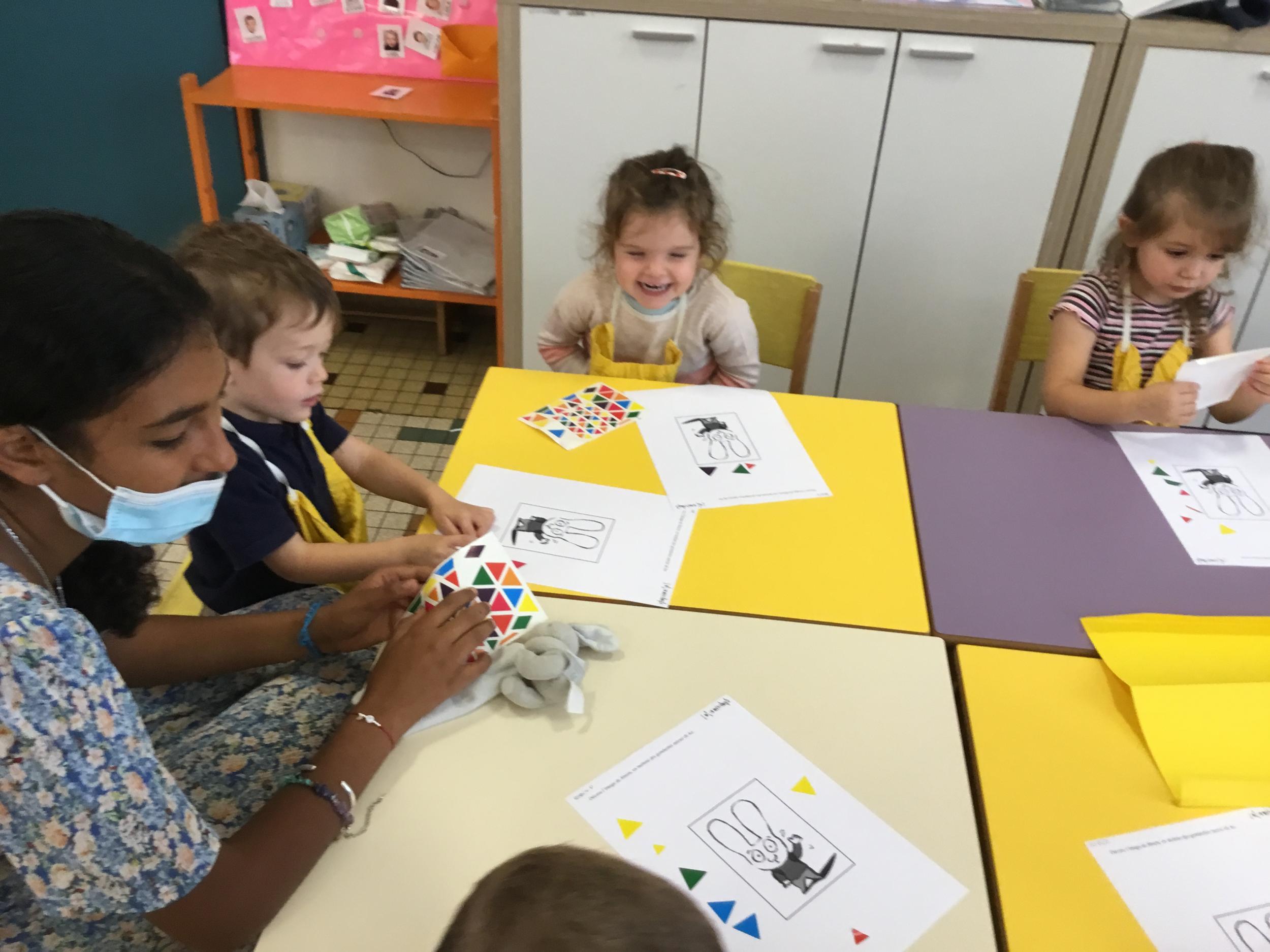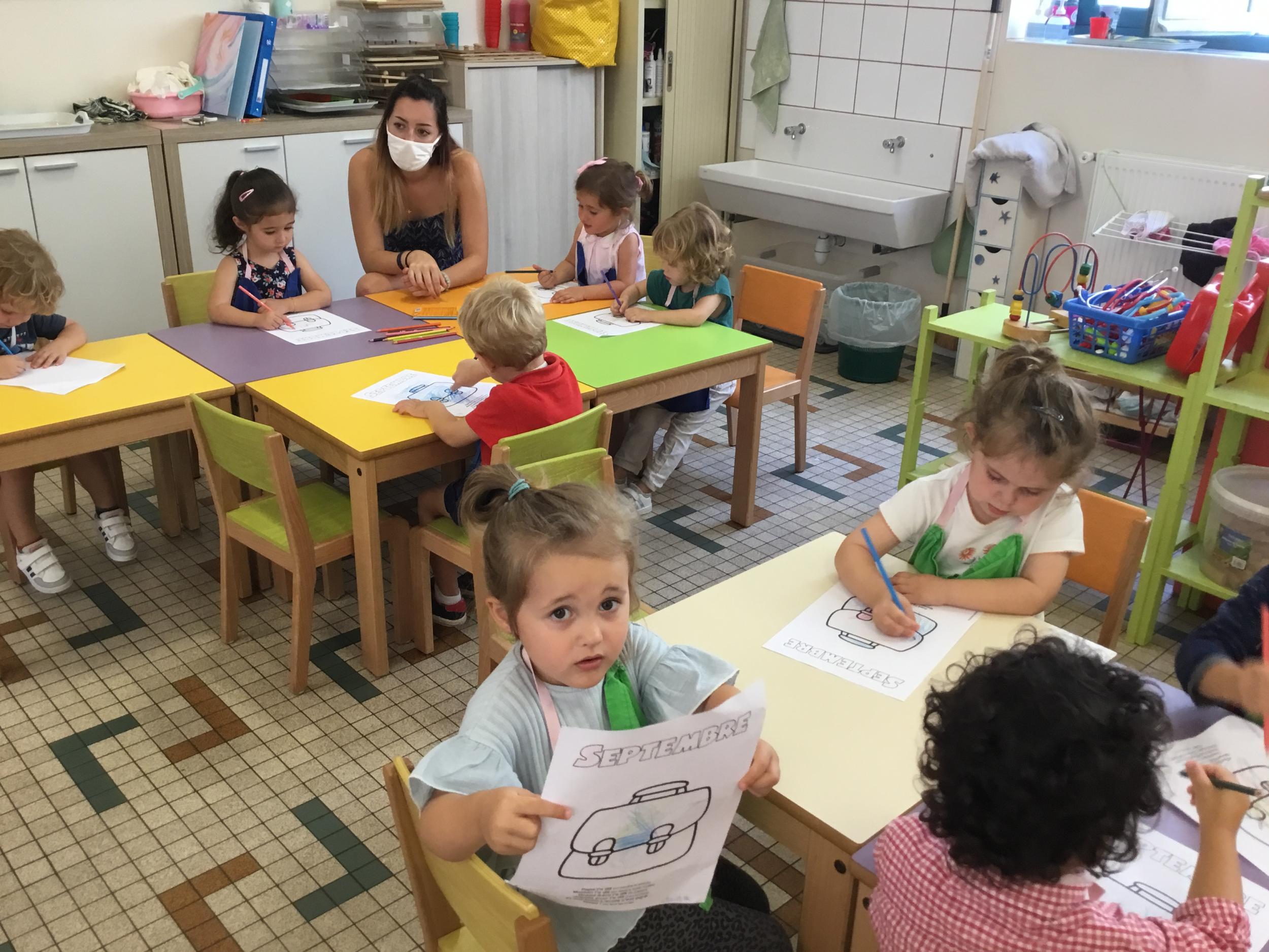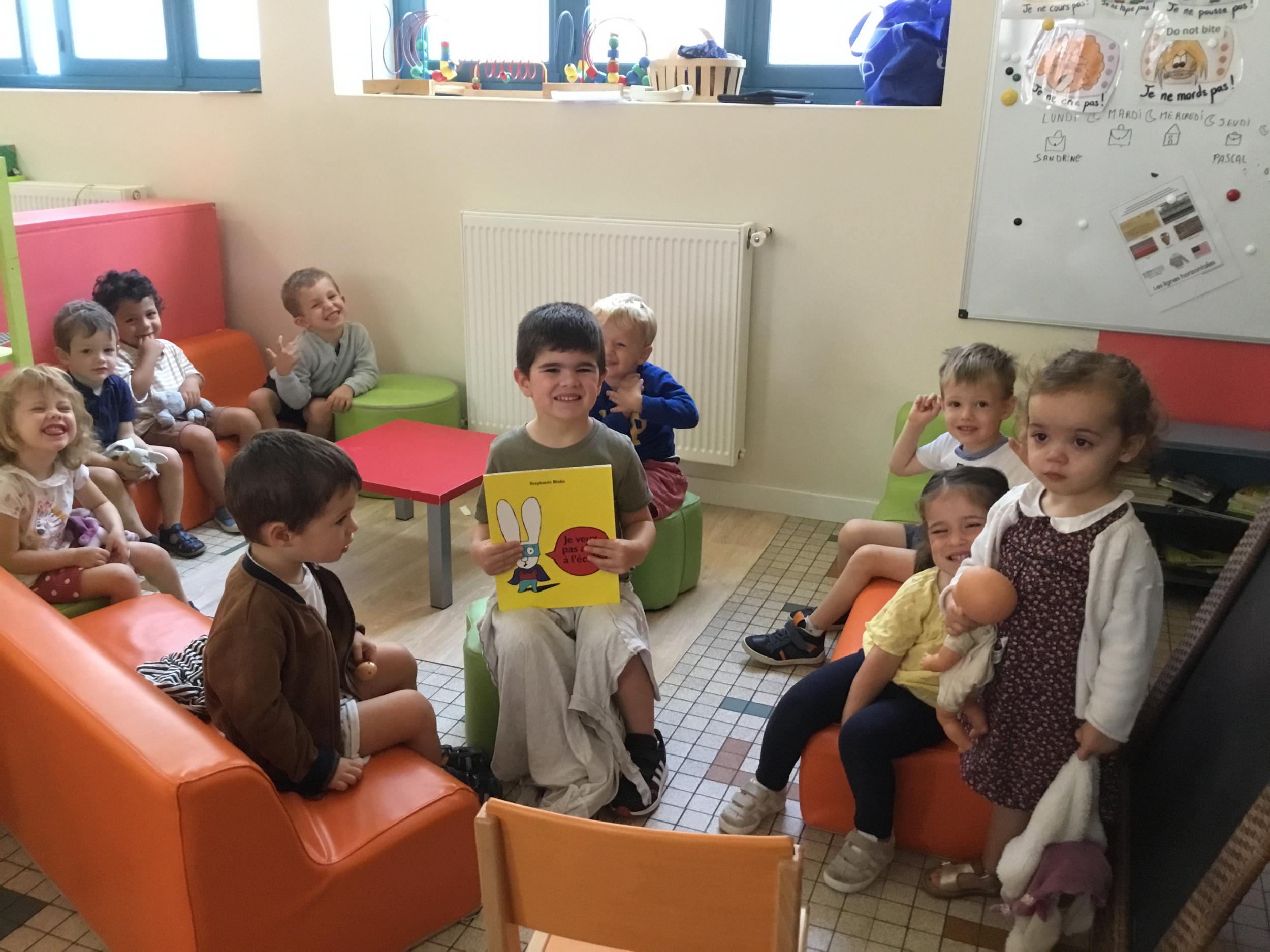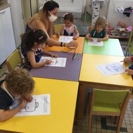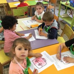 Petite et moyenne section 19/09/2021 Découverte de l’album « je ne veux pas aller à l’école » Première comptine Le petit train pour changer d’activité dans le calme Ateliers d’apprentissage : coller des gommettes AUTOUR DE Simon, coloriage et observation de la tenue du crayon