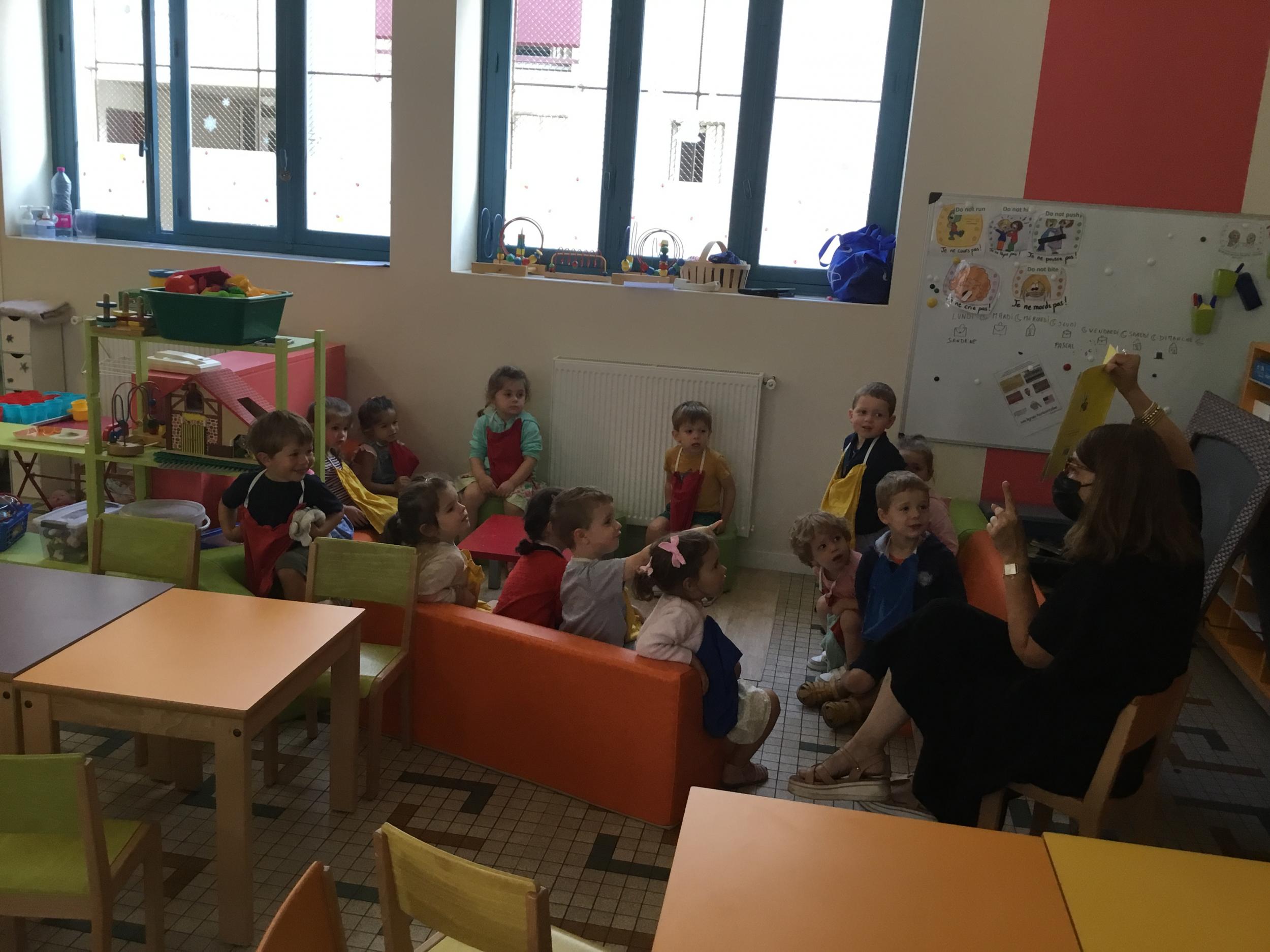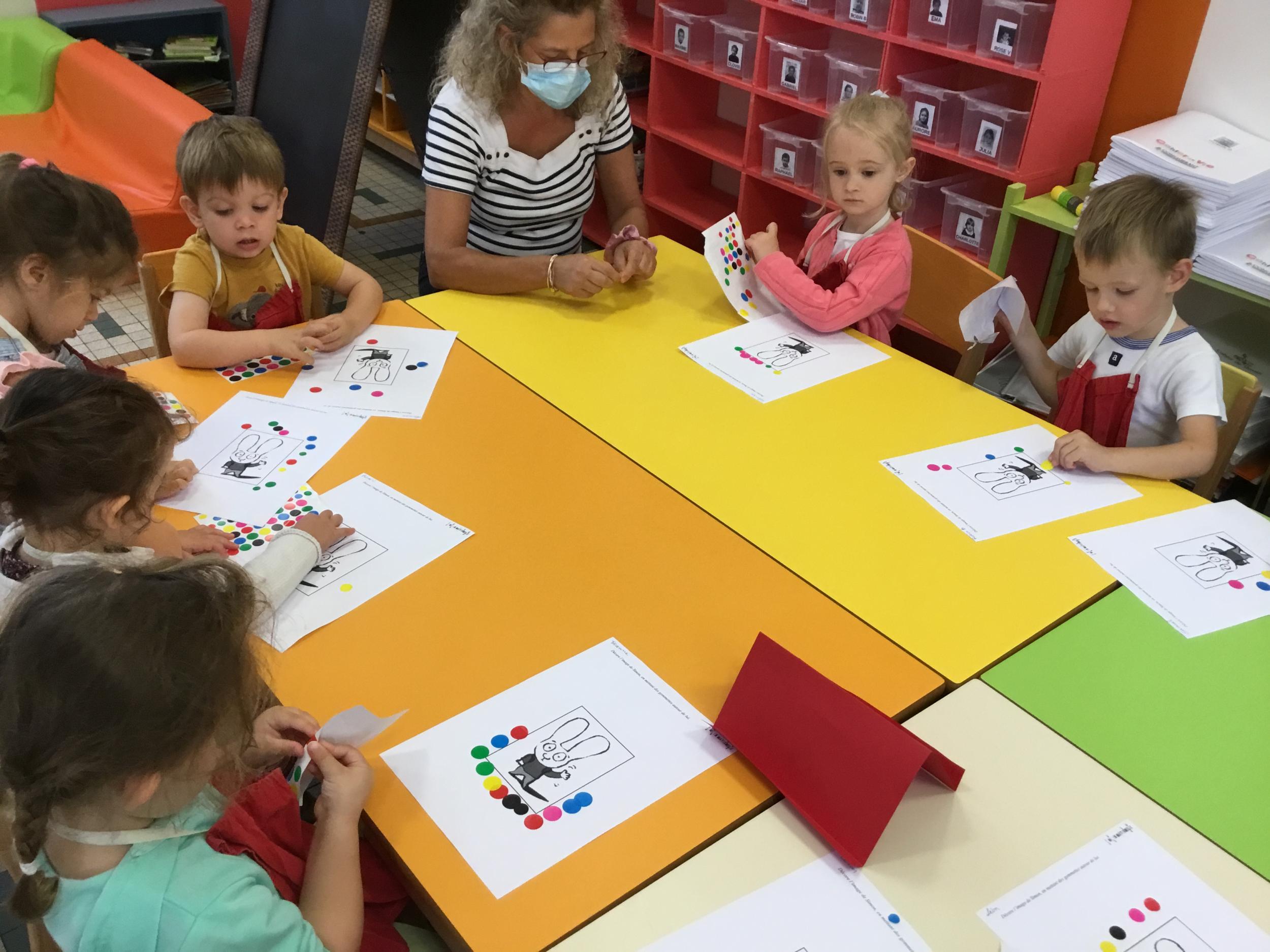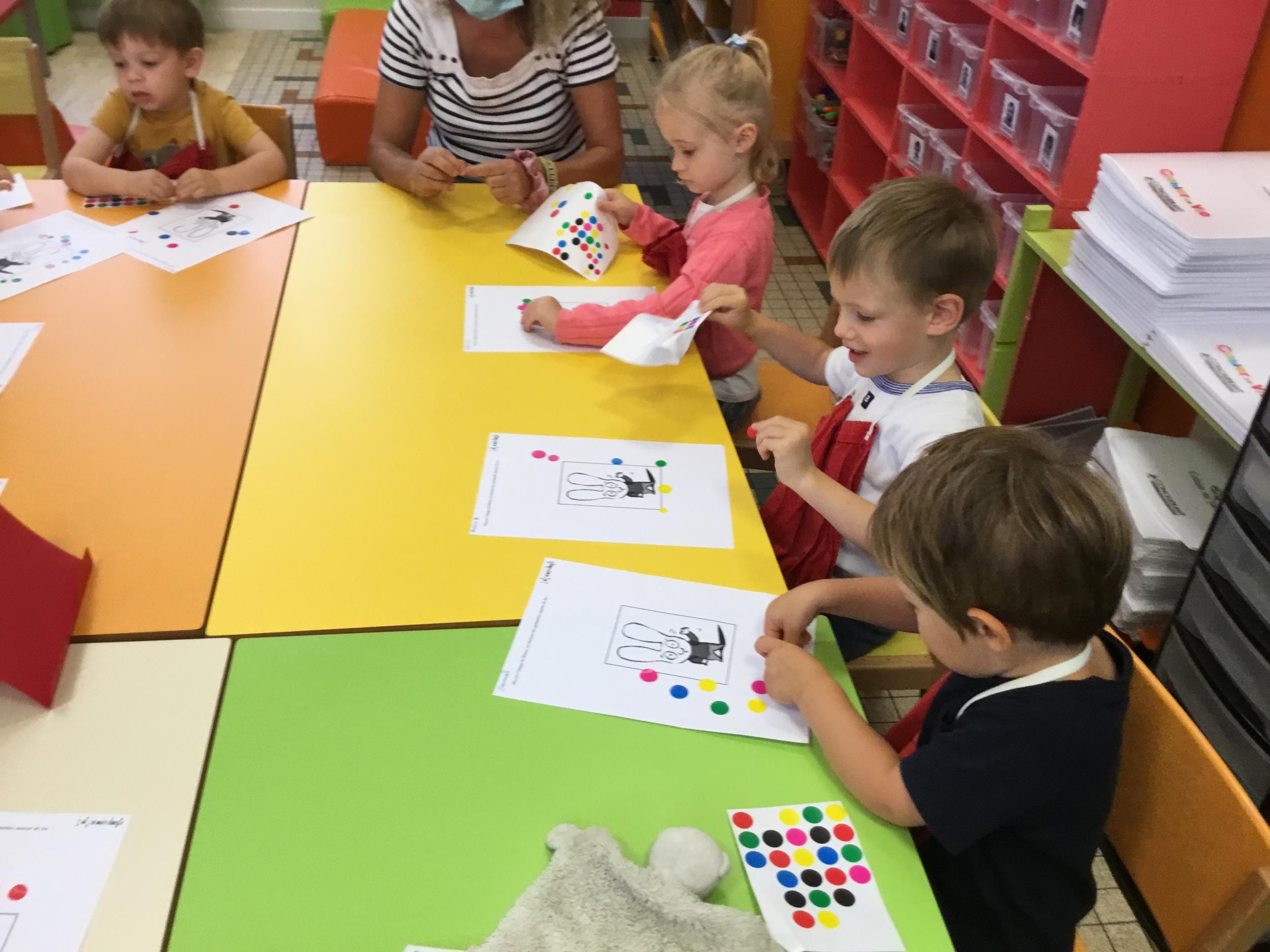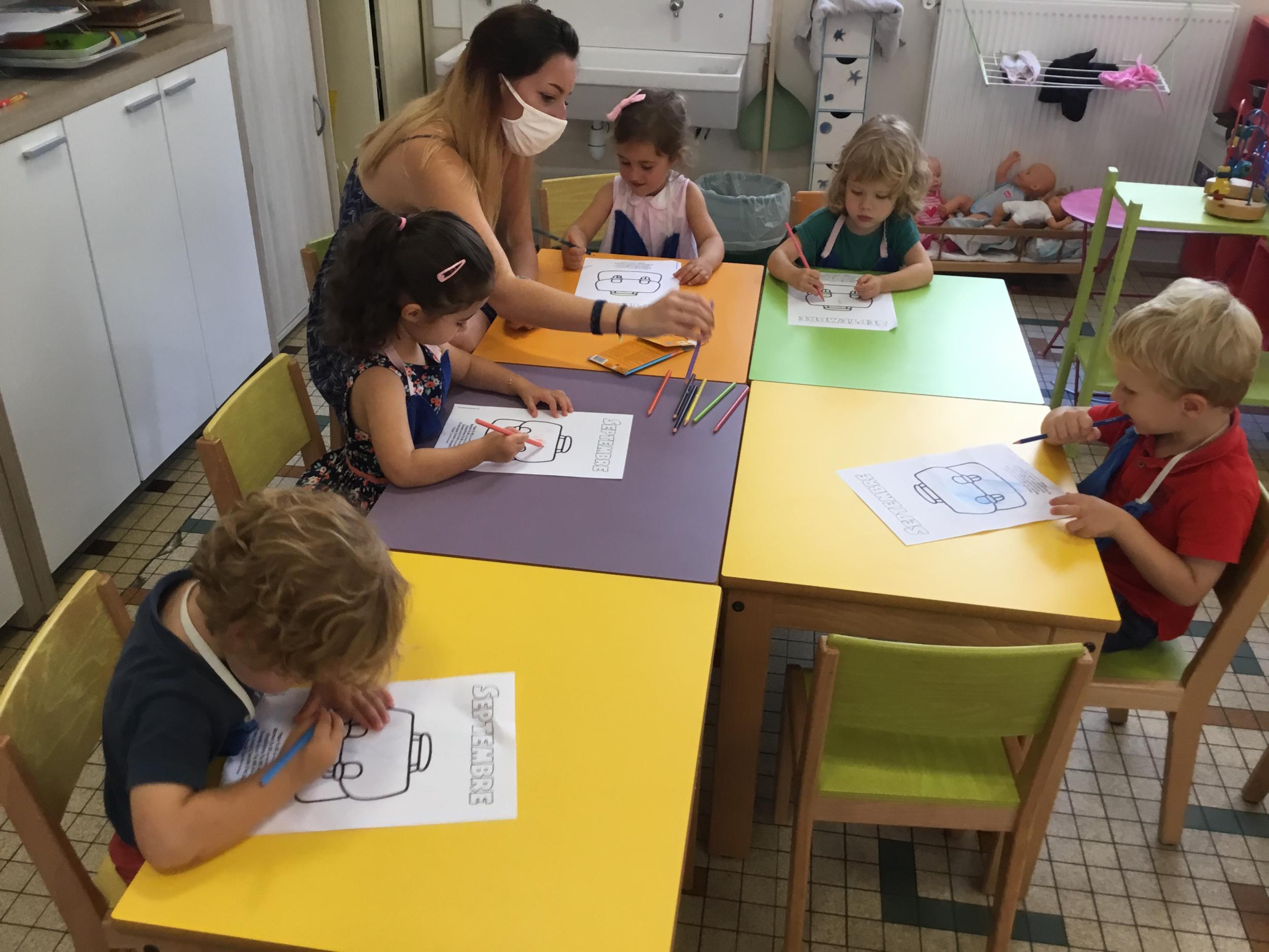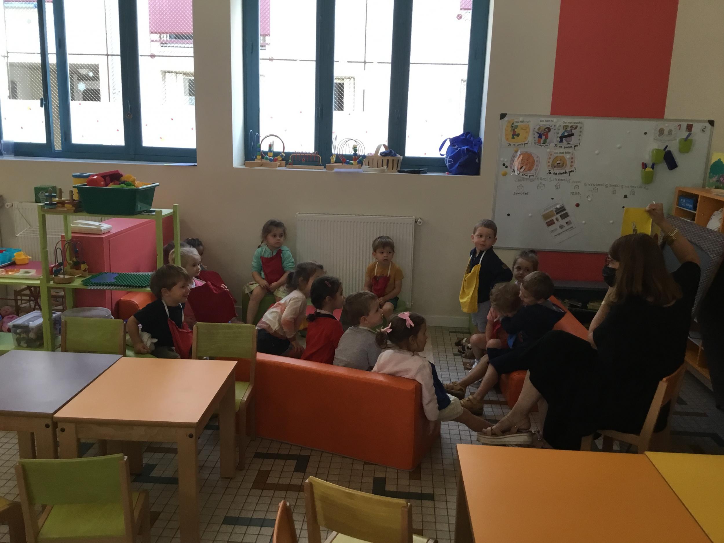 Petite et moyenne section 19/09/2021 Découverte de l’album « je ne veux pas aller à l’école » Première comptine Le petit train pour changer d’activité dans le calme Ateliers d’apprentissage : coller des gommettes AUTOUR DE Simon, coloriage et observation de la tenue du crayon