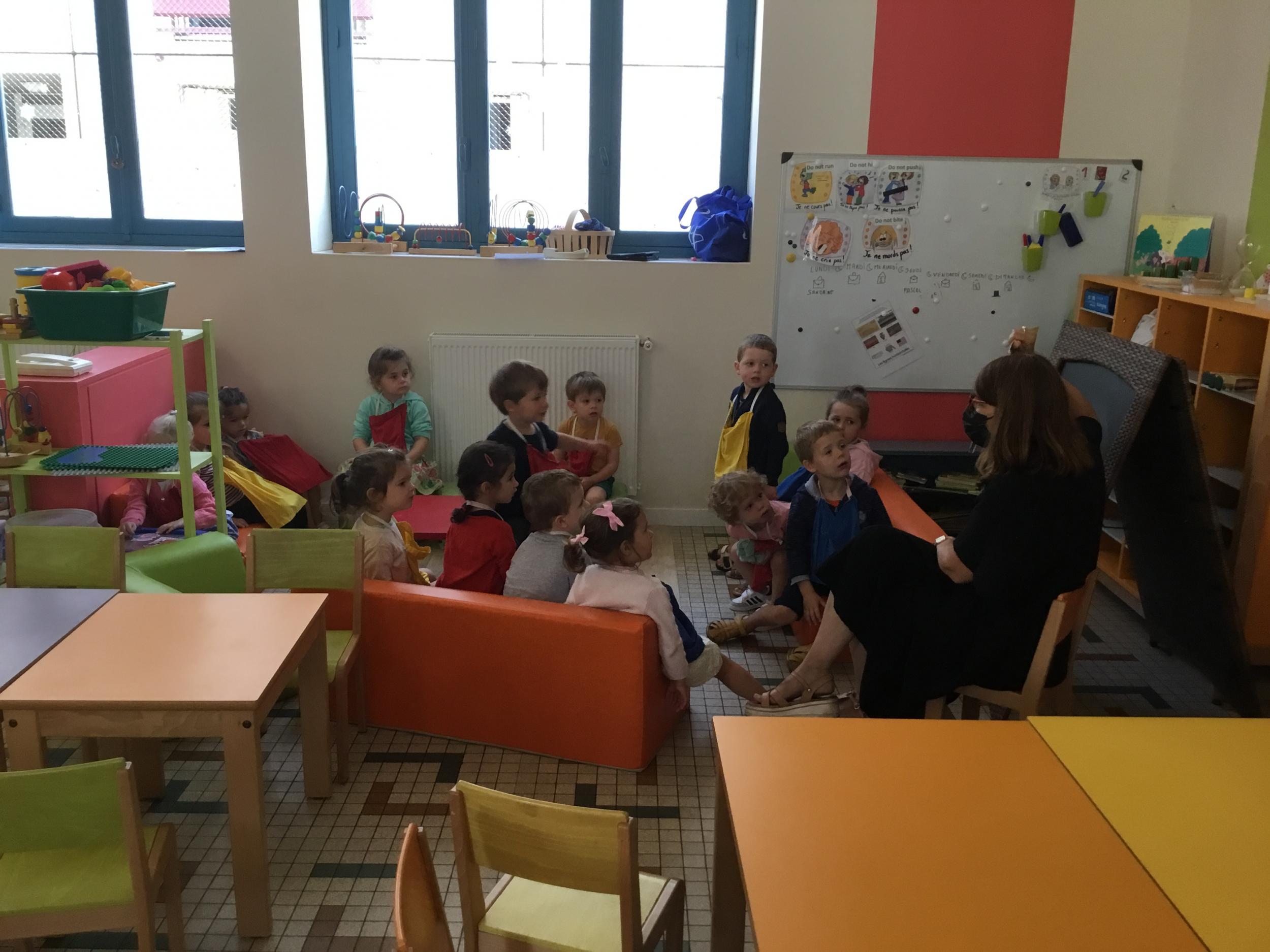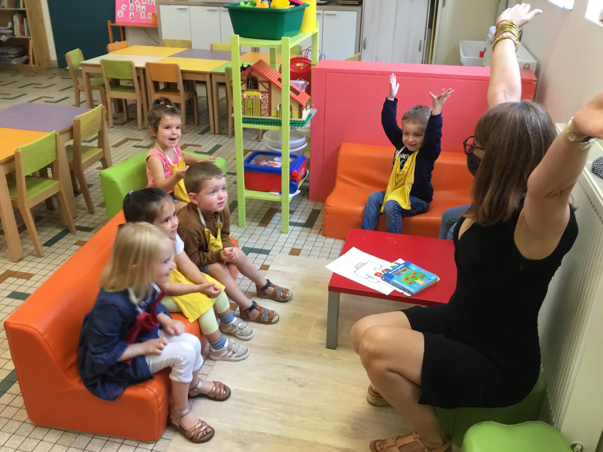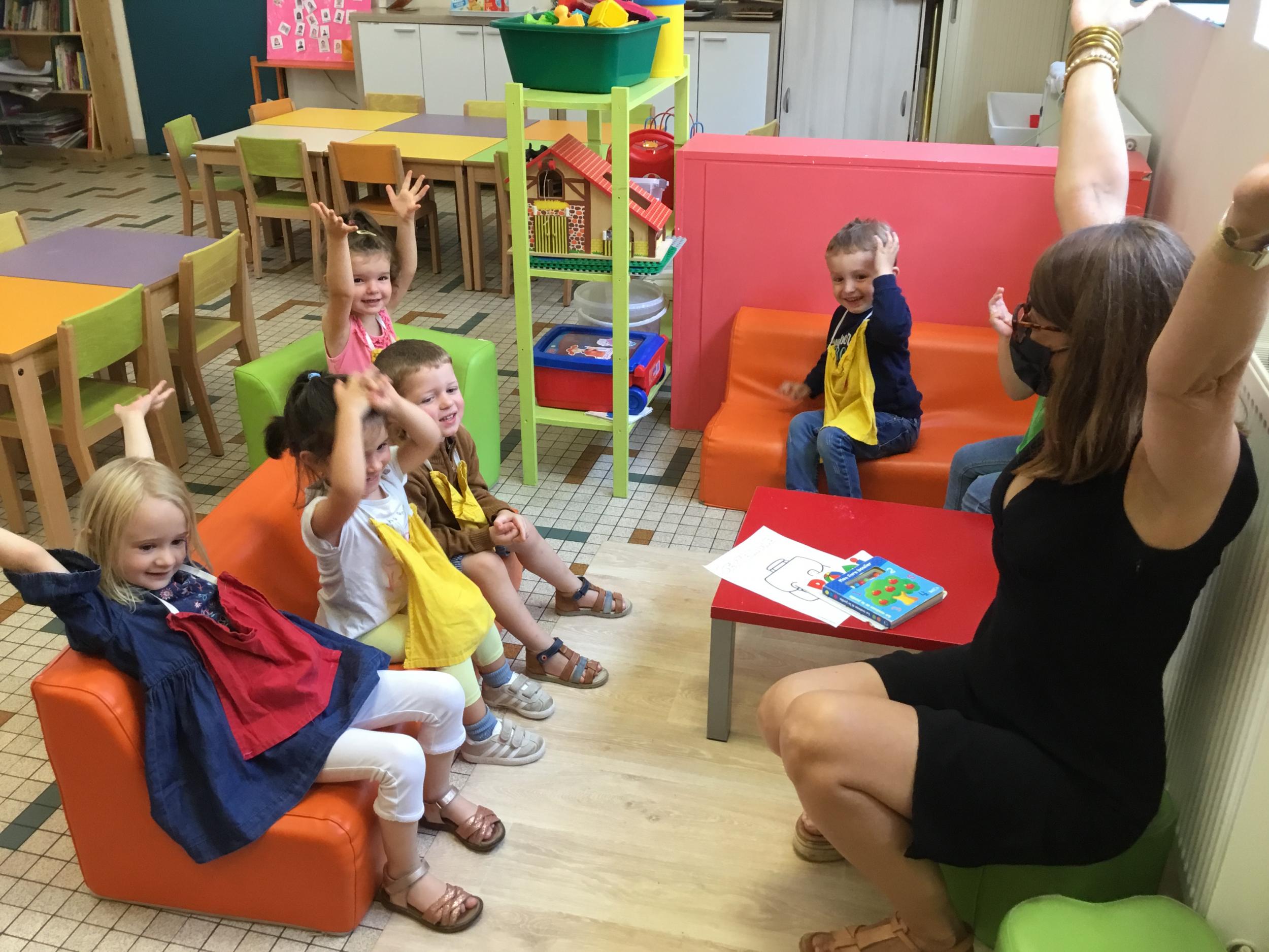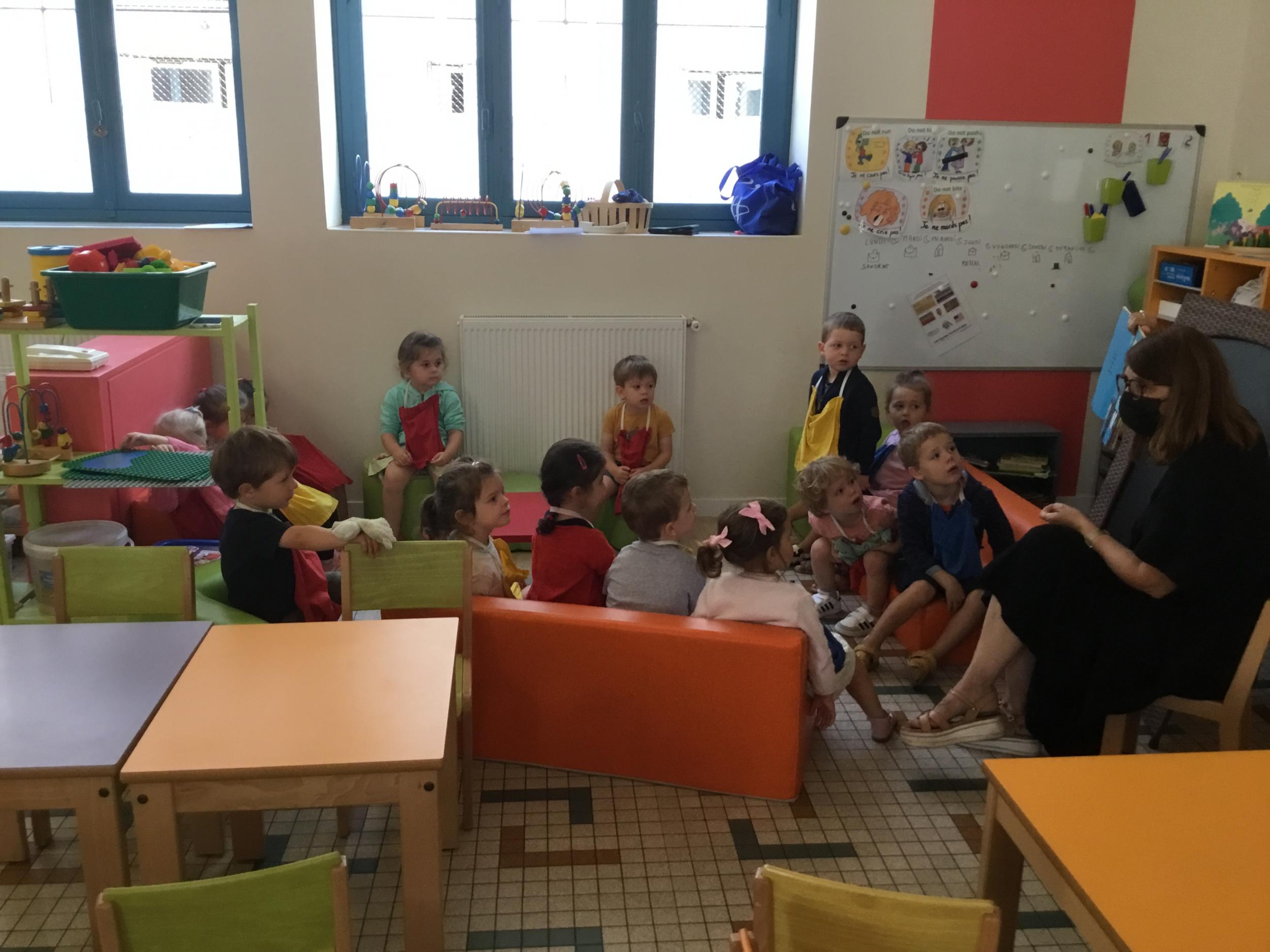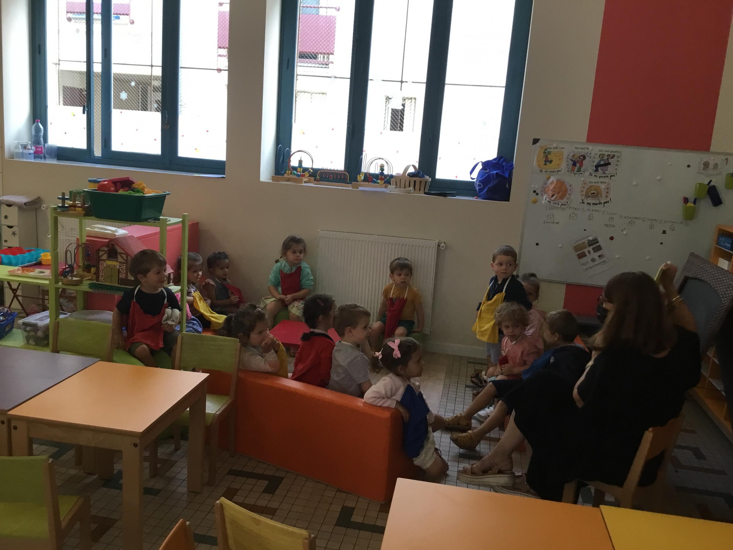 Petite et moyenne section 19/09/2021 Découverte de l’album « je ne veux pas aller à l’école » Première comptine Le petit train pour changer d’activité dans le calme Ateliers d’apprentissage : coller des gommettes AUTOUR DE Simon, coloriage et observation de la tenue du crayon