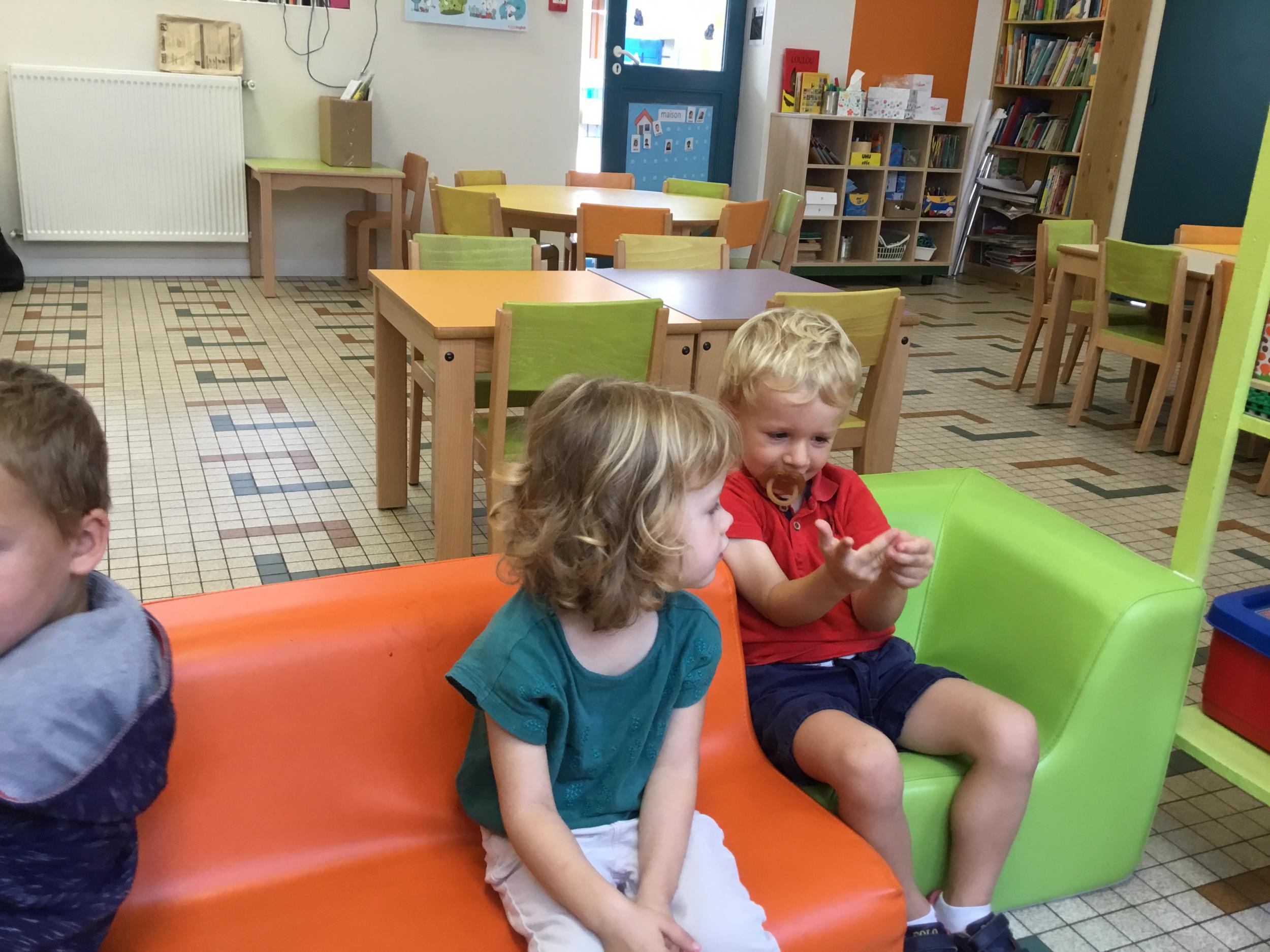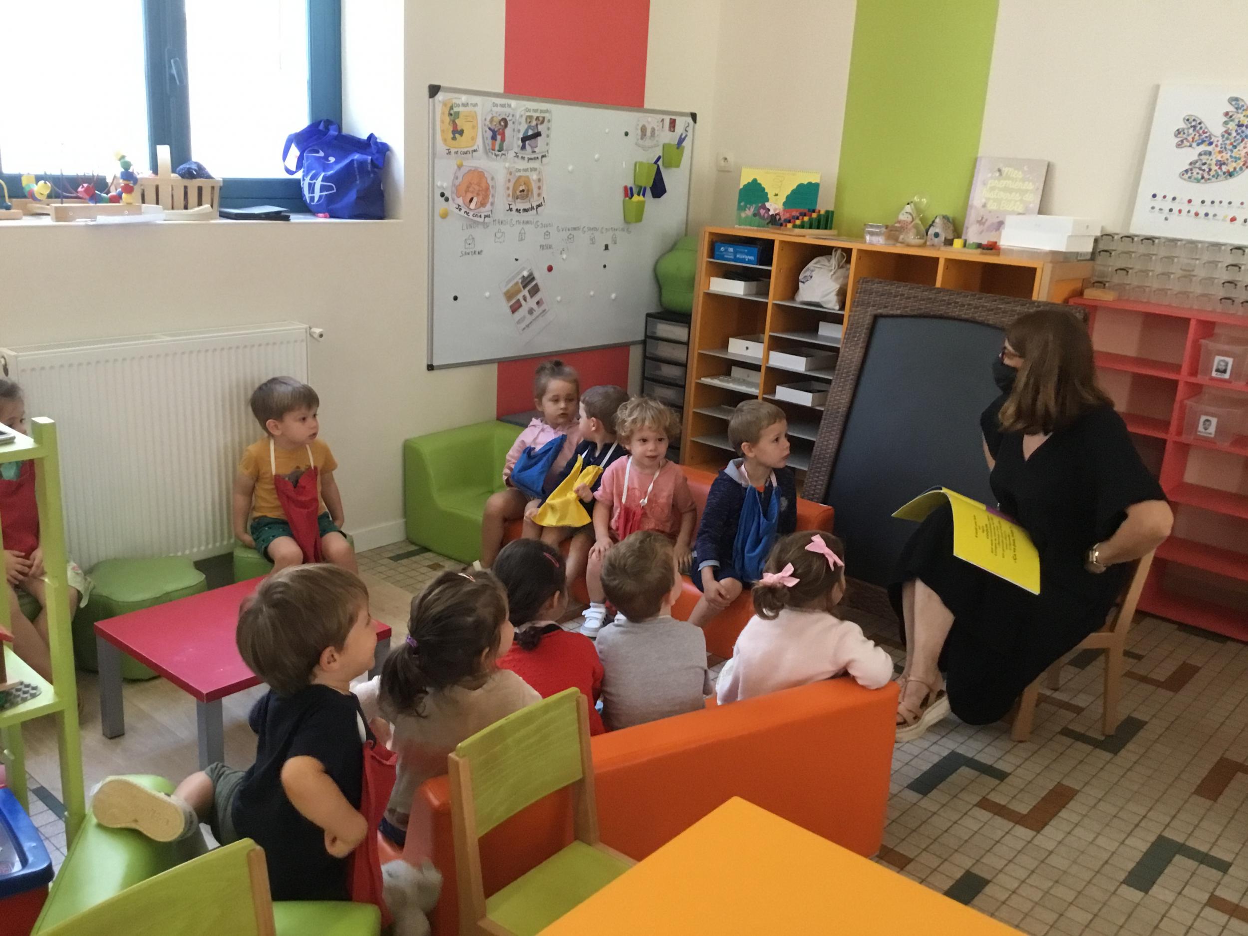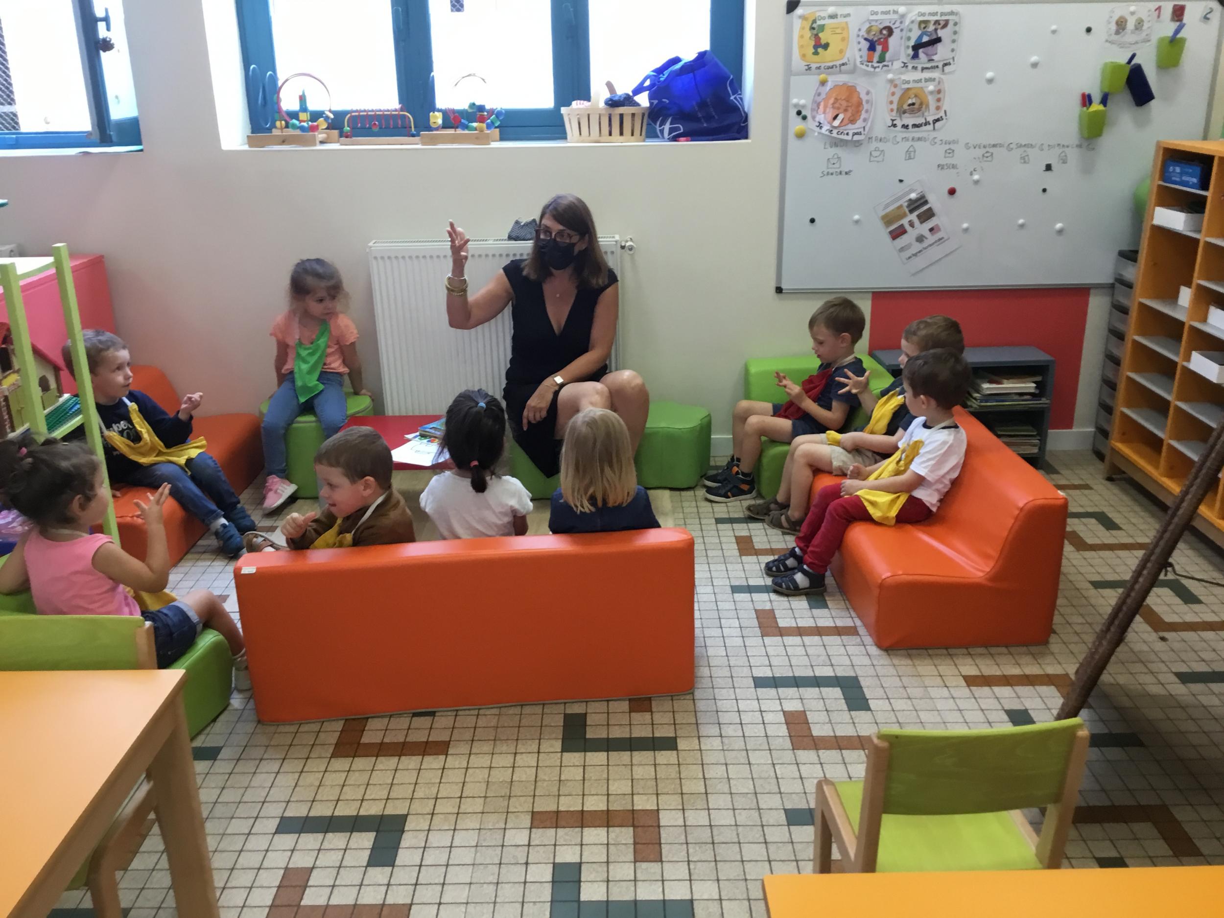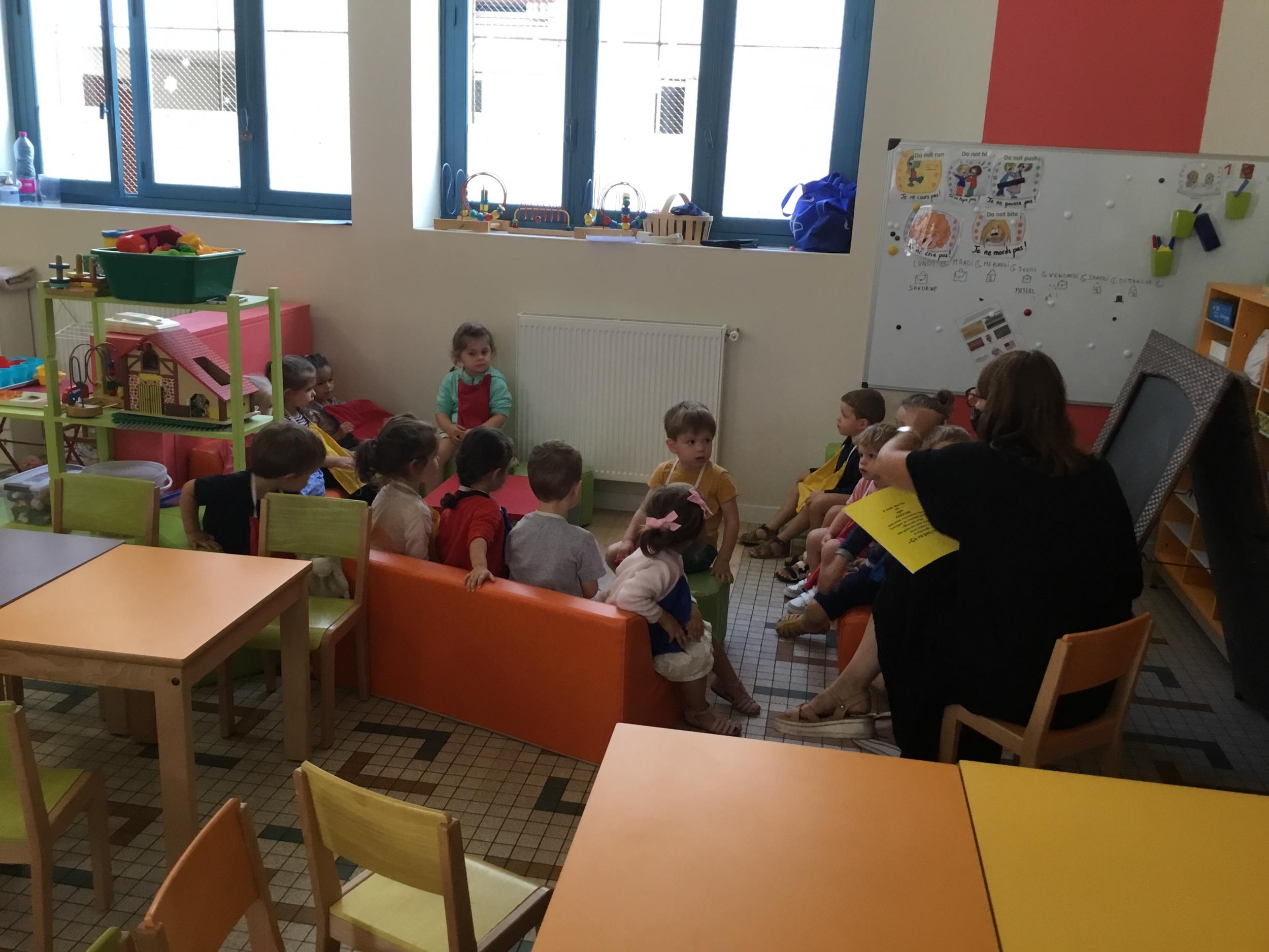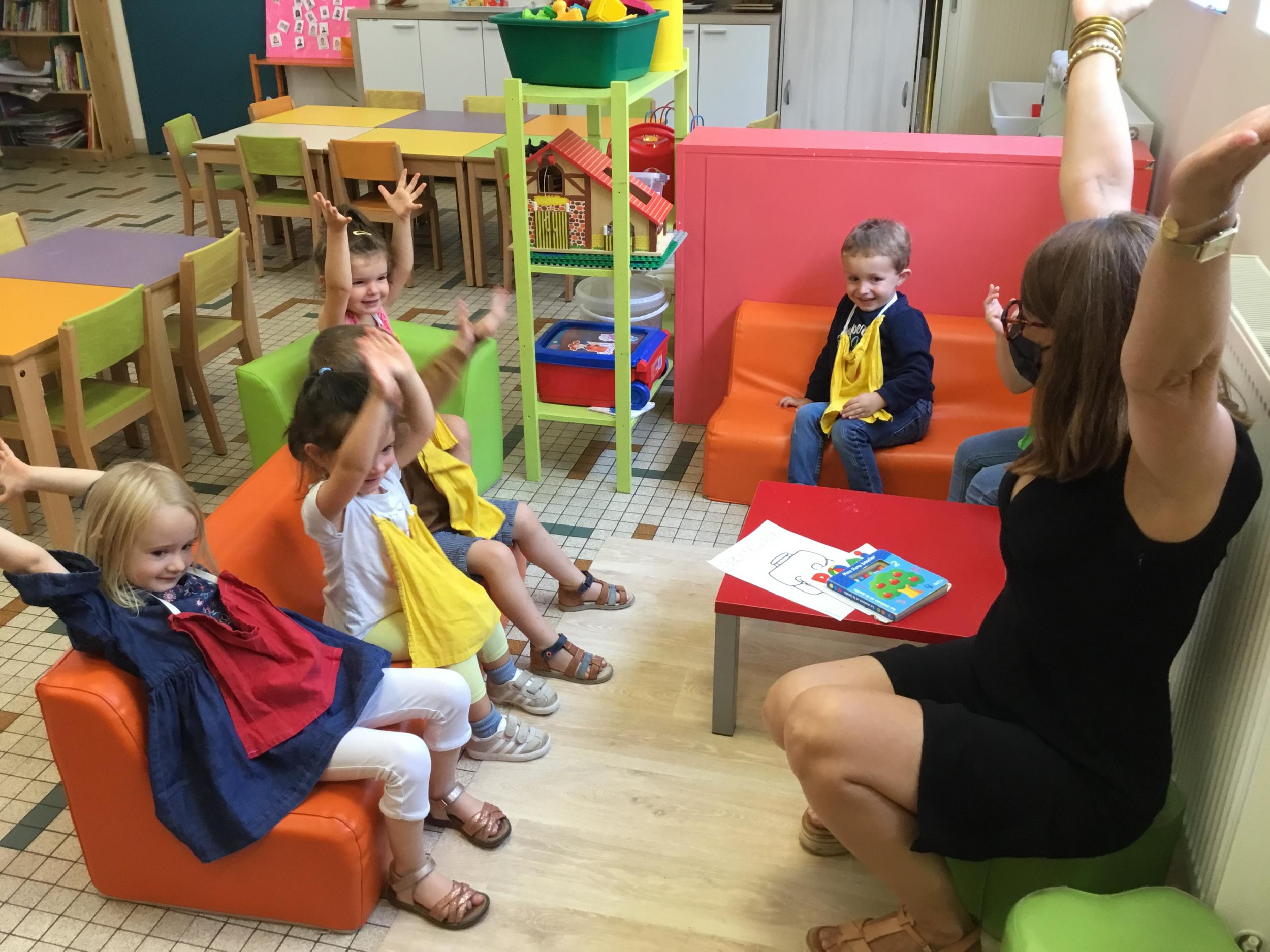 Petite et moyenne section 19/09/2021 Découverte de l’album « je ne veux pas aller à l’école » Première comptine Le petit train pour changer d’activité dans le calme Ateliers d’apprentissage : coller des gommettes AUTOUR DE Simon, coloriage et observation de la tenue du crayon