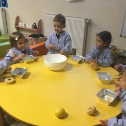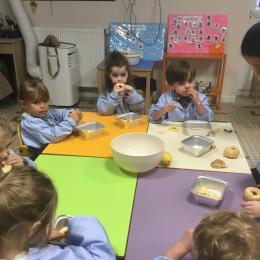 10/10/2025 Chacun a préparé sa barquette … Difficile de ne pas résister au plaisir de déguster quelques 🍎 ! Nous avons également goûté l’acidité du citron, la douceur du sucre, …