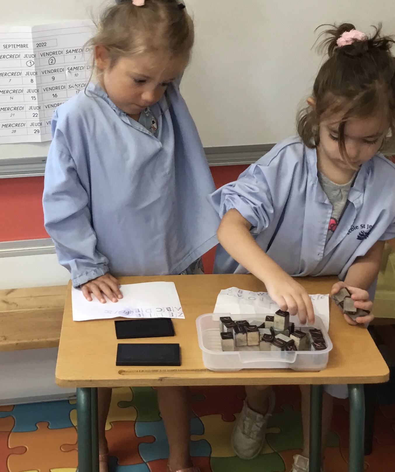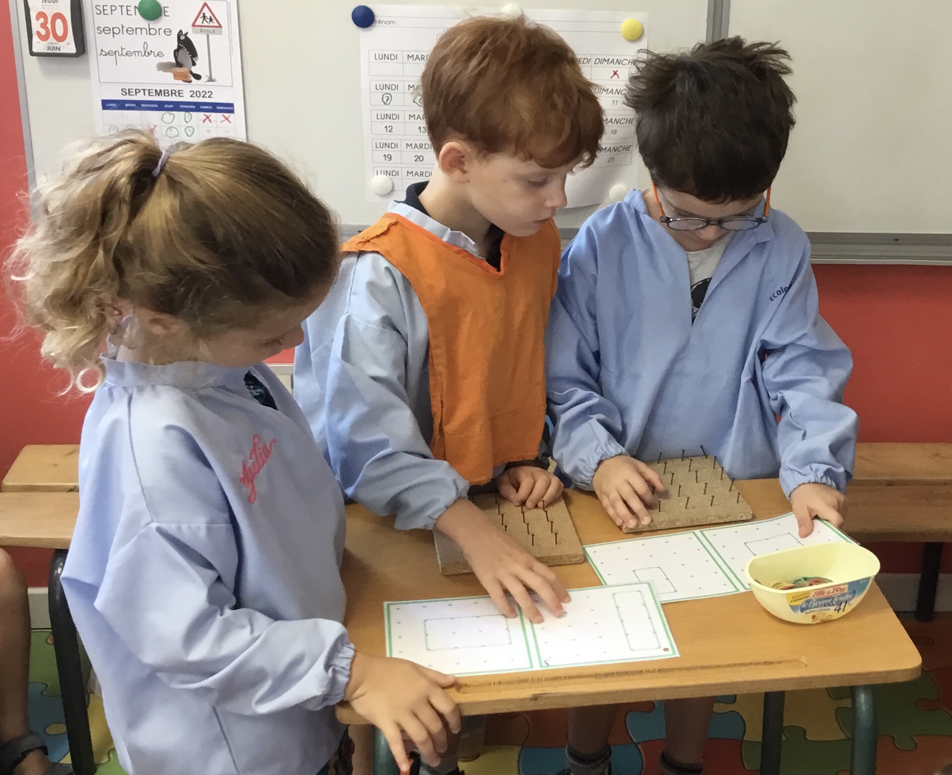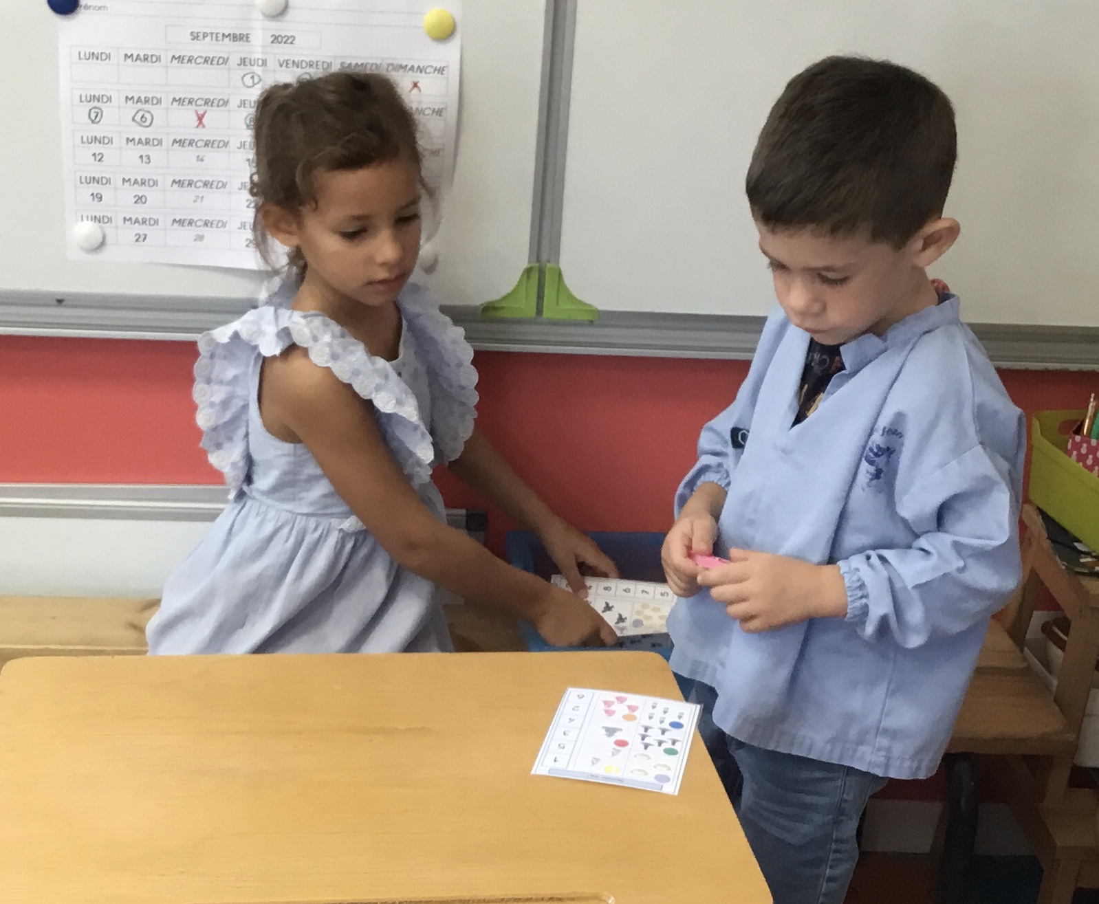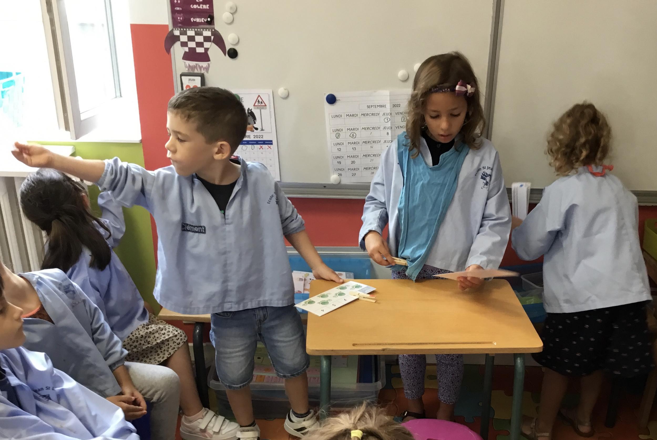 Tous les matins en grande section, nous travaillons sur différents domaines d’apprentissage, grâce aux ateliers d’inspiration Montessori.