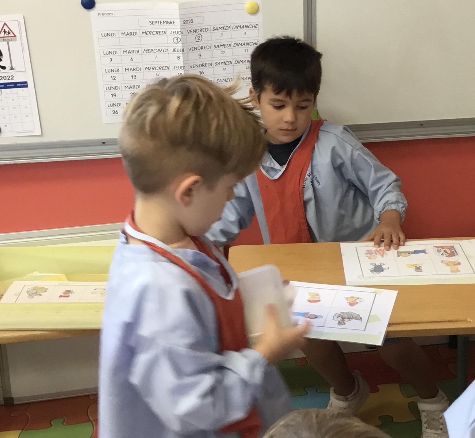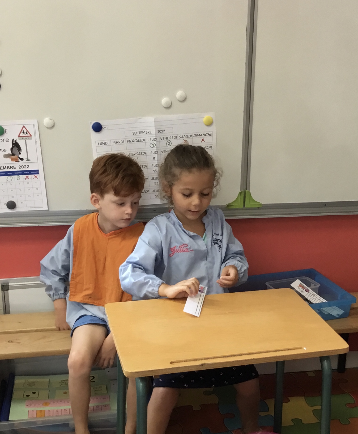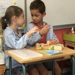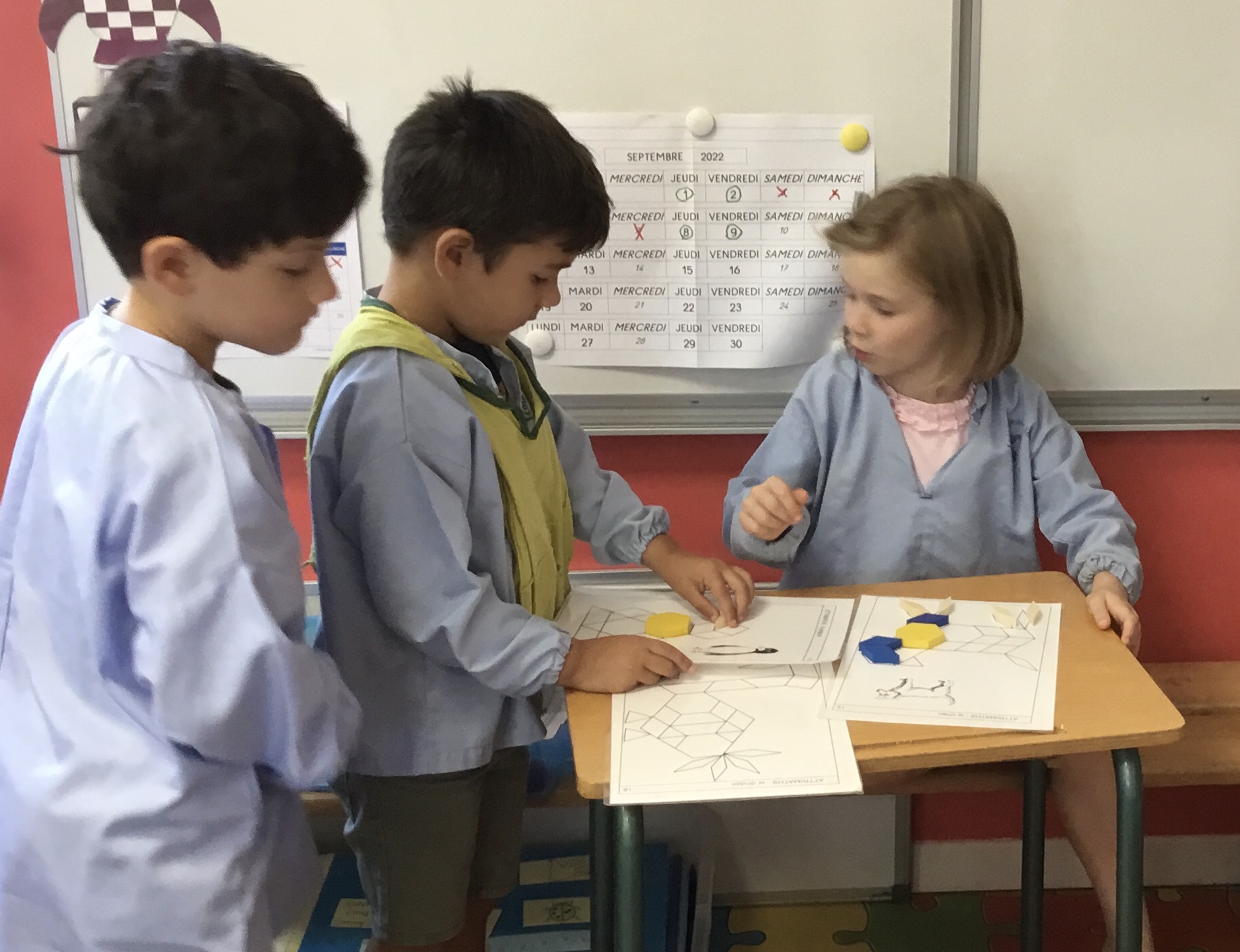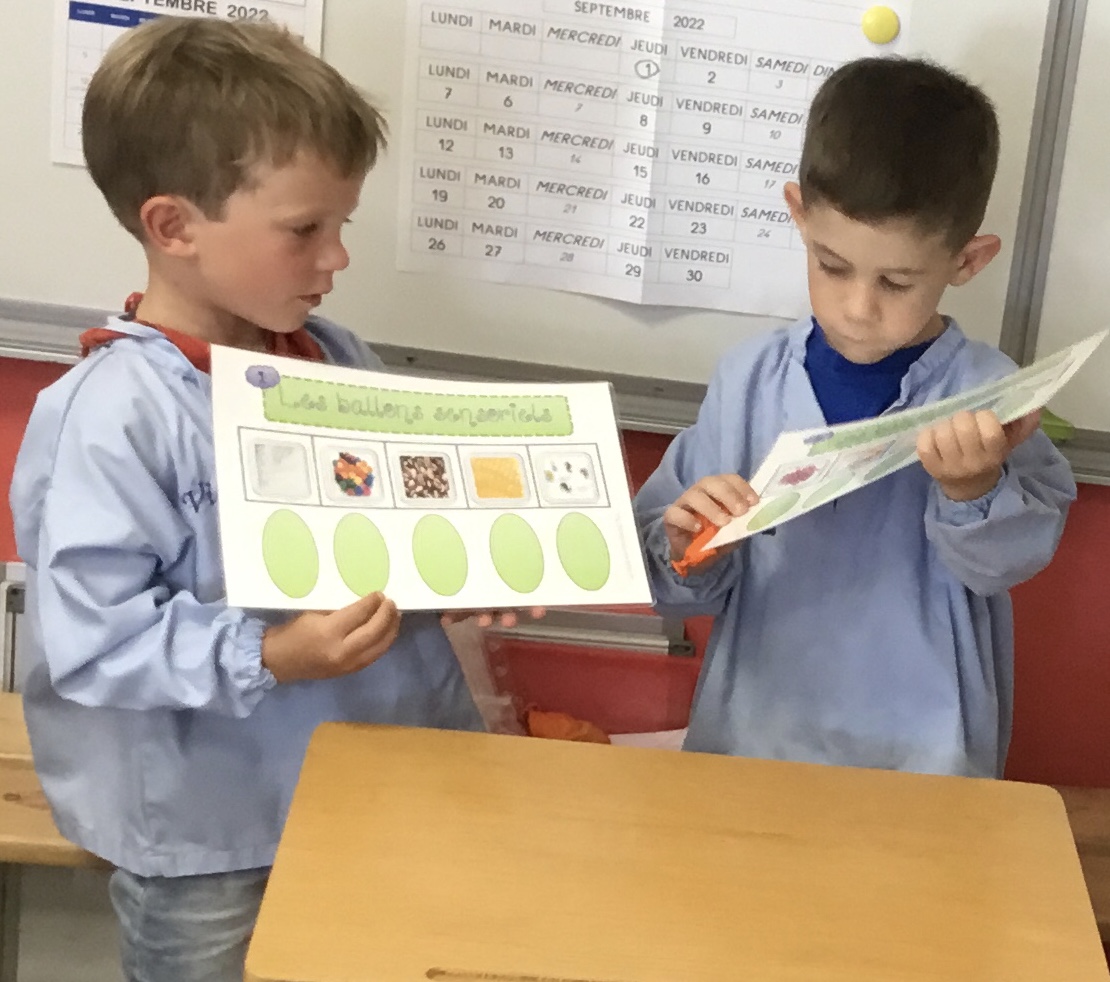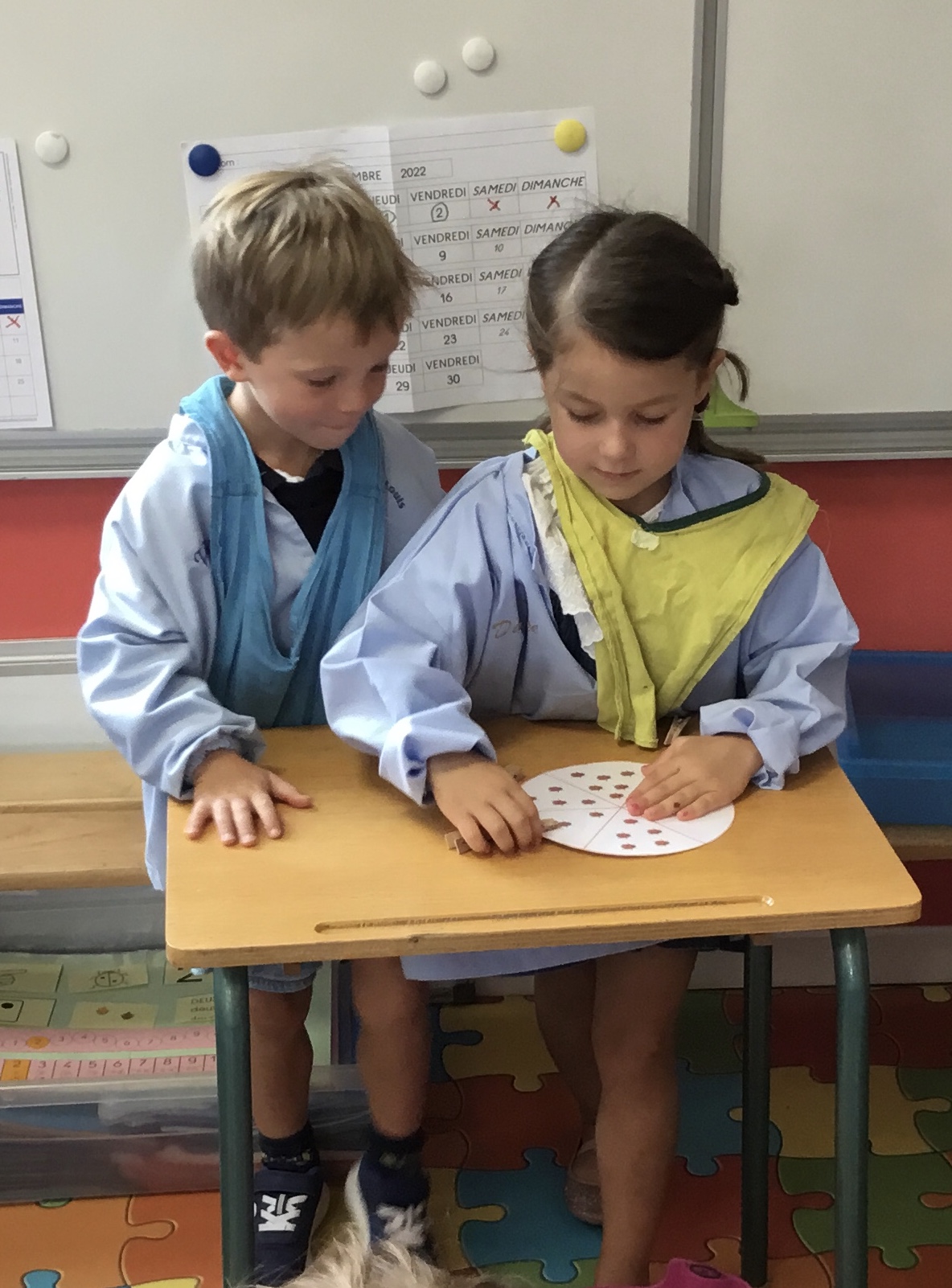 Tous les matins en grande section, nous travaillons sur différents domaines d’apprentissage, grâce aux ateliers d’inspiration Montessori.