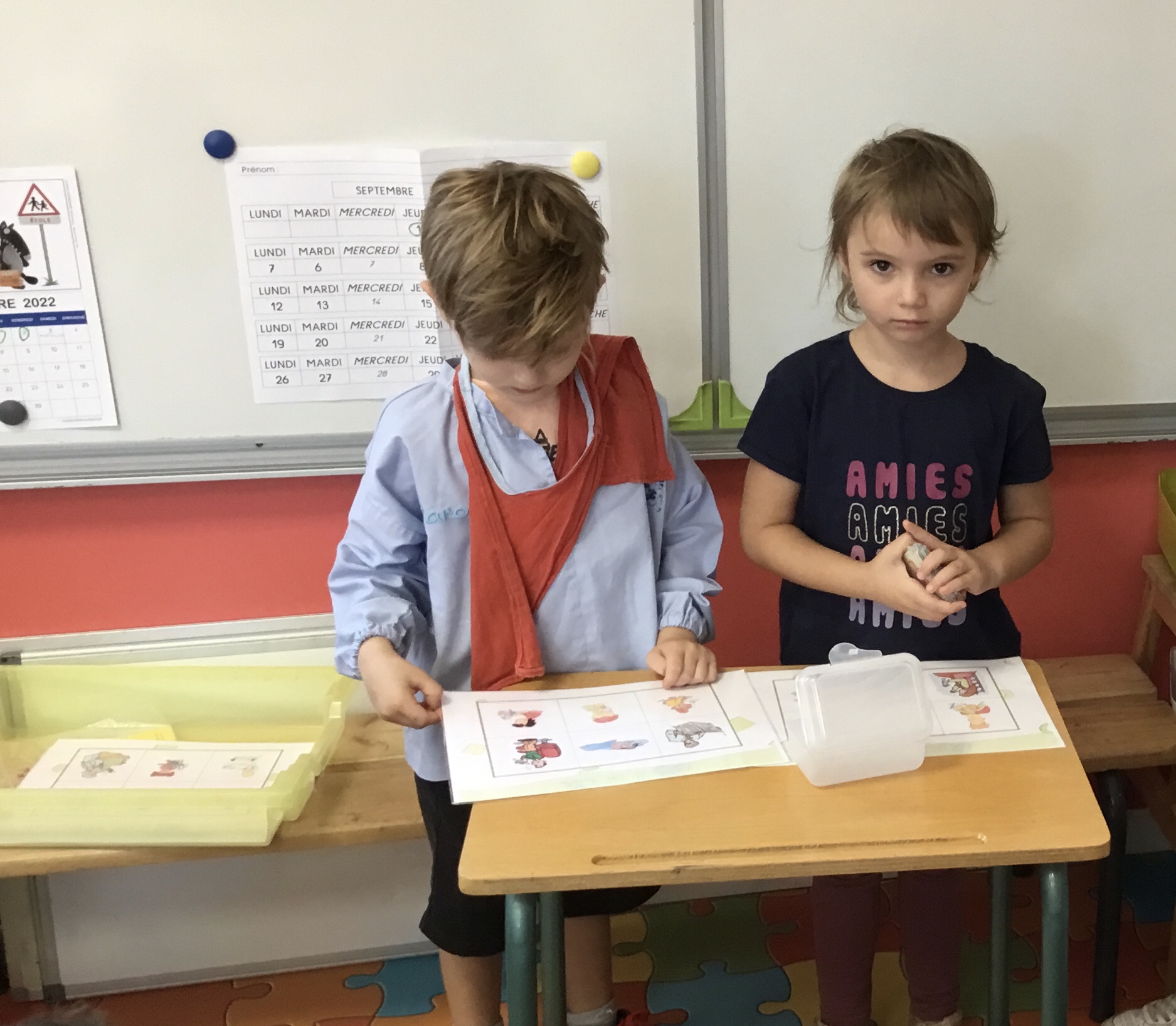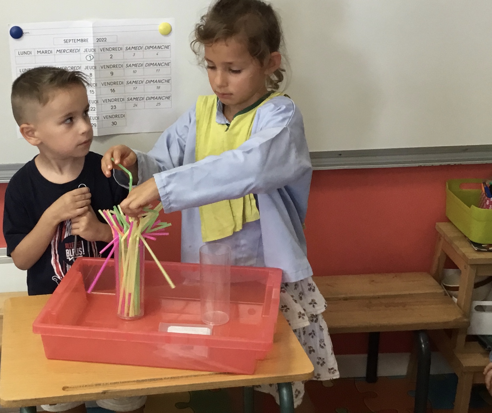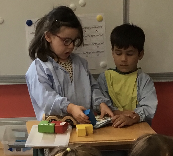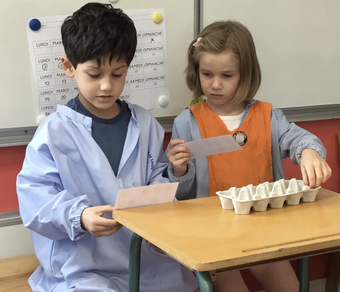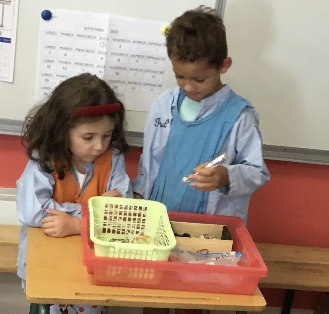 Tous les matins en grande section, nous travaillons sur différents domaines d’apprentissage, grâce aux ateliers d’inspiration Montessori.