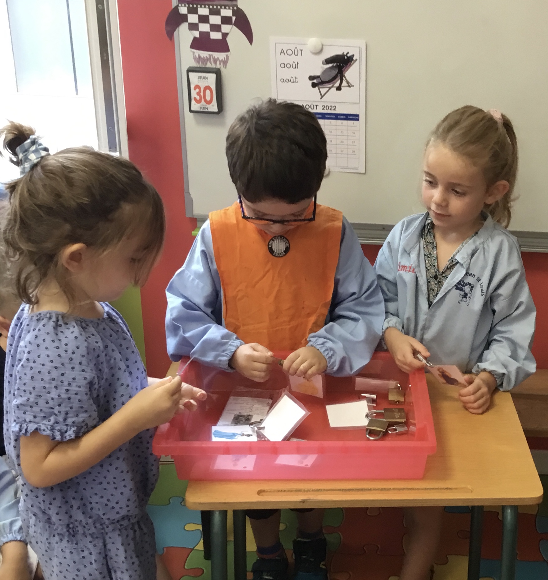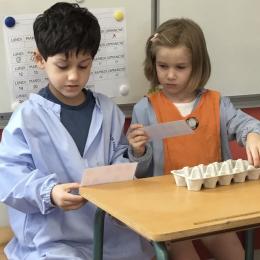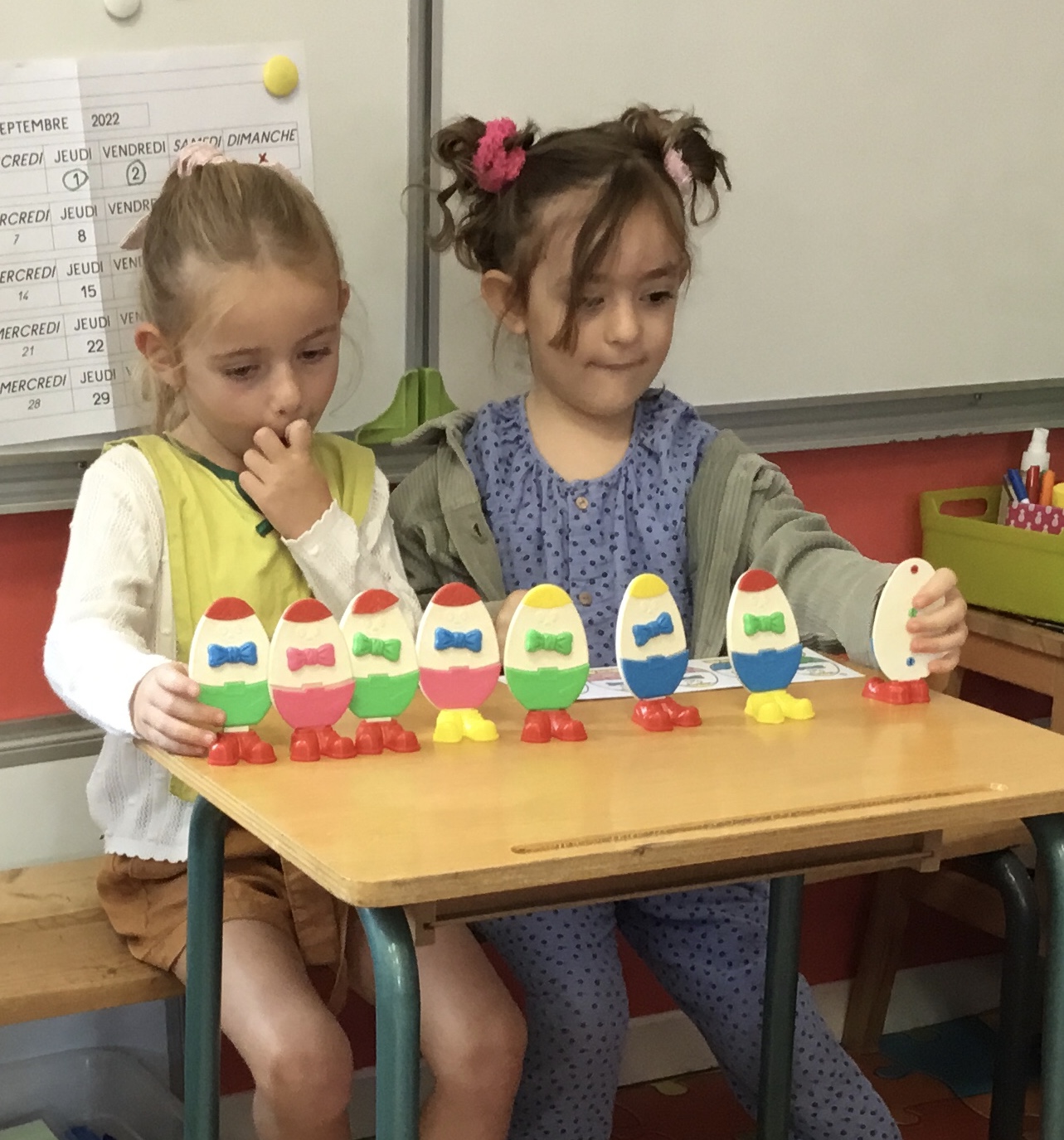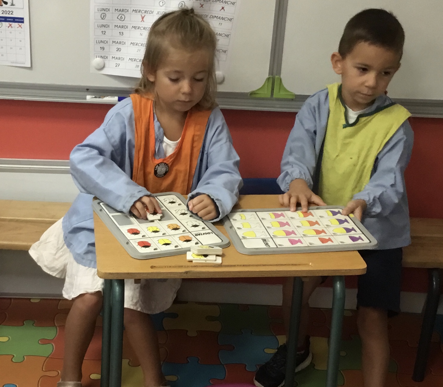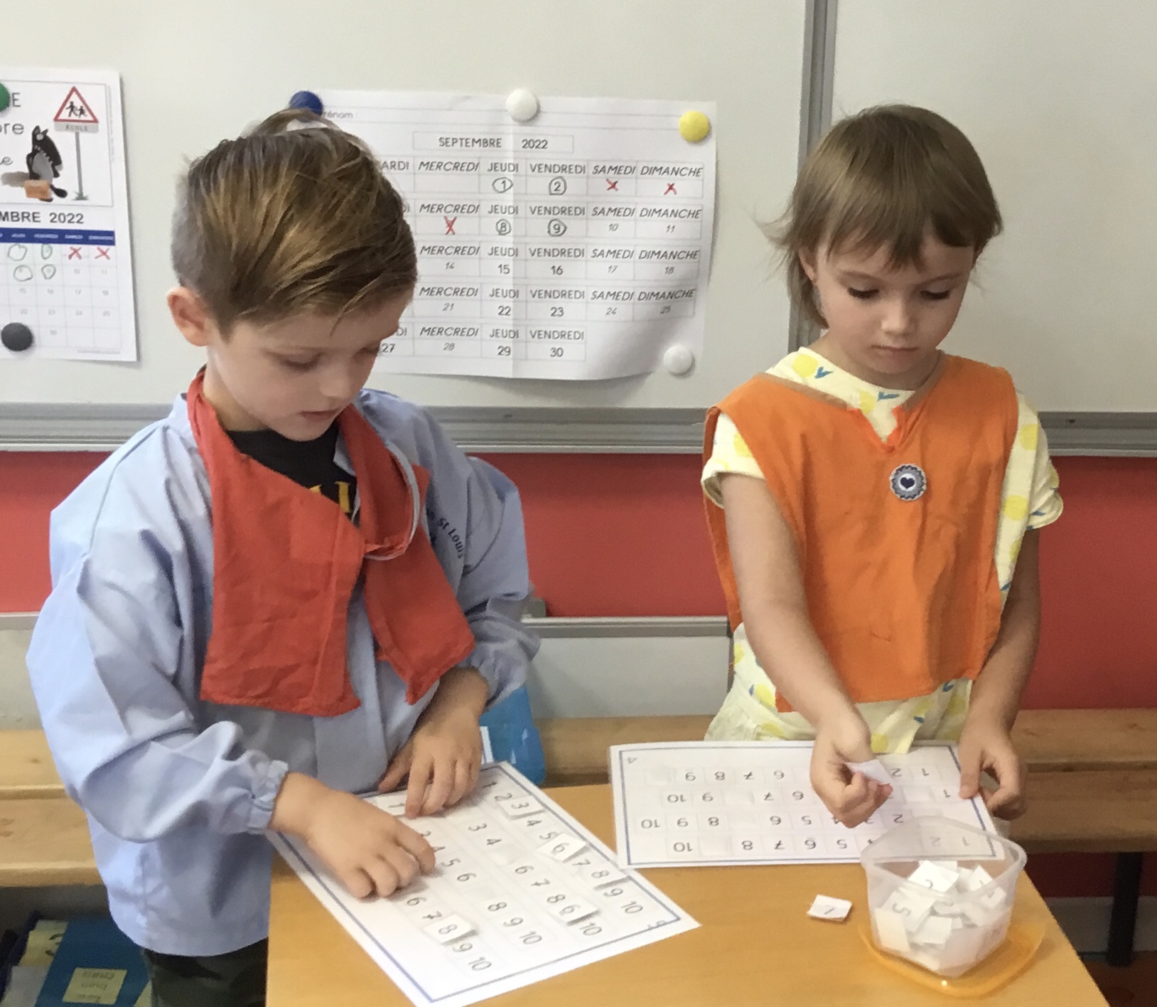 Tous les matins en grande section, nous travaillons sur différents domaines d’apprentissage, grâce aux ateliers d’inspiration Montessori.