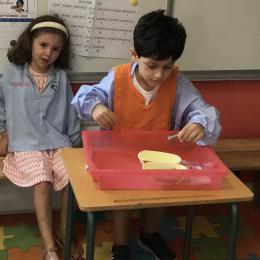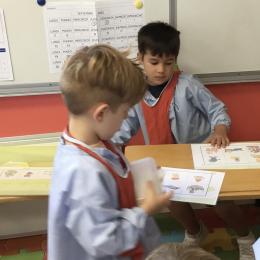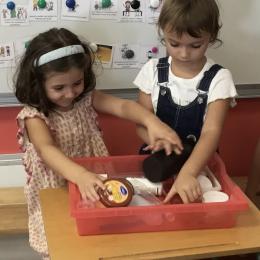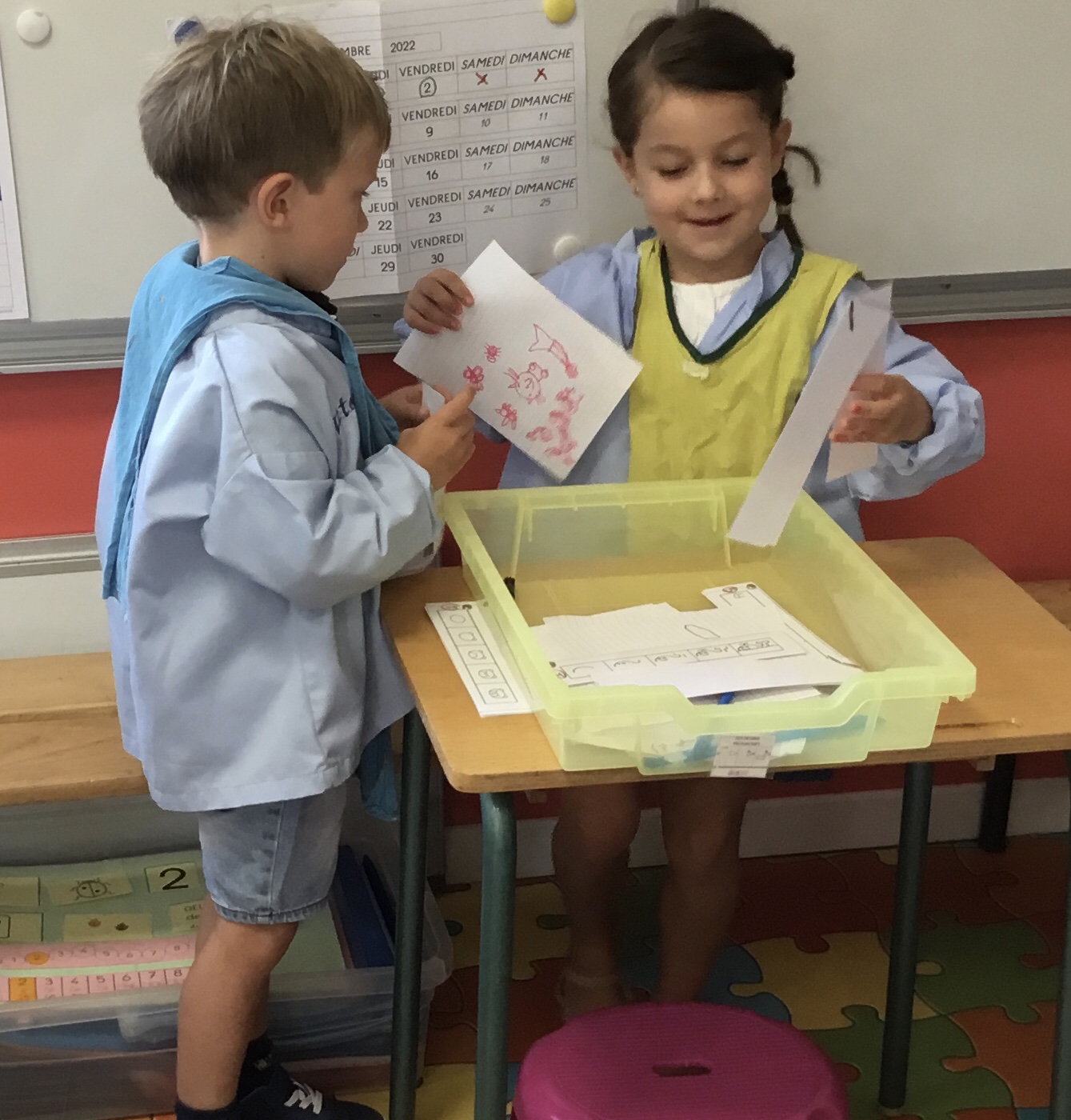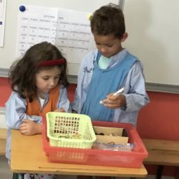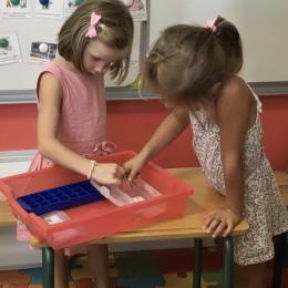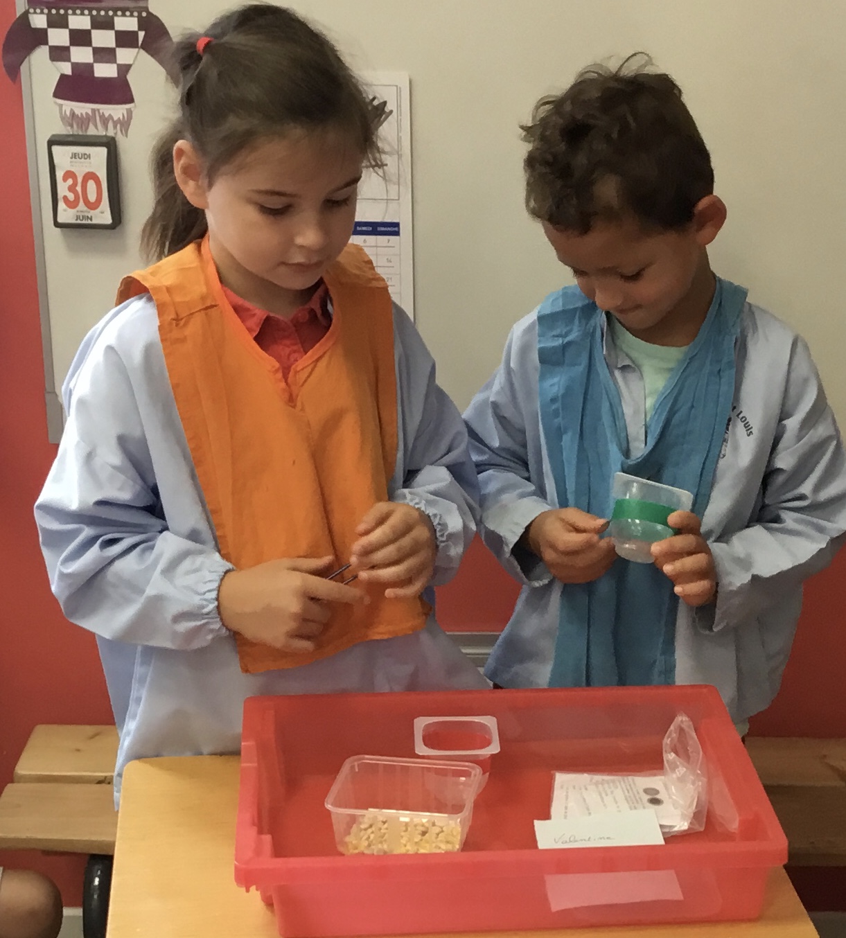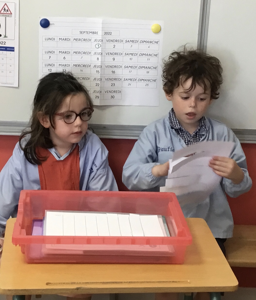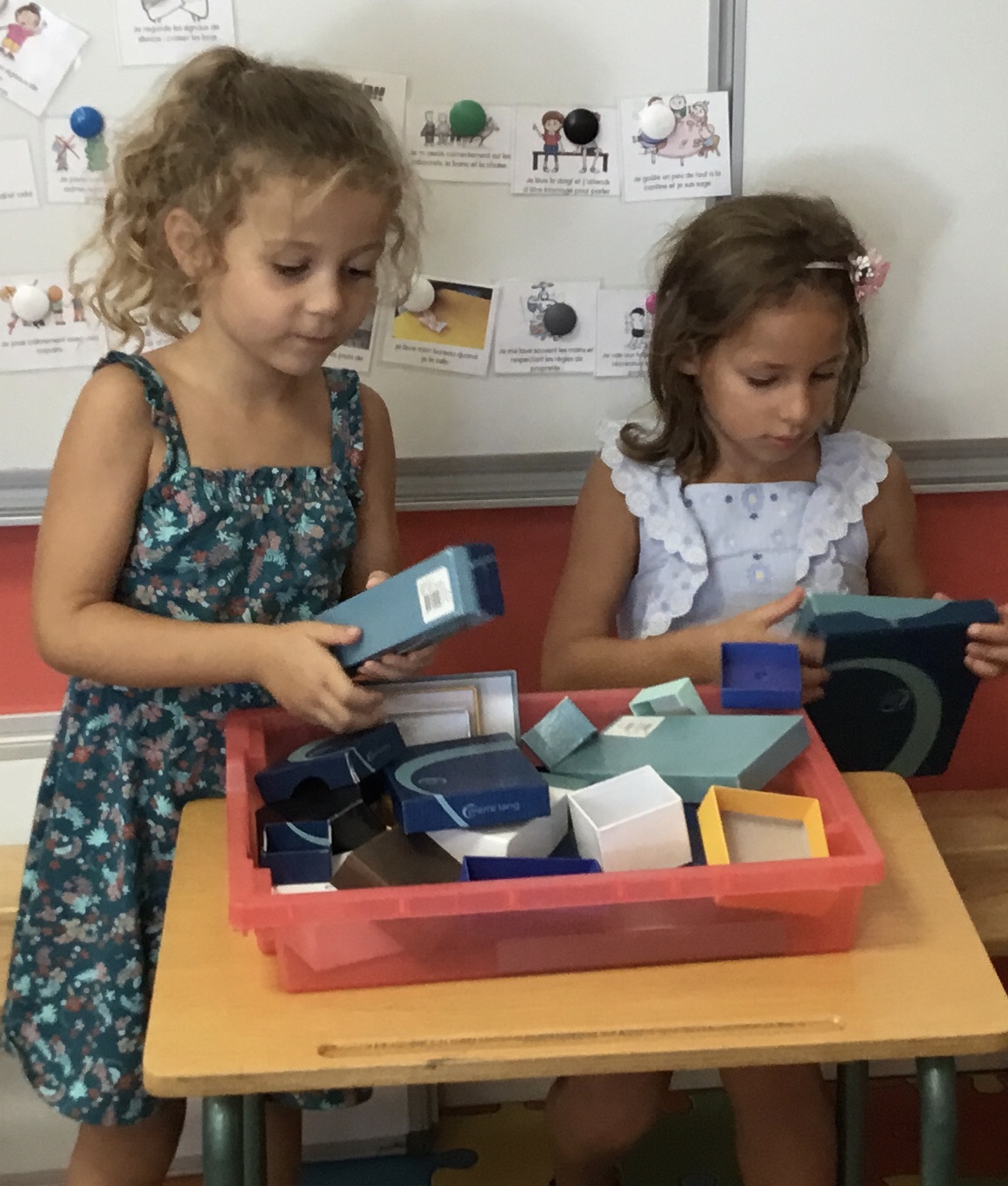 Tous les matins en grande section, nous travaillons sur différents domaines d’apprentissage, grâce aux ateliers d’inspiration Montessori.