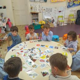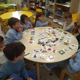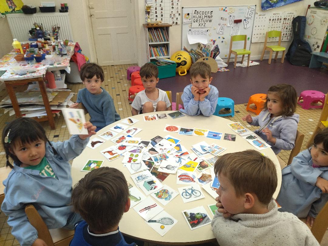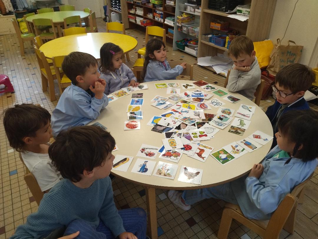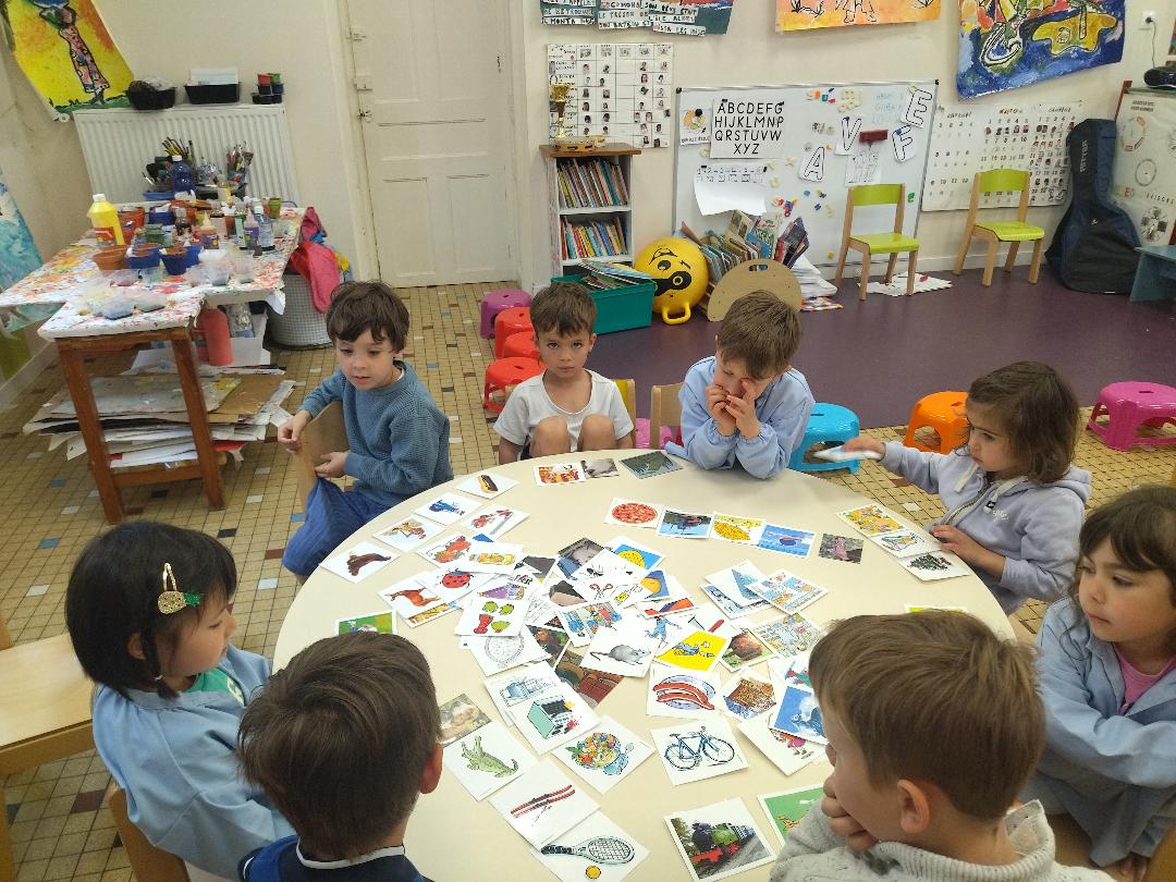 Ils s’organisent et imaginent leur récit puis doivent l’agencer en ligne devant eux dans l’ordre chronologique et le raconter aux autres élèves de l’atelier en montrant chaque image.